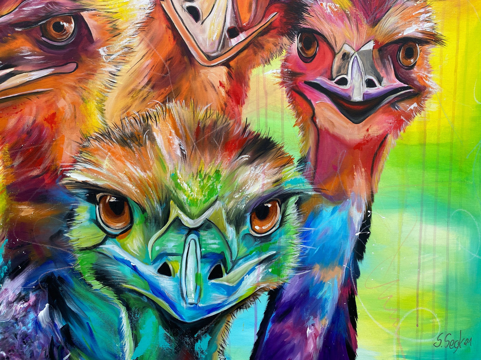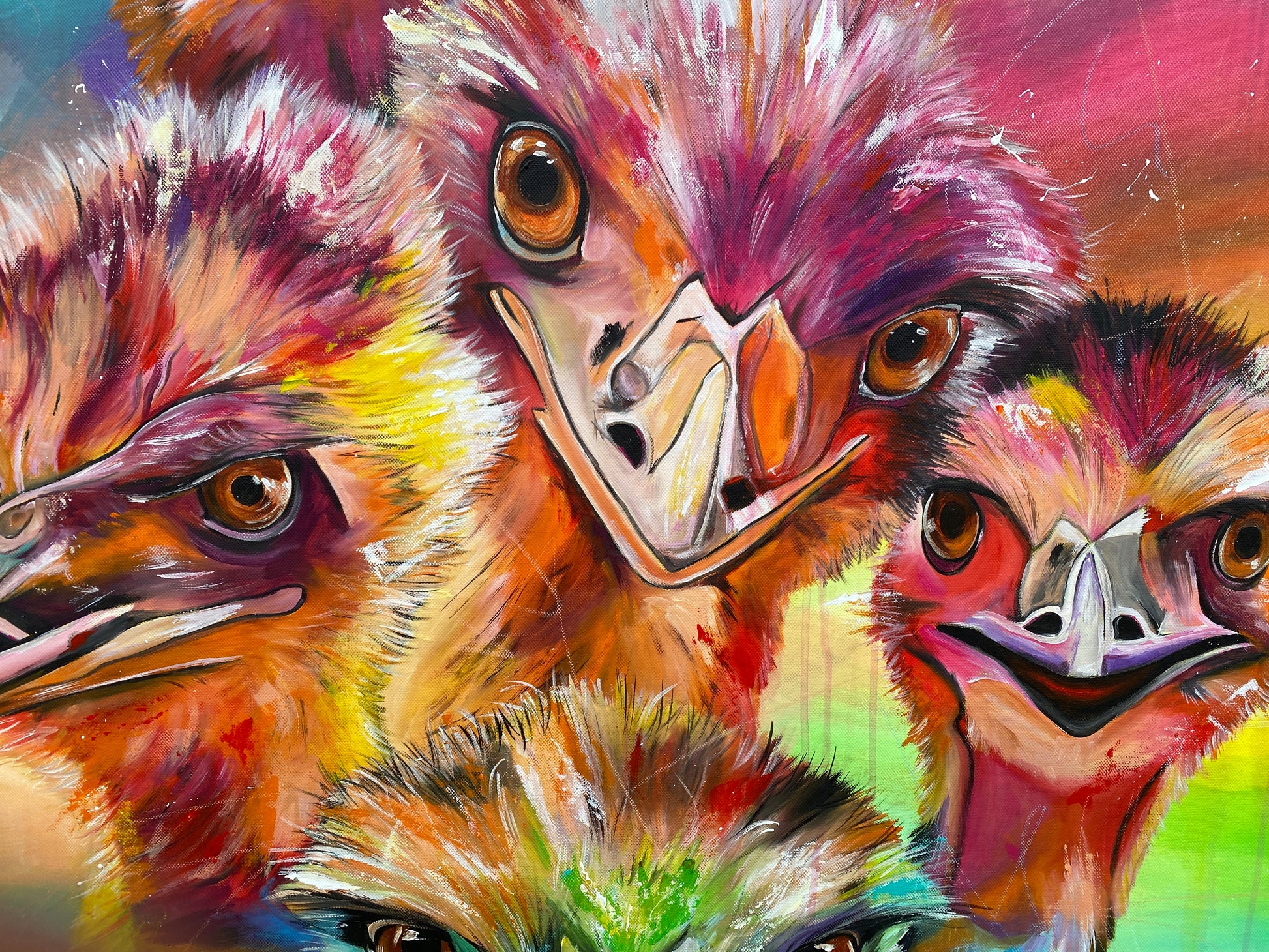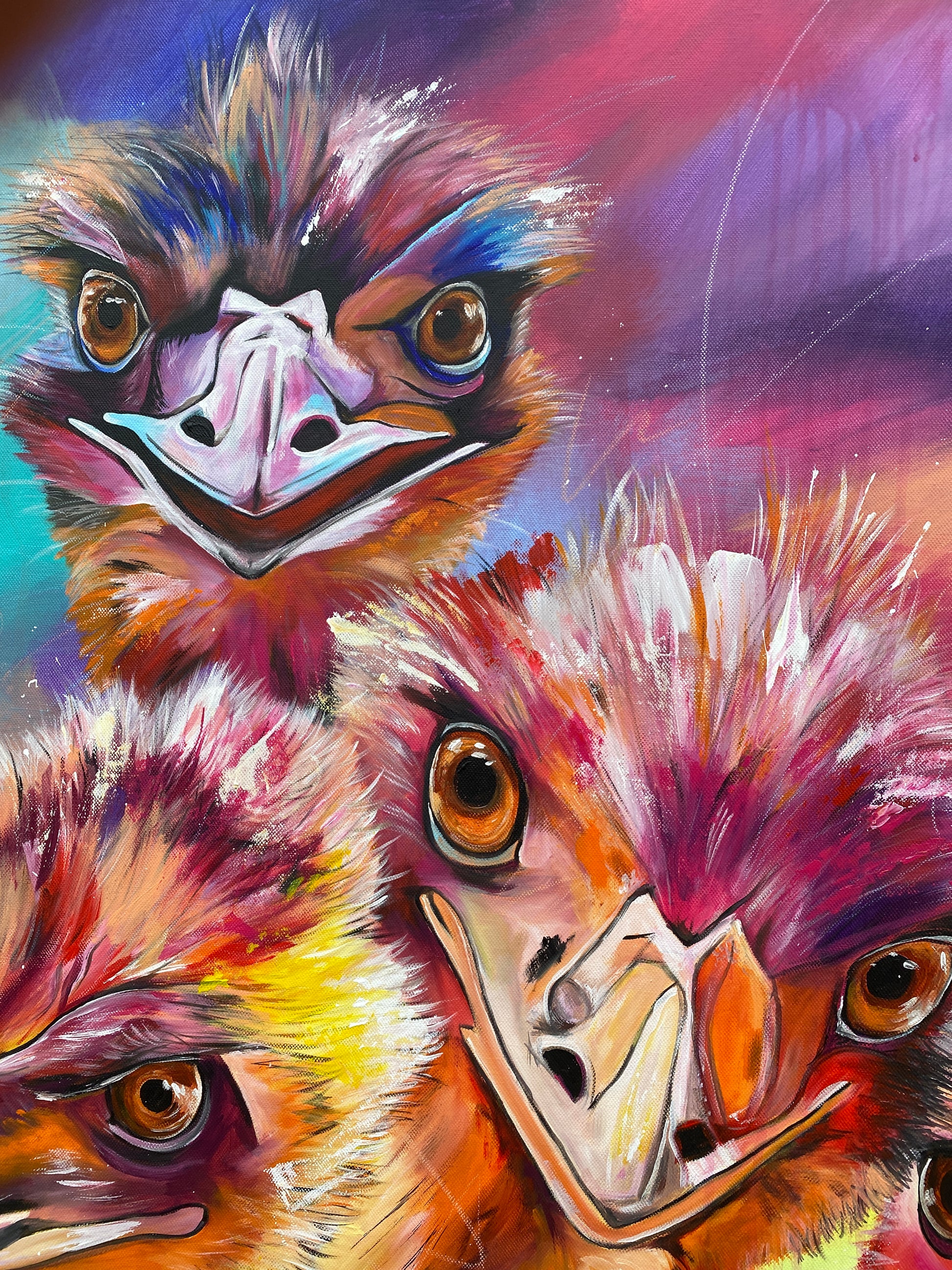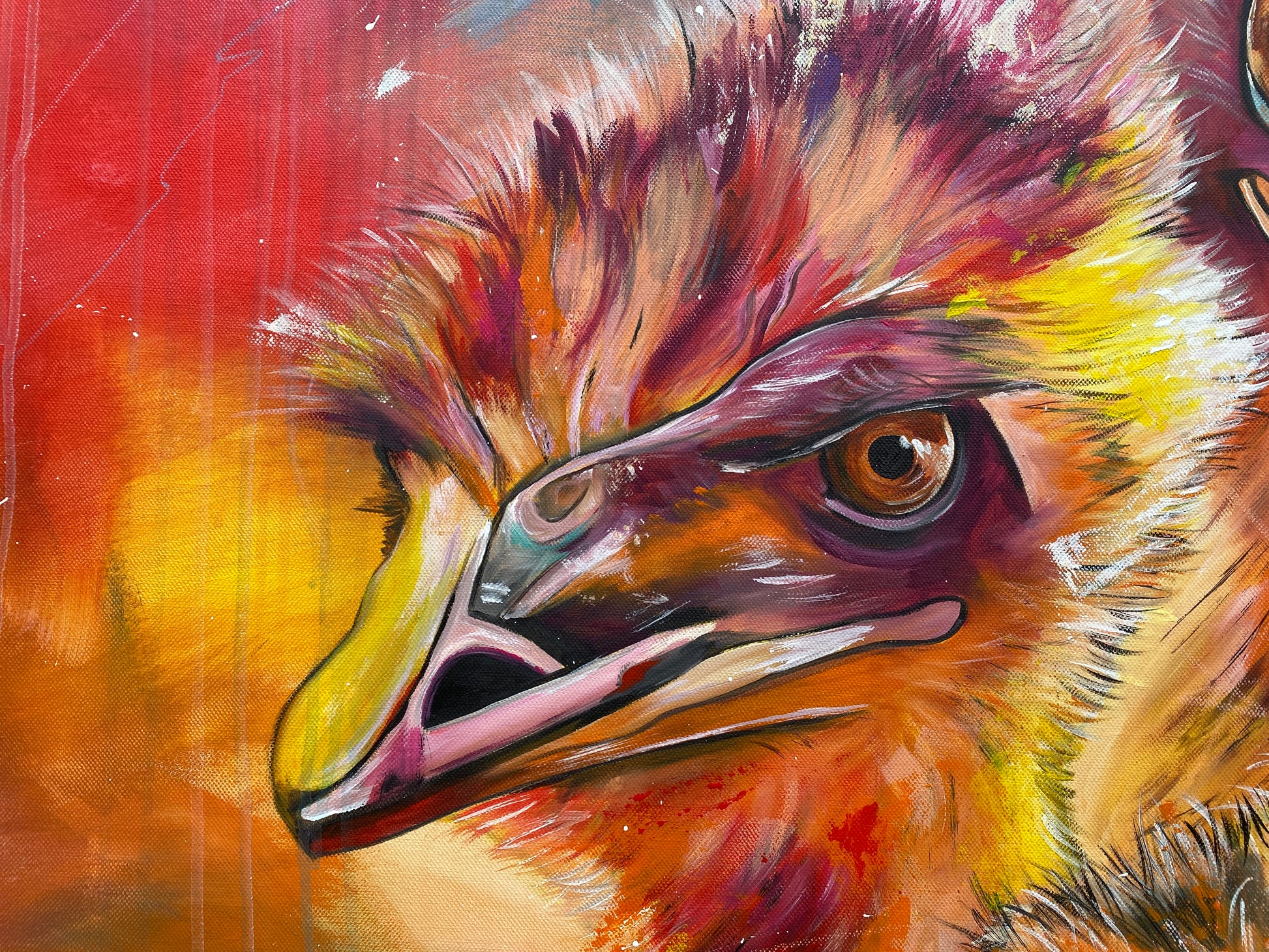 The greater emu is between 1.6 and 1.9 meters tall and flightless. Its legs are very powerful, allowing it to run quickly.