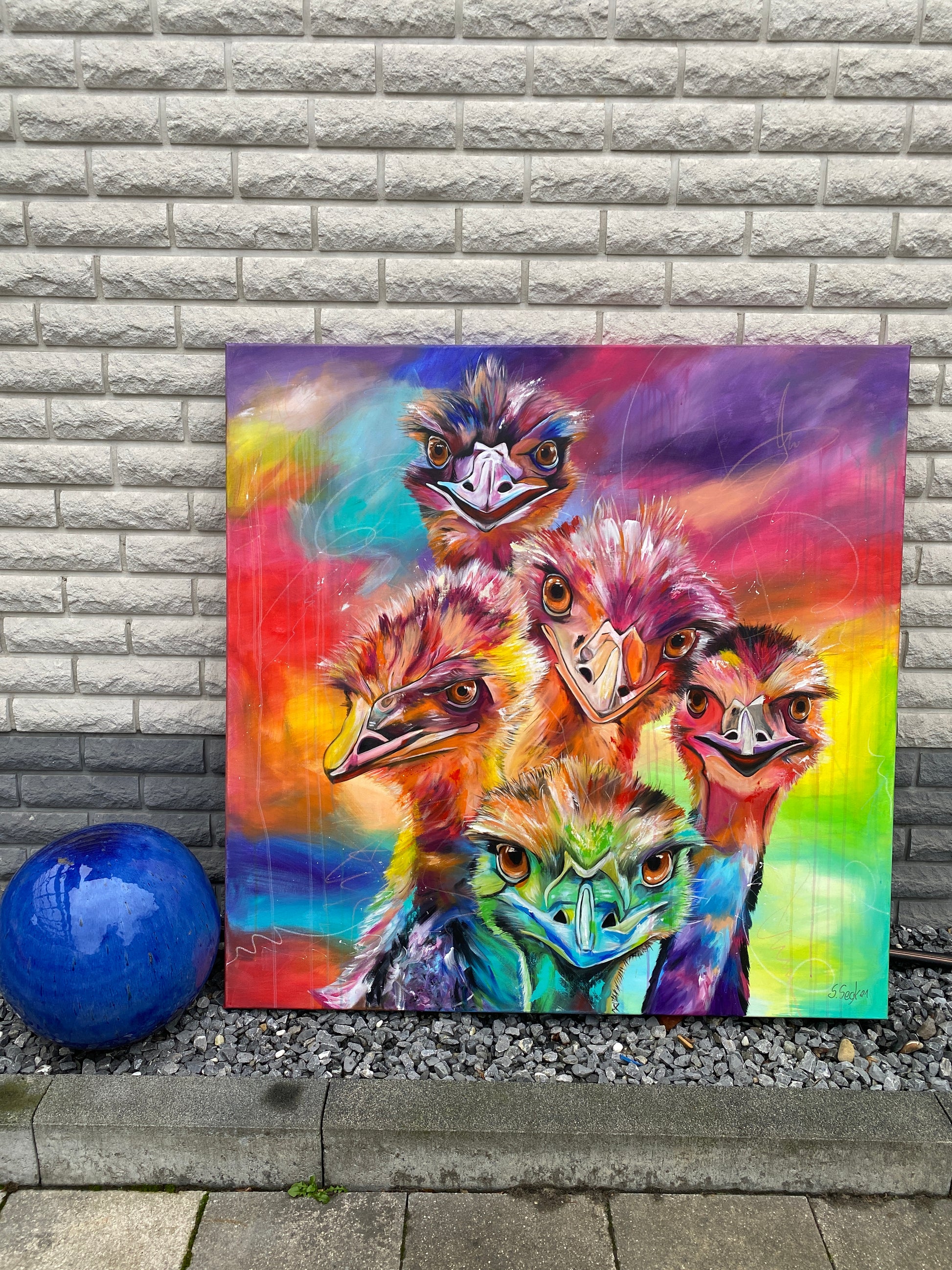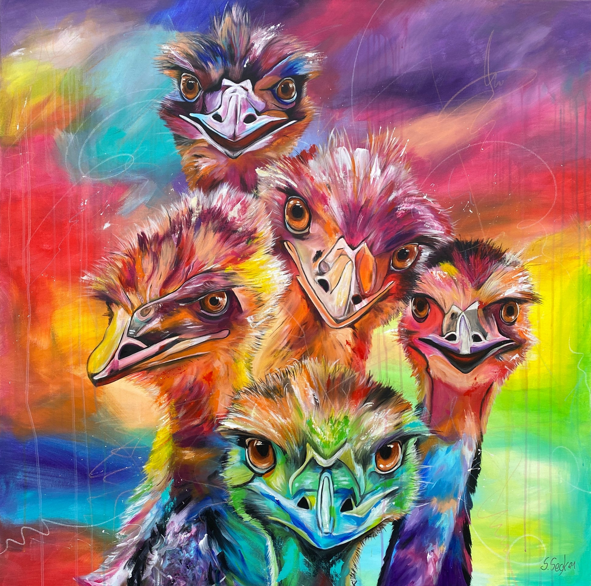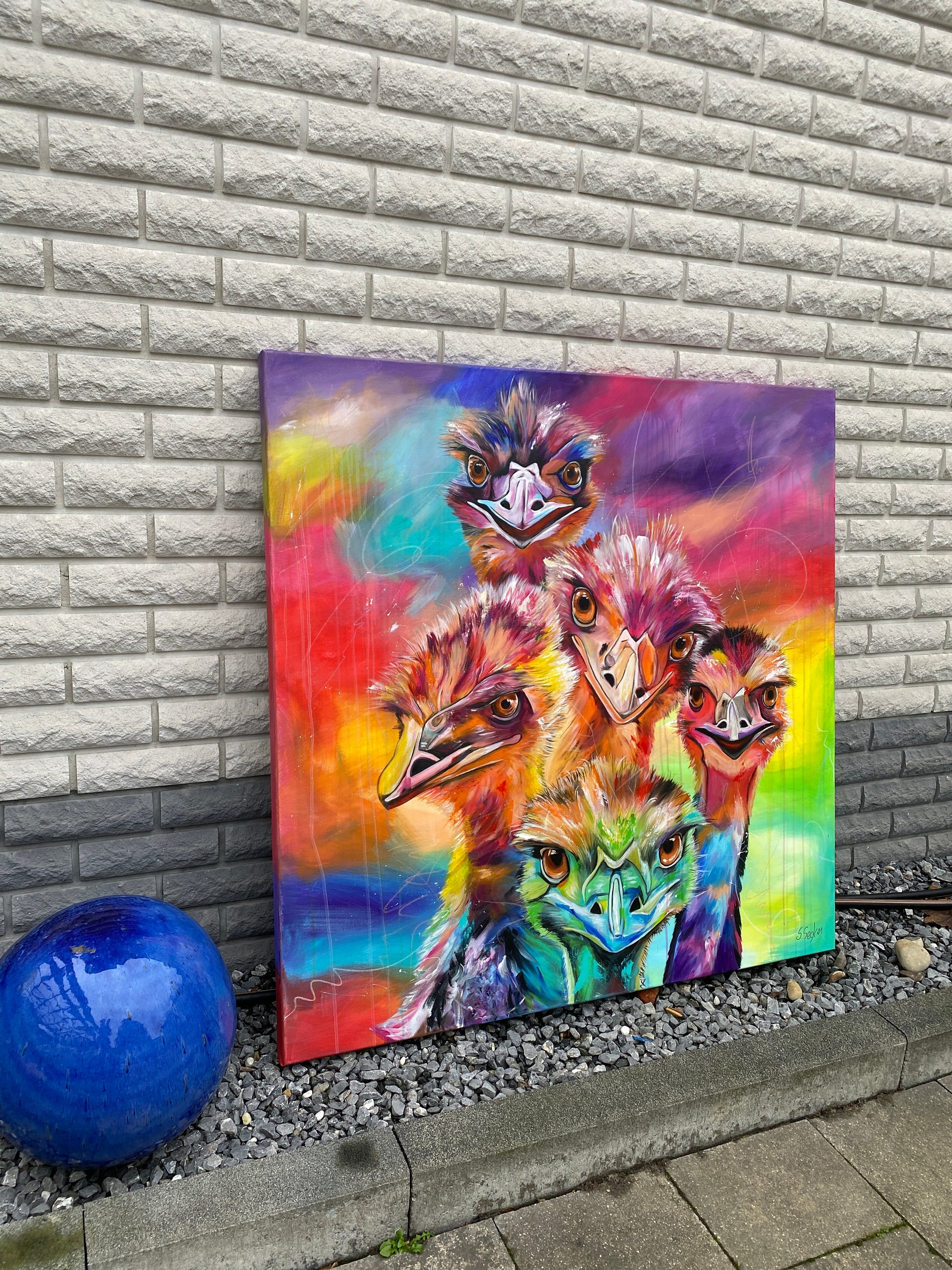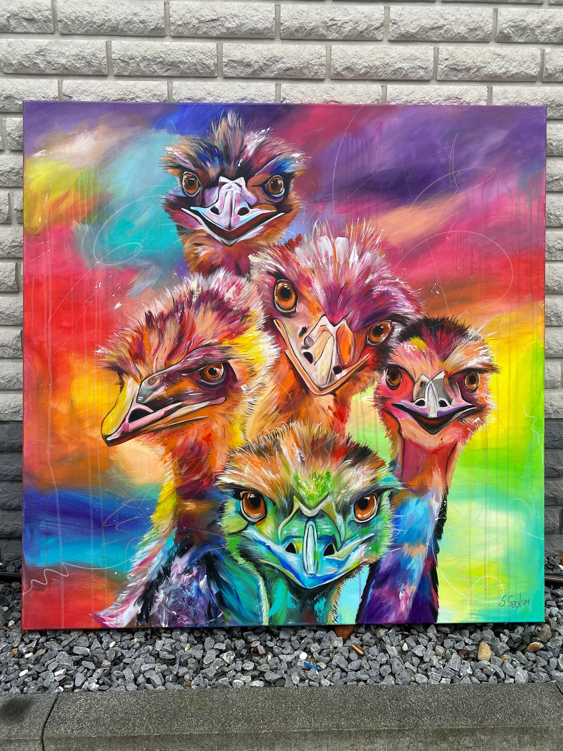 The greater emu is between 1.6 and 1.9 meters tall and flightless. Its legs are very powerful, allowing it to run quickly.