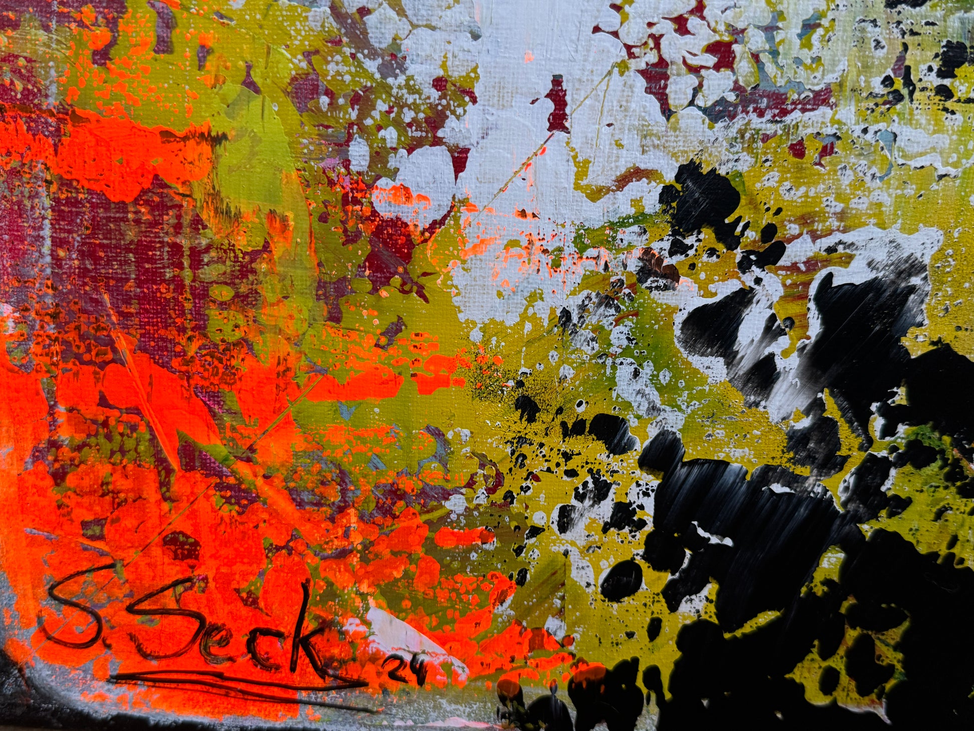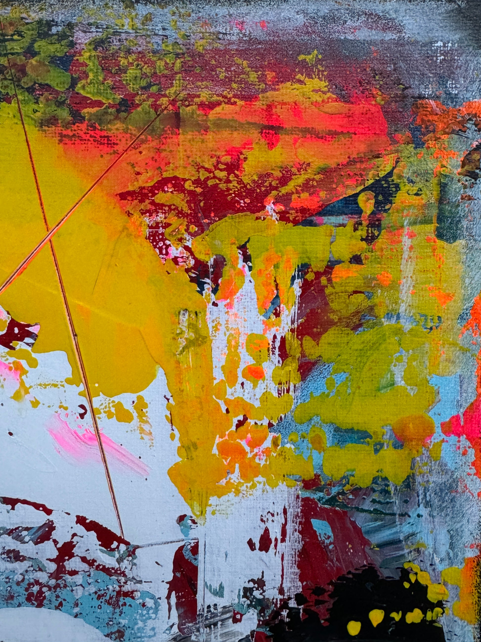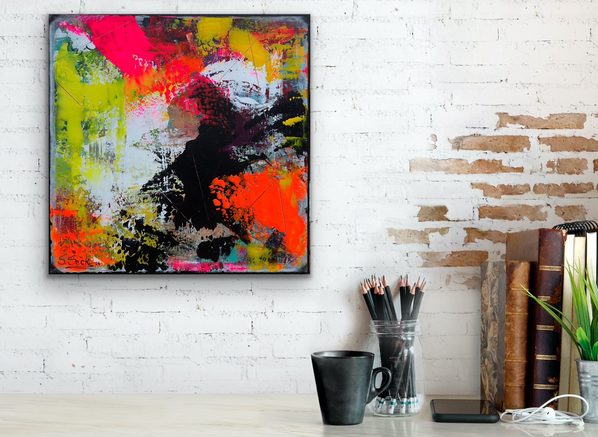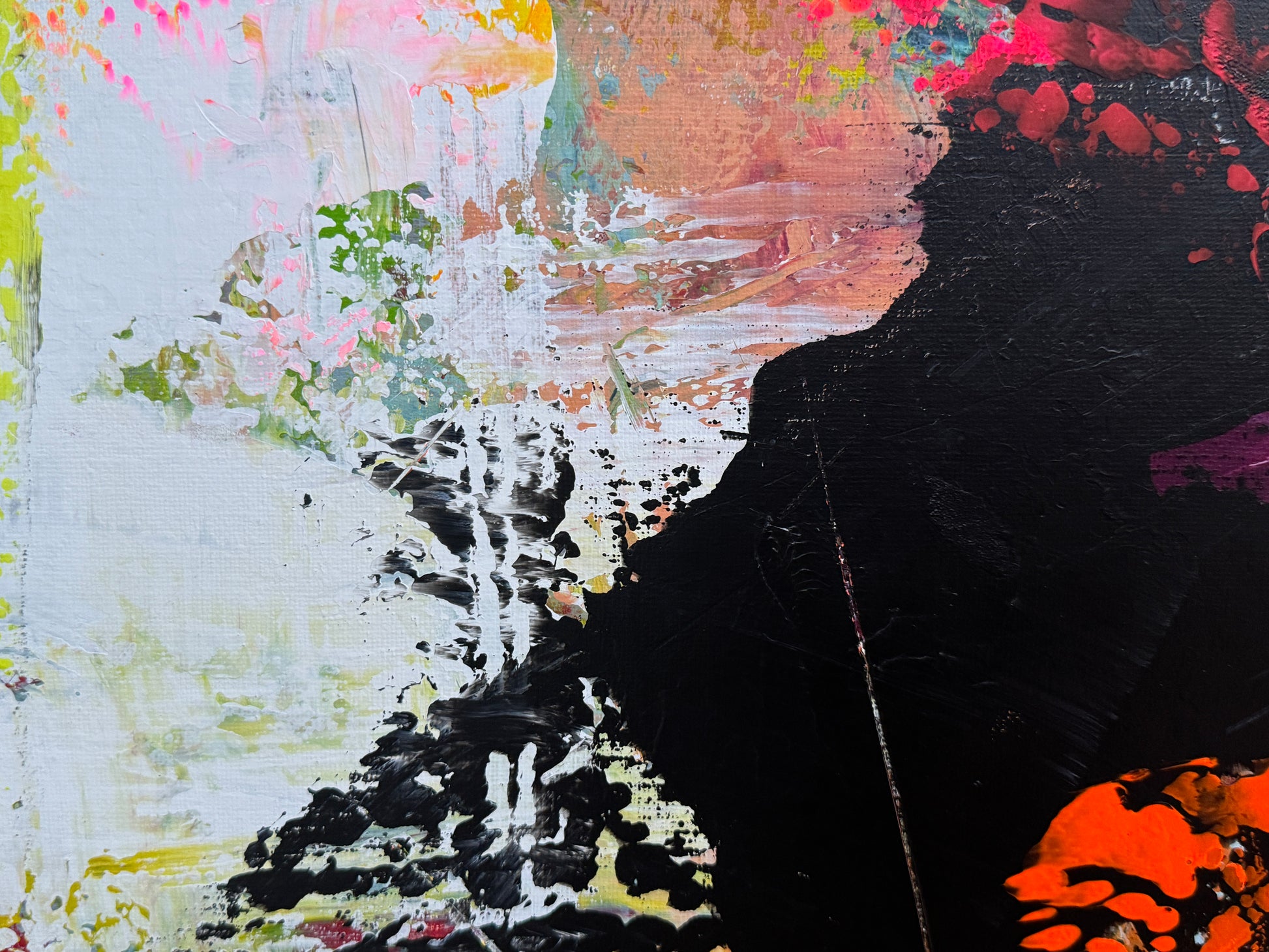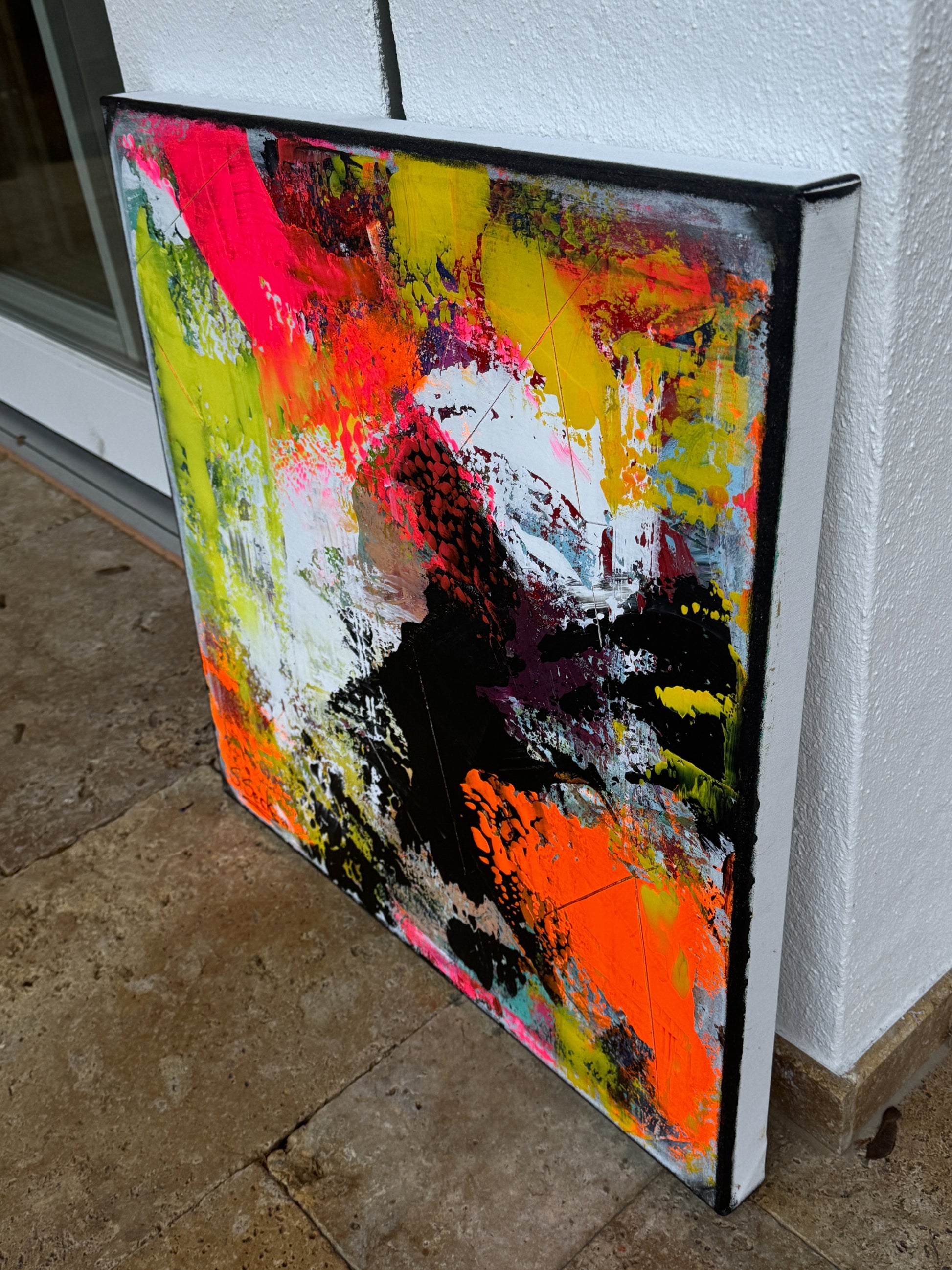 In this expressive acrylic painting, I blend vibrant colors with dynamic movements to create a powerful emotional impact. The work plays with the idea of light and darkness, the past and the possibility of a new beginning. The luminous yellows, reds, and oranges contrast with deep blacks and whites, inviting the viewer to reflect on their own emotions and thoughts. This painting brings energy and inspiration. into every home.