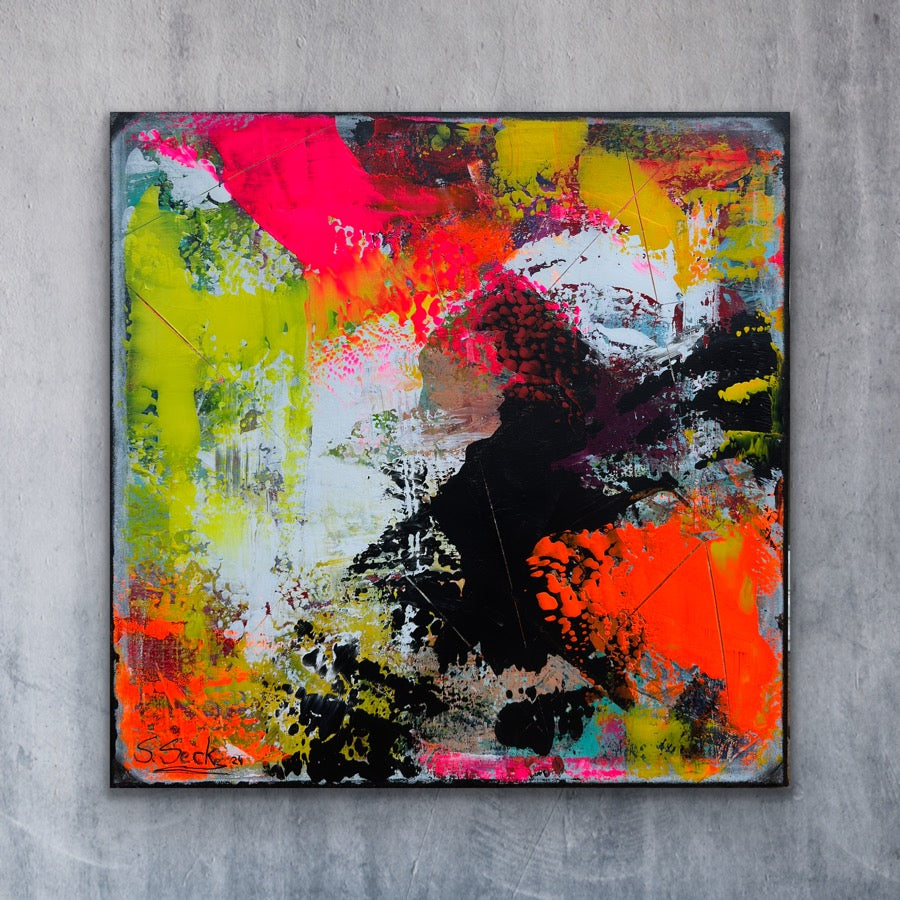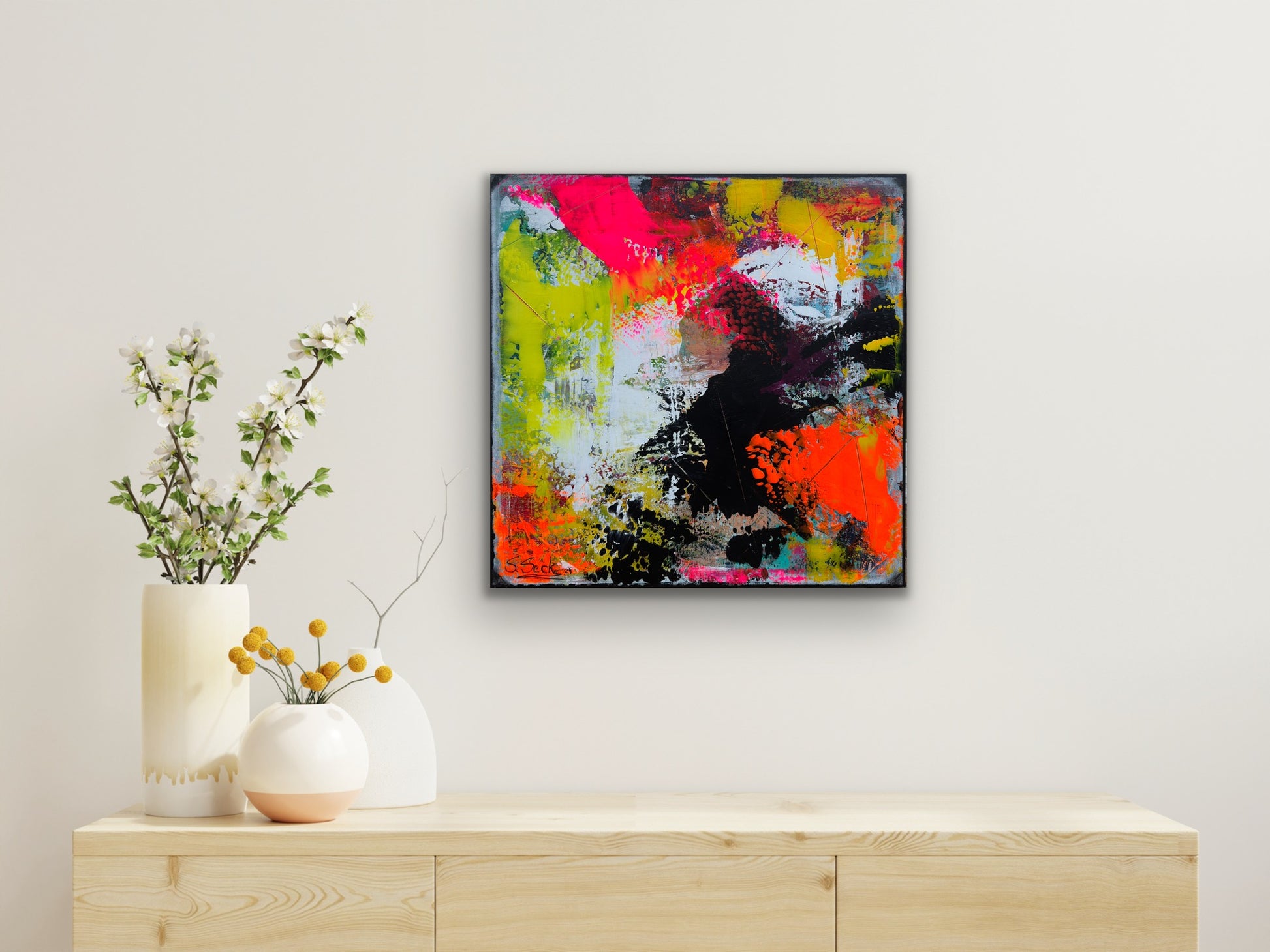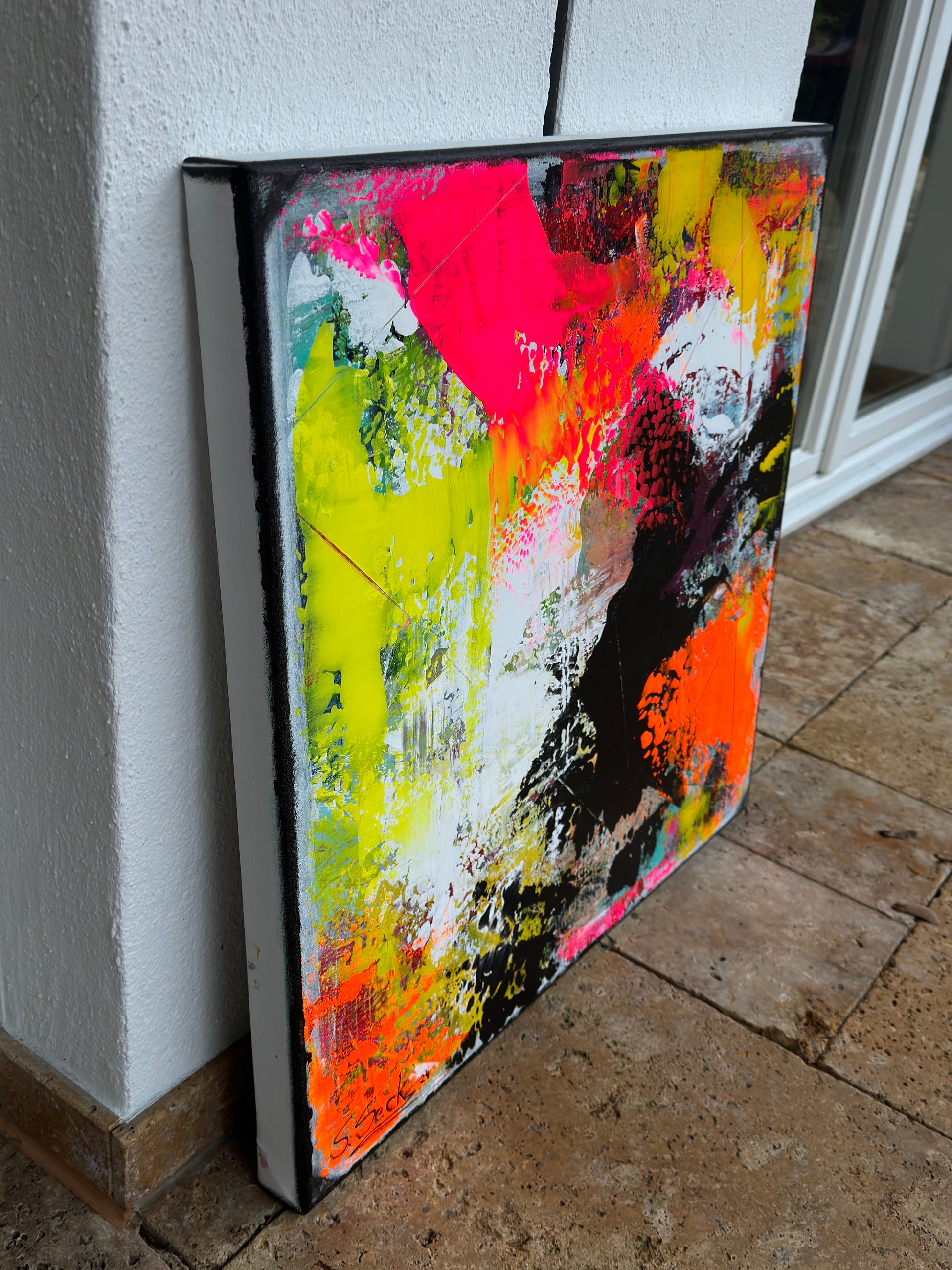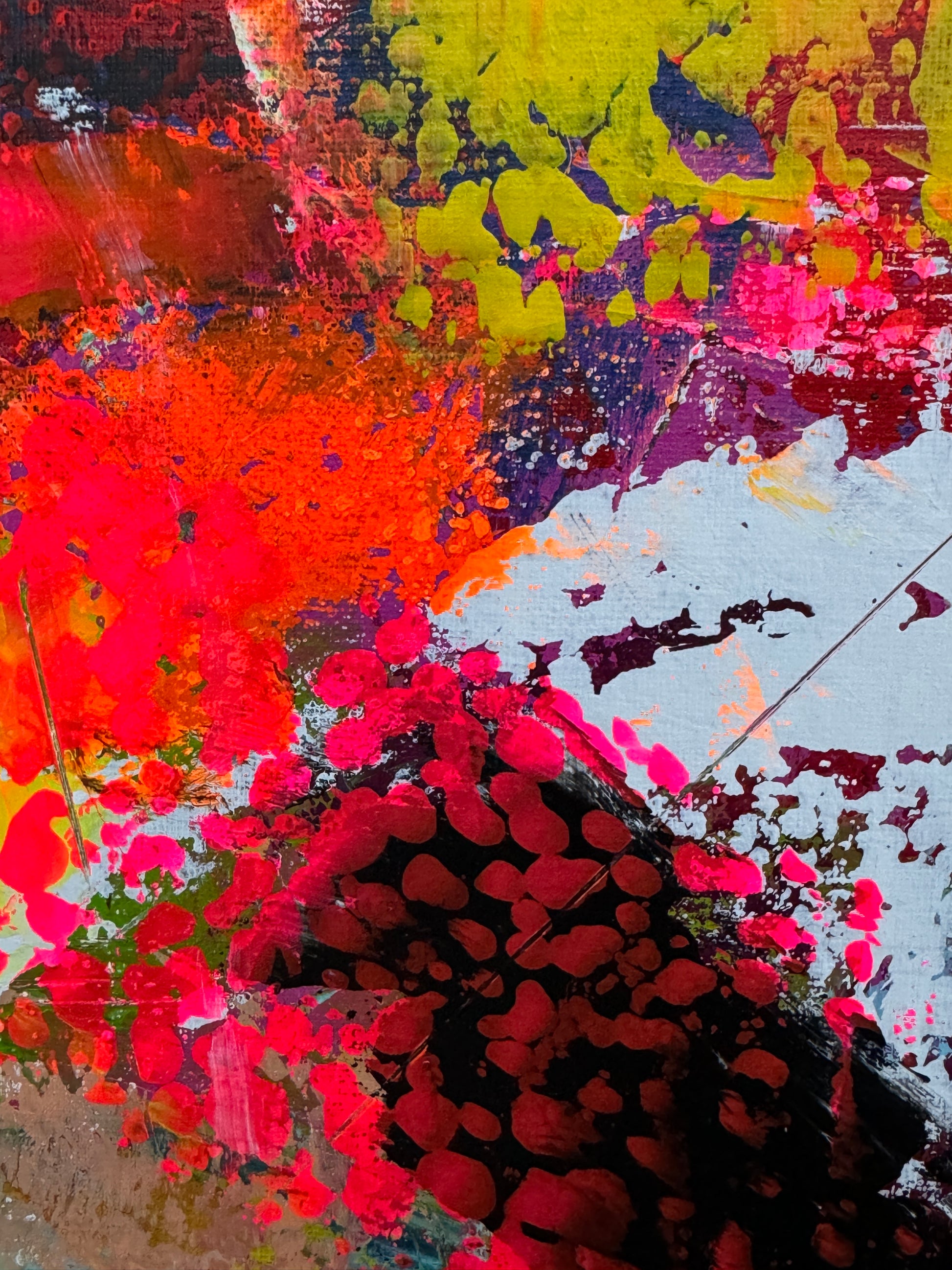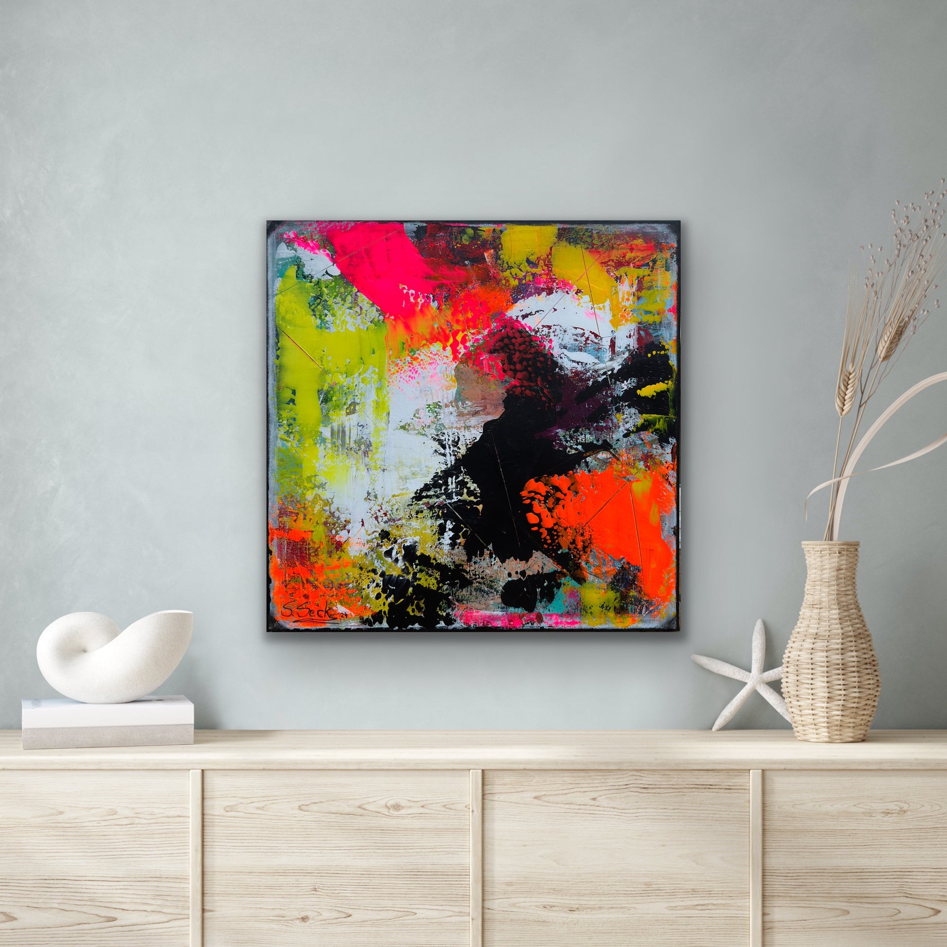 In this expressive acrylic painting, I blend vibrant colors with dynamic movements to create a powerful emotional impact. The work plays with the idea of light and darkness, the past and the possibility of a new beginning. The luminous yellows, reds, and oranges contrast with deep blacks and whites, inviting the viewer to reflect on their own emotions and thoughts. This painting brings energy and inspiration. into every home.