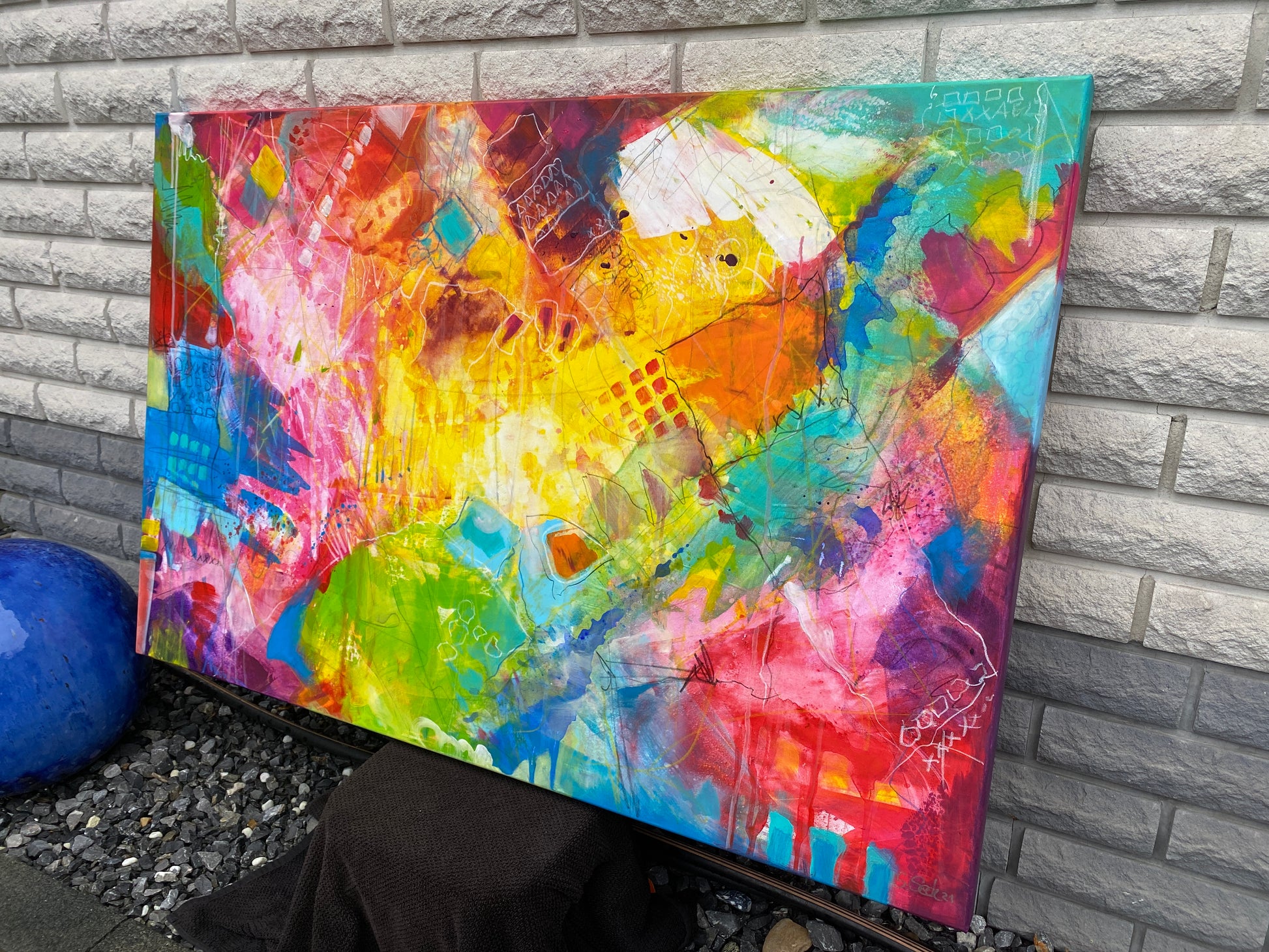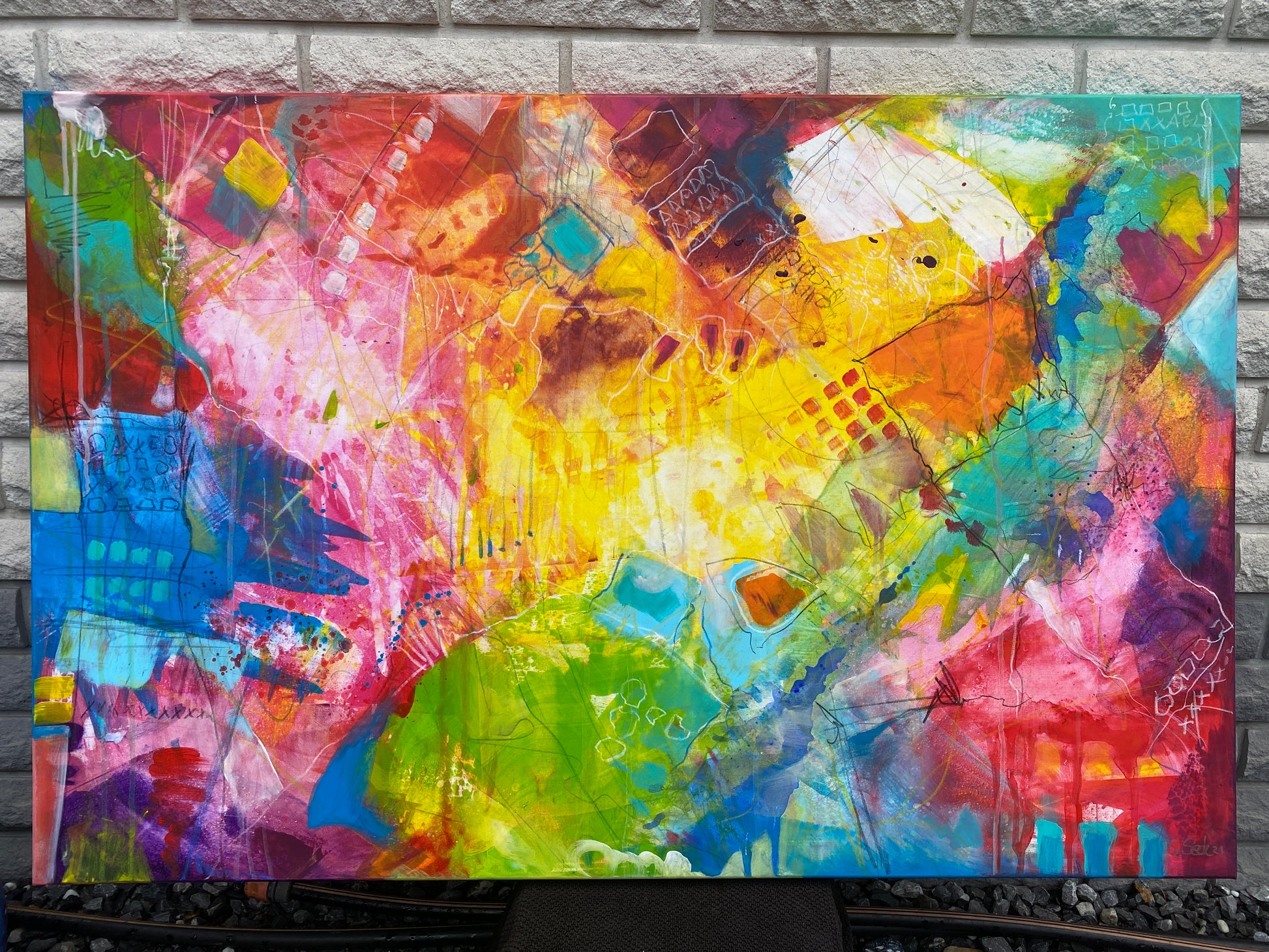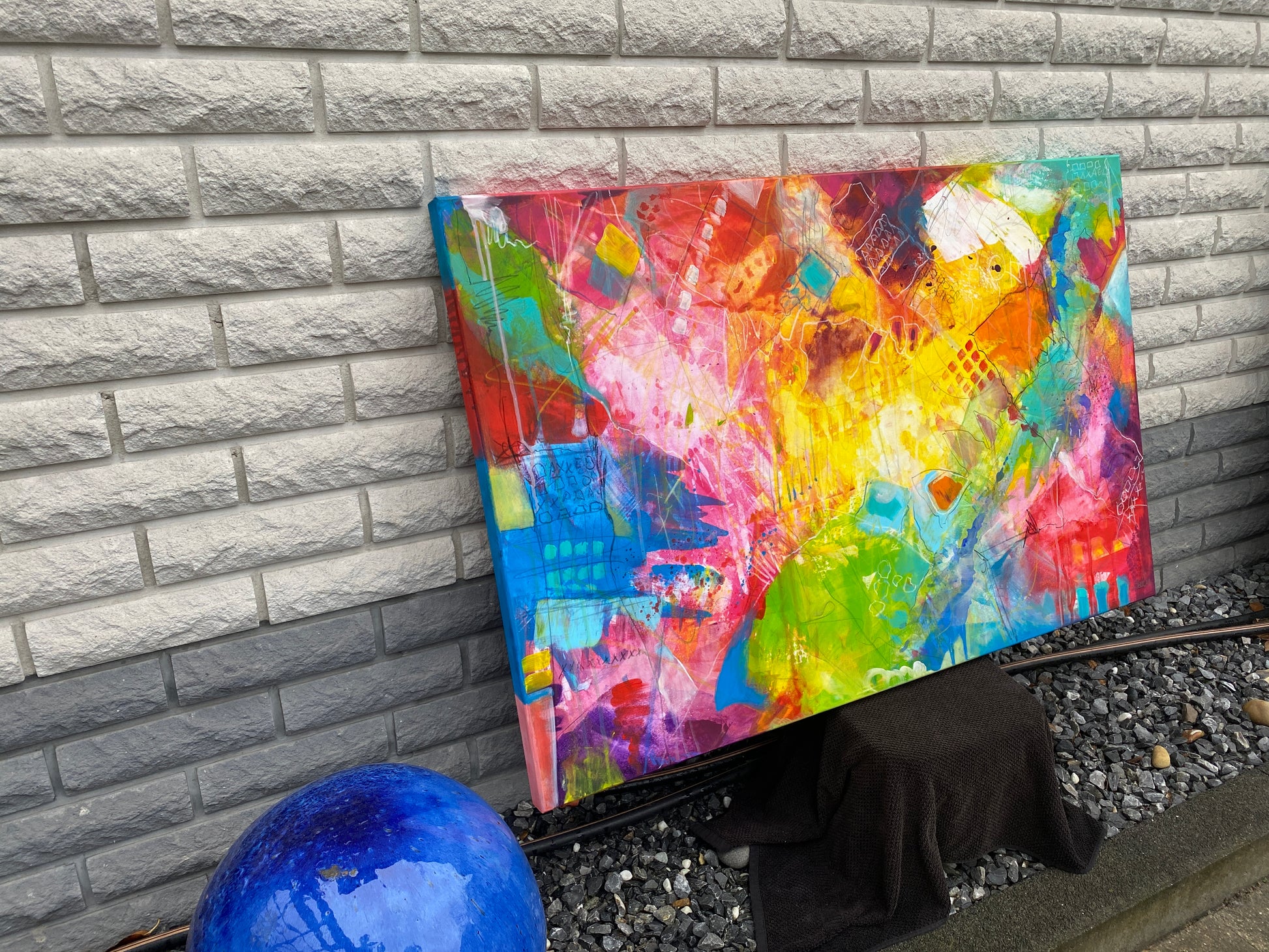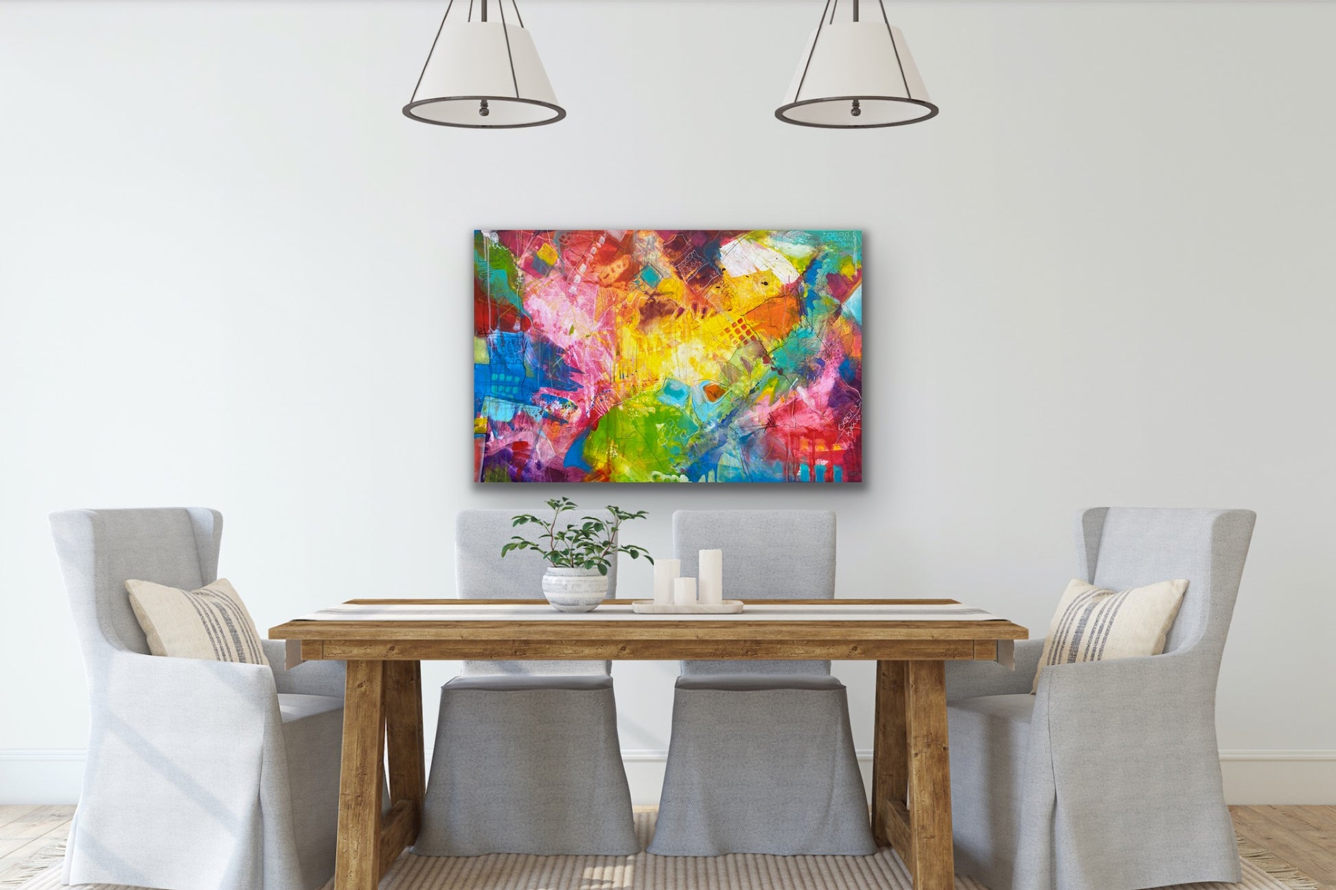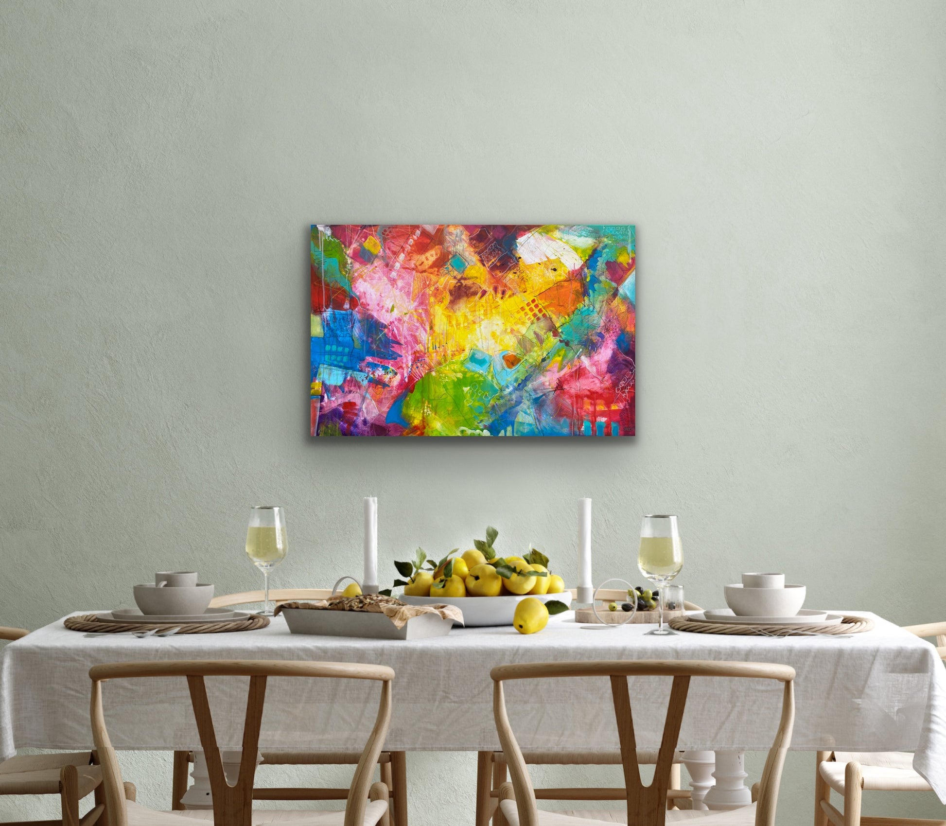 The sun is shining, the lush green meadow is dotted with flowers, and the birds are singing. You can hear children playing, dogs barking, people talking or laughing. The air is filled with harmony and happiness. Everyone is enjoying the moment, the warm breeze, the scent of nature, which is ablaze with its most beautiful colors.