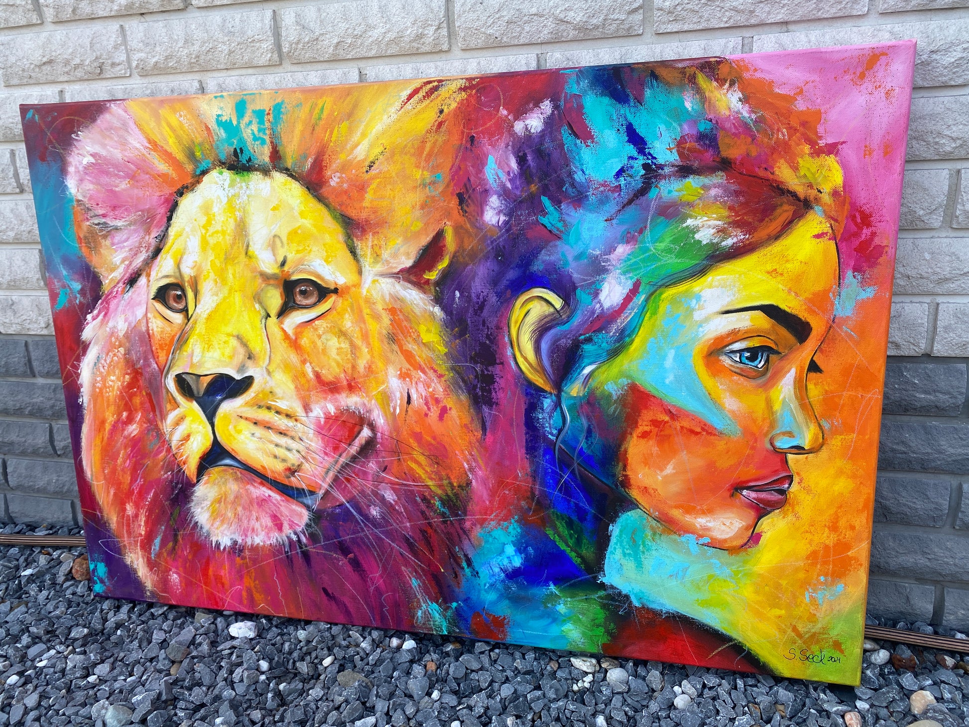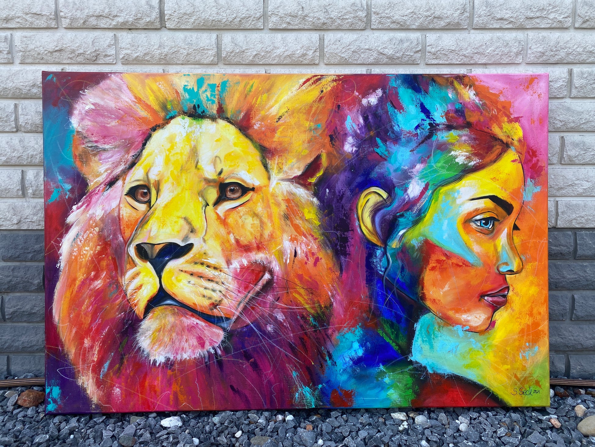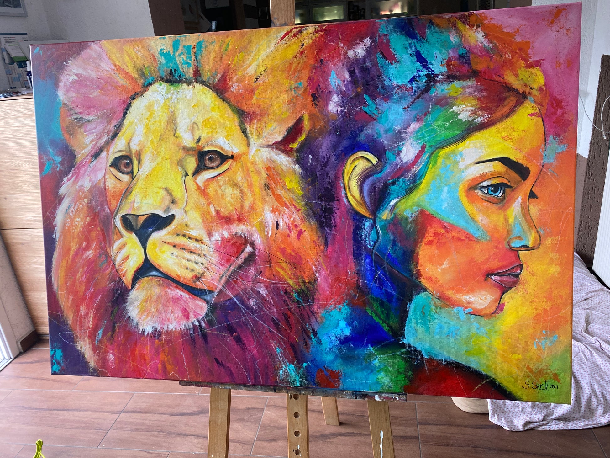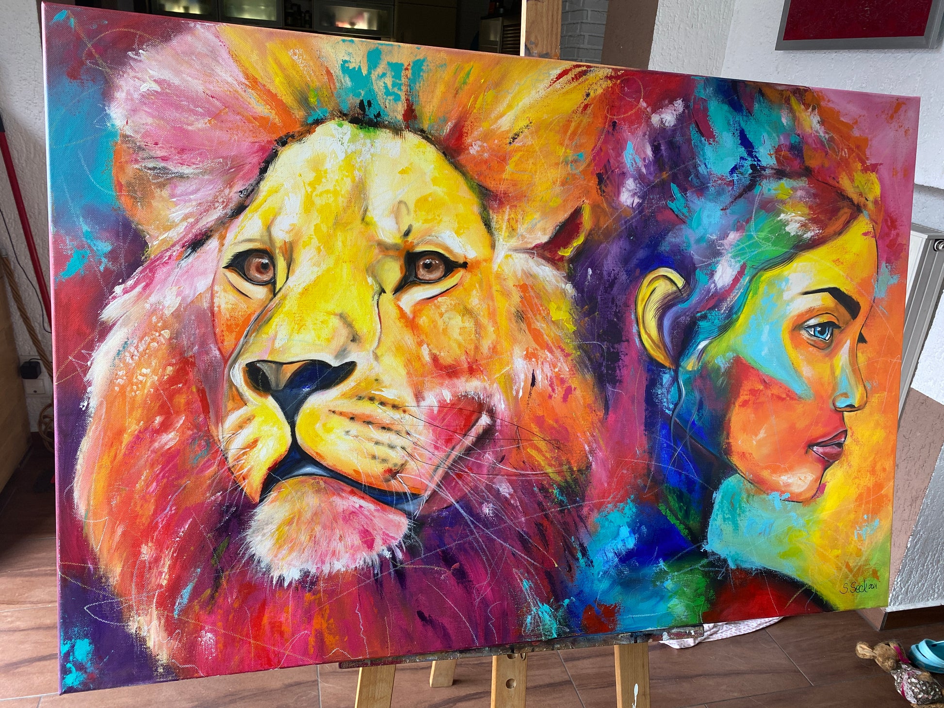 Die majestätische Erscheinung des Löwen, die zierliche und doch selbstbewusste Erscheinung von Lia, vereint zu einem Werk. Denn beide haben eins gemeinsam: Sie haben das Herz eines Kämpfers bzw. Kämpferin.