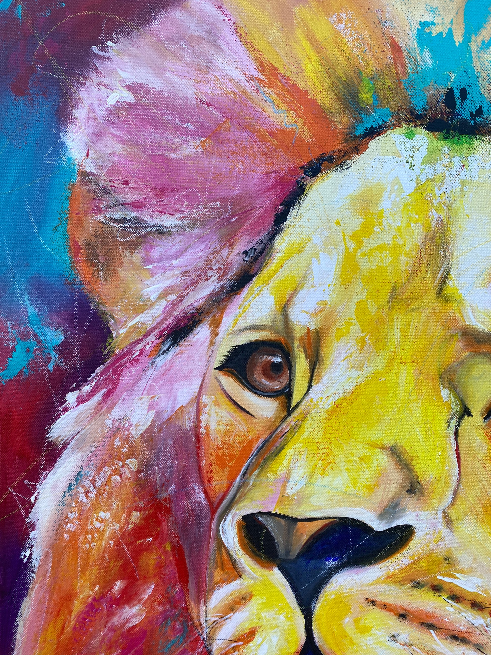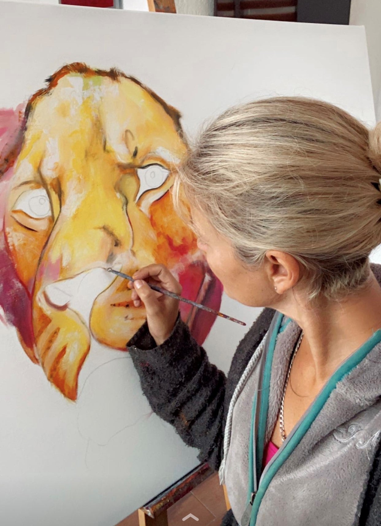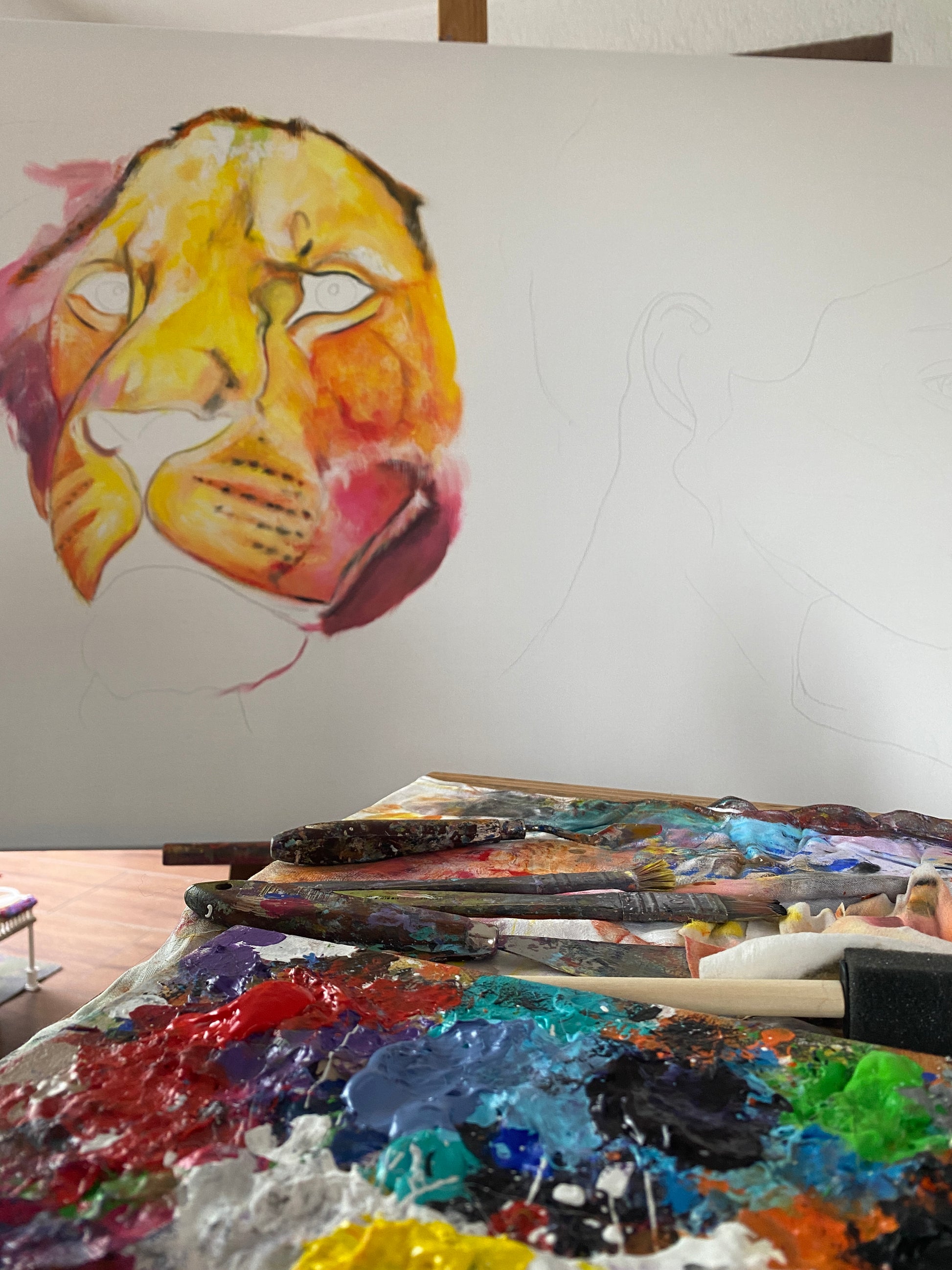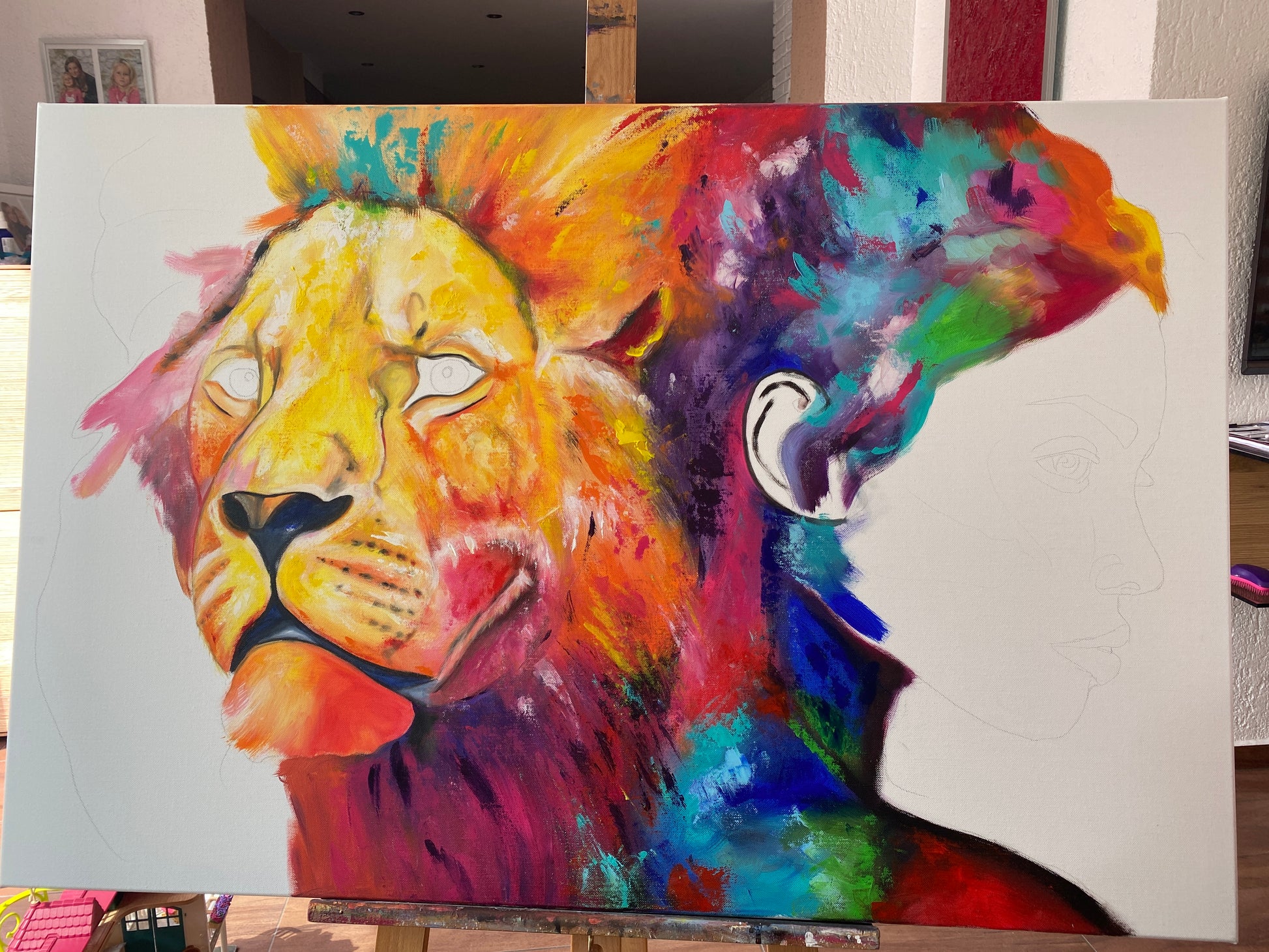 Die majestätische Erscheinung des Löwen, die zierliche und doch selbstbewusste Erscheinung von Lia, vereint zu einem Werk. Denn beide haben eins gemeinsam: Sie haben das Herz eines Kämpfers bzw. Kämpferin.