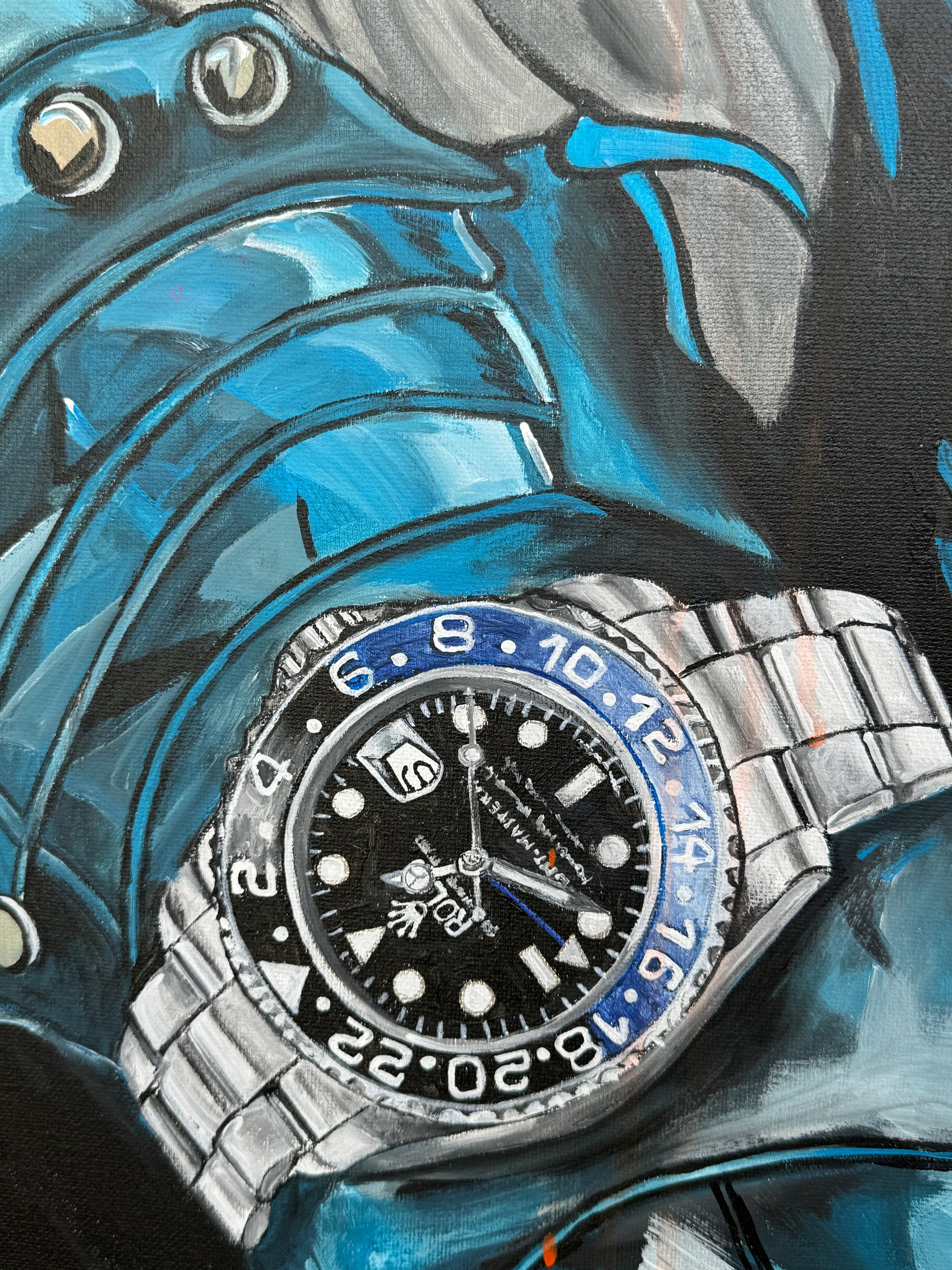 In meiner Arbeit wollte ich Kraft, Entschlossenheit und die düstere Aura von Batman einfangen, eingebettet in das lebendige Feuer eines Hintergrunds, der die Intensität der Comicwelt widerspiegelt. Die gleichnamige Uhr soll das Kunstwerk komplementieren. Die Verwendung von Acryl ermöglicht scharfe Kontraste und tiefe Farbsättigung, die das dramatische Flair und die pop-artistische Verve perfekt zur Geltung bringen. Dieses Bild wird in jedem Raum, in dem es hängt, ein kraftvolles Statement setzen und die Betrachter mit seiner energiegeladenen Präsenz faszinieren.