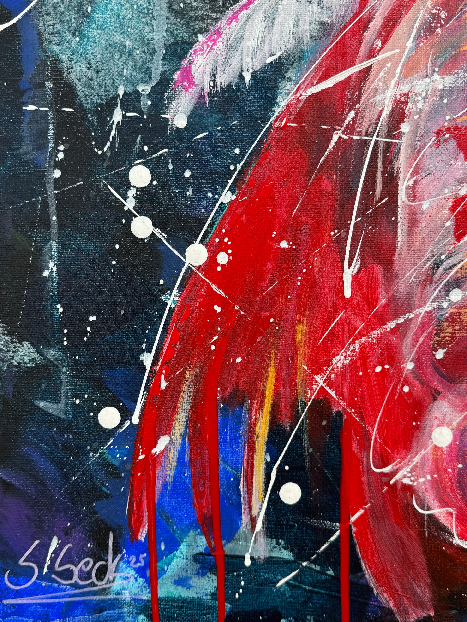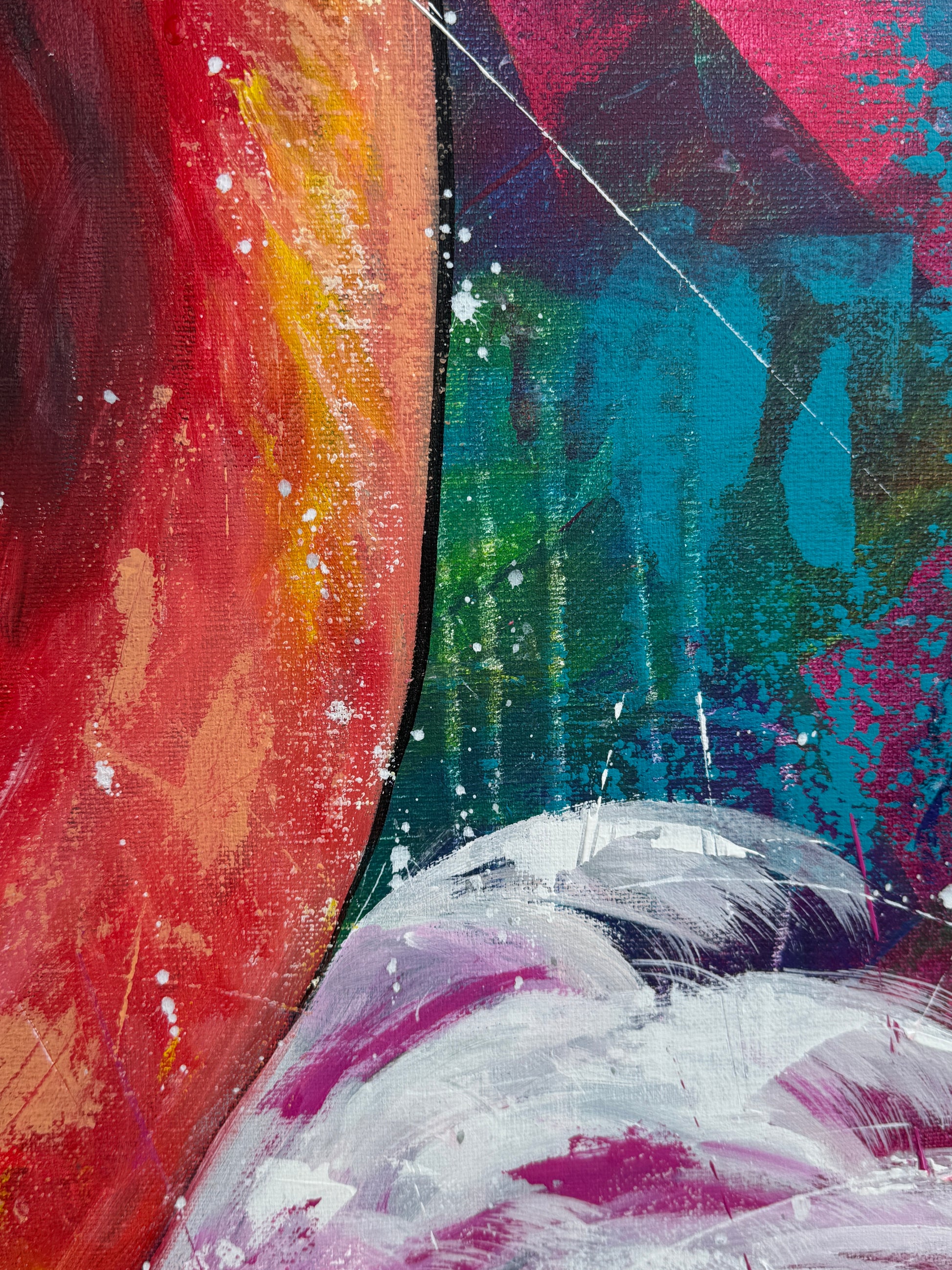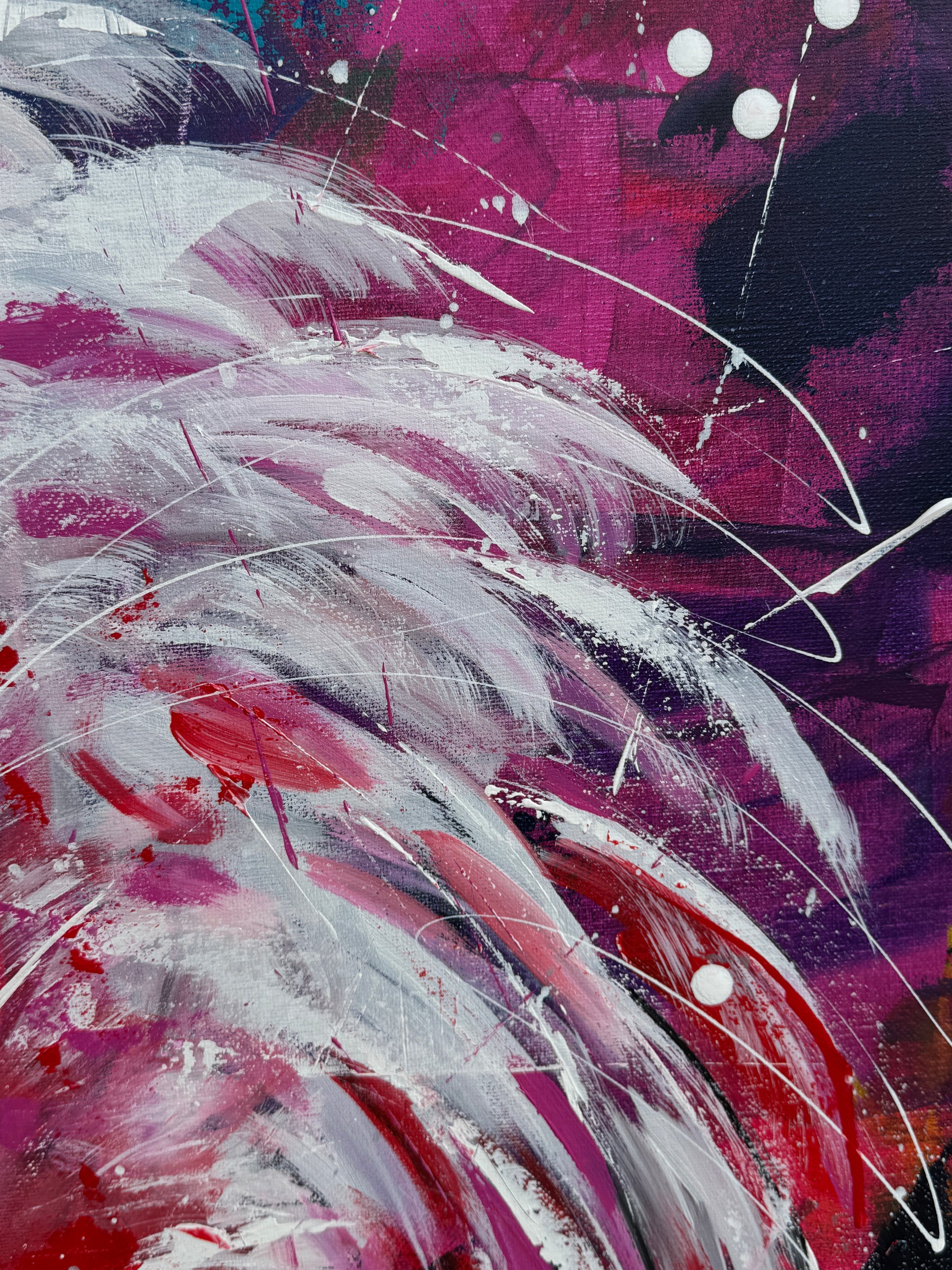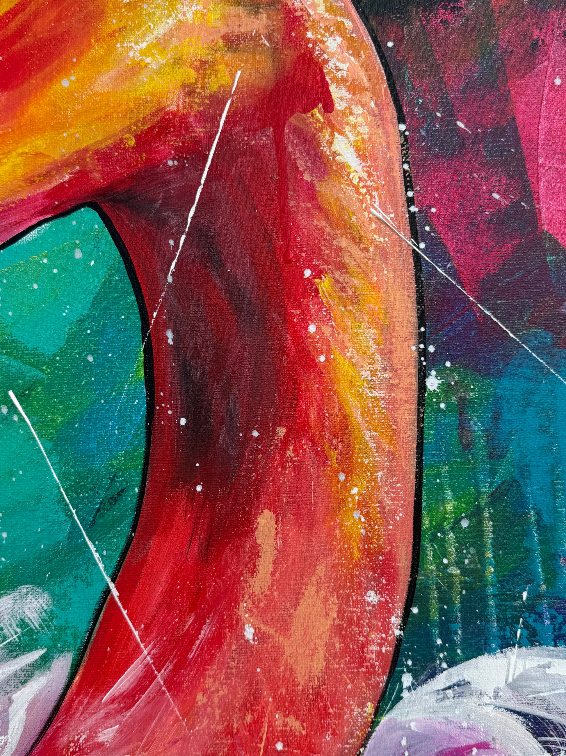 Jeder Pinselstrich spiegelt eine Mischung aus Expressionismus und Pop-Art wider, betont durch kräftige Farbexplosionen, die Lebensfreude und Charakterstärke symbolisieren. Dieses Kunstwerk strahlt Freude, Energie und Originalität aus, die jede Umgebung mit einem Hauch von Unverfrorenheit und einem kraftvollen Farbspektrum bereichert. Es ist eine Feier der Individualität und der lebendigen Natur.