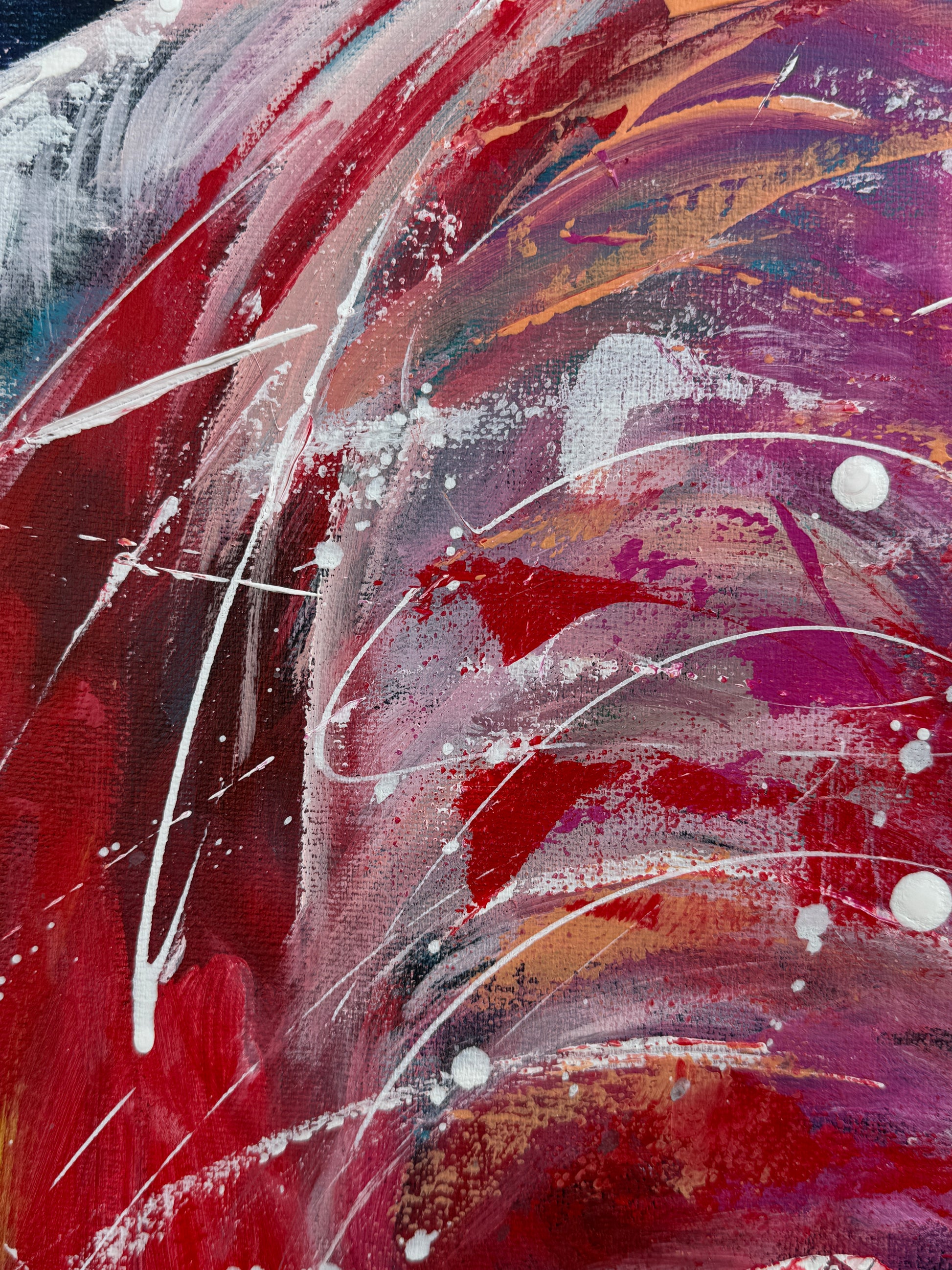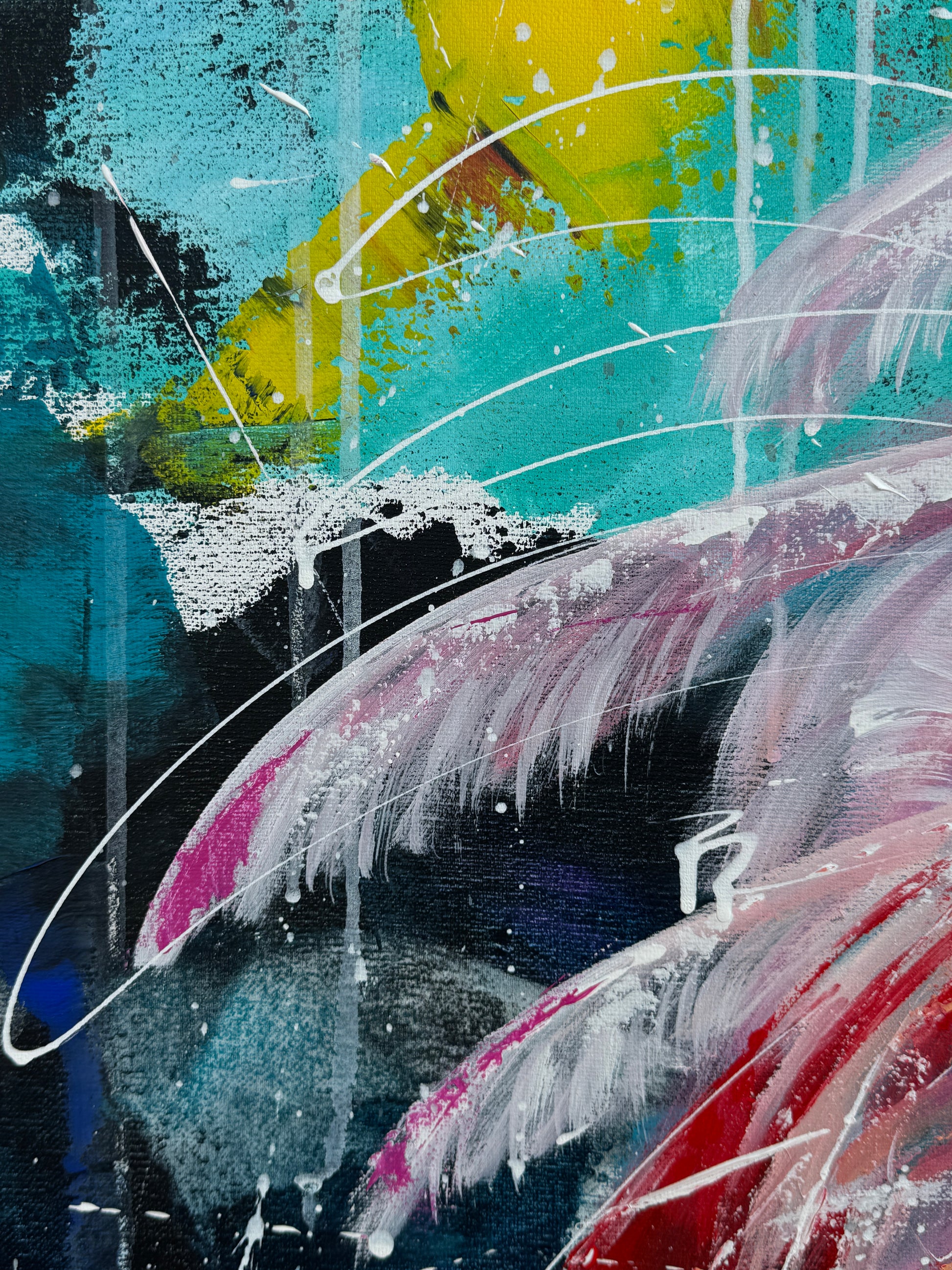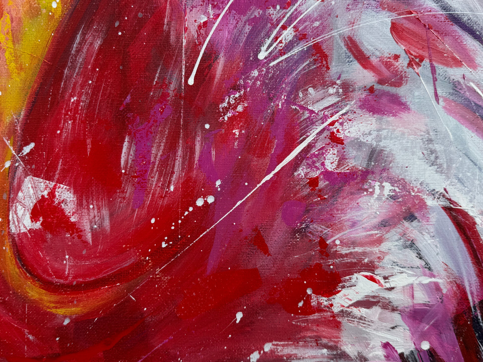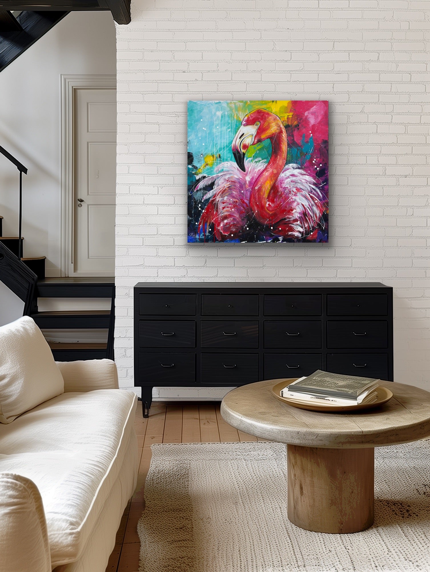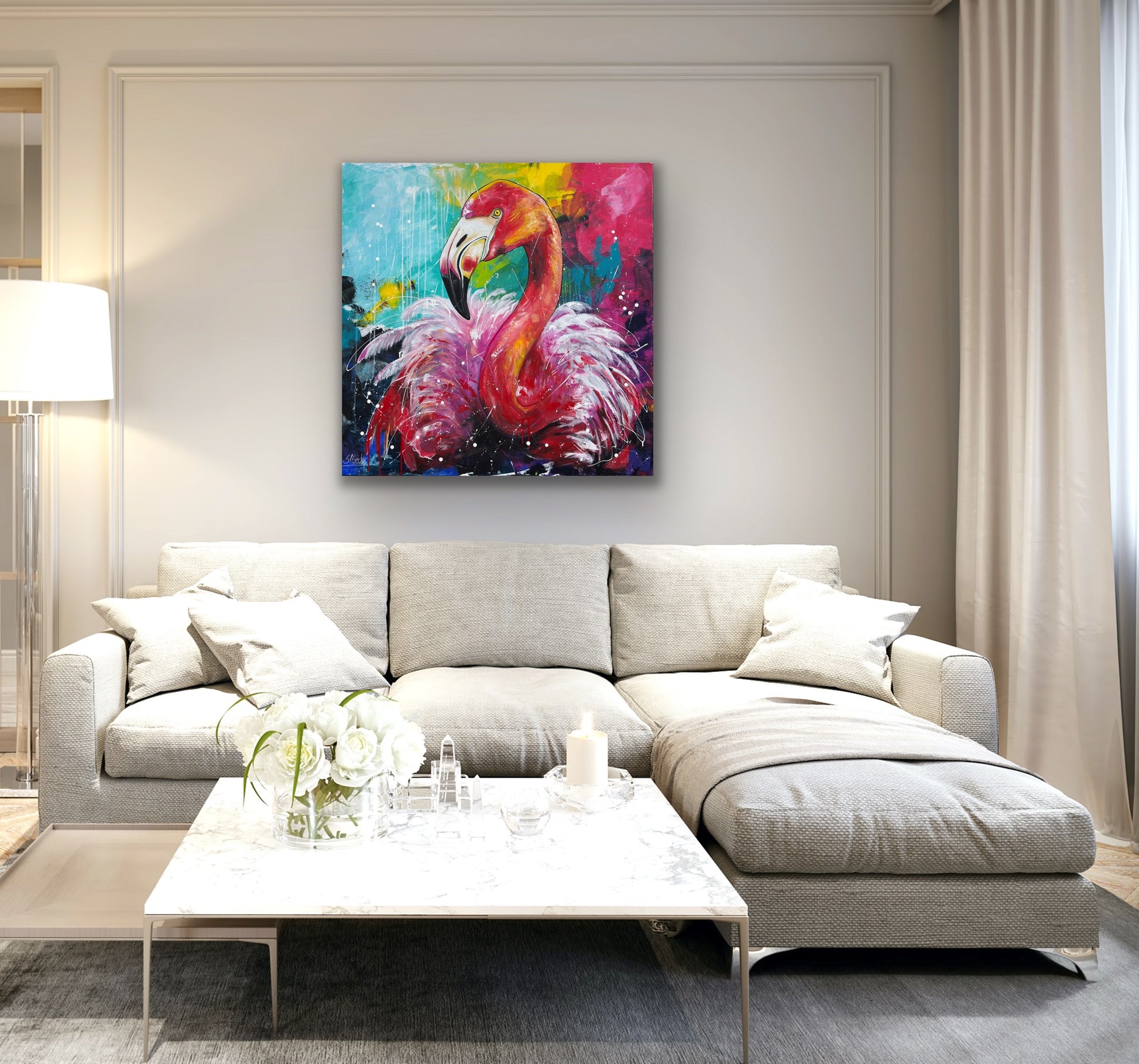 Jeder Pinselstrich spiegelt eine Mischung aus Expressionismus und Pop-Art wider, betont durch kräftige Farbexplosionen, die Lebensfreude und Charakterstärke symbolisieren. Dieses Kunstwerk strahlt Freude, Energie und Originalität aus, die jede Umgebung mit einem Hauch von Unverfrorenheit und einem kraftvollen Farbspektrum bereichert. Es ist eine Feier der Individualität und der lebendigen Natur.