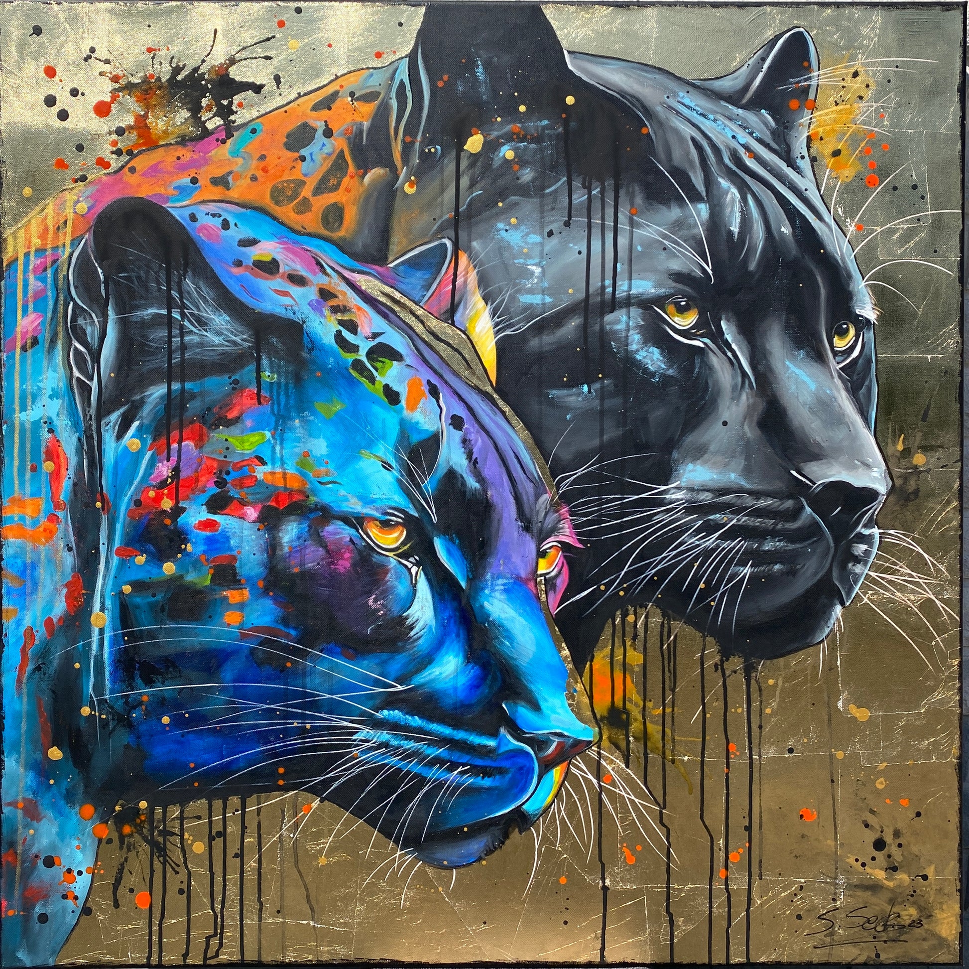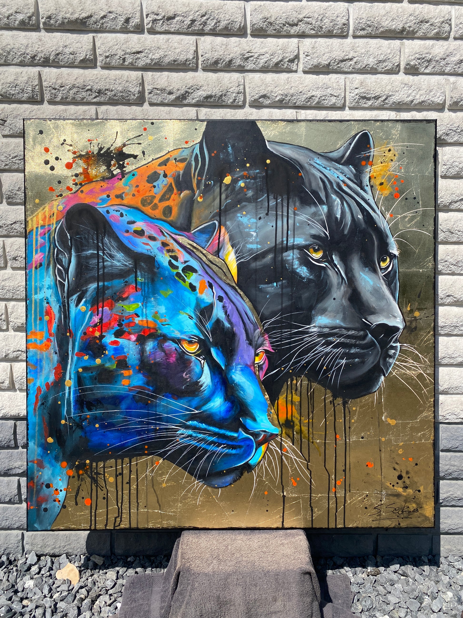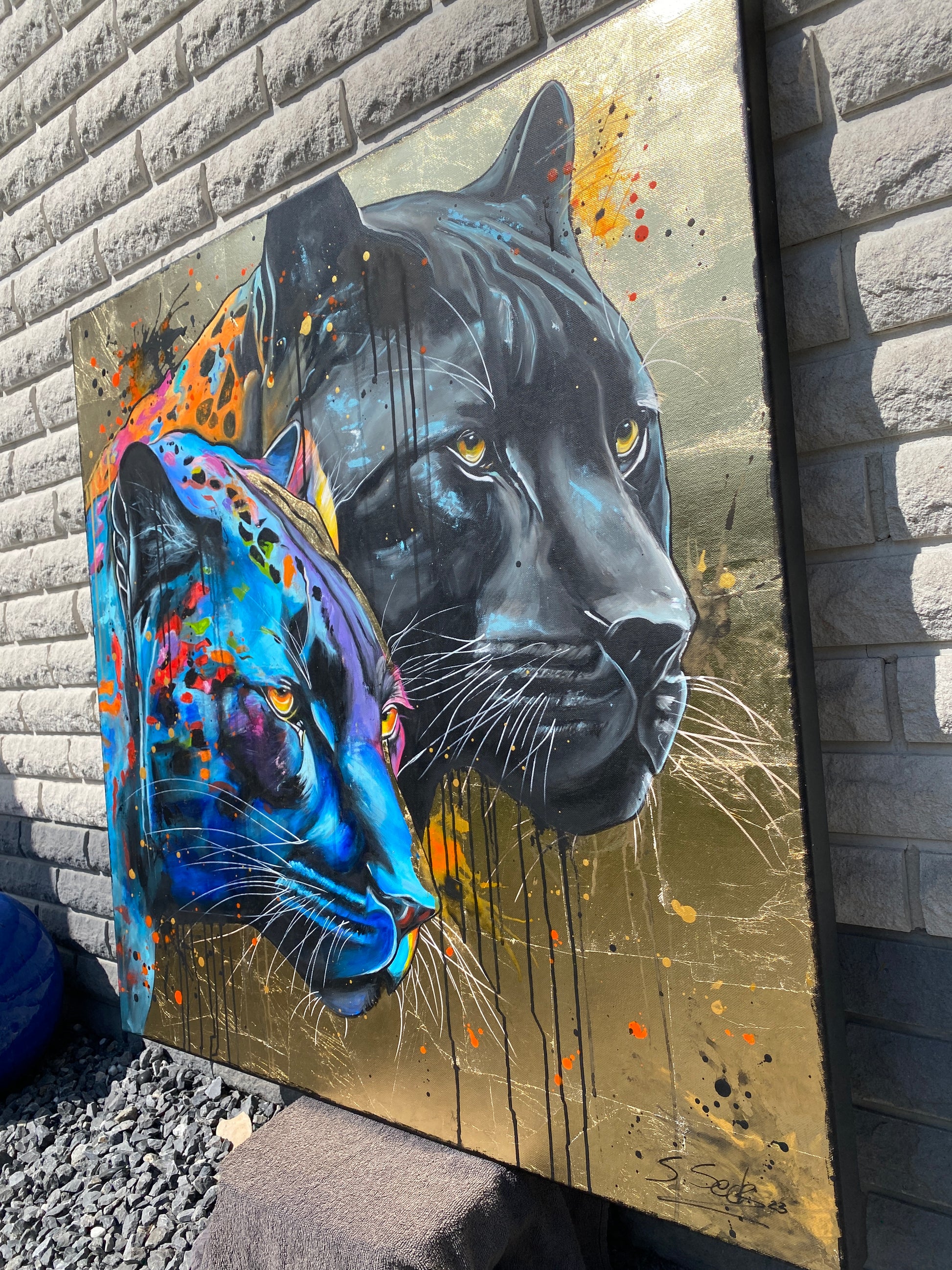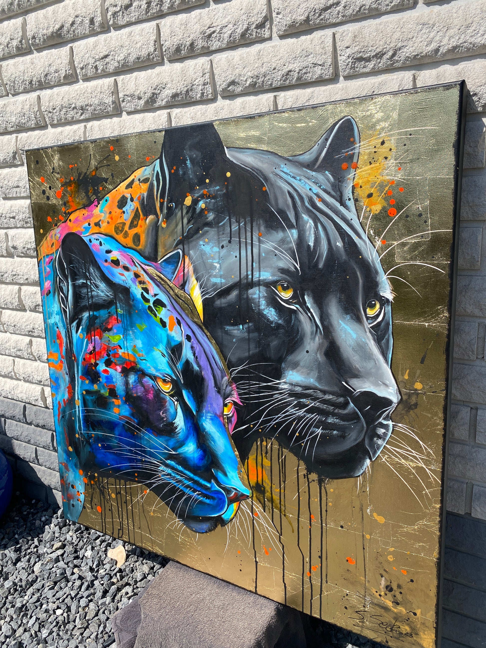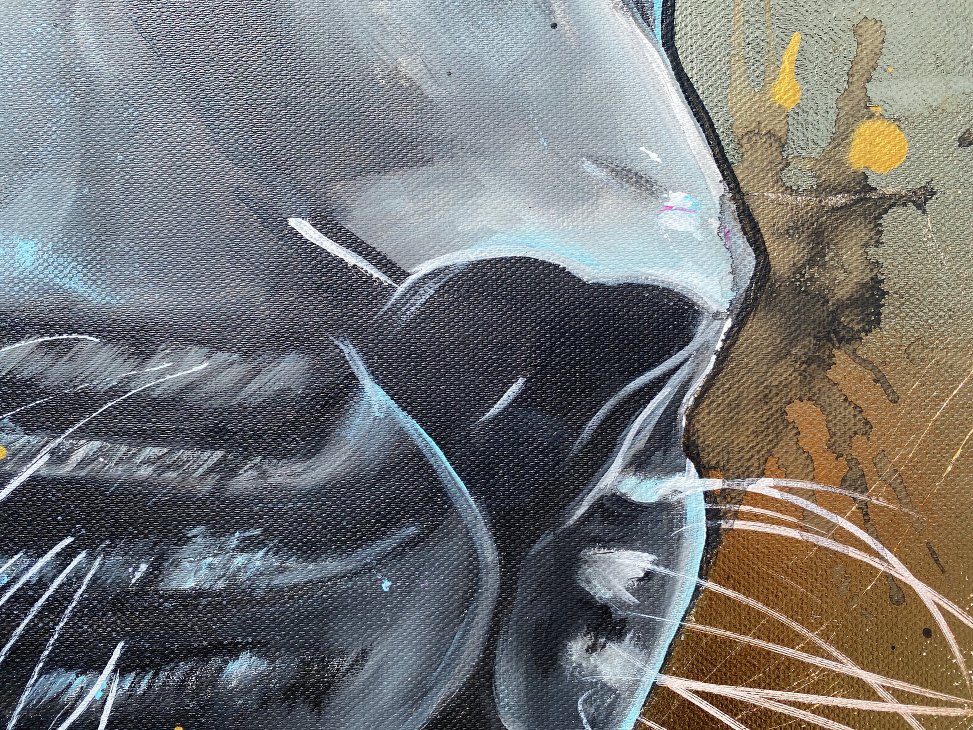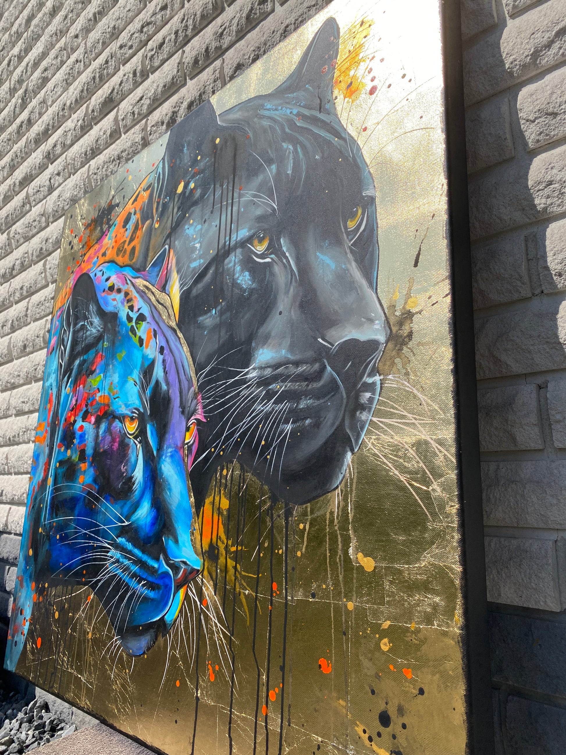 Das Werk wurde von der Künstlerin mit Acryl auf Leinwand gemalt. Der Hintergrund wurde mit Golden Leaf Metal veredelt. Das Werk wurde dann lackiert, um die Farben zu schützen.