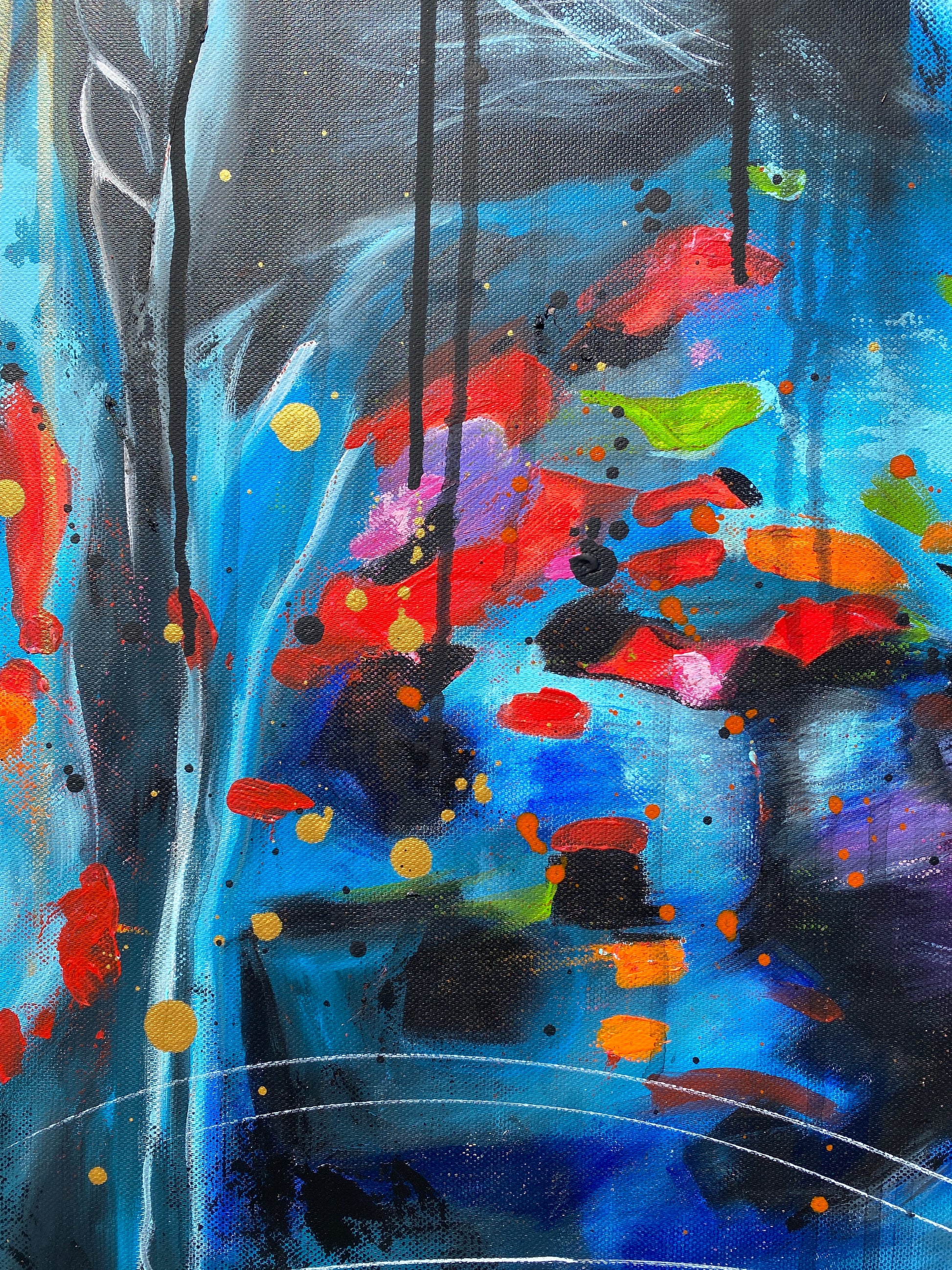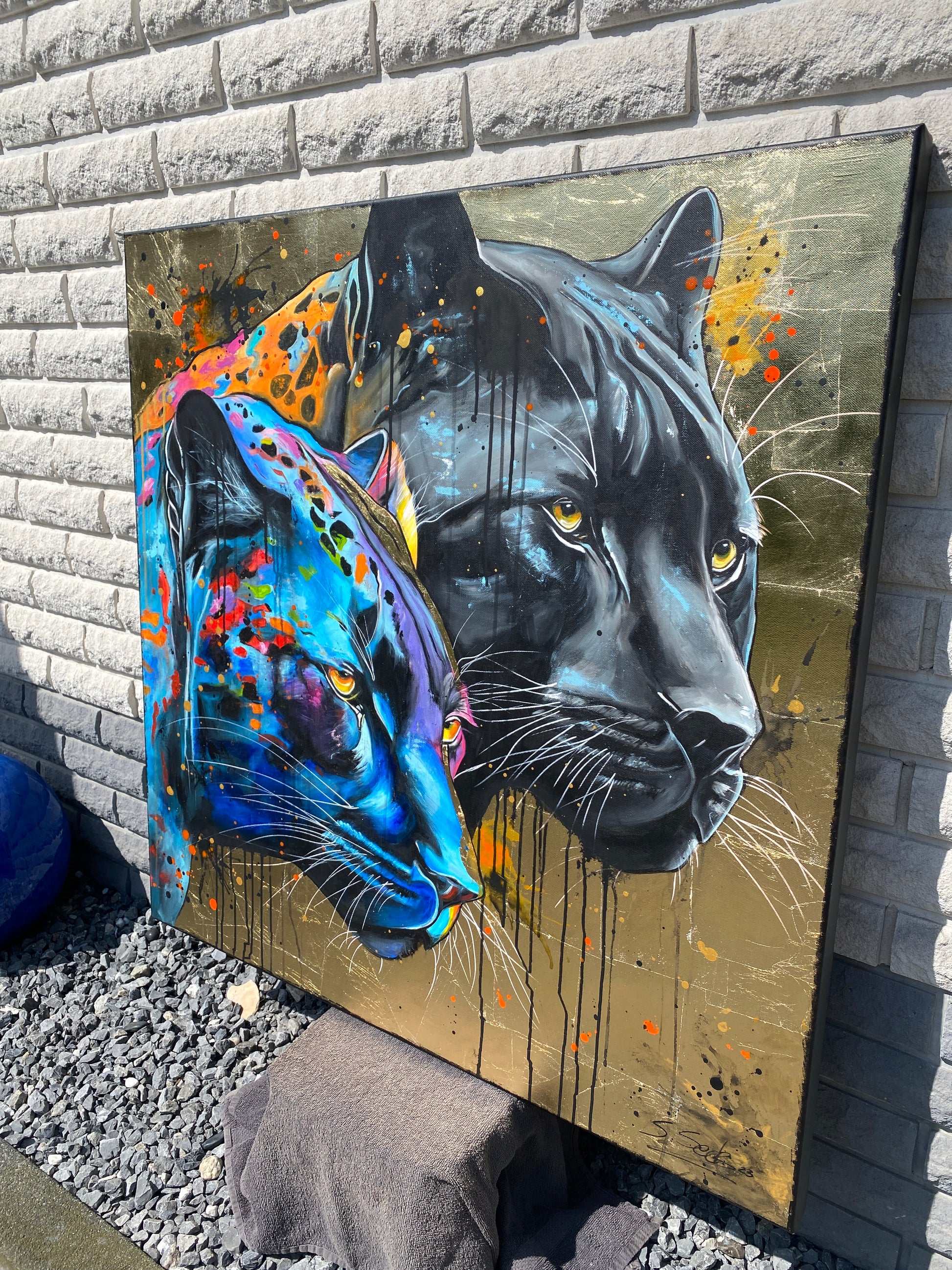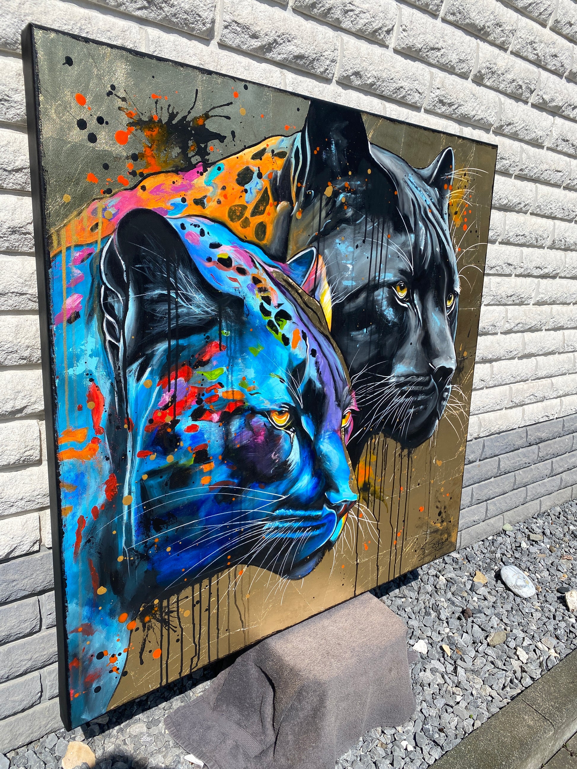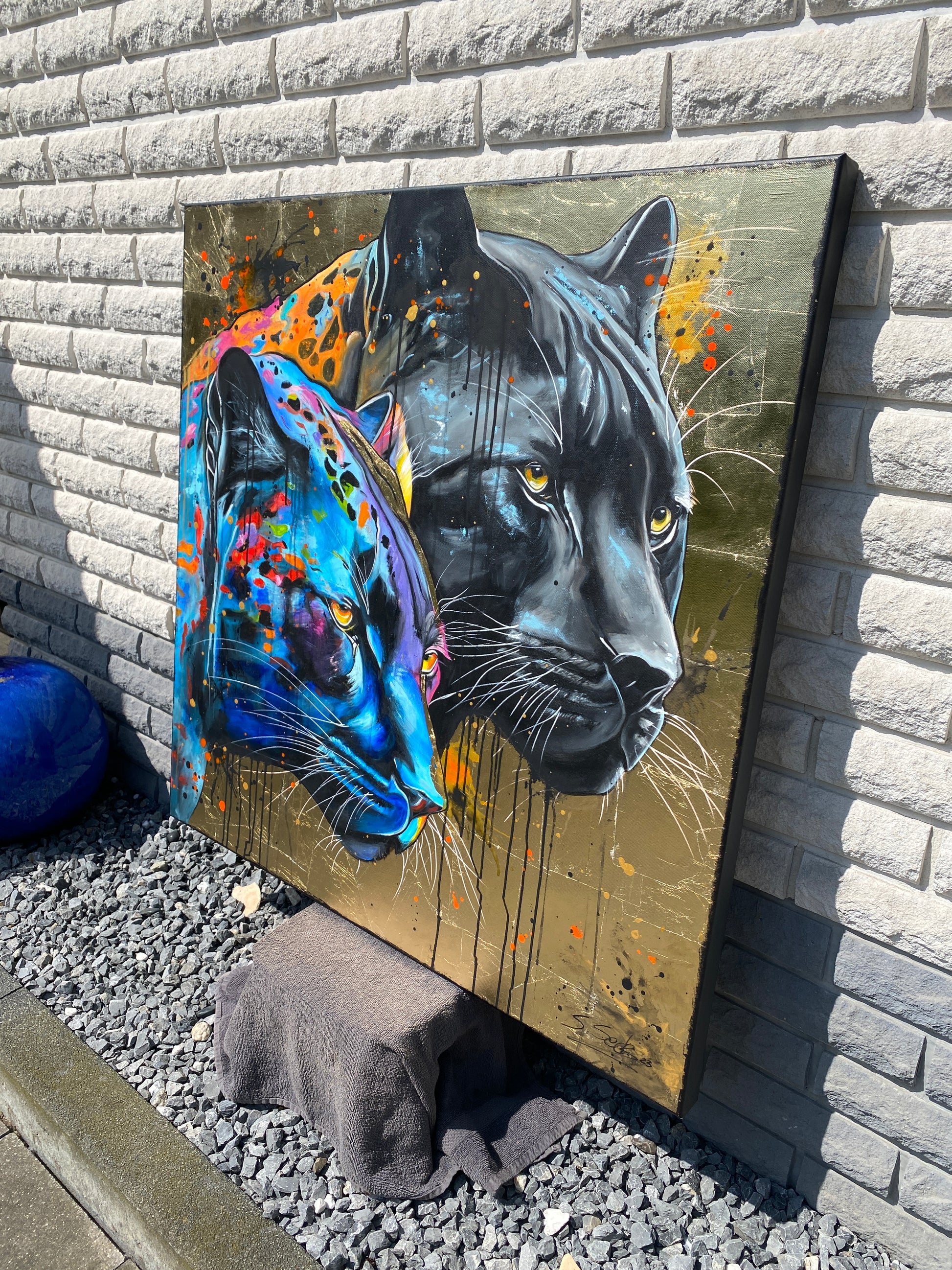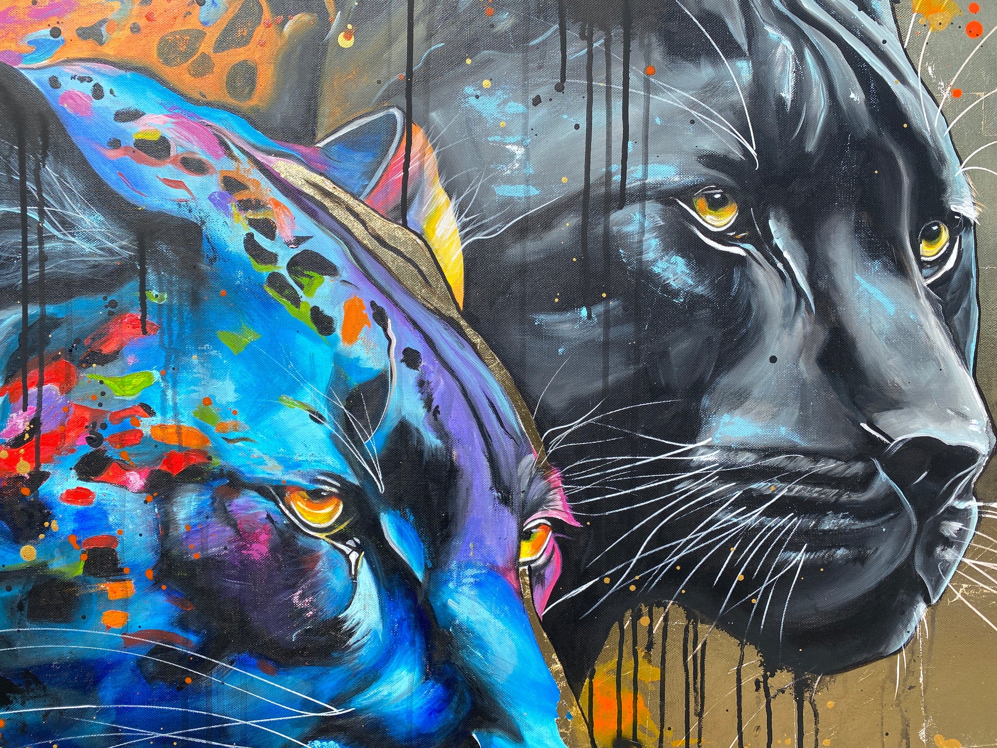 Das Werk wurde von der Künstlerin mit Acryl auf Leinwand gemalt. Der Hintergrund wurde mit Golden Leaf Metal veredelt. Das Werk wurde dann lackiert, um die Farben zu schützen.