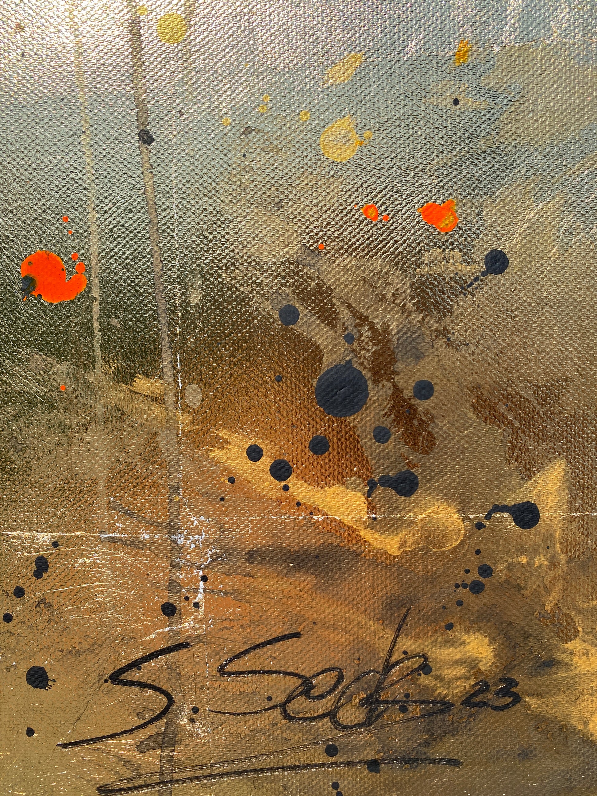 Acryl und Blattmetall auf Leinwand/Keilrahmen