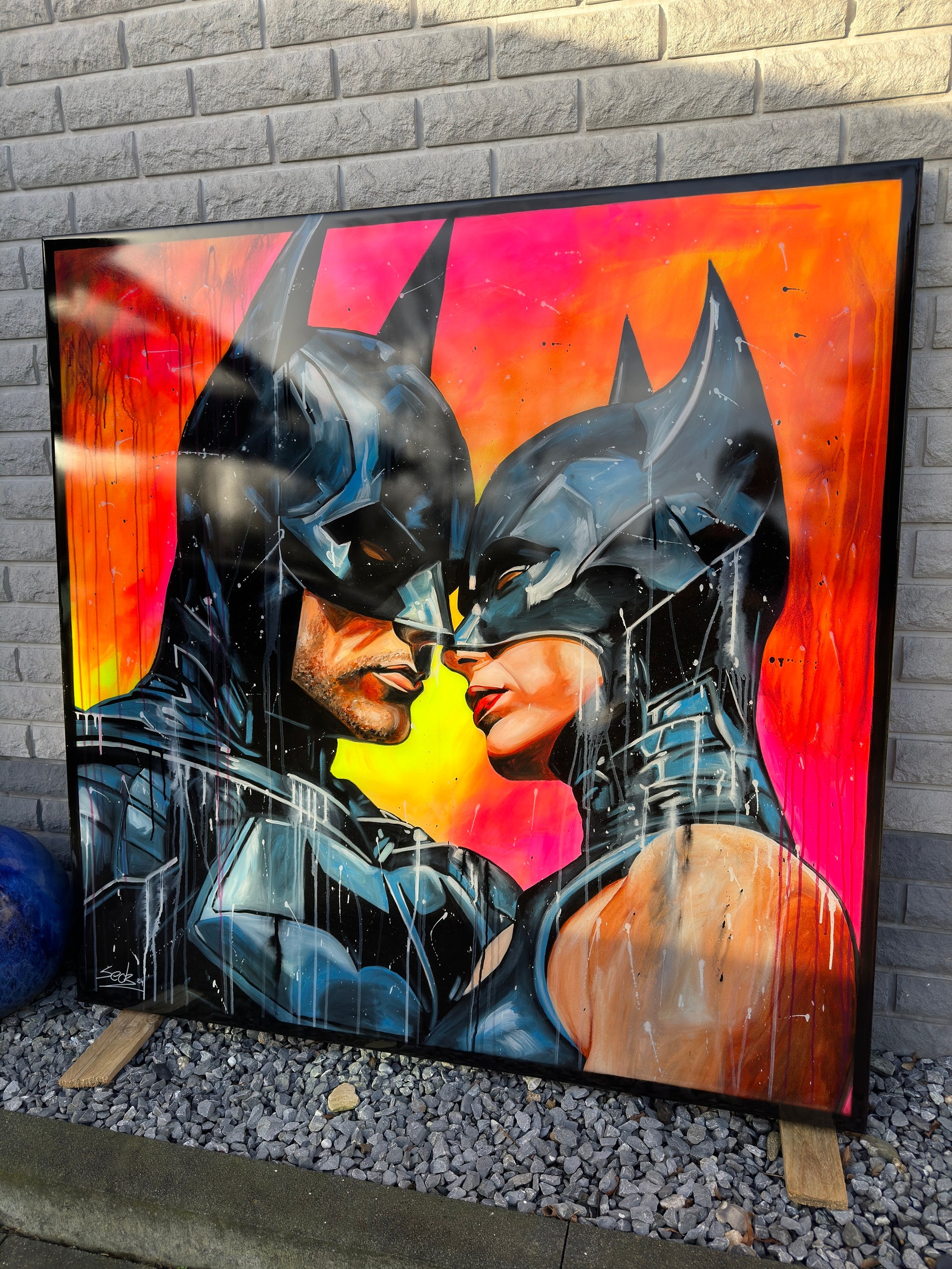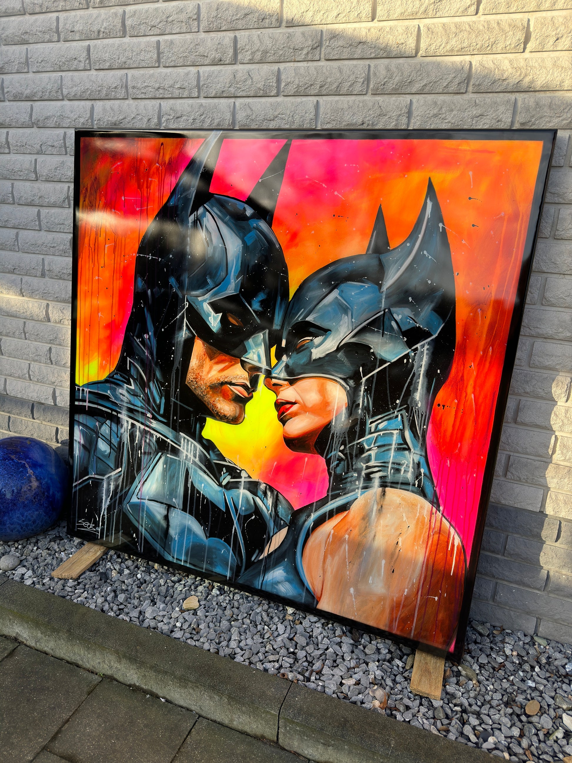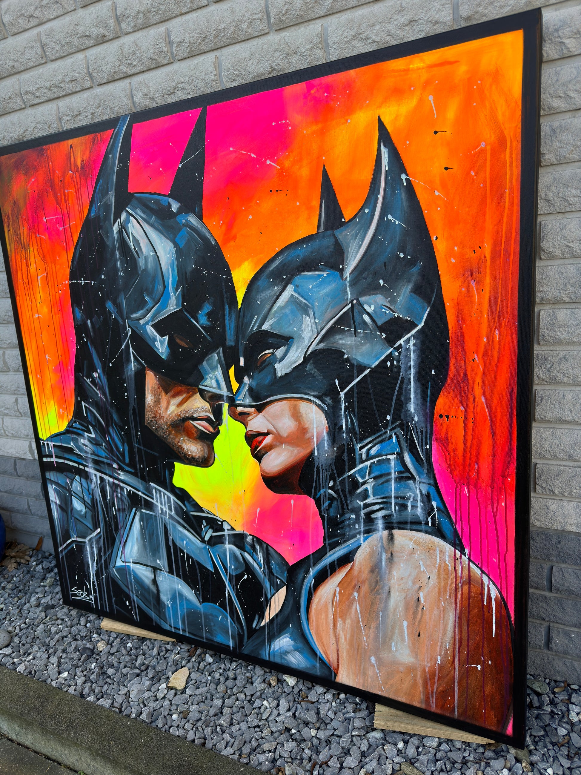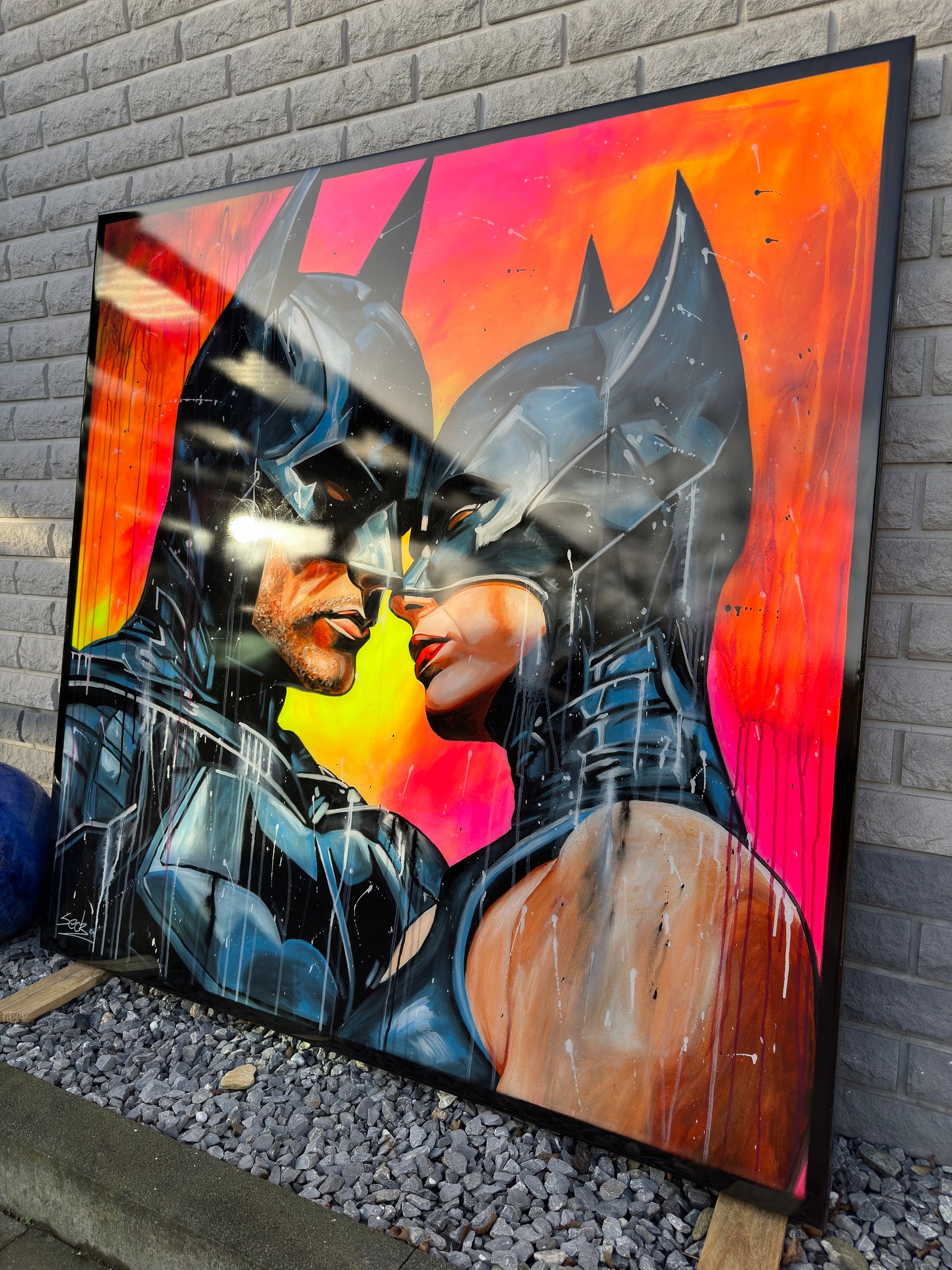 Inspiriert von Comics und Popkultur, fängt dieses Gemälde intensiv die Emotionen einer romantischen Dynamik ein, denn die beiden können sich der gegenseitigen Anziehungskraft nicht entziehen. Die Figuren stehen für Leidenschaft und Stärke, eingebunden in die Realität mit einem Hauch von Realismus. Mein Werk strahlt Energie aus und bringt lebendige Farben und Liebe ins Zuhause.