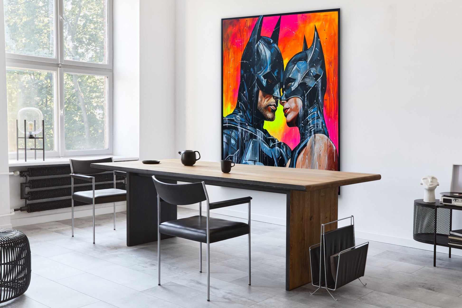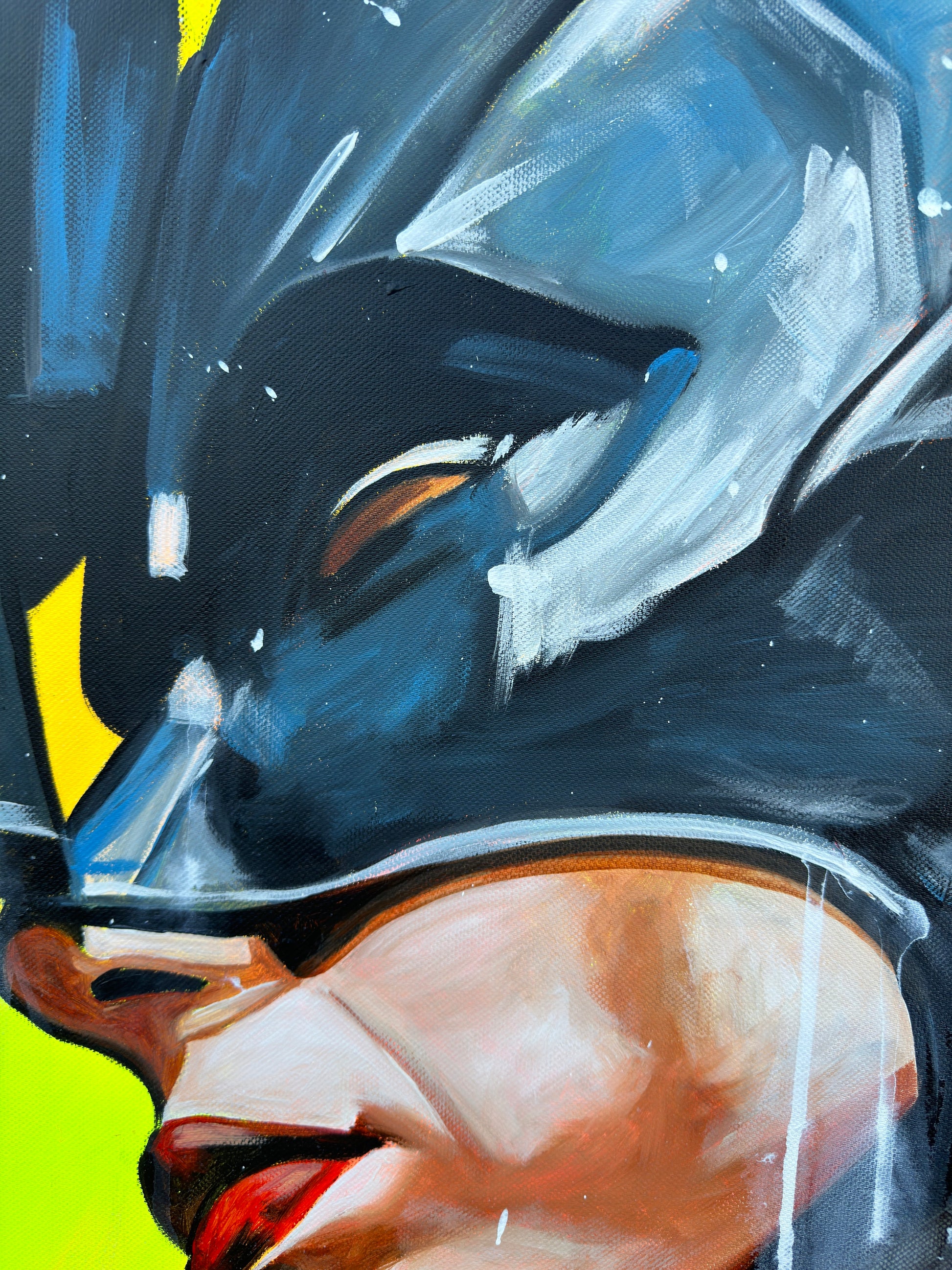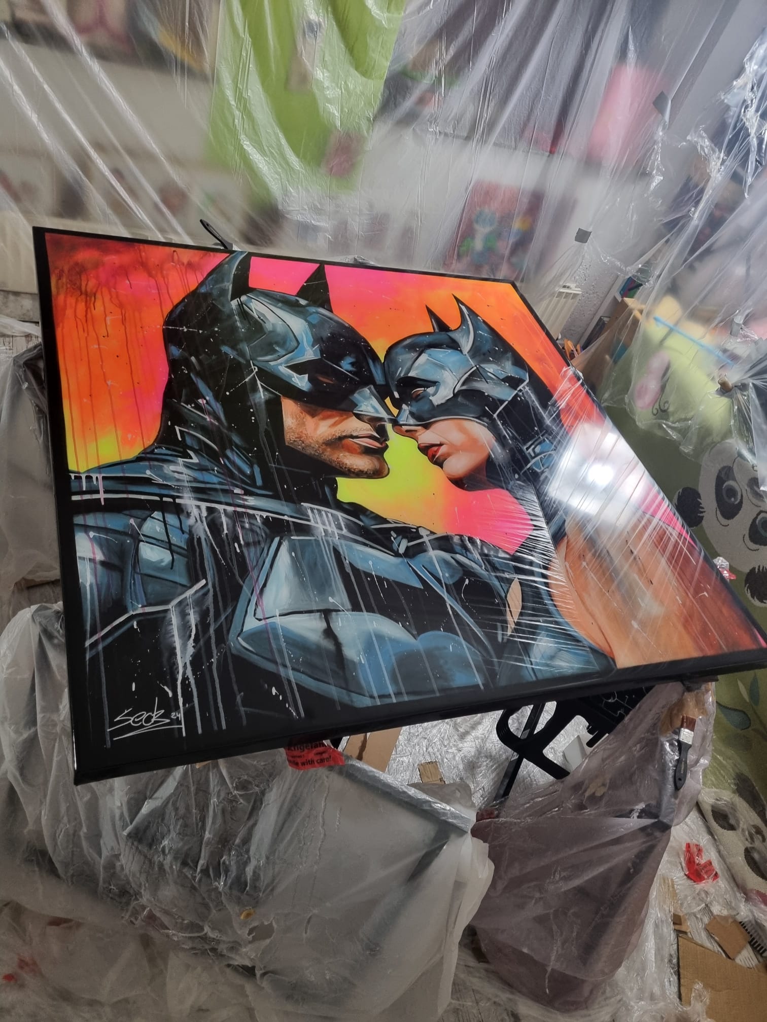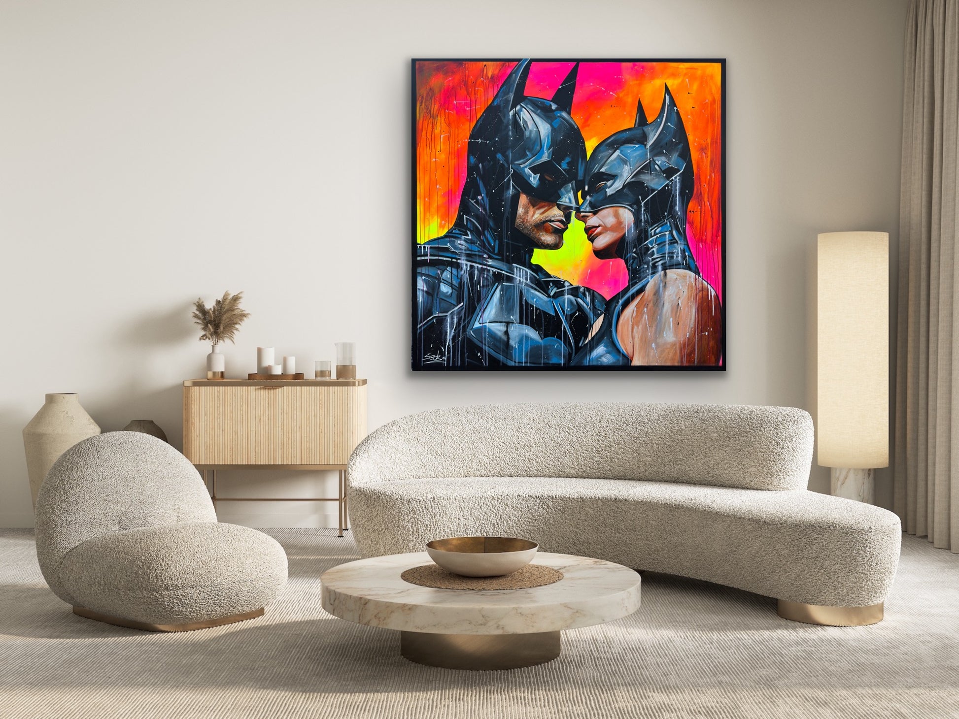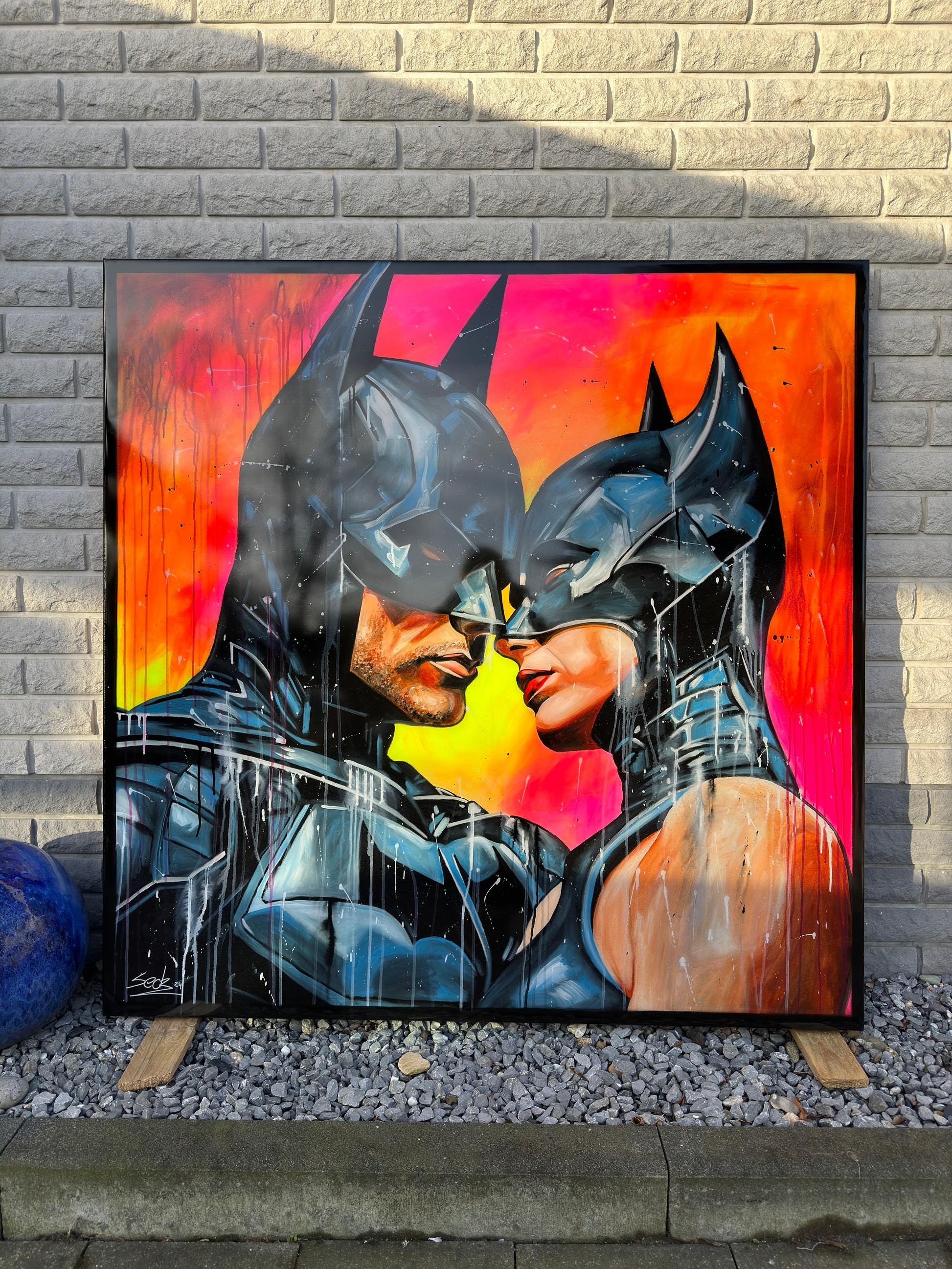 Inspiriert von Comics und Popkultur, fängt dieses Gemälde intensiv die Emotionen einer romantischen Dynamik ein, denn die beiden können sich der gegenseitigen Anziehungskraft nicht entziehen. Die Figuren stehen für Leidenschaft und Stärke, eingebunden in die Realität mit einem Hauch von Realismus. Mein Werk strahlt Energie aus und bringt lebendige Farben und Liebe ins Zuhause.