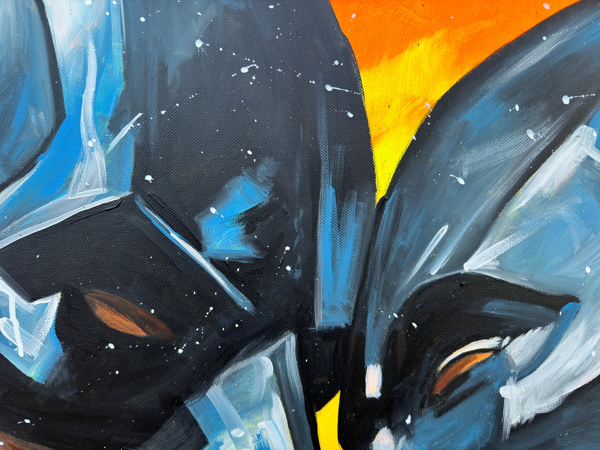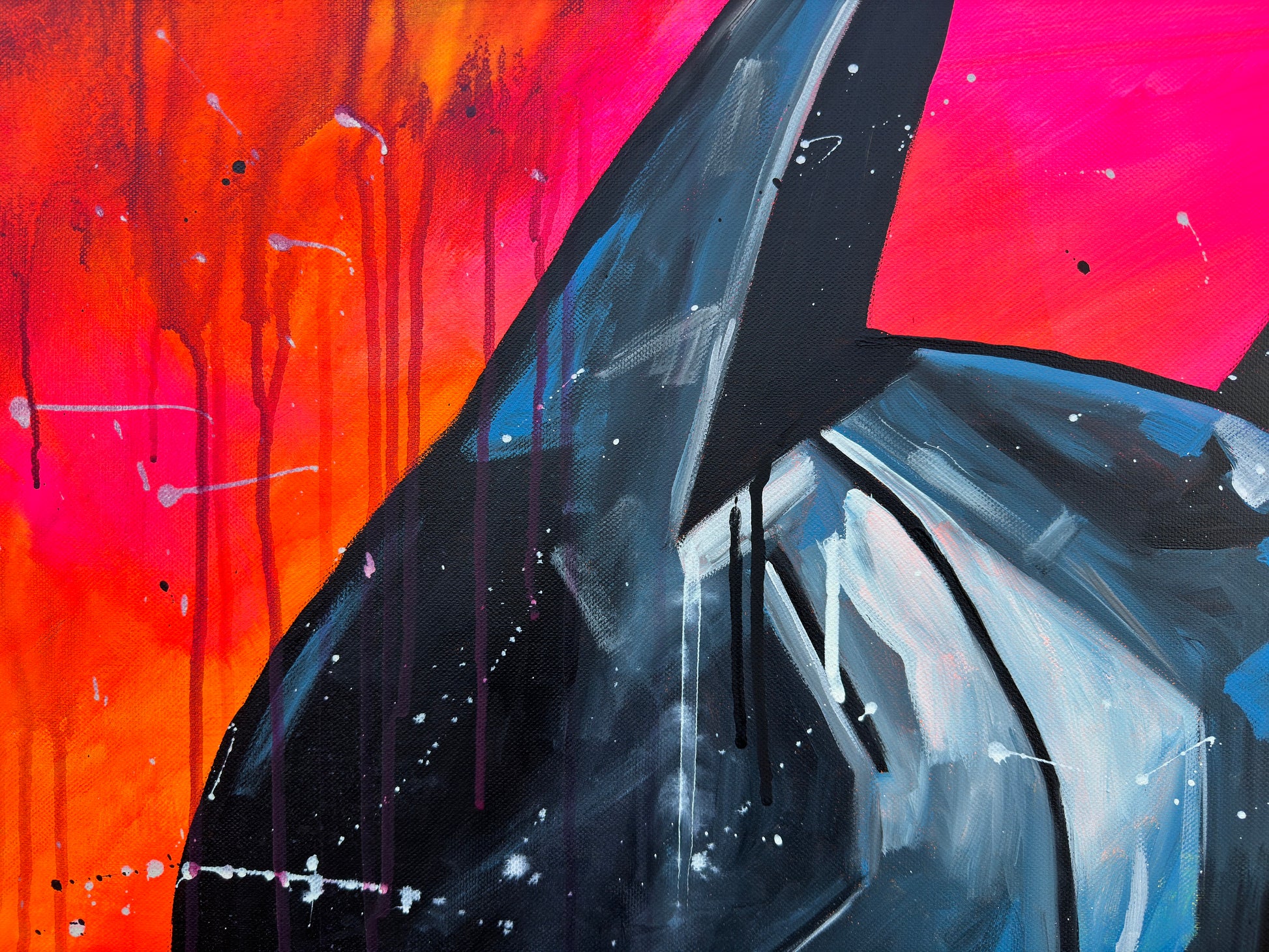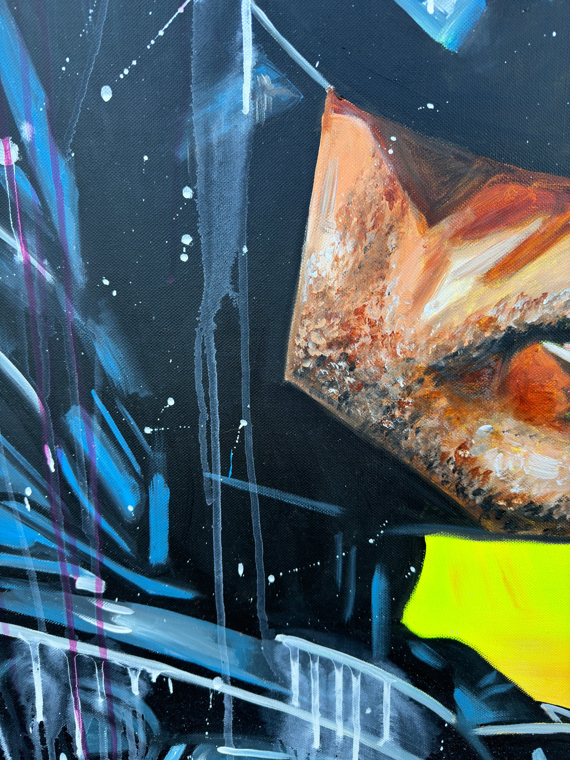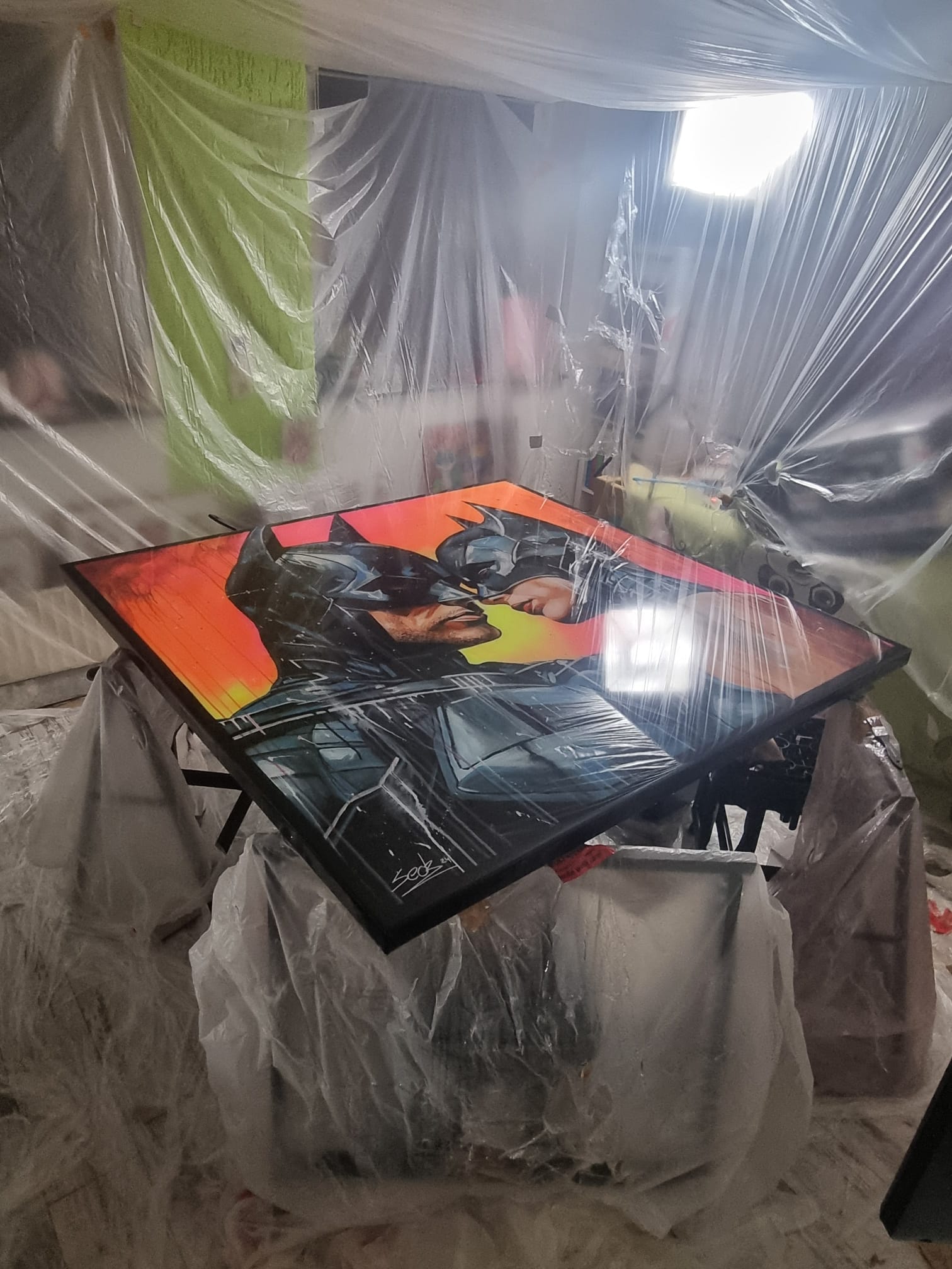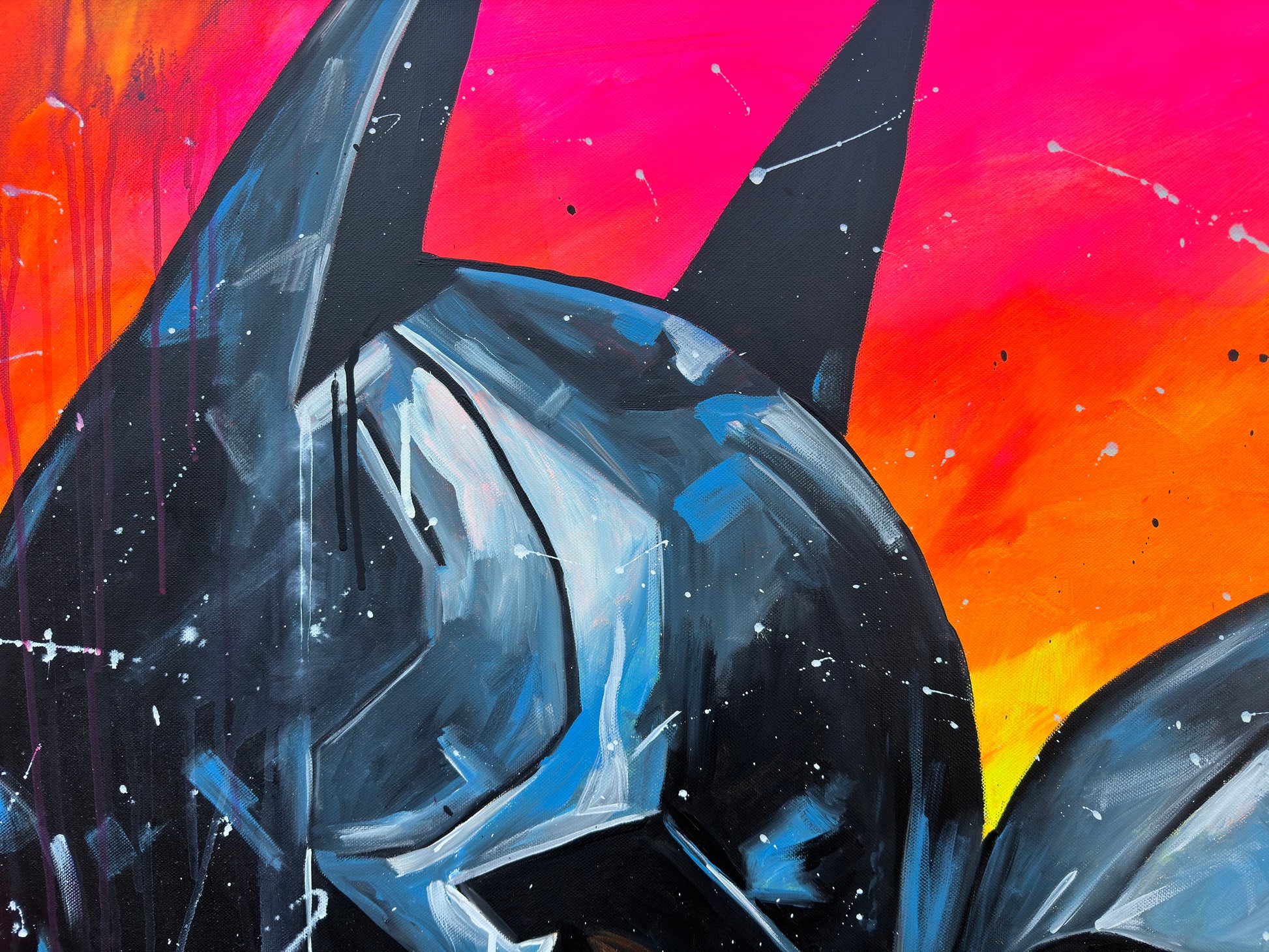 Inspiriert von Comics und Popkultur, fängt dieses Gemälde intensiv die Emotionen einer romantischen Dynamik ein, denn die beiden können sich der gegenseitigen Anziehungskraft nicht entziehen. Die Figuren stehen für Leidenschaft und Stärke, eingebunden in die Realität mit einem Hauch von Realismus. Mein Werk strahlt Energie aus und bringt lebendige Farben und Liebe ins Zuhause.