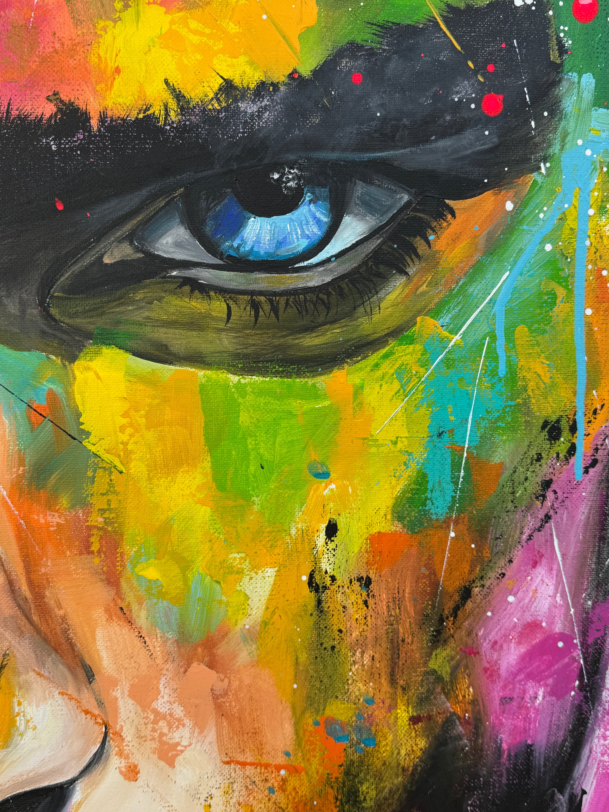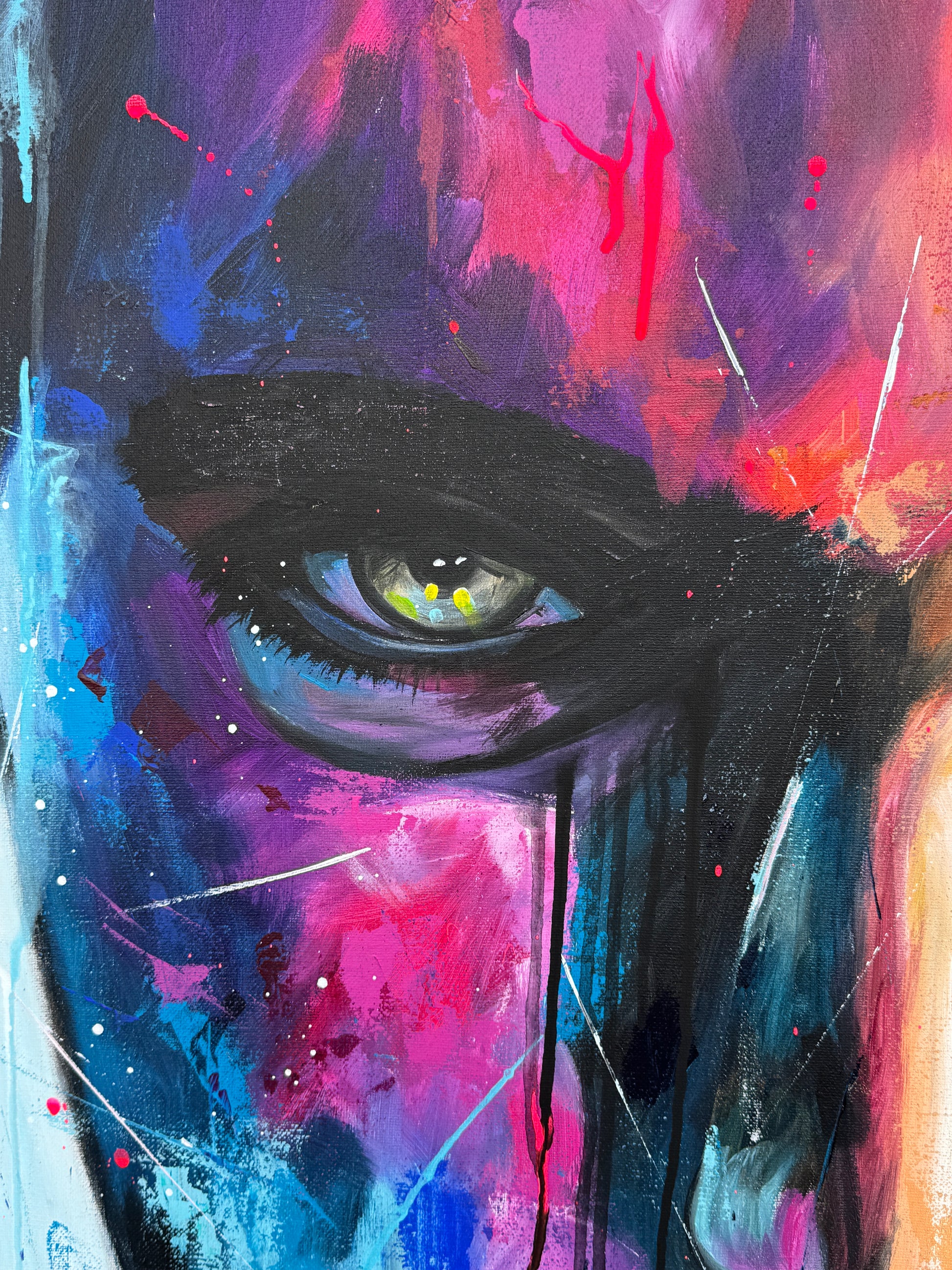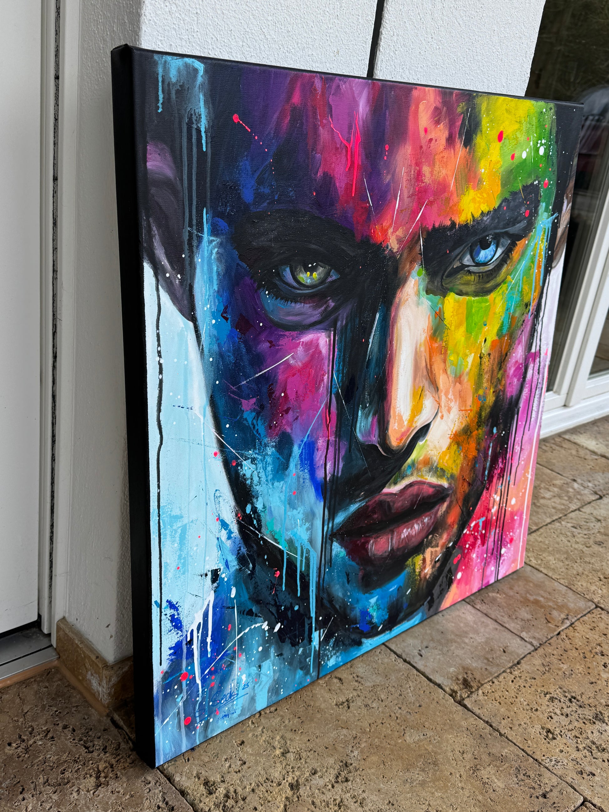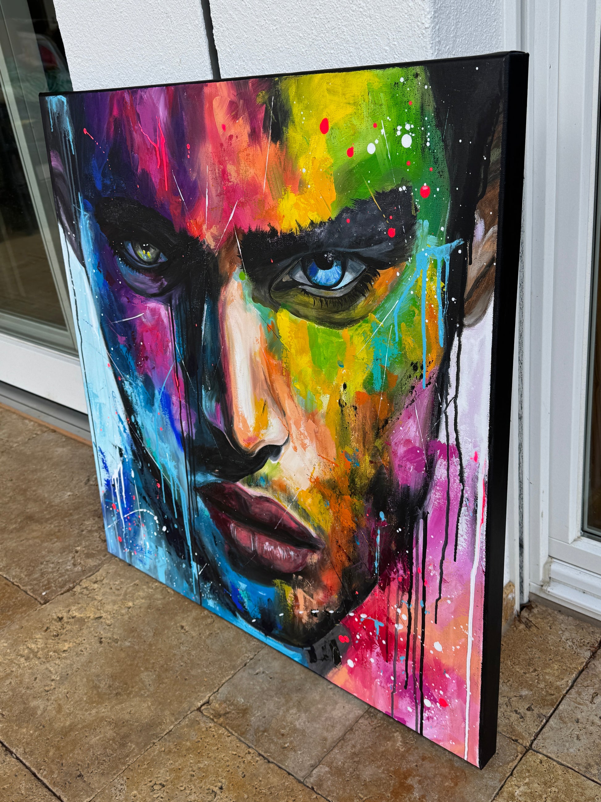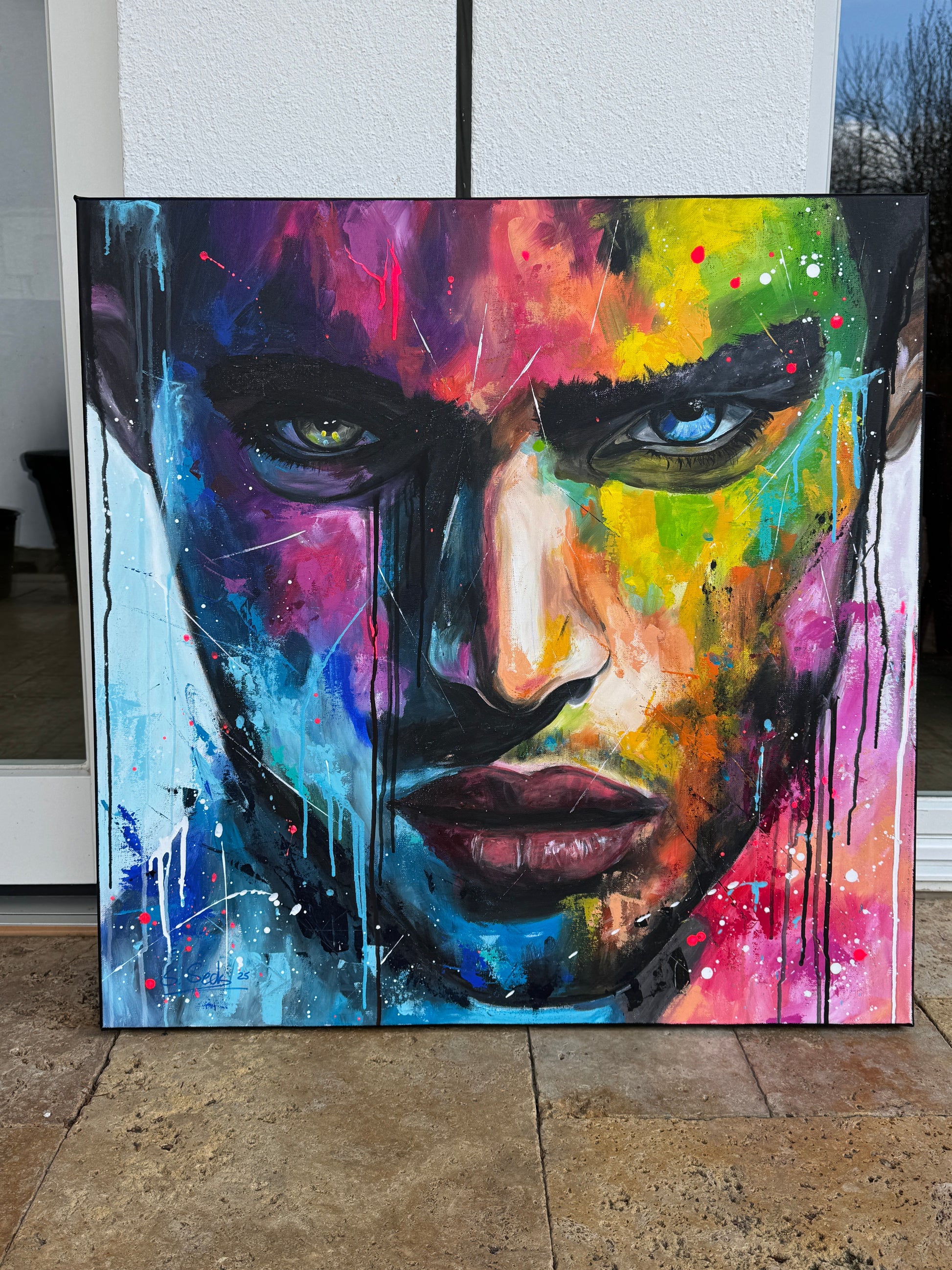 Die lebhaften, kontrastreichen Farben spiegeln einen inneren Kampf und gleichzeitig die Schönheit des menschlichen Geistes wider. Constantin ist mystisch und geheimnisvoll, sein Ausdruck voller Geheimnisse. Seine Gedanken kann man nur mutmaßen, doch seine Augen erzählen eine Geschichte. Jedem Betrachter eine andere. Dieses Gemälde fügt sich nicht nur in jede Raumgestaltung ein, sondern belebt sie auch mit Energie und tiefgreifender Emotionalität. Es ist eine Hommage an die Stärke des menschlichen Ausdrucks