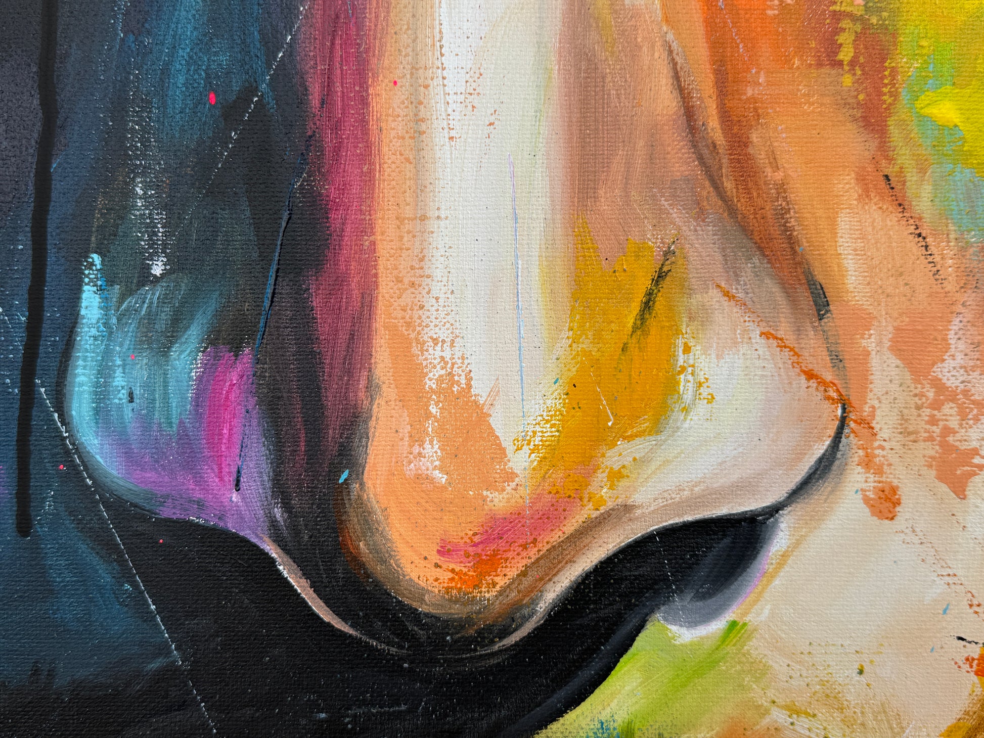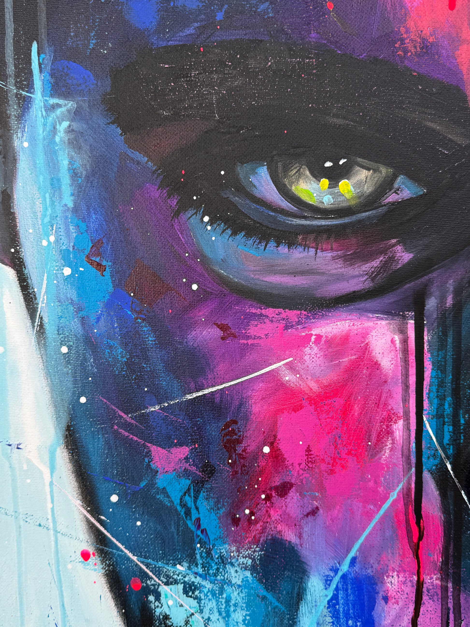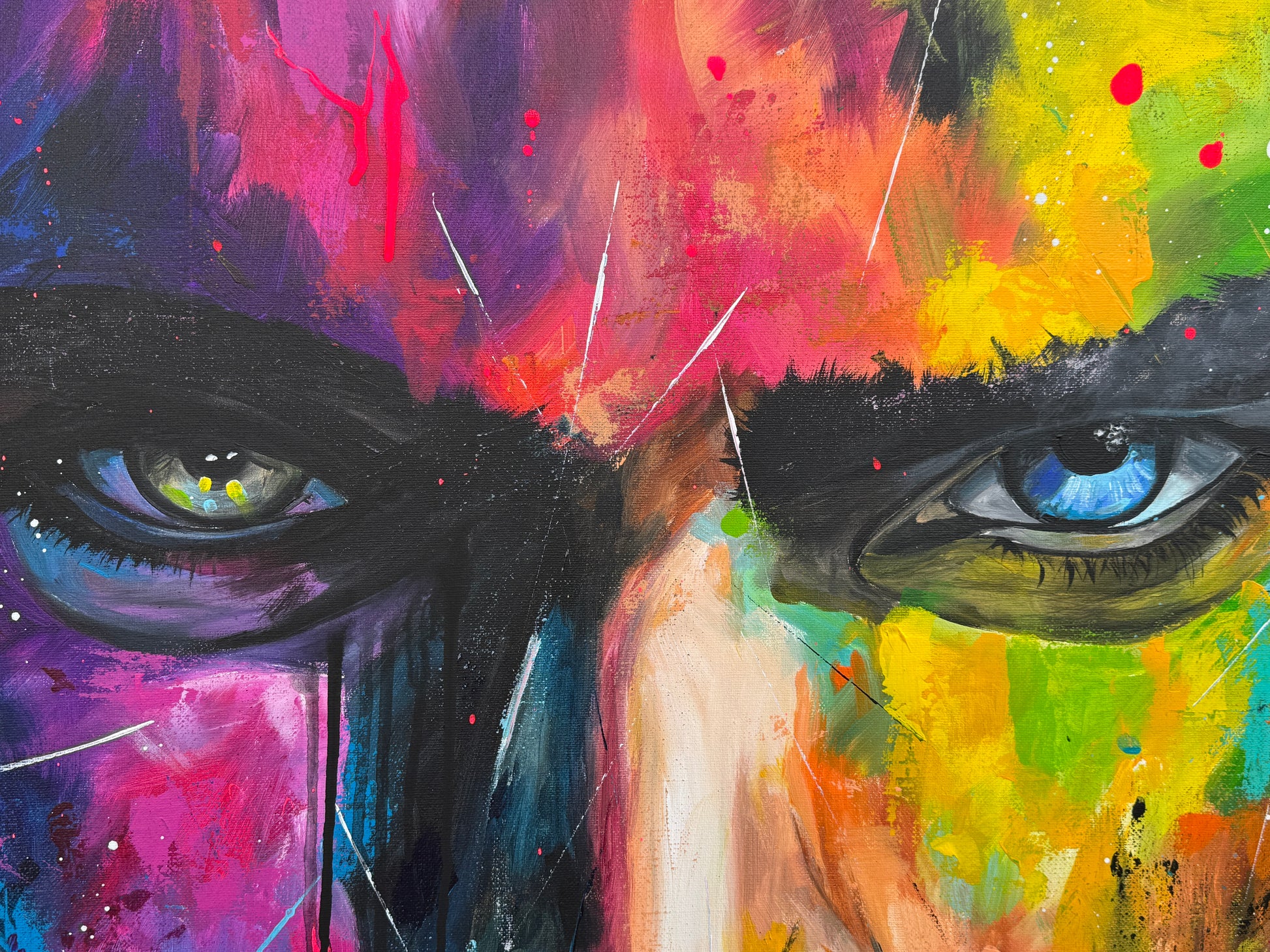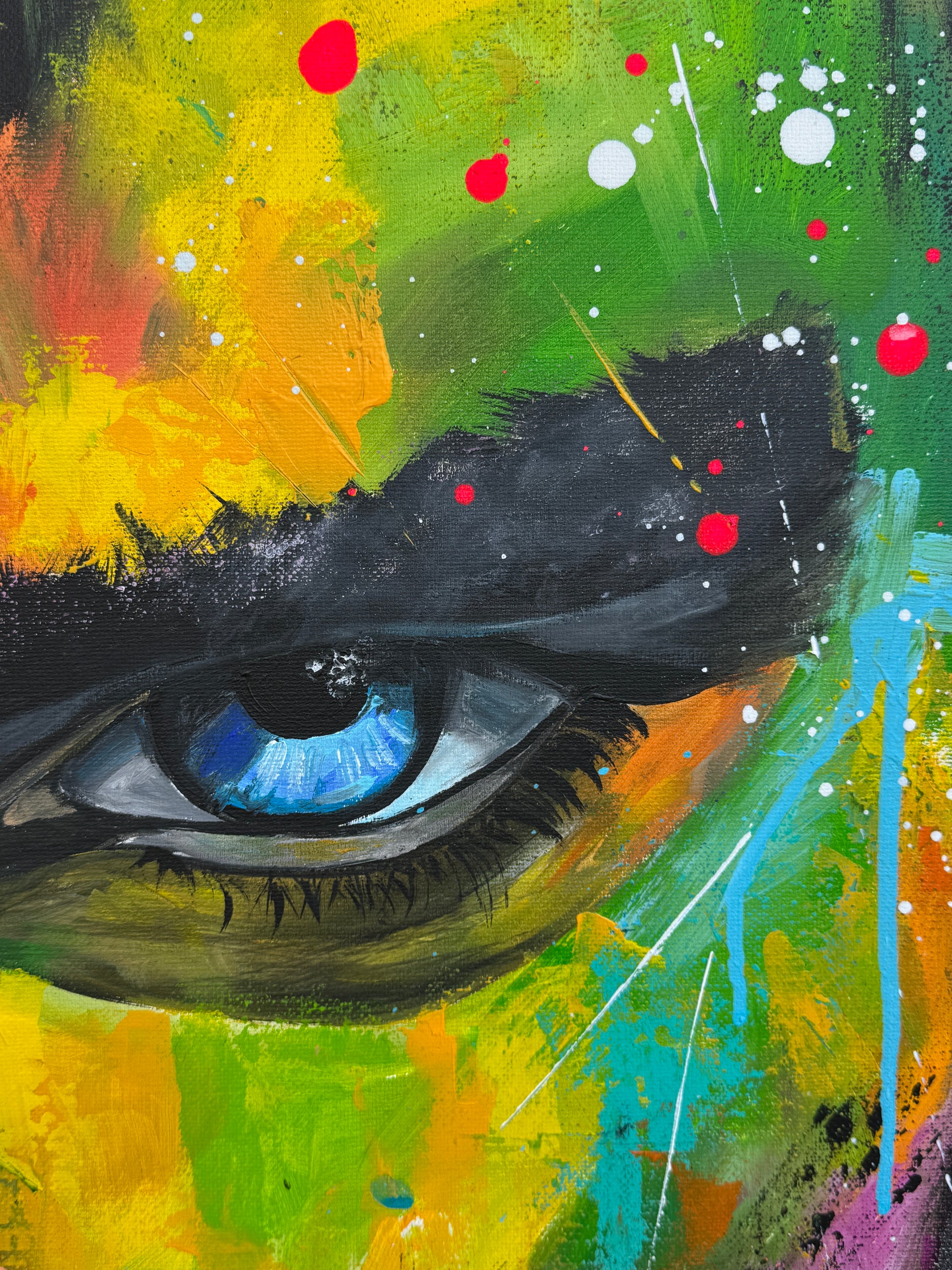 Die lebhaften, kontrastreichen Farben spiegeln einen inneren Kampf und gleichzeitig die Schönheit des menschlichen Geistes wider. Constantin ist mystisch und geheimnisvoll, sein Ausdruck voller Geheimnisse. Seine Gedanken kann man nur mutmaßen, doch seine Augen erzählen eine Geschichte. Jedem Betrachter eine andere. Dieses Gemälde fügt sich nicht nur in jede Raumgestaltung ein, sondern belebt sie auch mit Energie und tiefgreifender Emotionalität. Es ist eine Hommage an die Stärke des menschlichen Ausdrucks
