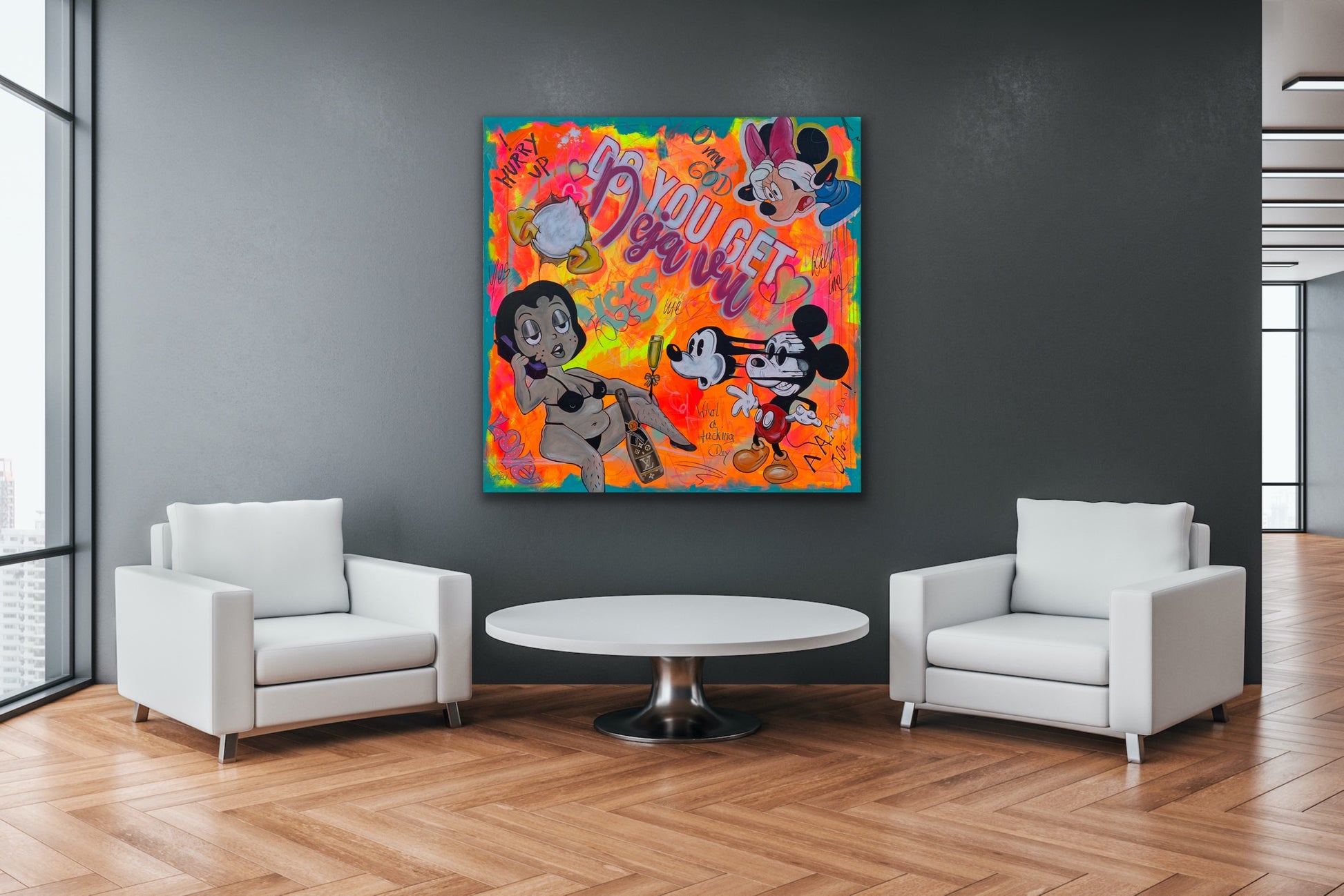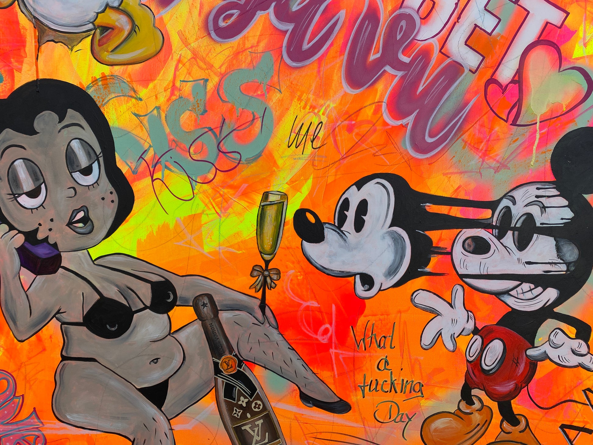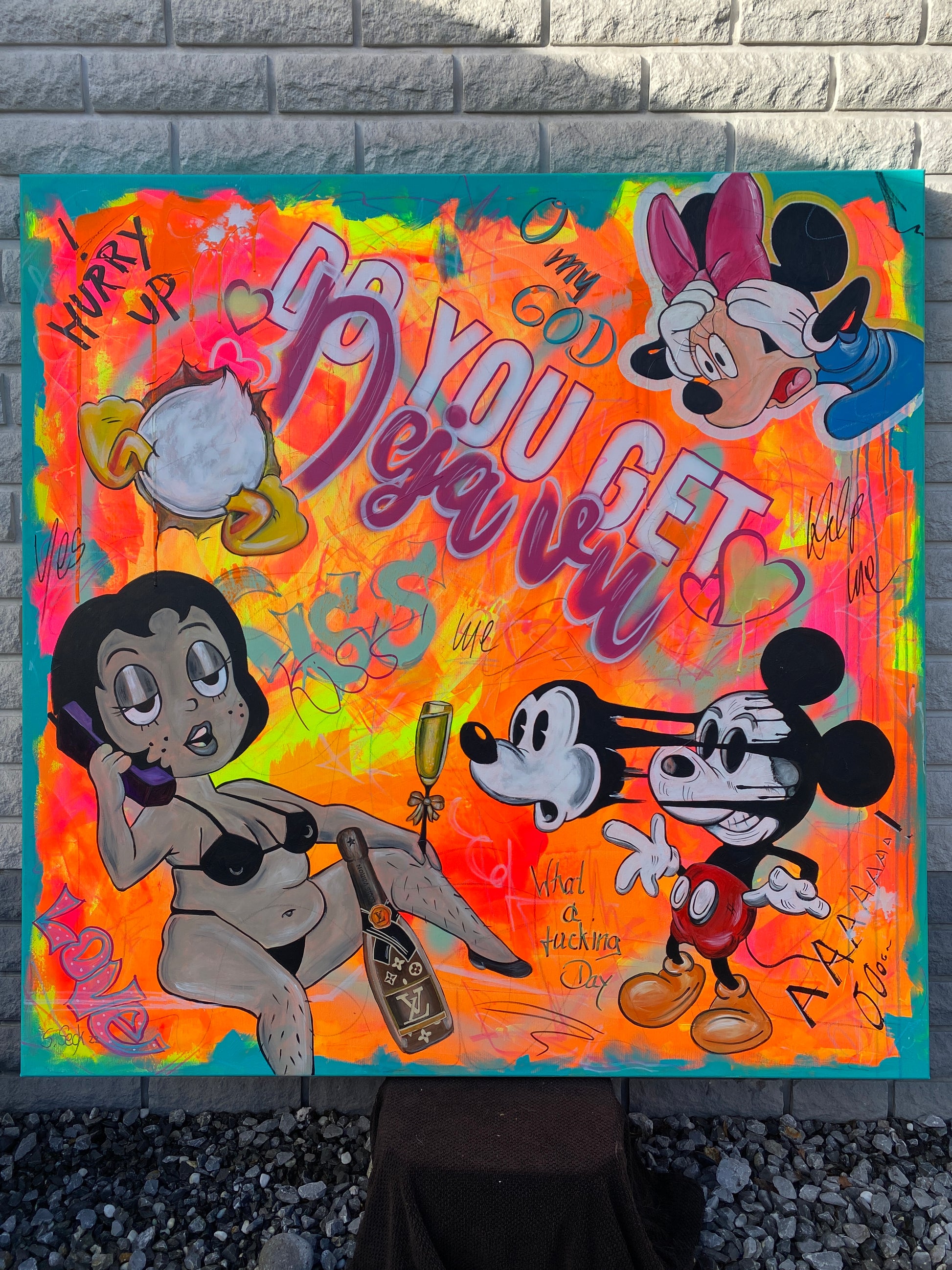 Eine Szenerie, die mancher vielleicht schon genauso erlebt hat. Eine durchzechte Nacht, es ist viel Alkohol geflossen. Man lässt sich gehen und hat einfach Spaß mit seinen Freunden. Geweckt wird man von stechenden Schmerzen in der Schläfe. Man schaut sich um und stellt fest, dass man sich nicht mehr an alles erinnern kann. Und da ist sie. Haben wir etwa...Der Schrecken lässt einen erbleichen, es fallen regelrecht die Augen aus dem Gesicht. Sachen liegen zerstreut im Zimmer herum und es wird nach einem Weg gesucht, am besten ungesehen zu verschwinden. Während sie immer noch ihrem Rausch frönt und ihr erlebtes bereits kund tut, Mickey und Minni immer noch erstarrt sind, hat Donald bereits die Flucht ergriffen..