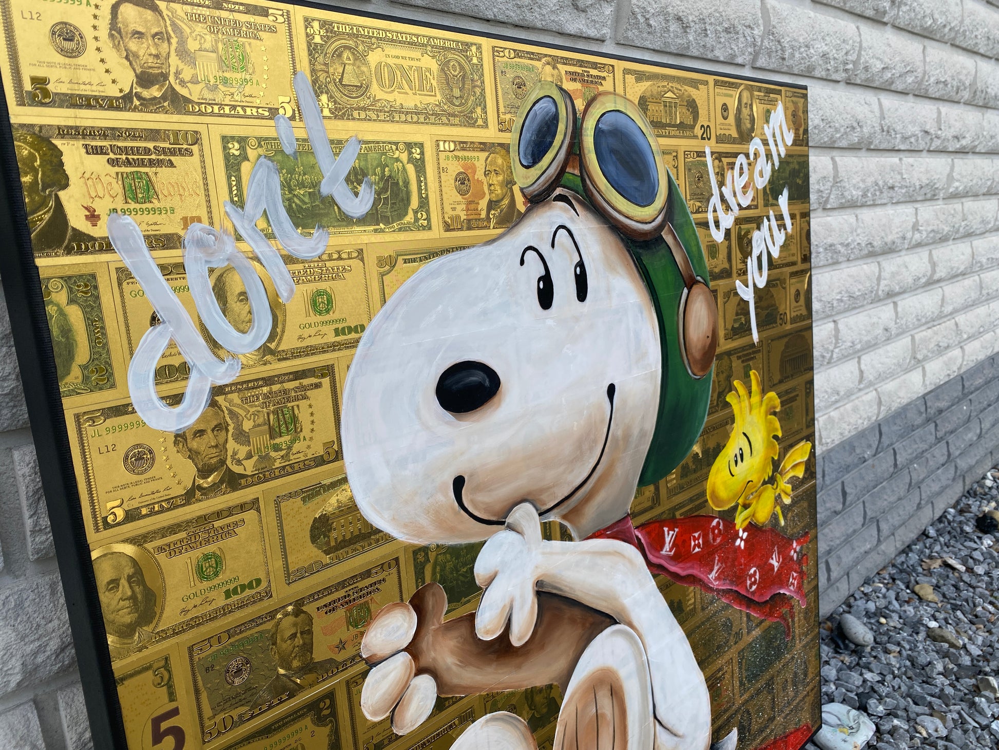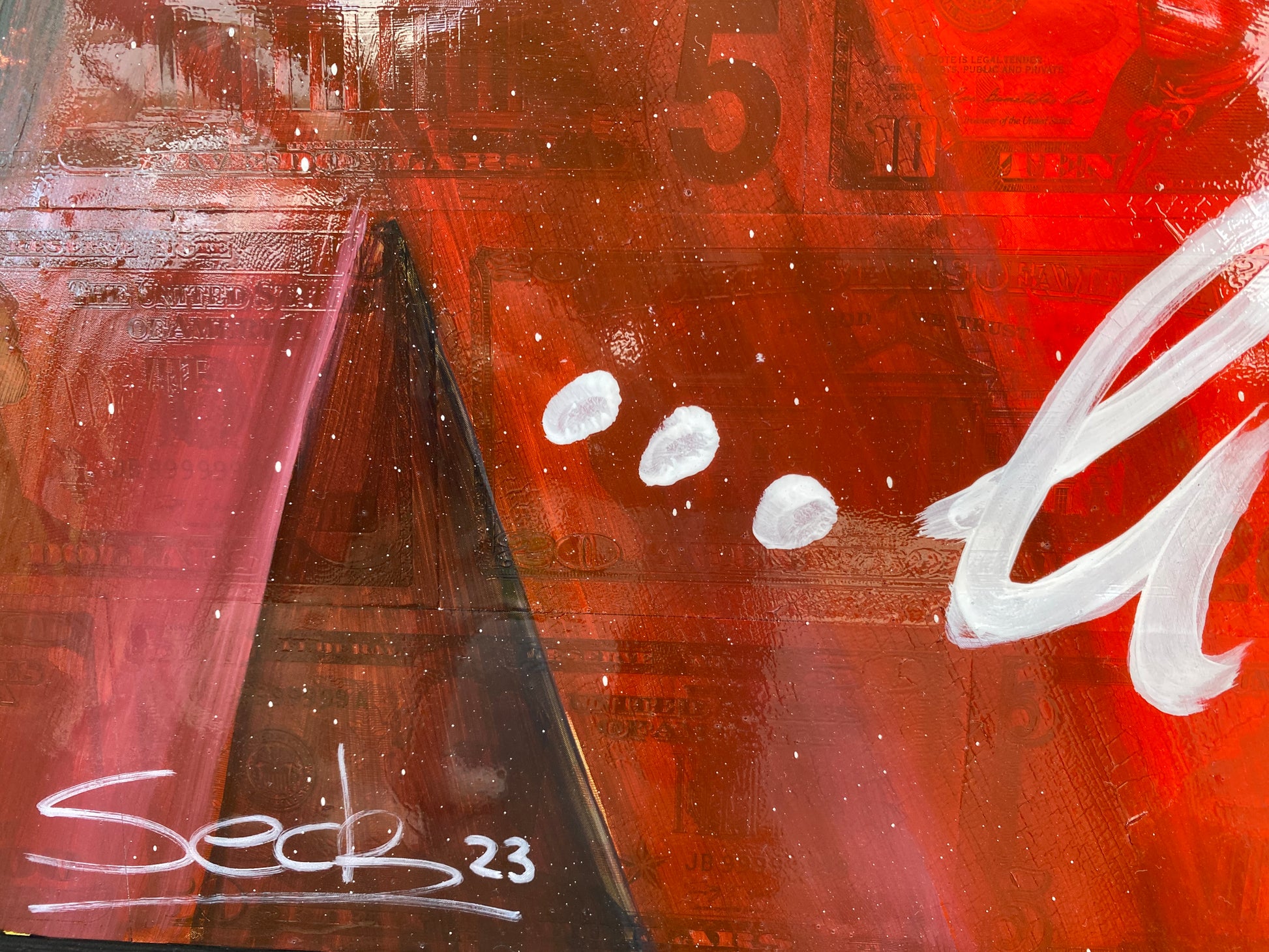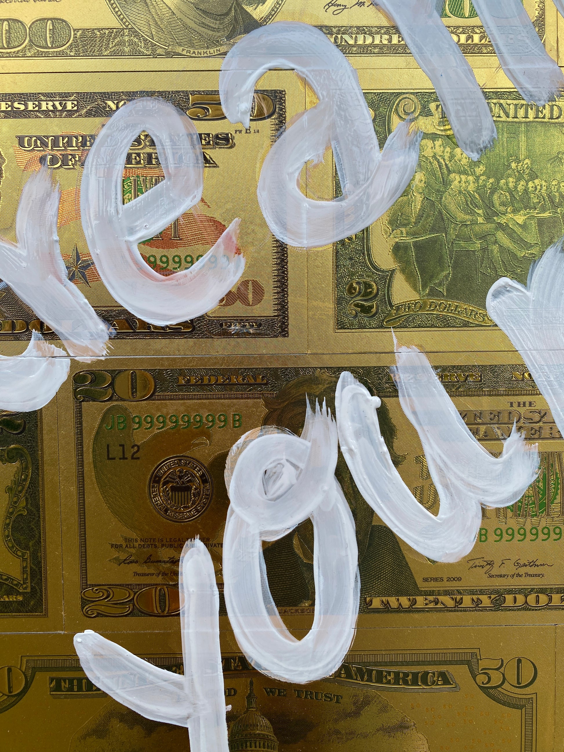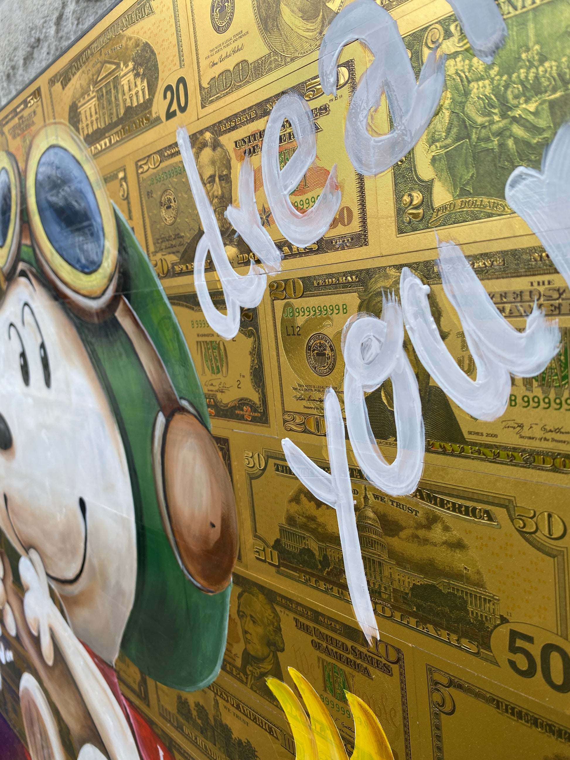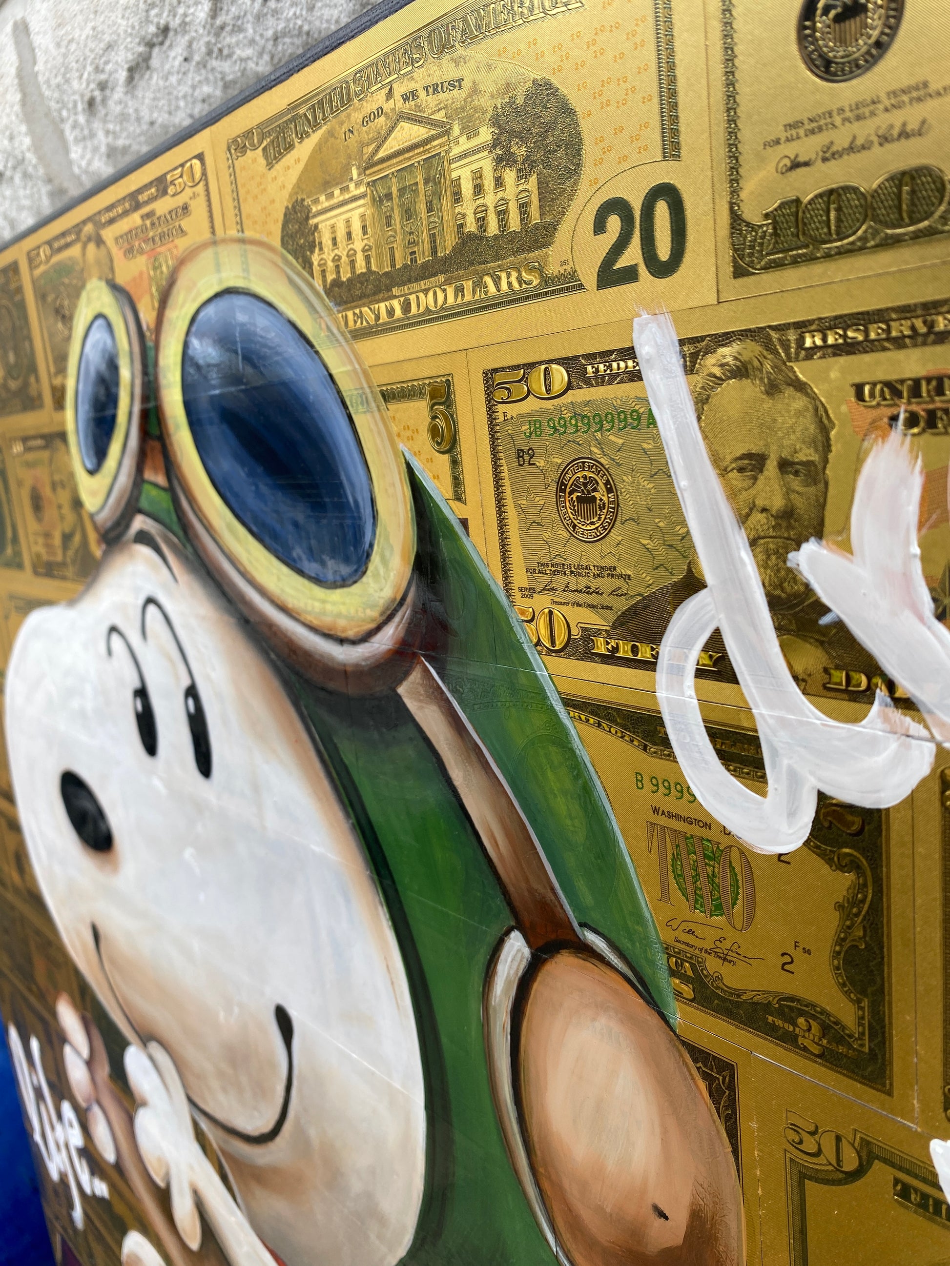 Acryl und Dollarscheine auf Leinwand/Keilrahmen