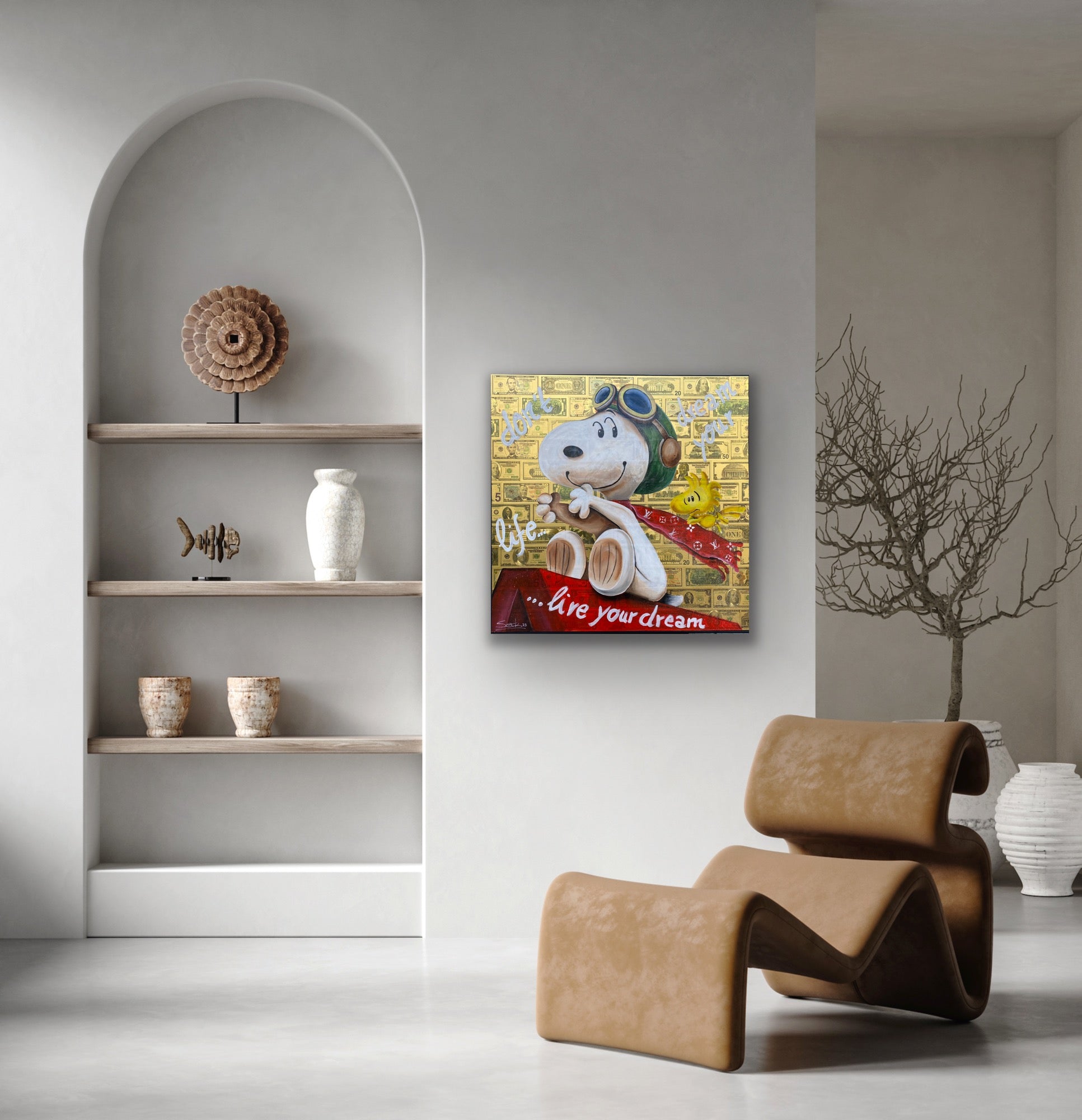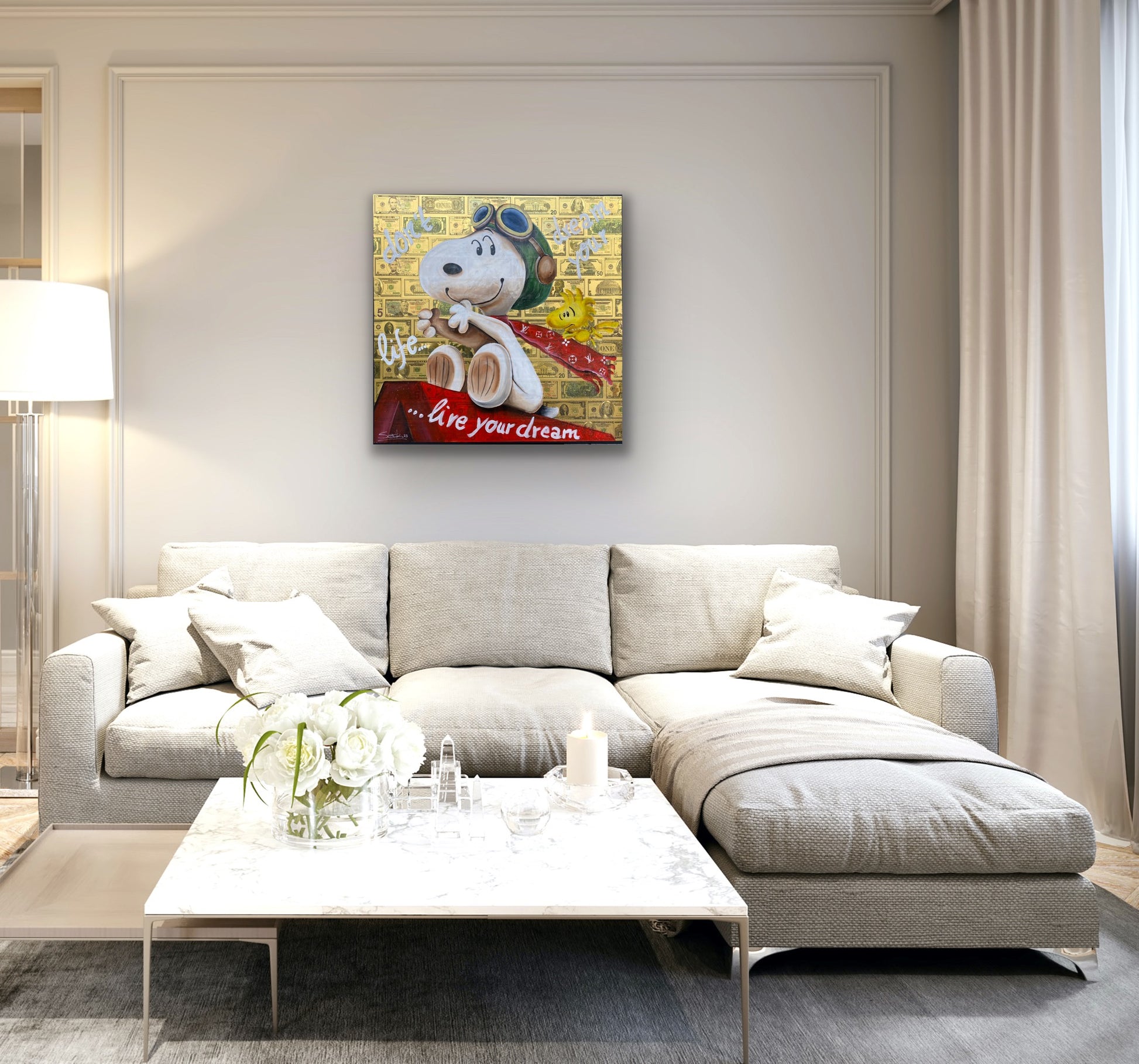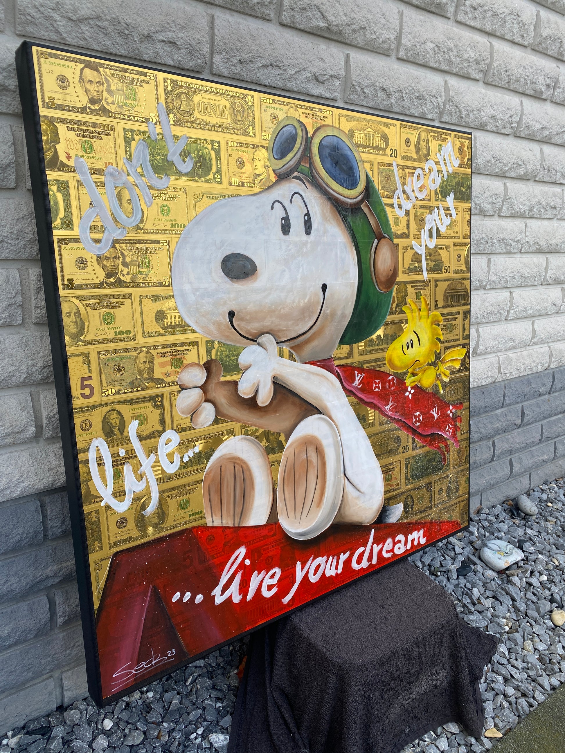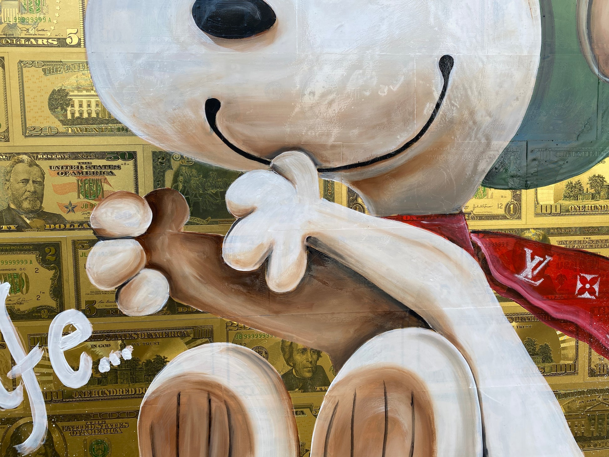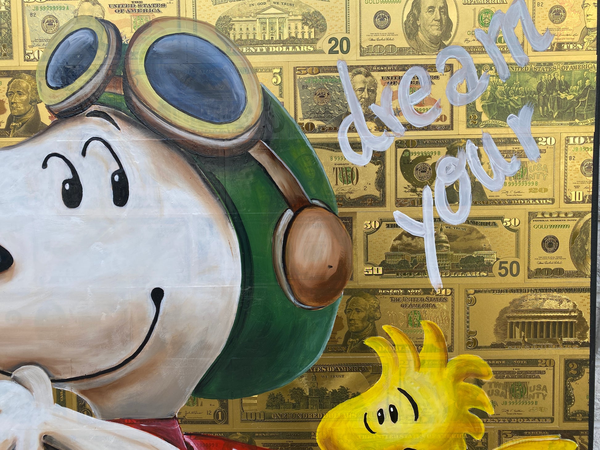 Acryl und Dollarscheine auf Leinwand/Keilrahmen