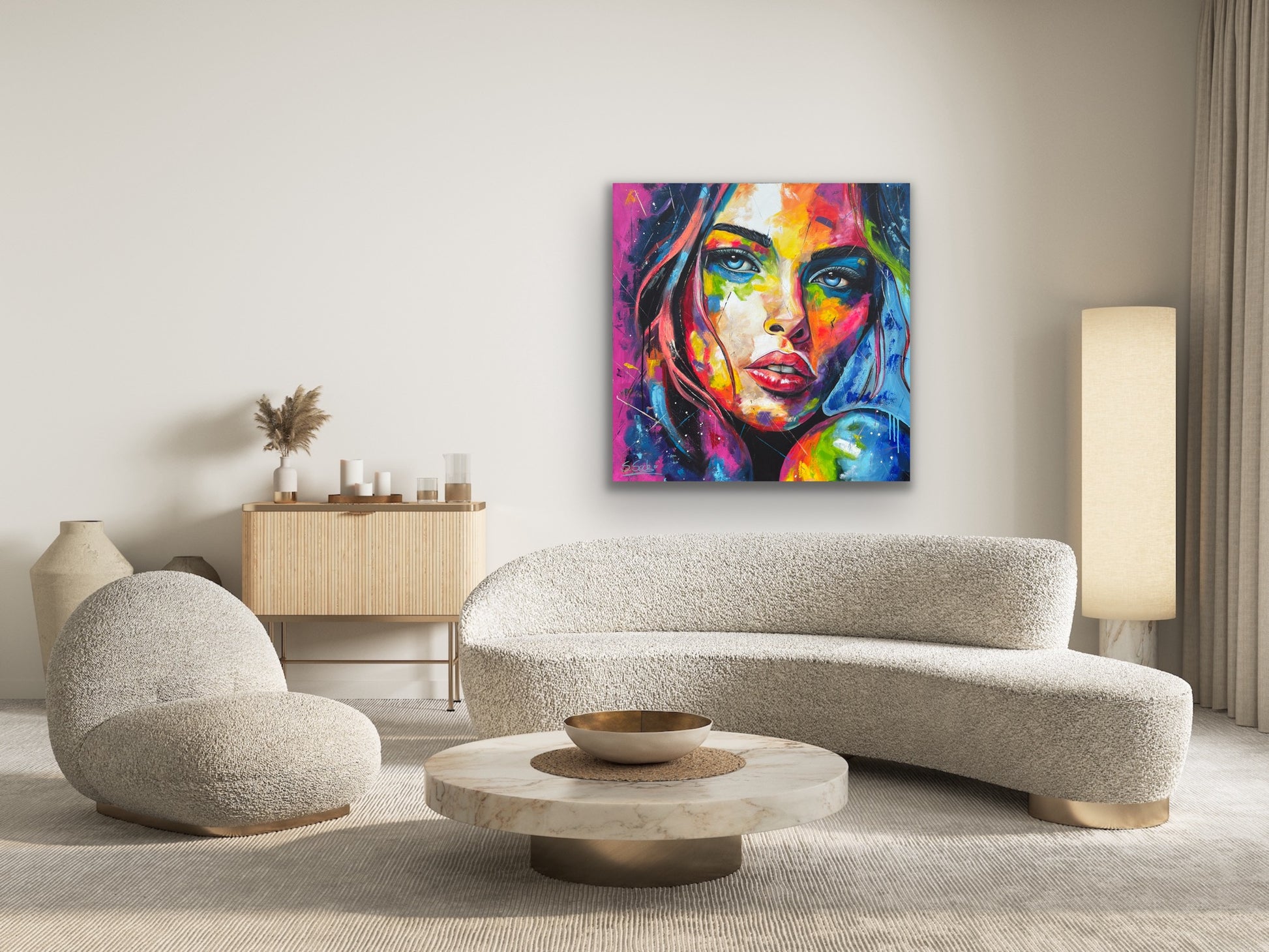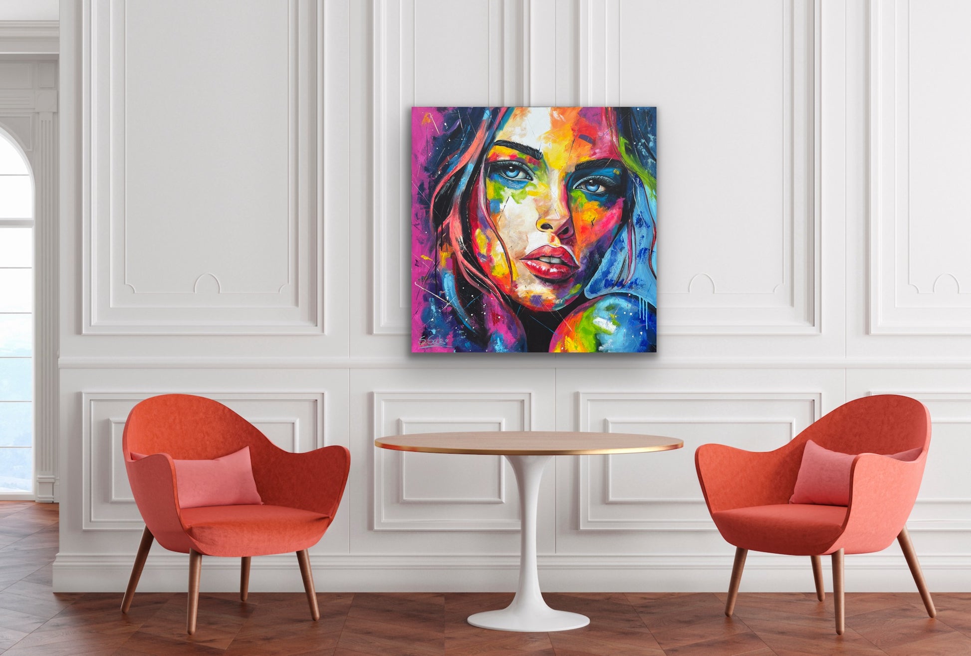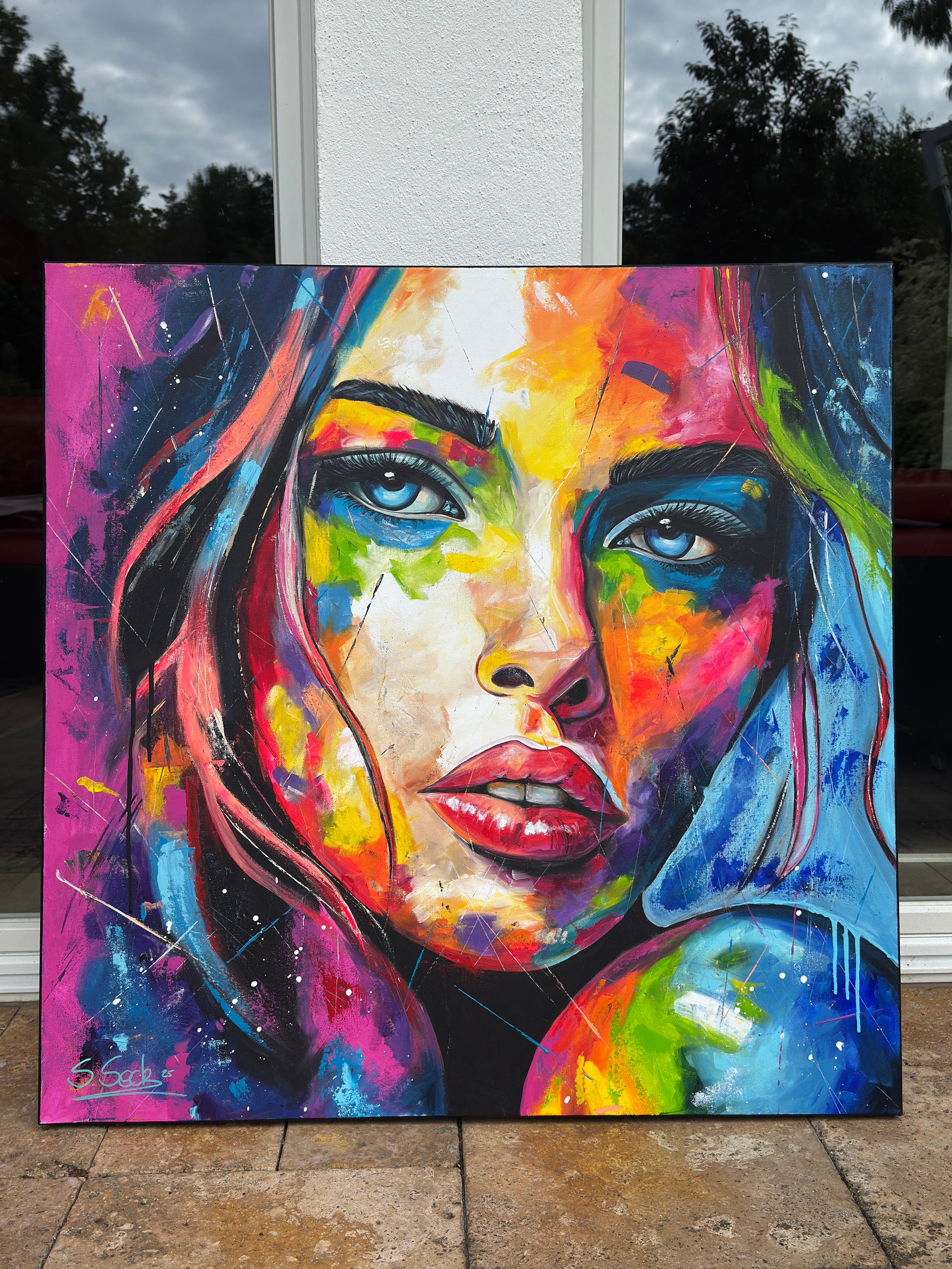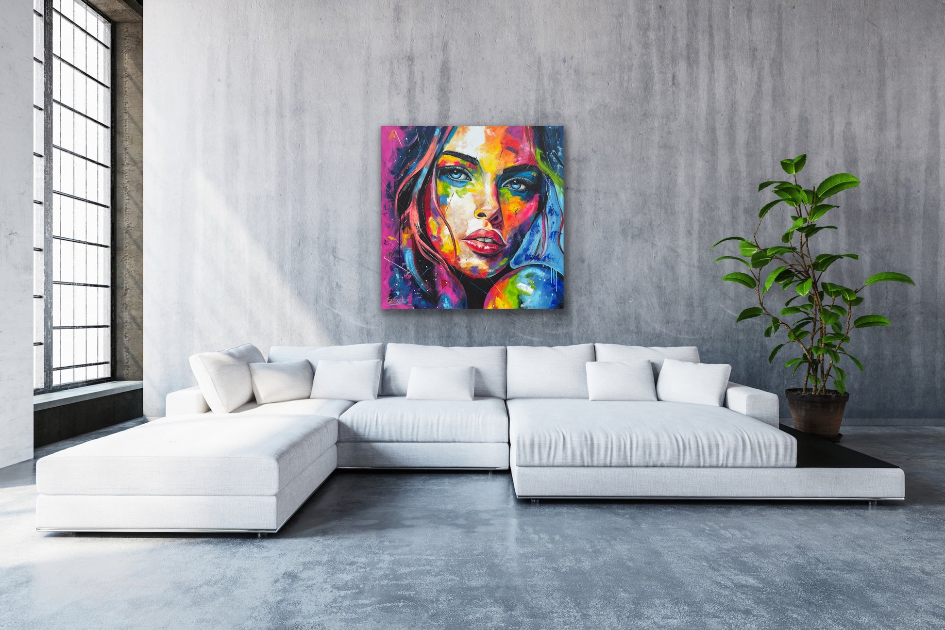 dreams....ist die Frage, wer denn hier träumt. Der Betrachter oder die Dame auf dem Bild. Fakt ist, Träume sollte jeder haben und auch versuchen, sie zu erreichen. Denn was wäre das Leben ohne Träume? Die Verschmelzung von abstrakten, expressionistischen und pop-artigen Elementen spiegelt das Auf und Ab der Gefühle wider. Jede kräftige Farbe bringt Energie und Leben in den Raum, während die intensiven Augen die Tiefe und Seele offenbaren. Es ist eine Einladung, zu träumen..:-).
