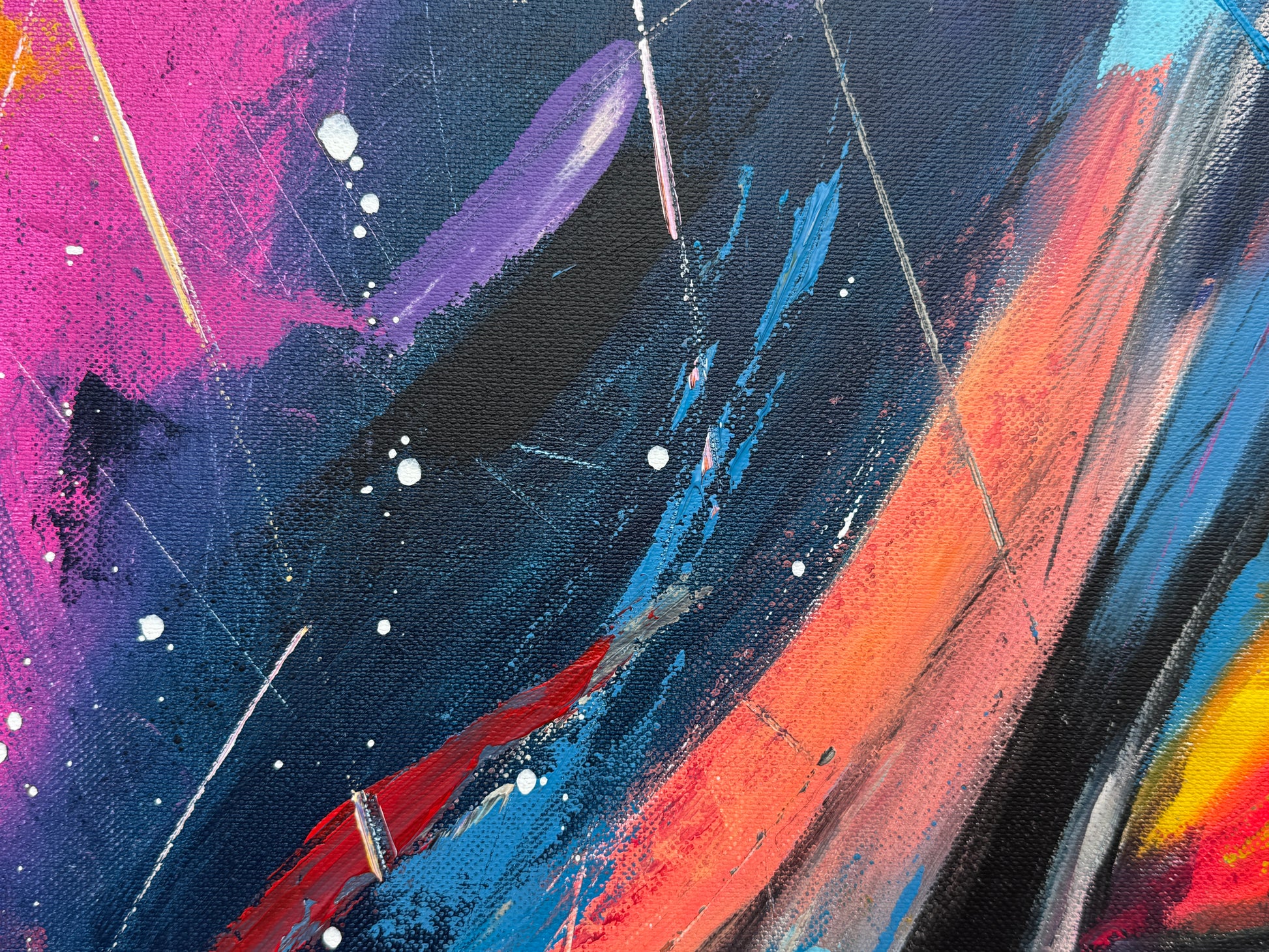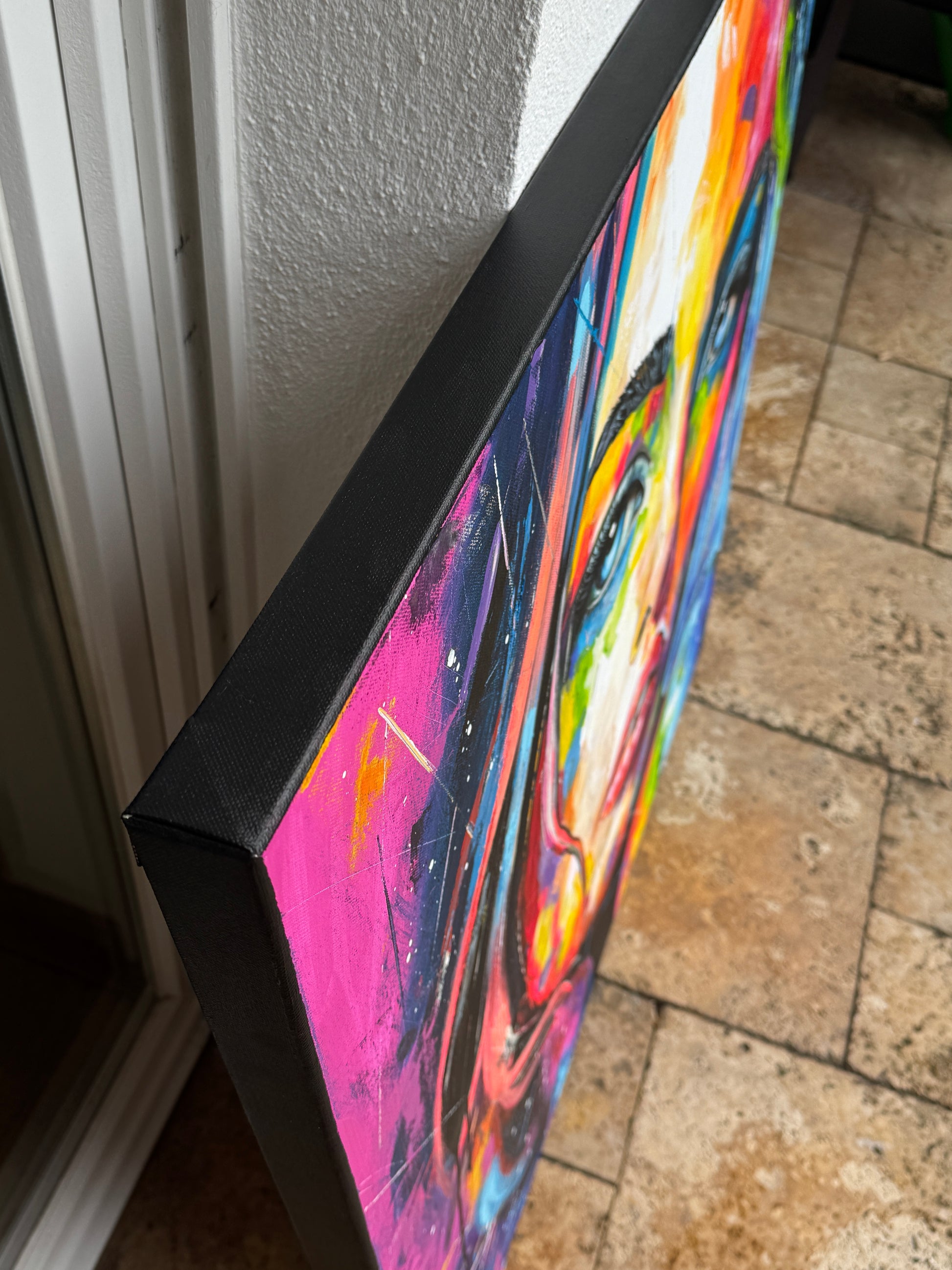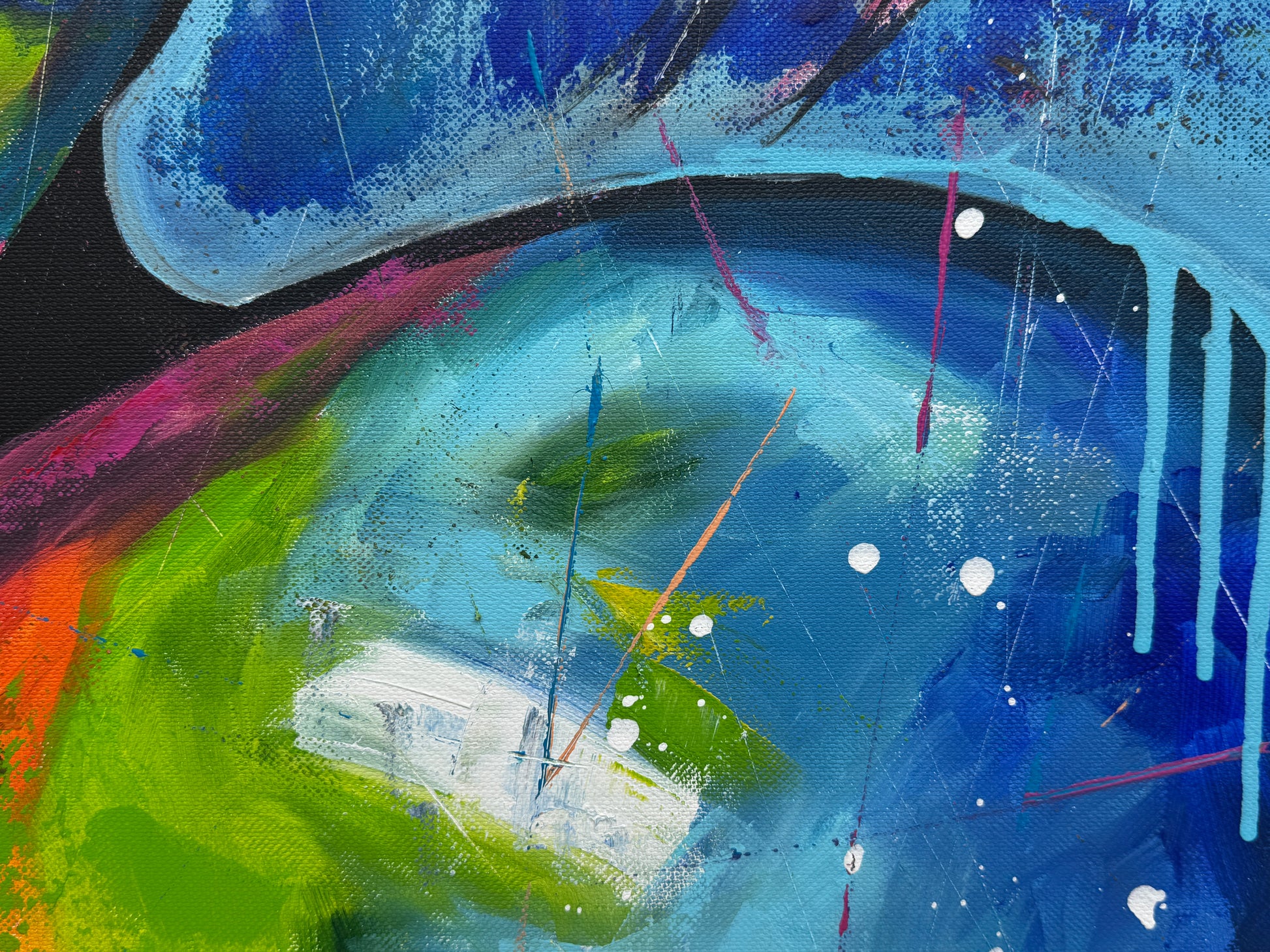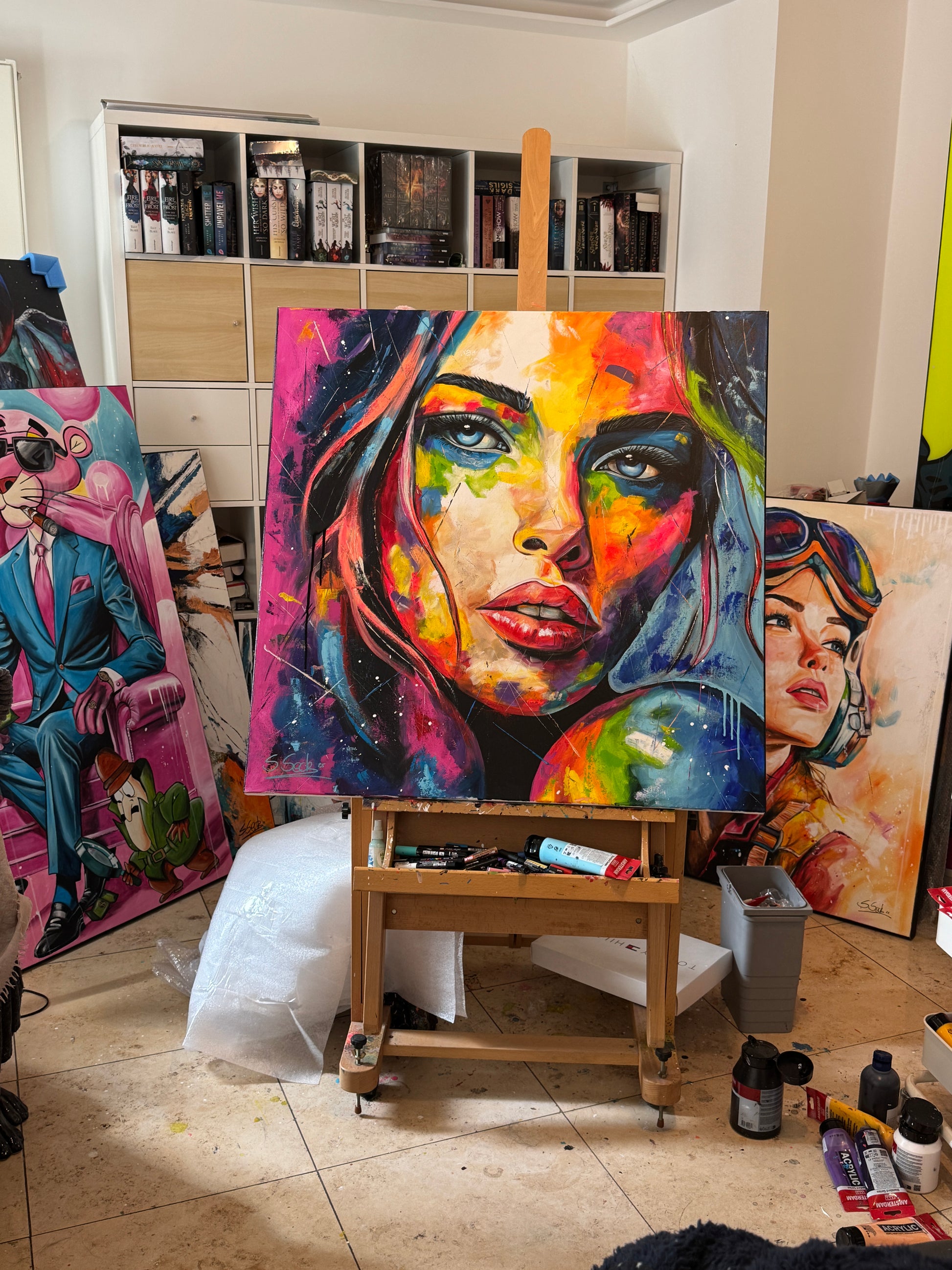 dreams....ist die Frage, wer denn hier träumt. Der Betrachter oder die Dame auf dem Bild. Fakt ist, Träume sollte jeder haben und auch versuchen, sie zu erreichen. Denn was wäre das Leben ohne Träume? Die Verschmelzung von abstrakten, expressionistischen und pop-artigen Elementen spiegelt das Auf und Ab der Gefühle wider. Jede kräftige Farbe bringt Energie und Leben in den Raum, während die intensiven Augen die Tiefe und Seele offenbaren. Es ist eine Einladung, zu träumen..:-).