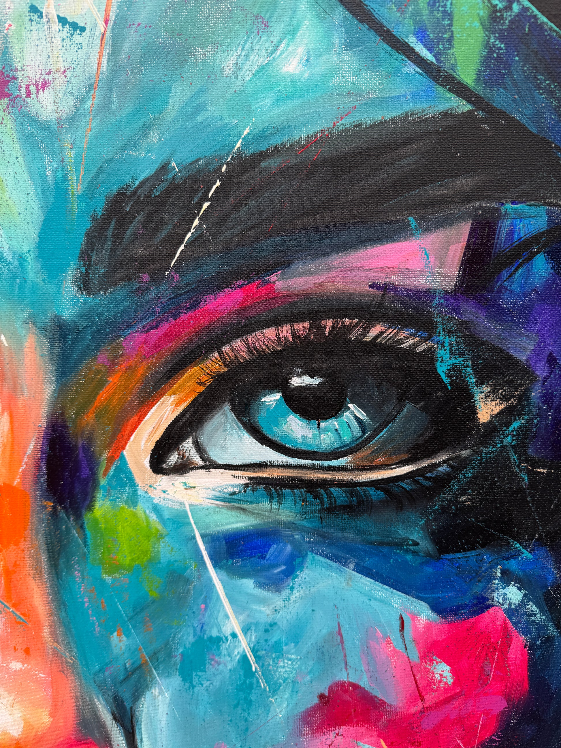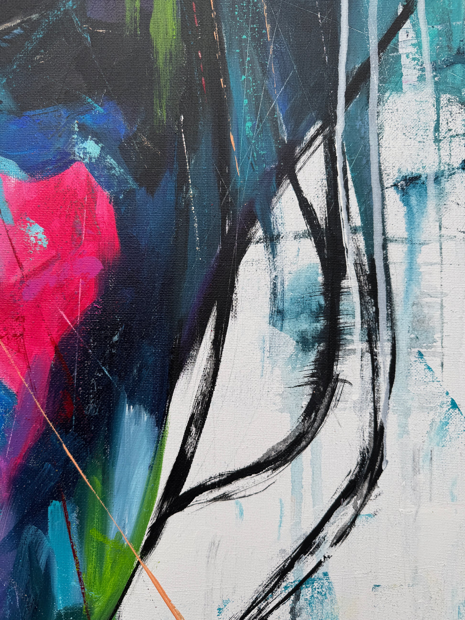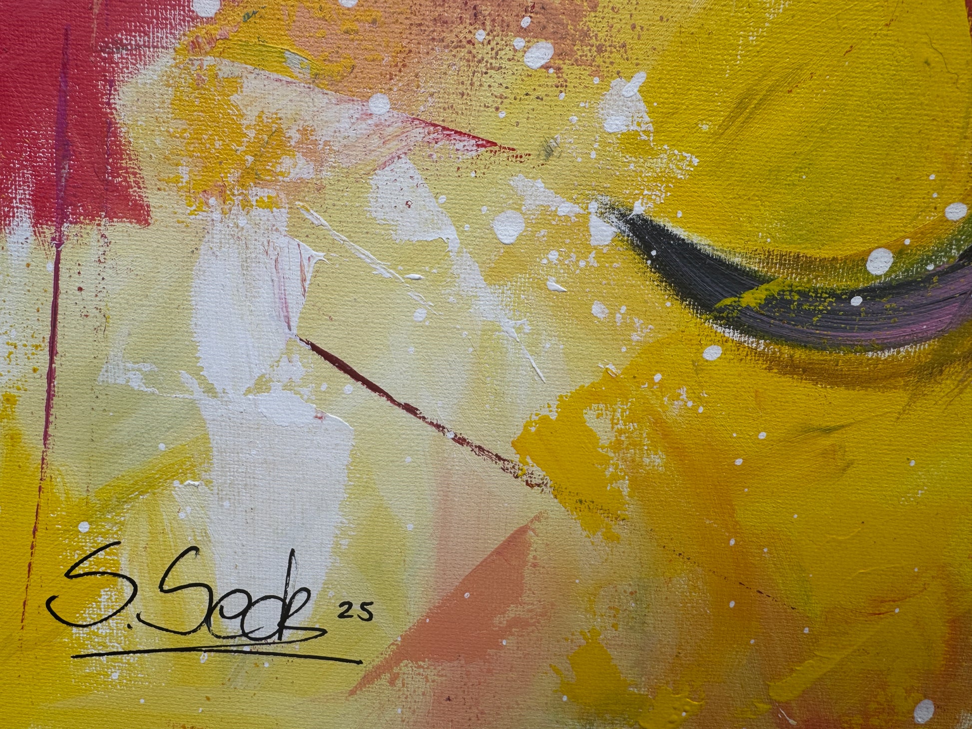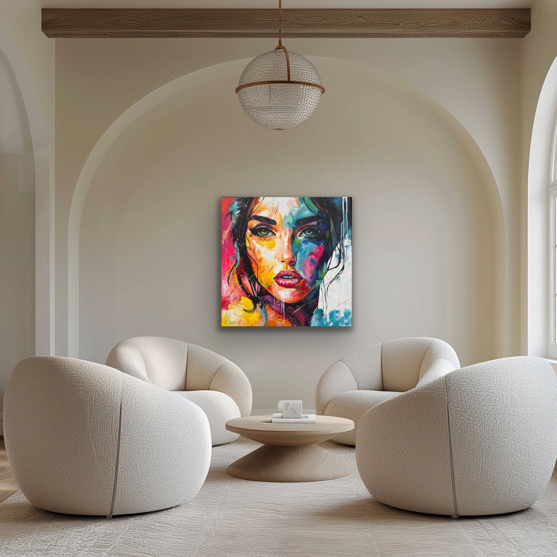Das Werk bringt eine energiegeladene Atmosphäre in jeden Raum, die den Betrachter fesselt und zum Nachdenken anregt. Ein Kaleidoskop aus Gefühlen – lebendig und unverkennbar.