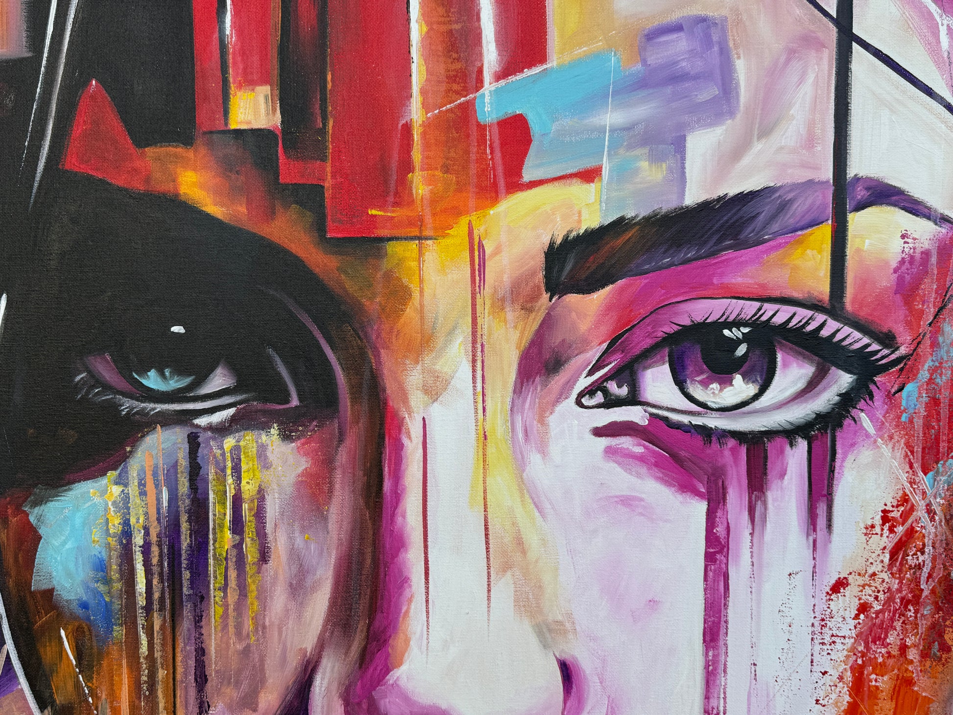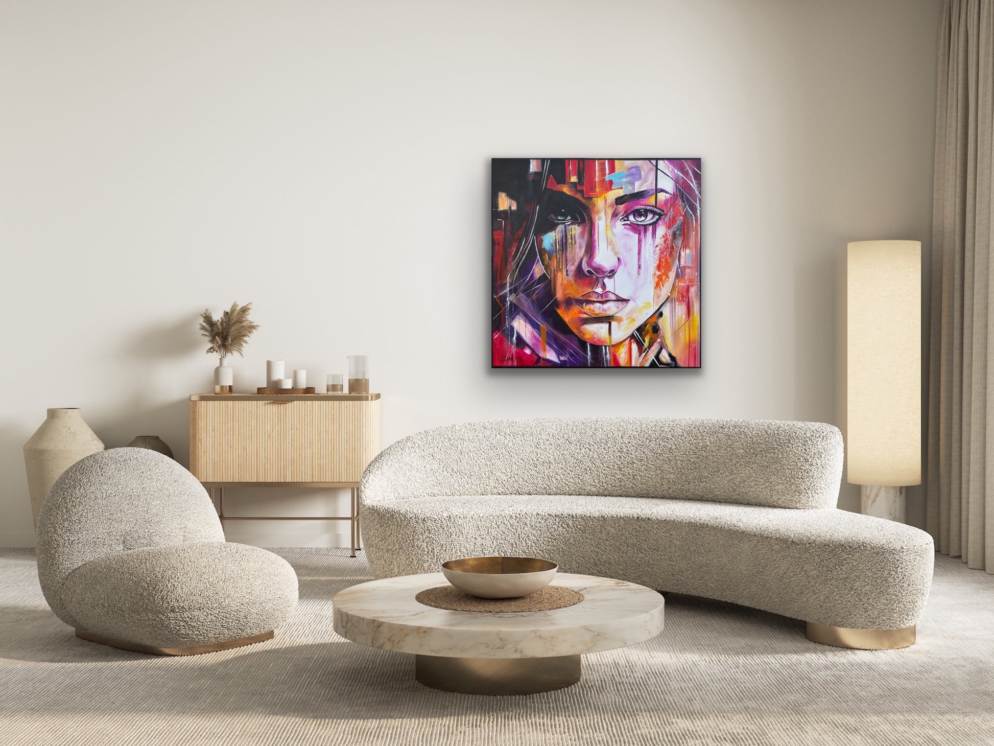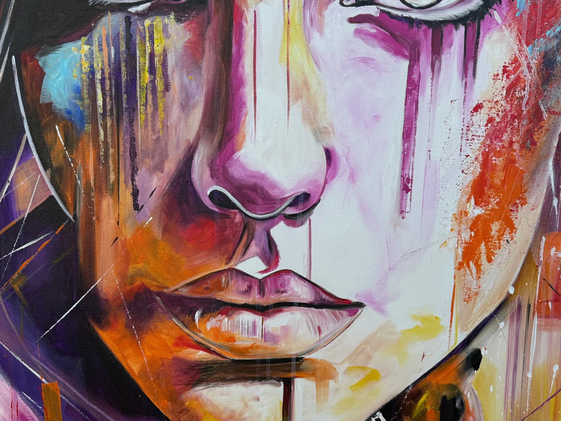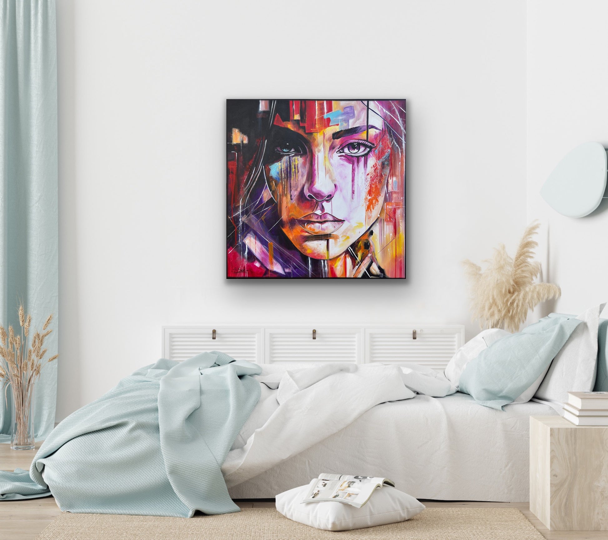 In diesem Gemälde fange ich die Vielschichtigkeit der menschlichen Emotionen ein, gemischt mit einem Hauch von Pop-Art-Flair. Die lebendigen Akrylfarben reflektieren die Tiefe und die unterschiedlichen Facetten unserer Seele. Die abstrakte und expressionistische Herangehensweise verleiht dem Werk eine dynamische und dennoch mysteriöse Atmosphäre, die den Betrachter fesselt und zum Nachdenken anregt. In jedem Raum wird dieses Kunstwerk ein Gefühl von Energie und Inspiration bringen.