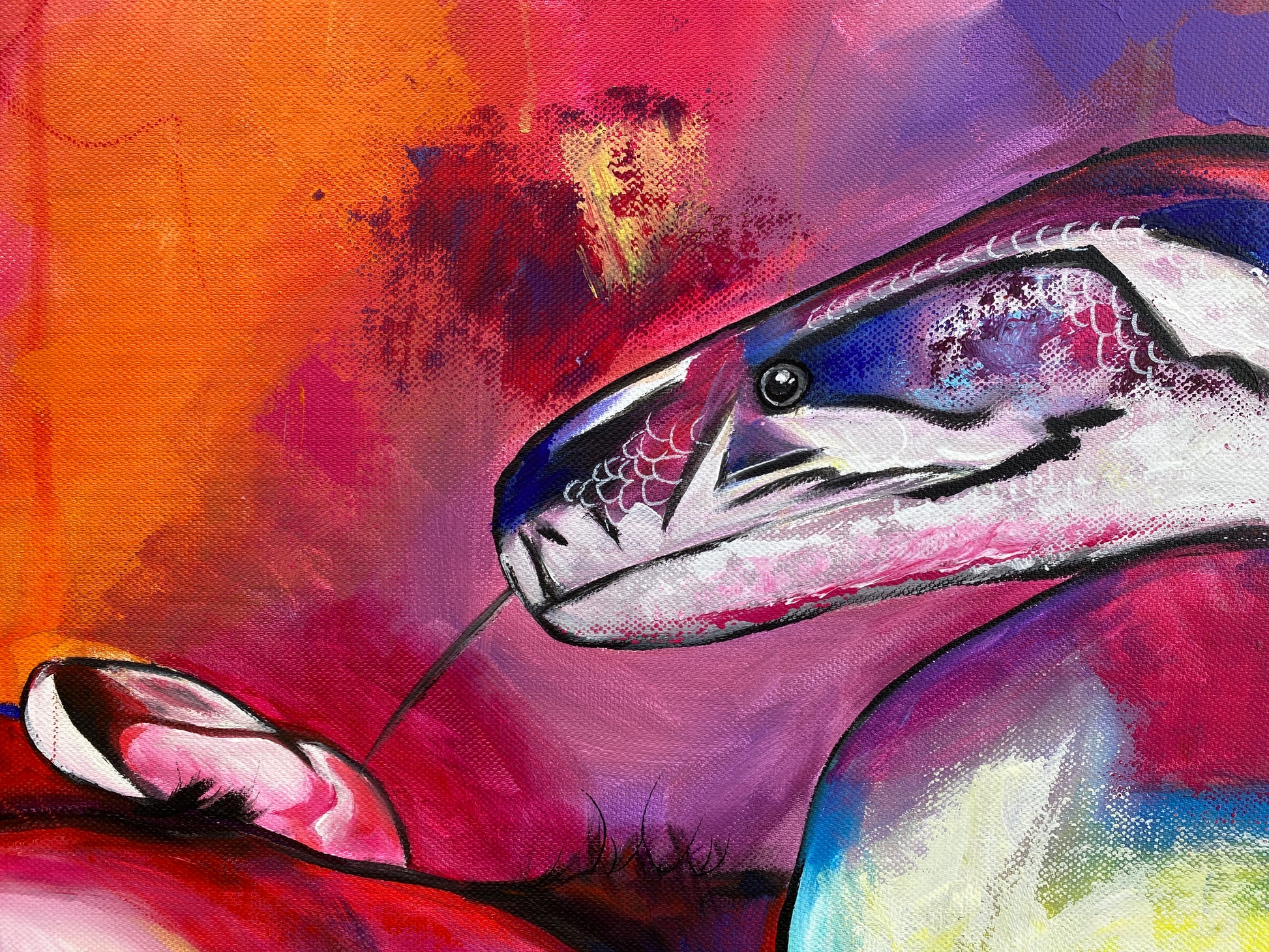 Eva führt dich in Versuchung, Eva ist pure Leidenschaft. Eva lockt mit all ihren Sinnen, vernebelt den Geist. Doch sie ist mehr, als die Augen wahrnehmen. Sie steht für Schönheit, ihre wachsamen Augen halten dich gefangen, sie beobachtet, fixiert. Wunderschön, wie eines der faszinierendsten Reptile überhaupt. Die Schlange.