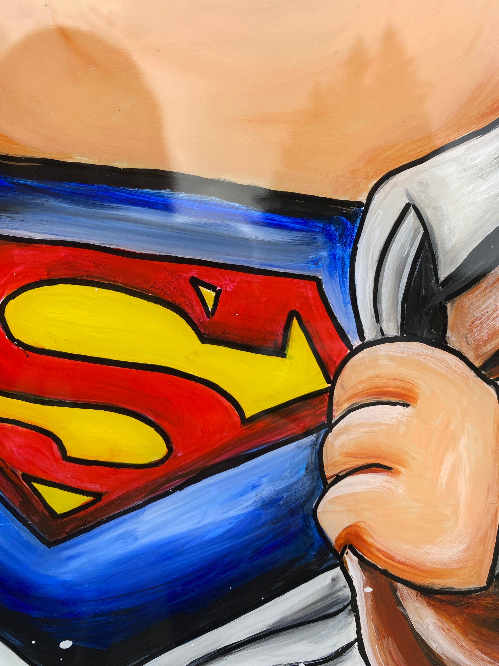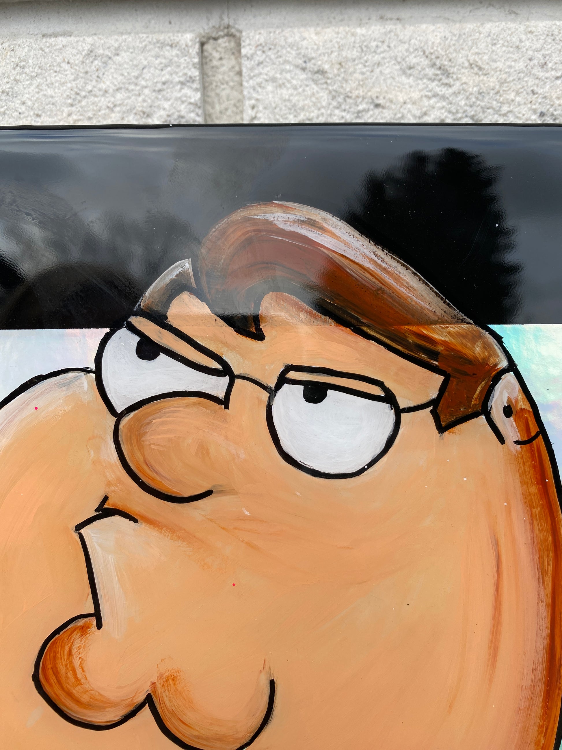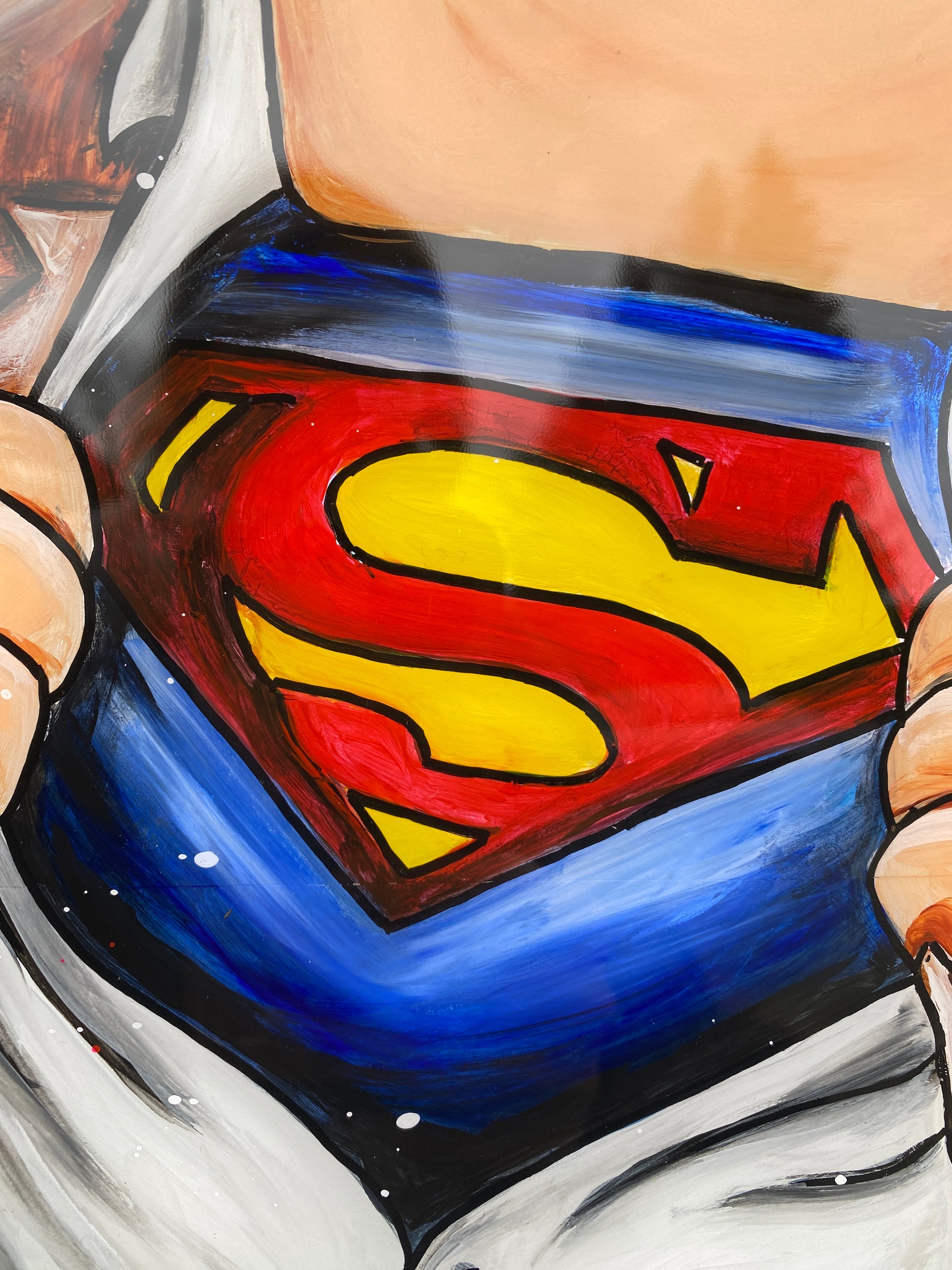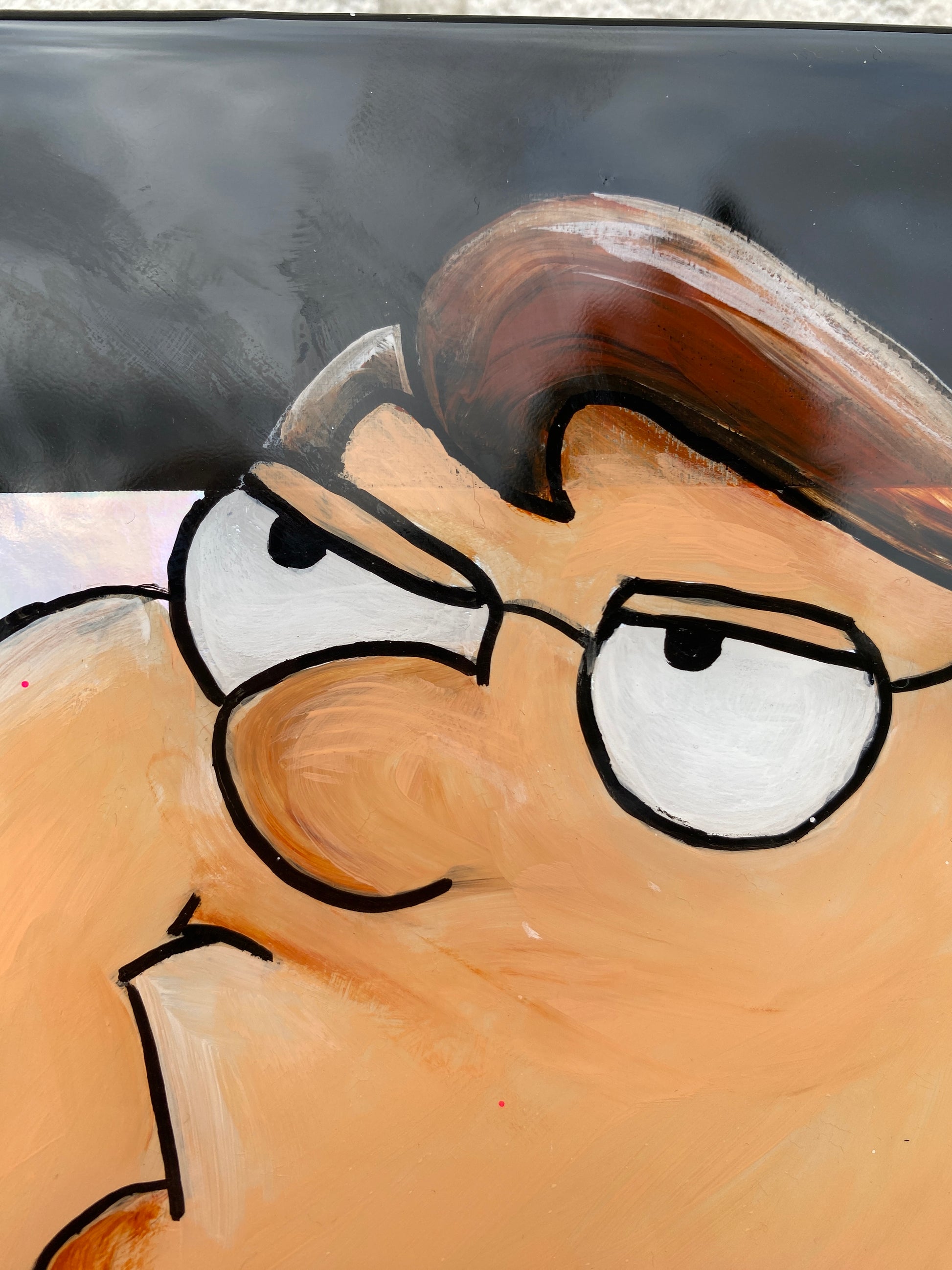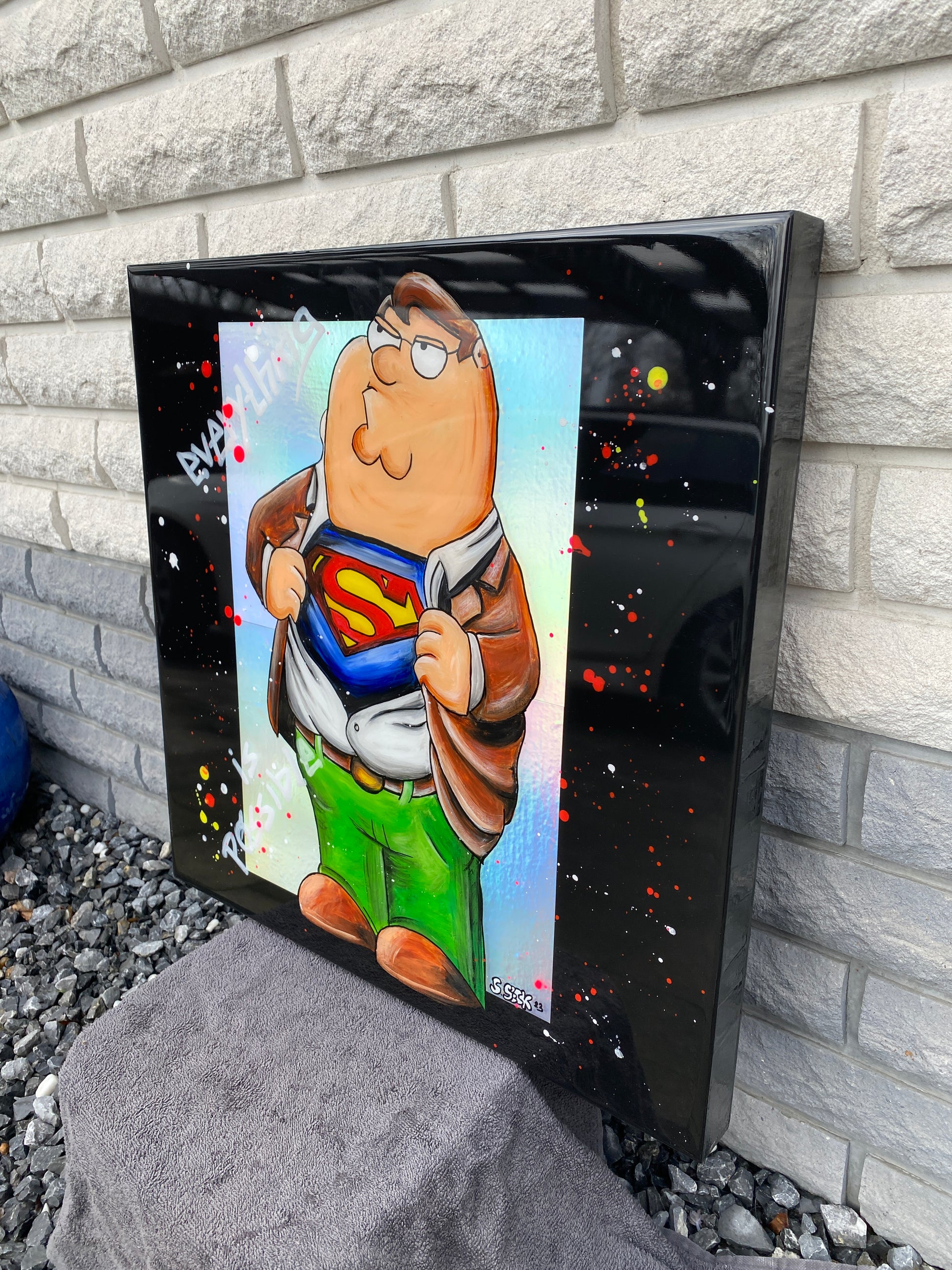 Dieses Werk wurde auf eine Holzleinwand gemalt. Der Hintergrund ist neben dem schwarz mit einer besonderen Folie versehen, die bei Bewegung in vielen verschiedenen Farben schimmert. Die Fotos zeigen diverse Farbgebungen, die entstehen können, wenn man an dem Werk vorbeiläuft.