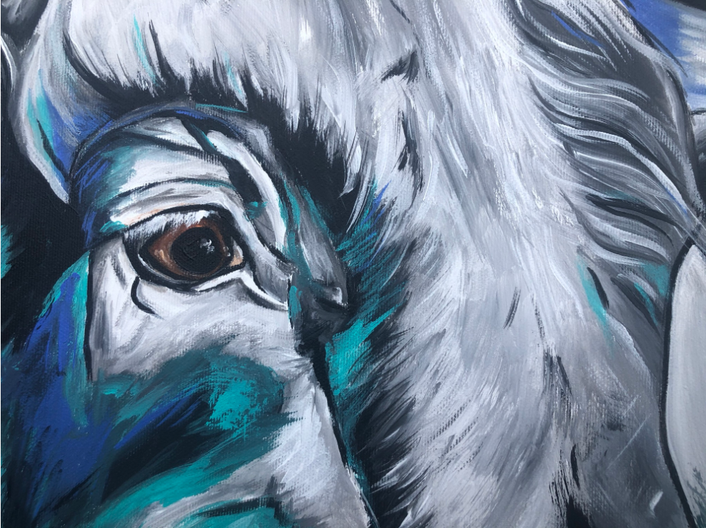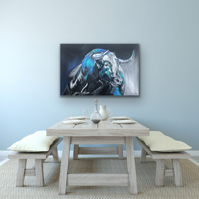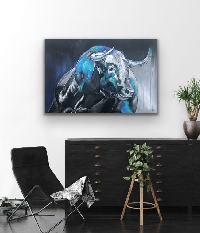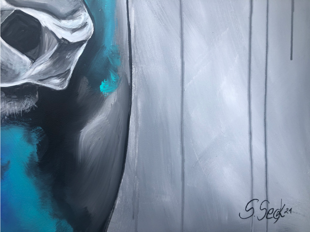 Ränder bemalt, Aufhängen ohne Rahmung möglich.