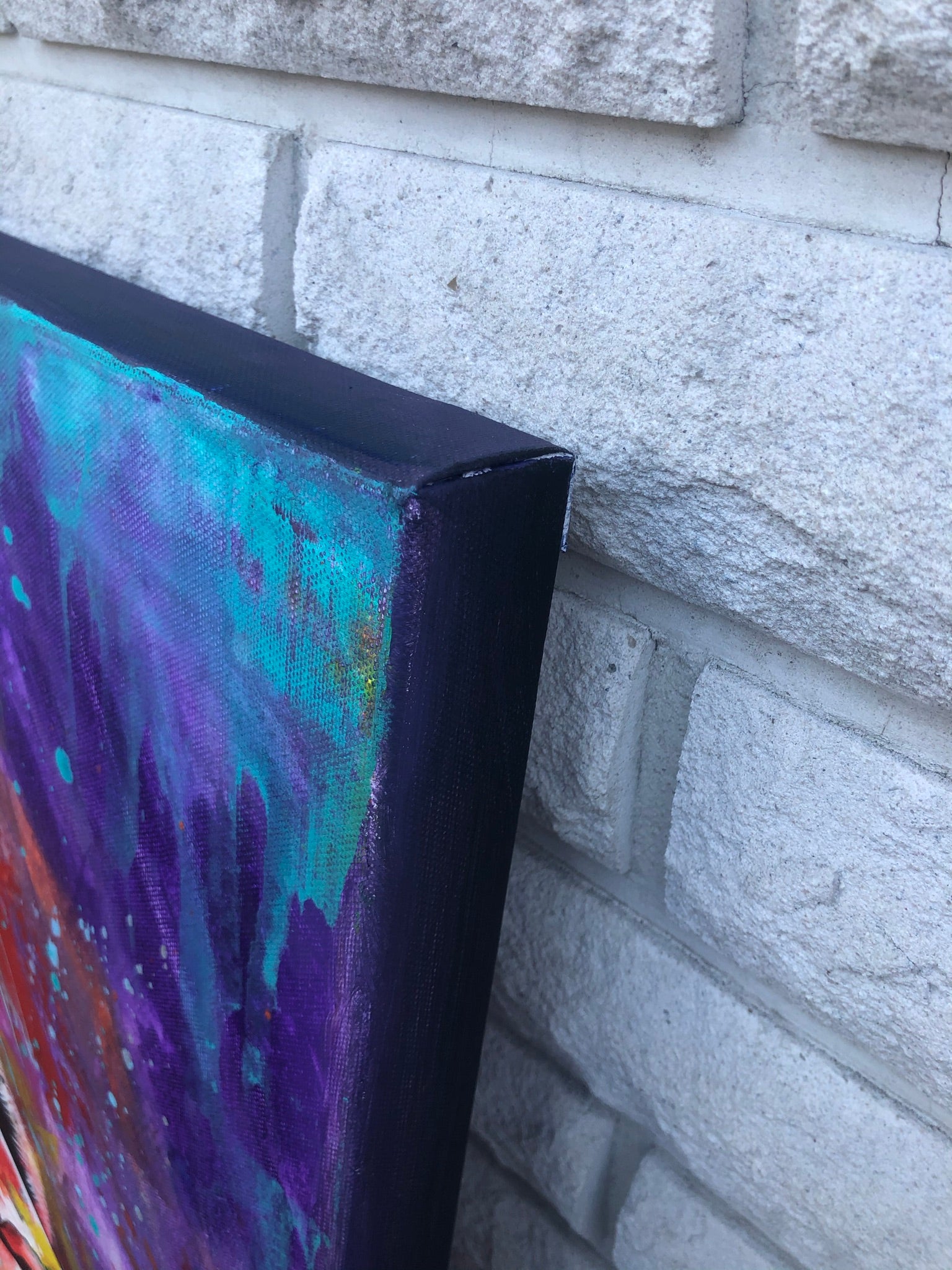 Ränder bemalt, somit ein sofortiges Aufhängen möglich.