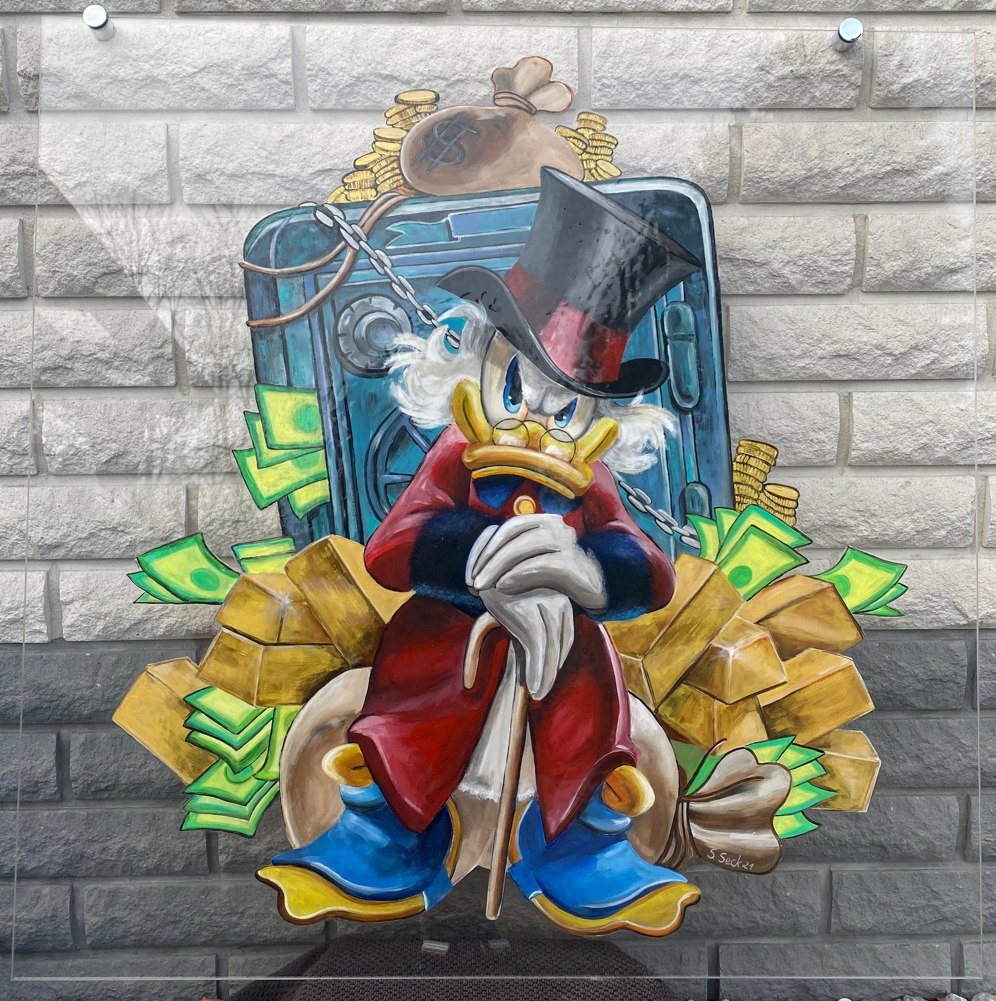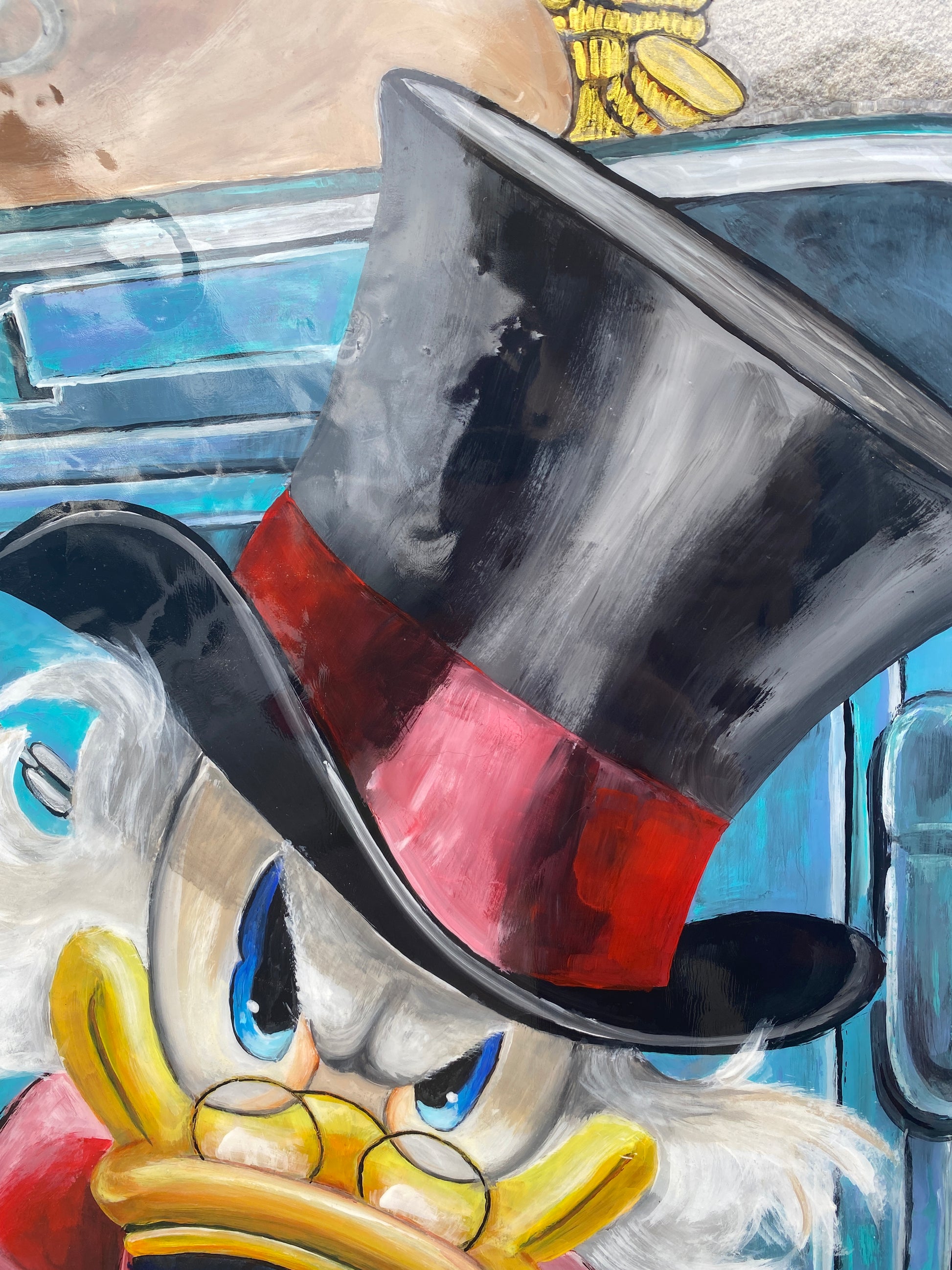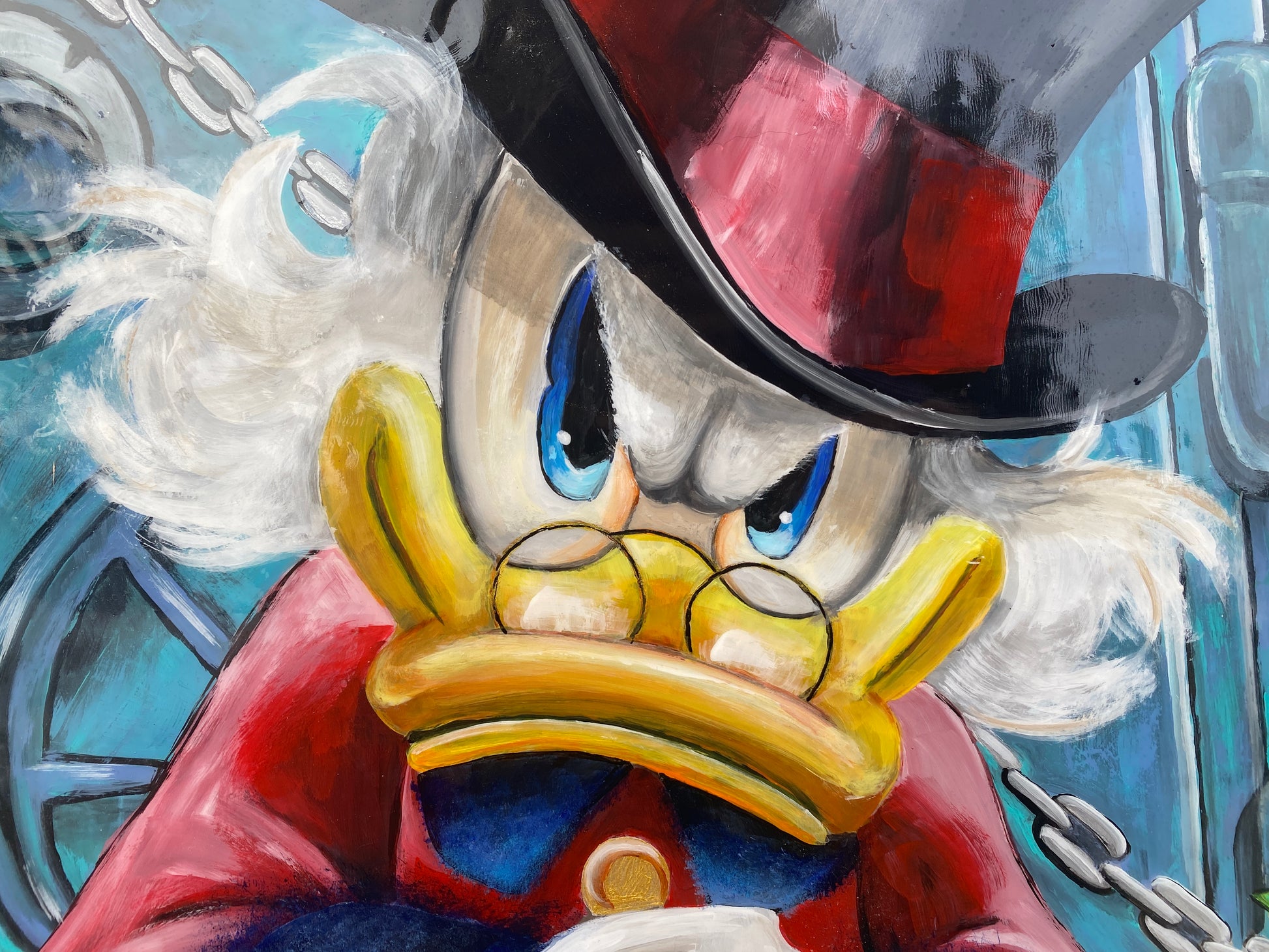 Die wahrscheinlich reichste Ente der Welt vor seinem Allerliebsten. Ein Cartoon, der niemals in Vergessenheit geraten wird und bekannt für seine Gier und seinen Geiz ist. Viele Herzen befinden sich in seinem Safe, somit bleibt er unvergessen.