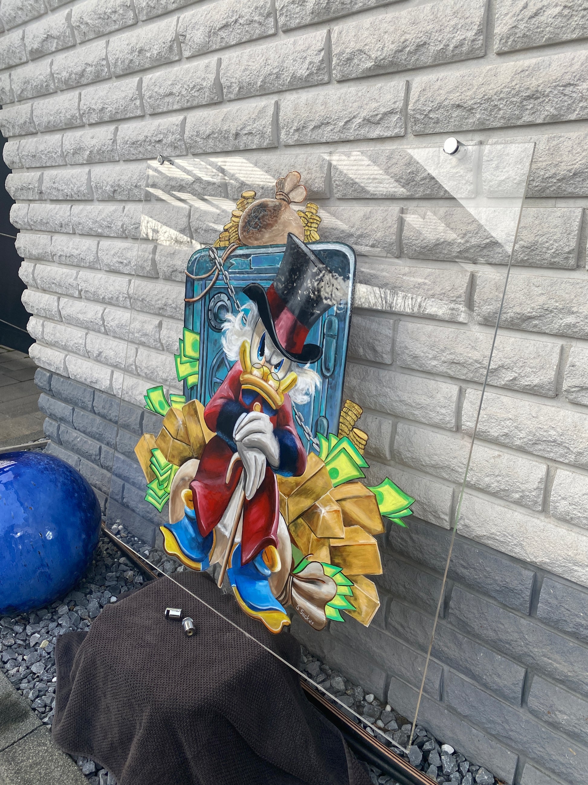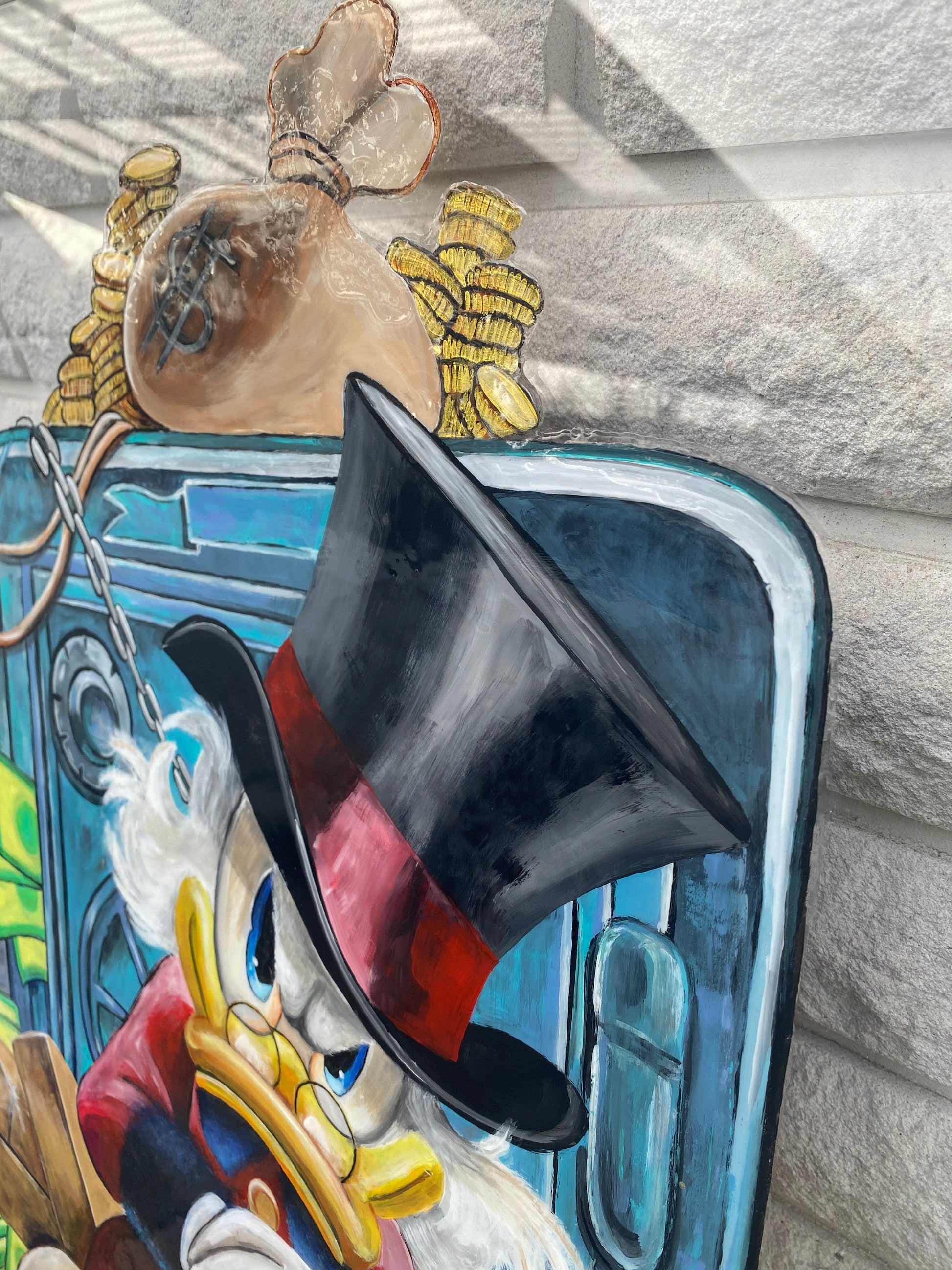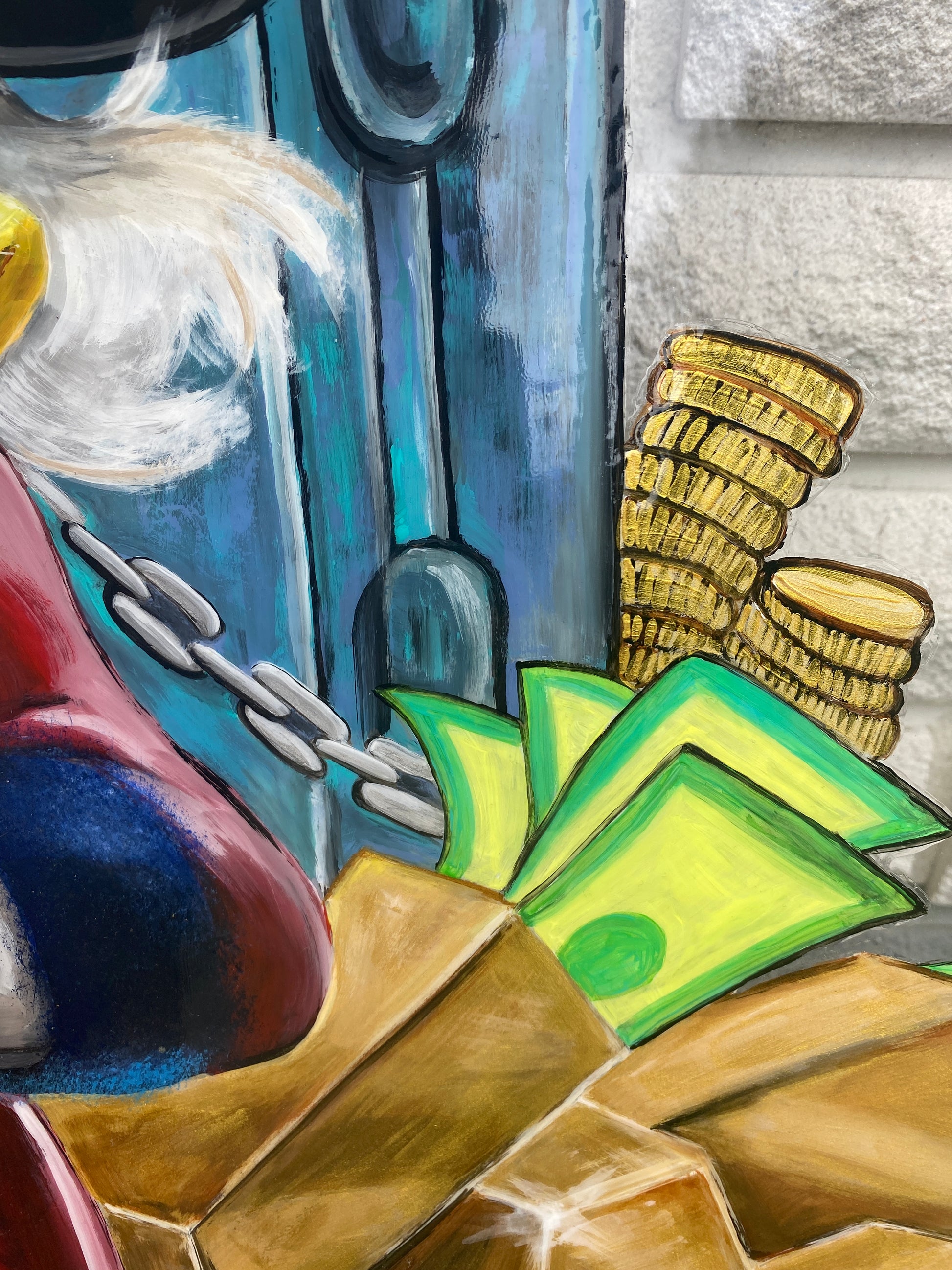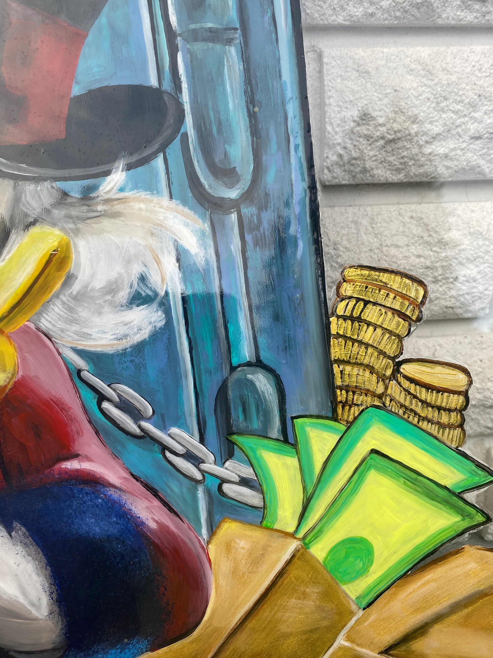 Die wahrscheinlich reichste Ente der Welt vor seinem Allerliebsten. Ein Cartoon, der niemals in Vergessenheit geraten wird und bekannt für seine Gier und seinen Geiz ist. Viele Herzen befinden sich in seinem Safe, somit bleibt er unvergessen.