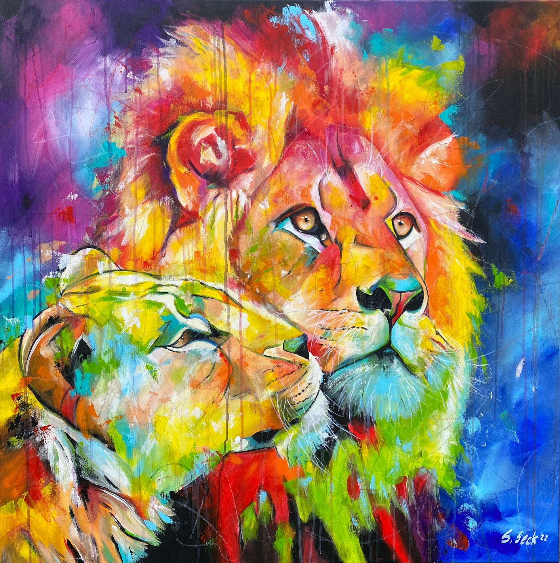 Der Löwe ist die zweitgrößte Katze der Welt und lebt in Rudeln. Zum Sozialverhalten der großen und traumhaft schönen Raubkatzen gehört das gegenseitige Austauschen des Rudelgeruches, auch "Greeting" genannt. Dies erreichen sie durch das gegenseitige Kopf- und Körperreiben.
