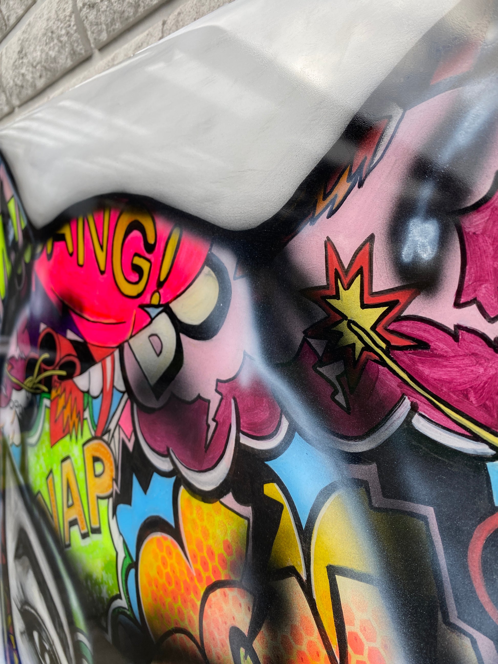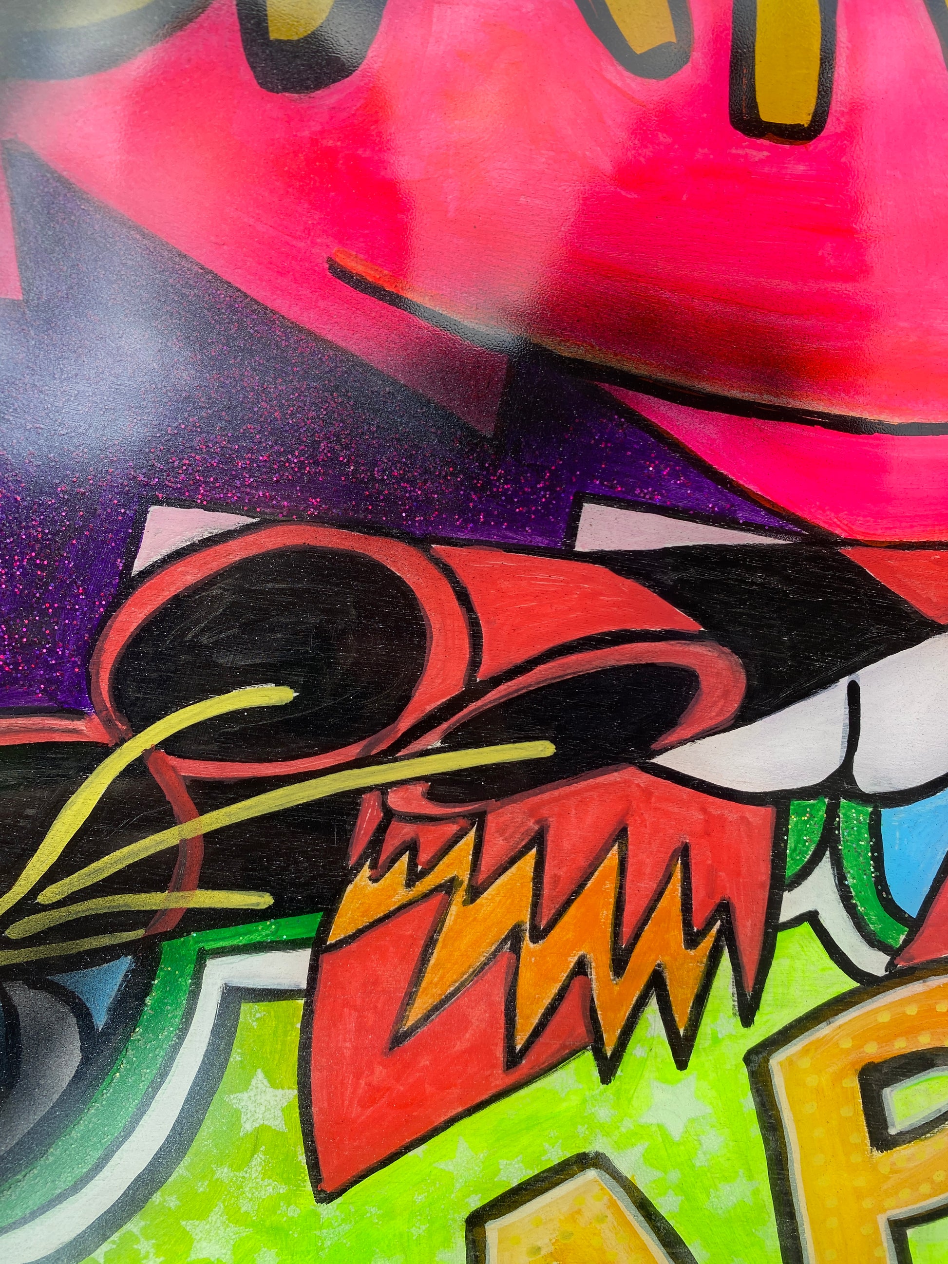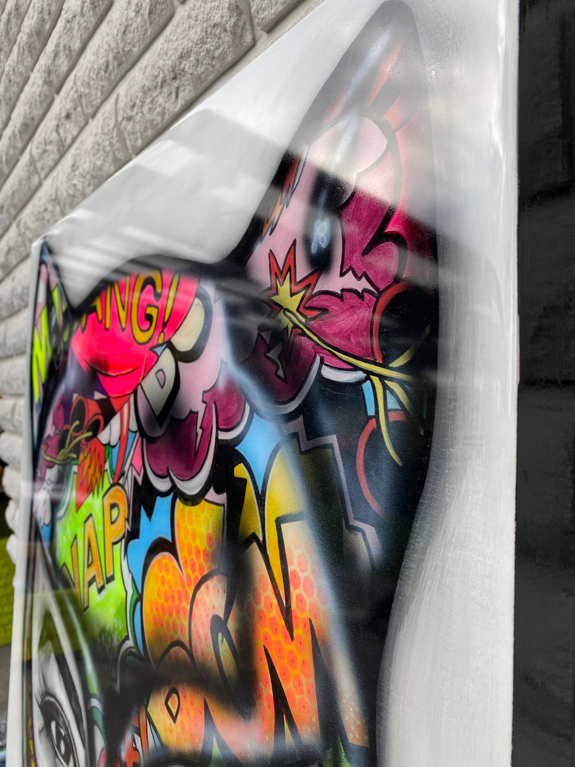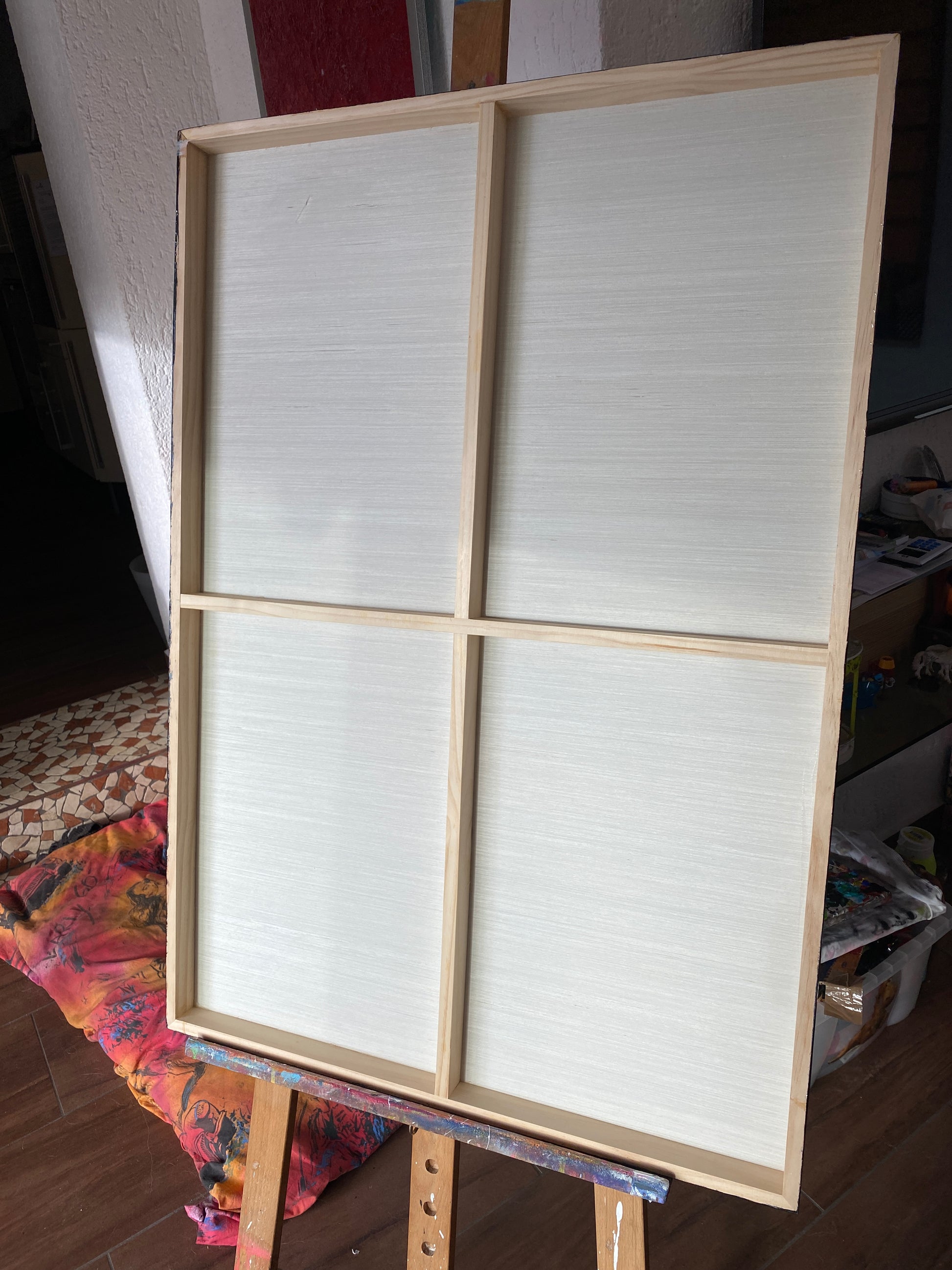 Das Werk wurde auf einer Holzleinwand gemalt und mit Epodex überzogen.