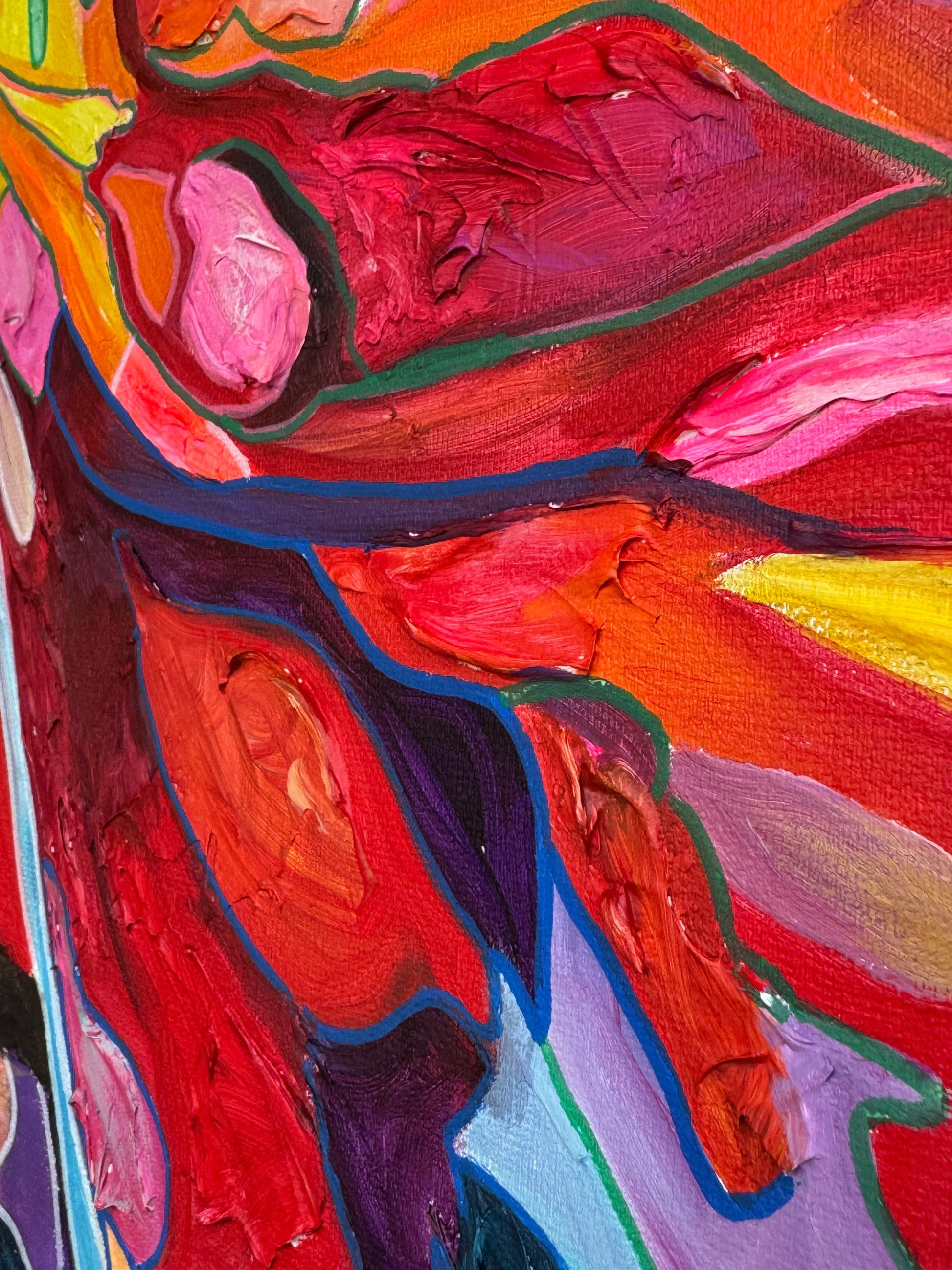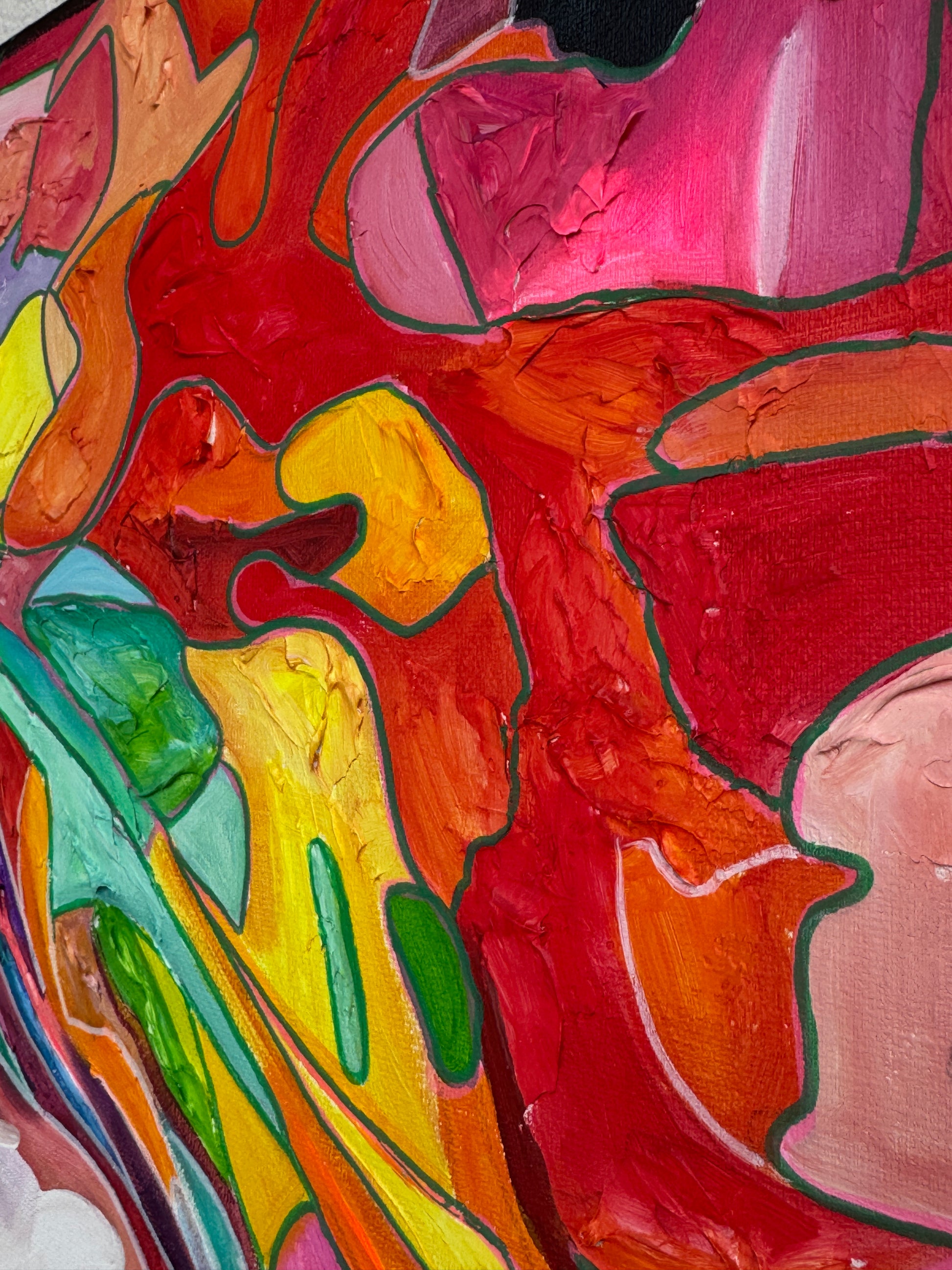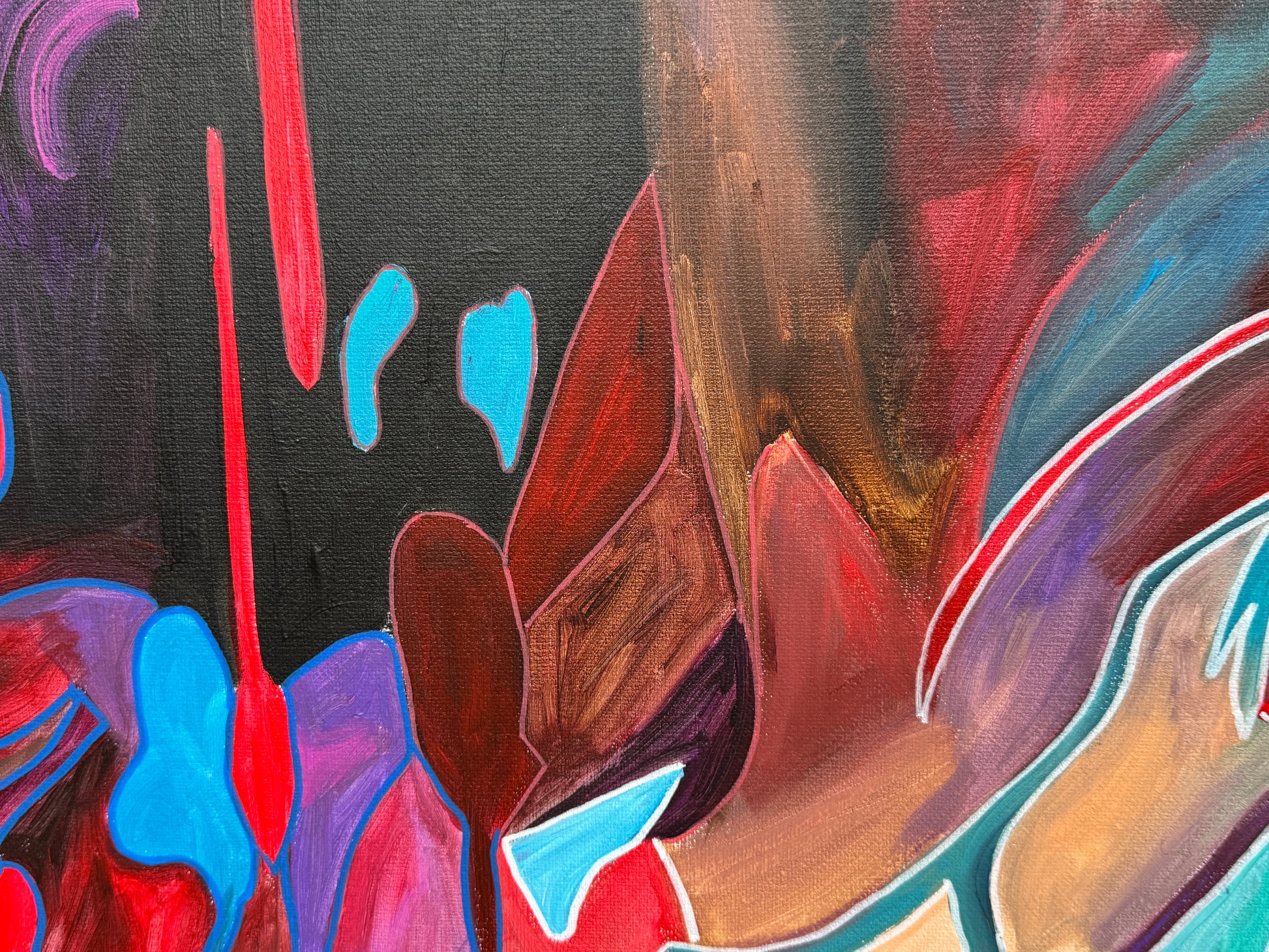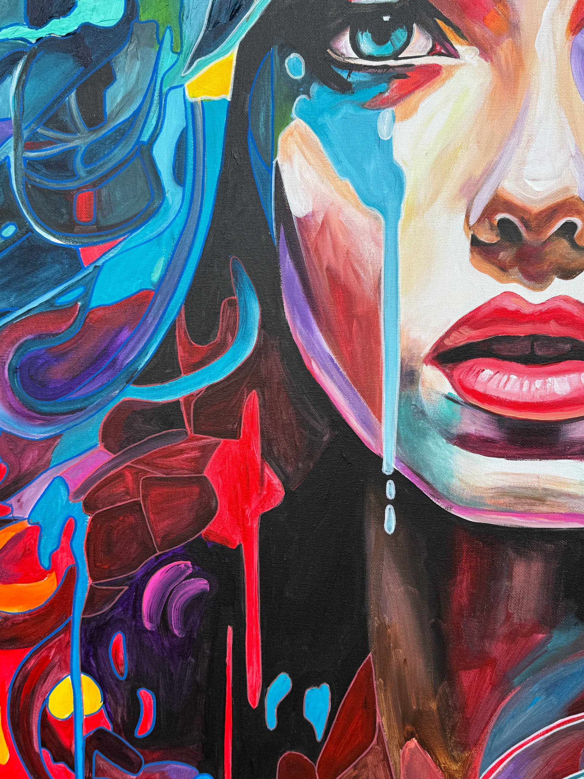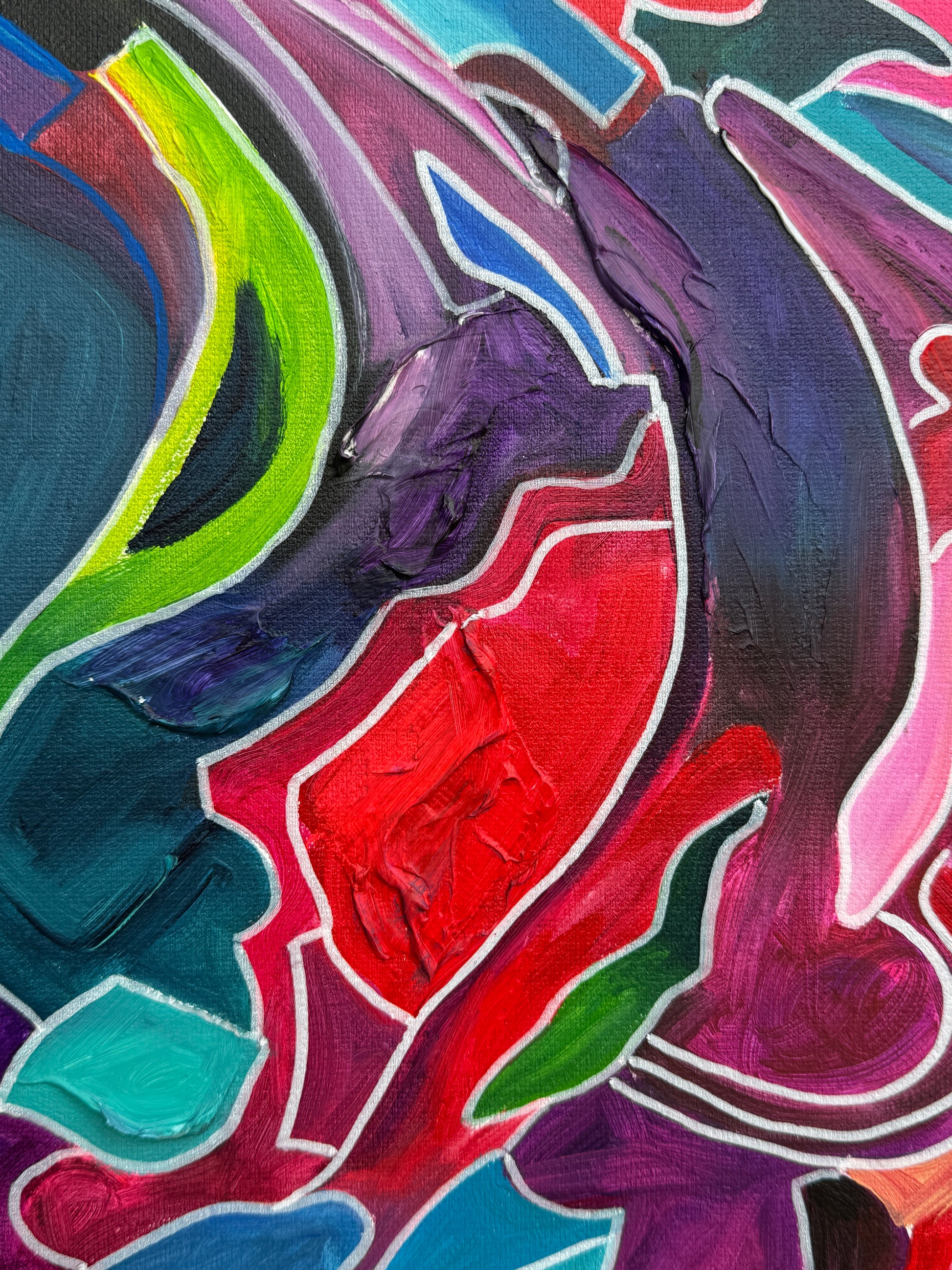 Meine Intention war es, die Dynamik und Vielseitigkeit der menschlichen Seele als Ganzes darzustellen, visualisiert durch den fließenden Übergang und die Explosion von Farben. Hydra evolution ist der Ursprung, der Beginn des menschlichen Seins. Der Anfang, an dem sich erst die Facetten manefestieren. Dieses Gemälde bringt eine energiereiche und inspirierende Atmosphäre in jeden Raum, ein Sinnbild dafür, wie aus Chaos Schönheit und Tiefe entstehen können.