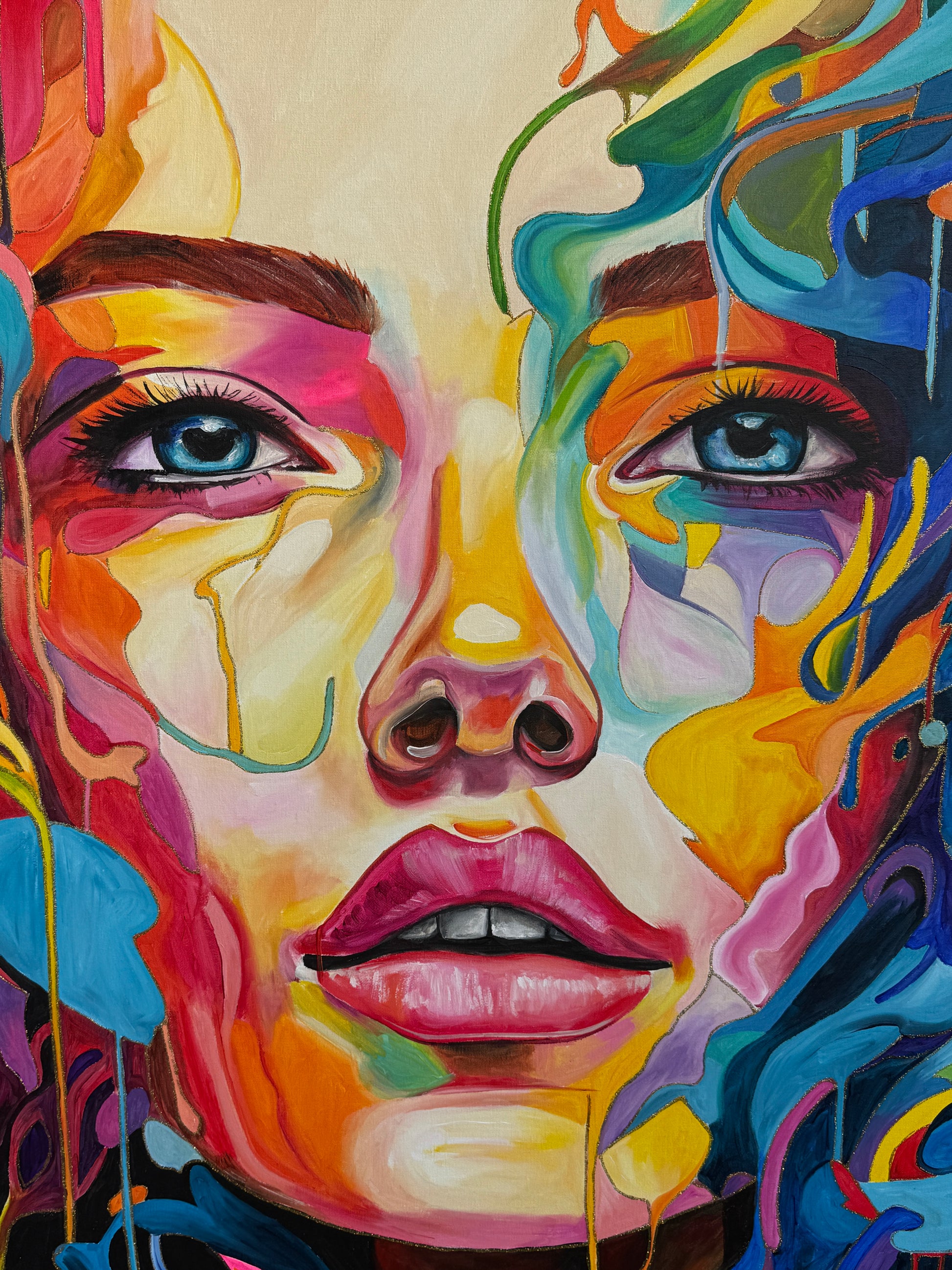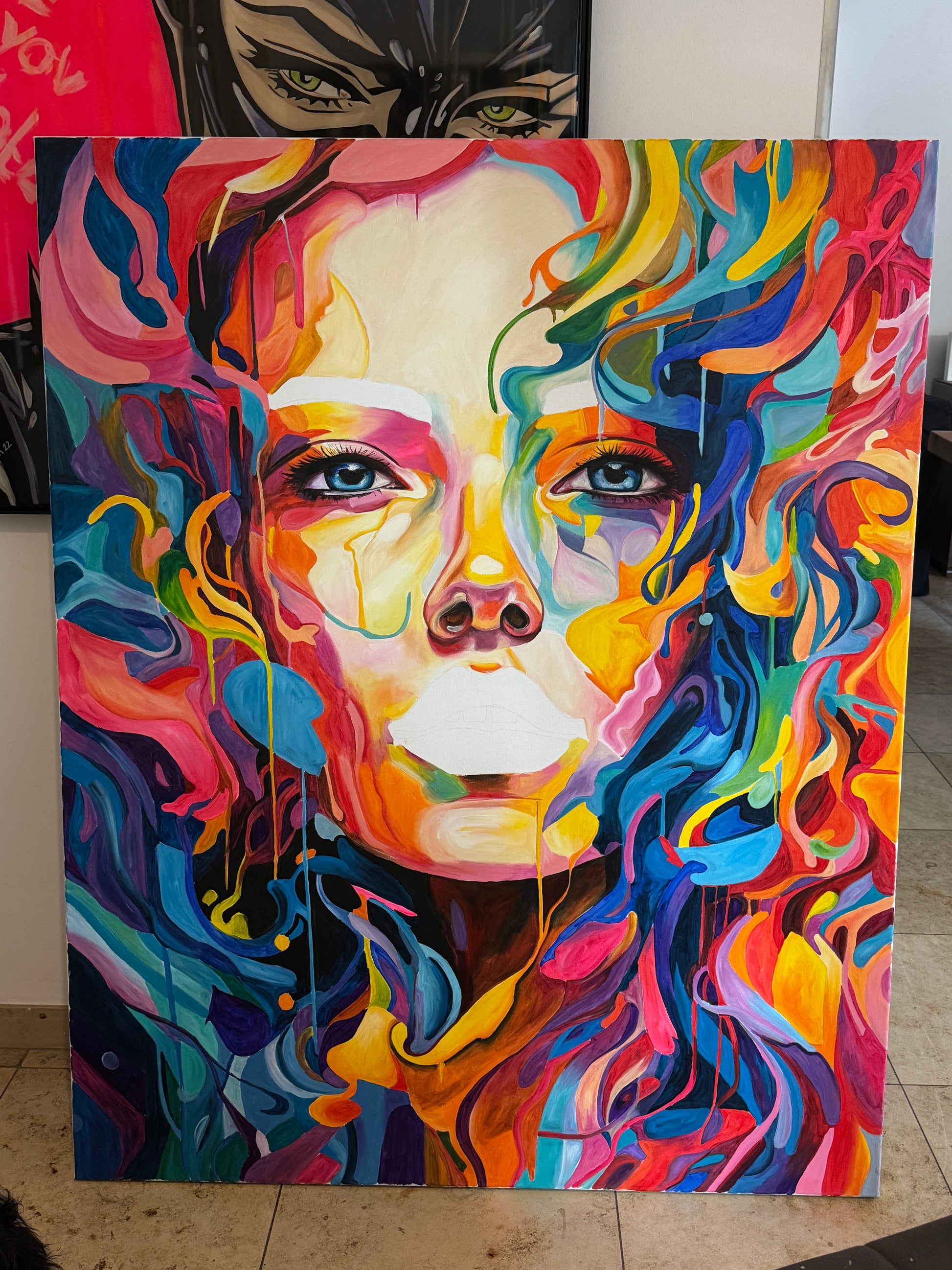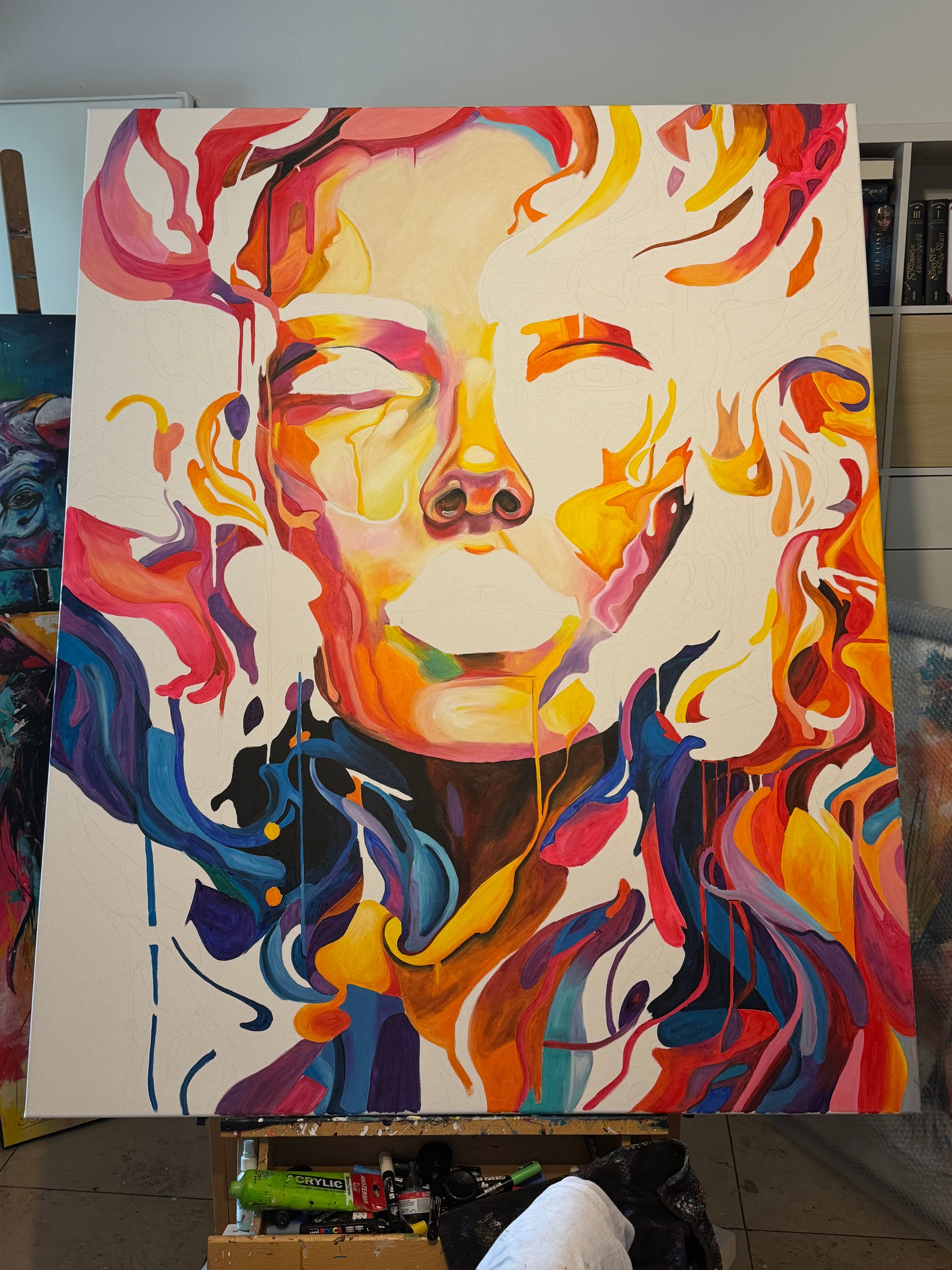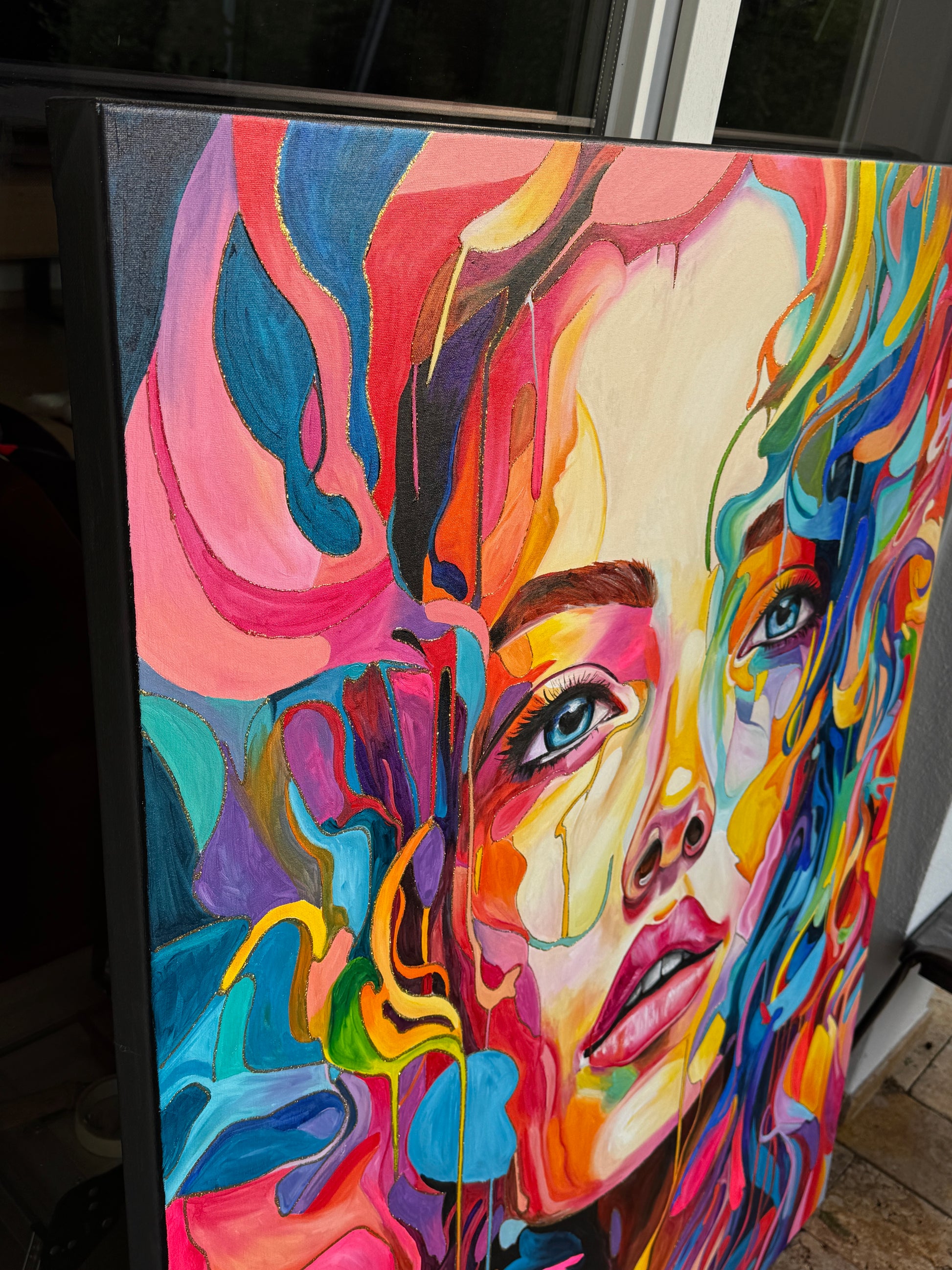 Auch hier wollte ich die kraftvolle Vielfalt der menschlichen Emotionen sichtbar machen. Jede Farbe, jede Linie erzählt von lebendiger Energie und innerer Tiefe.