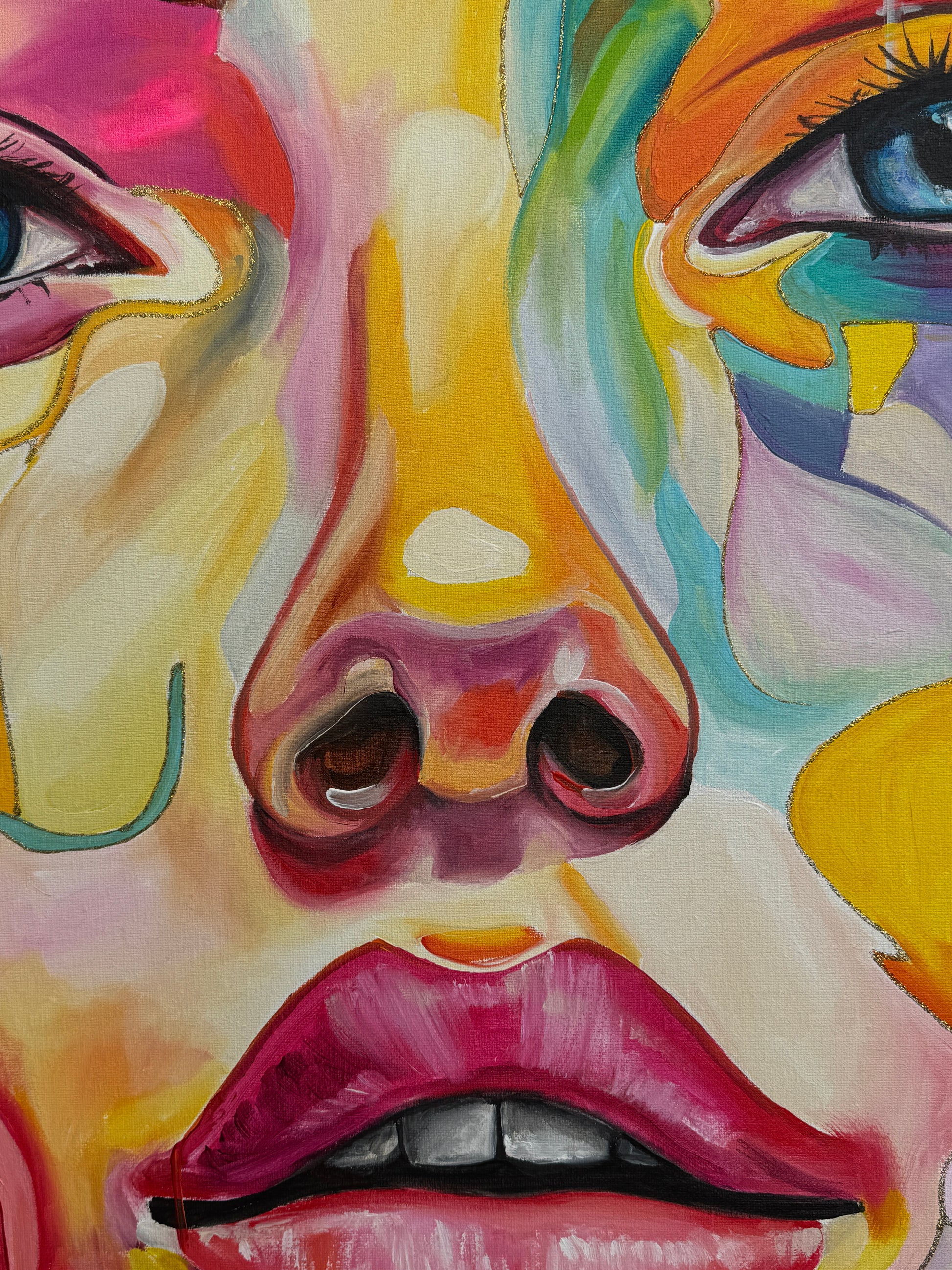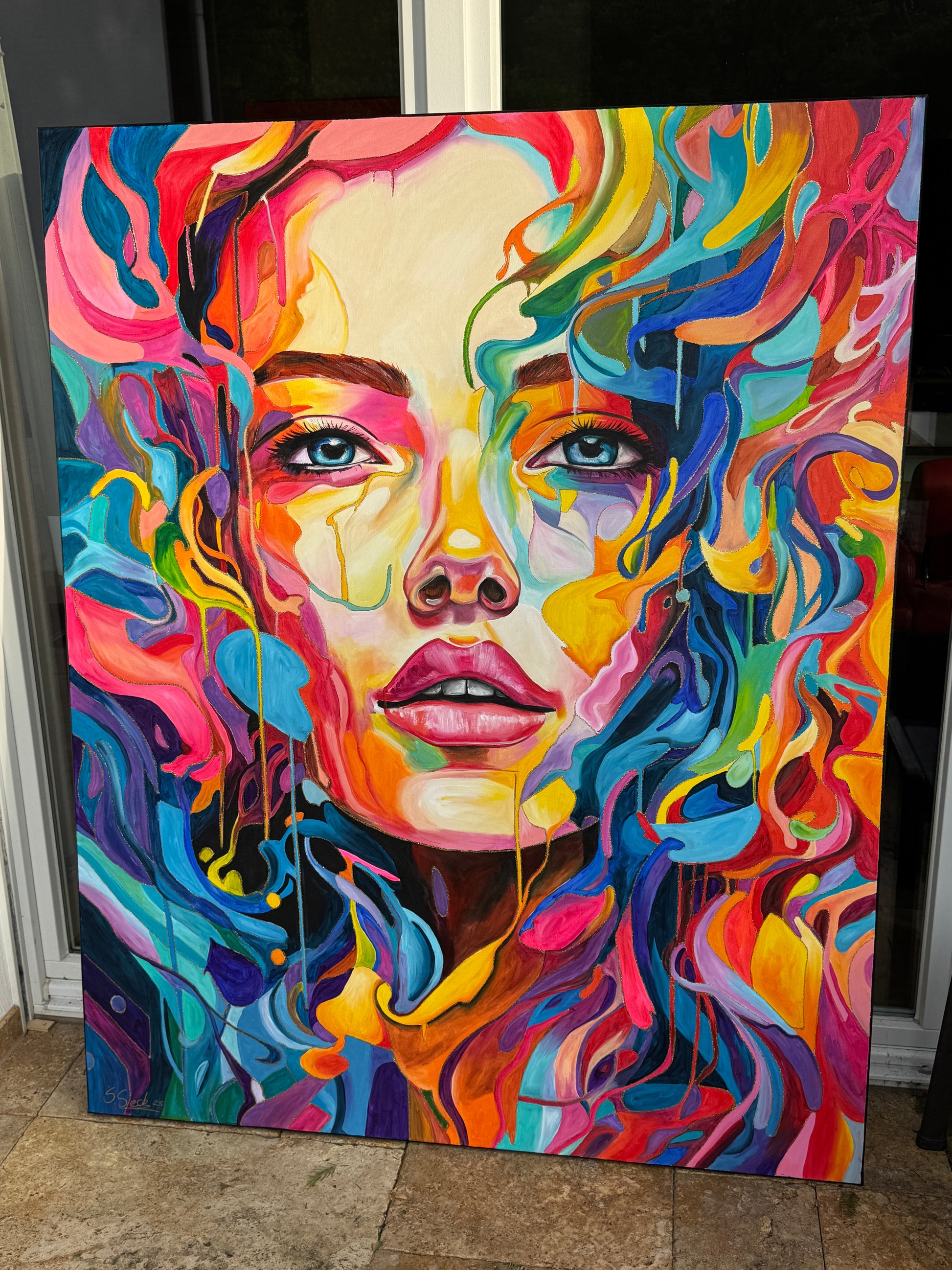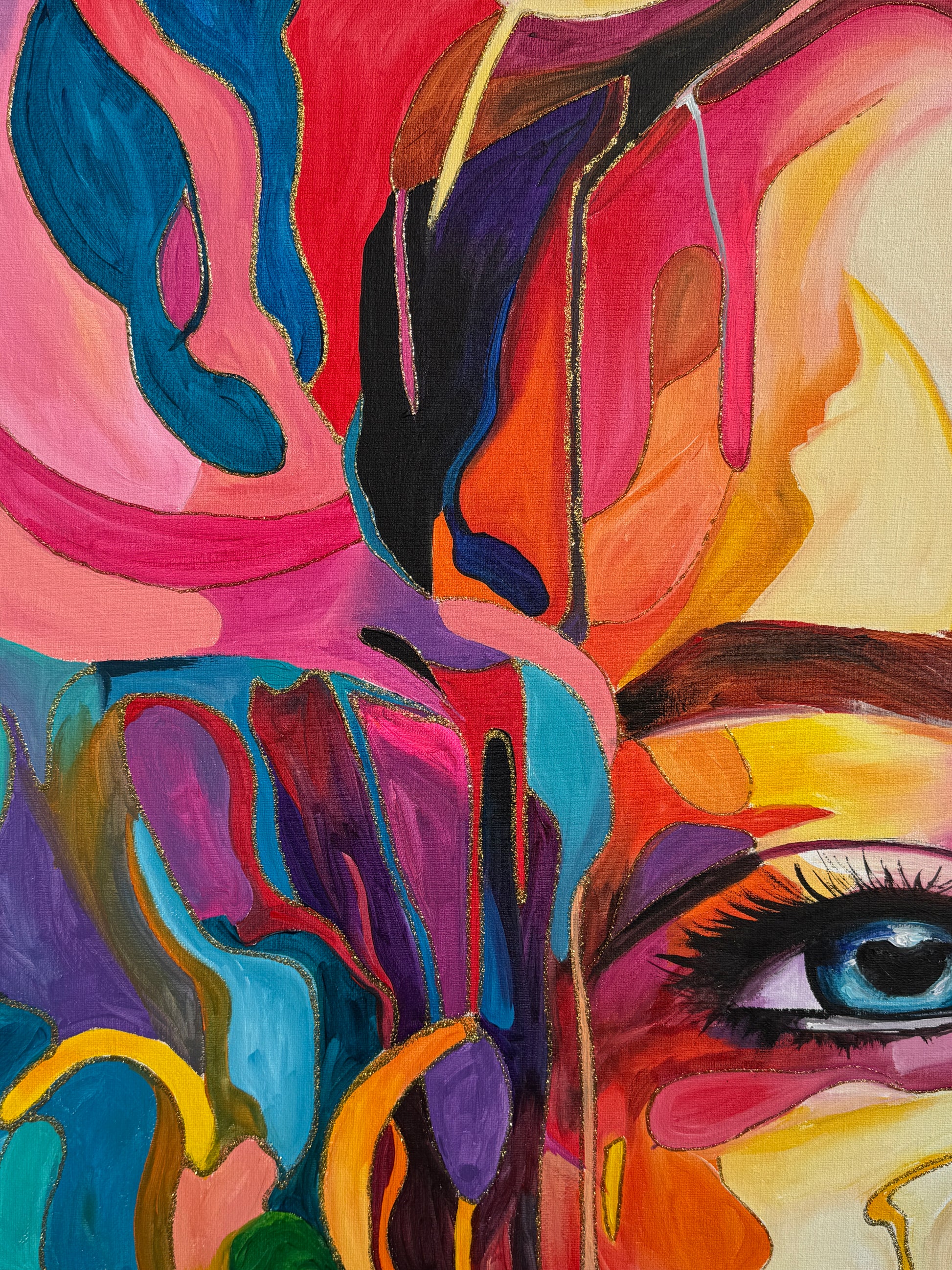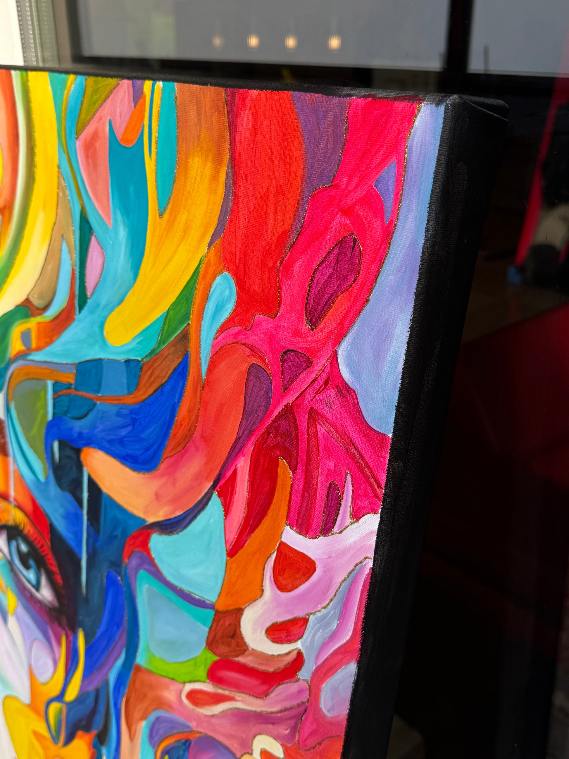 Auch hier wollte ich die kraftvolle Vielfalt der menschlichen Emotionen sichtbar machen. Jede Farbe, jede Linie erzählt von lebendiger Energie und innerer Tiefe.