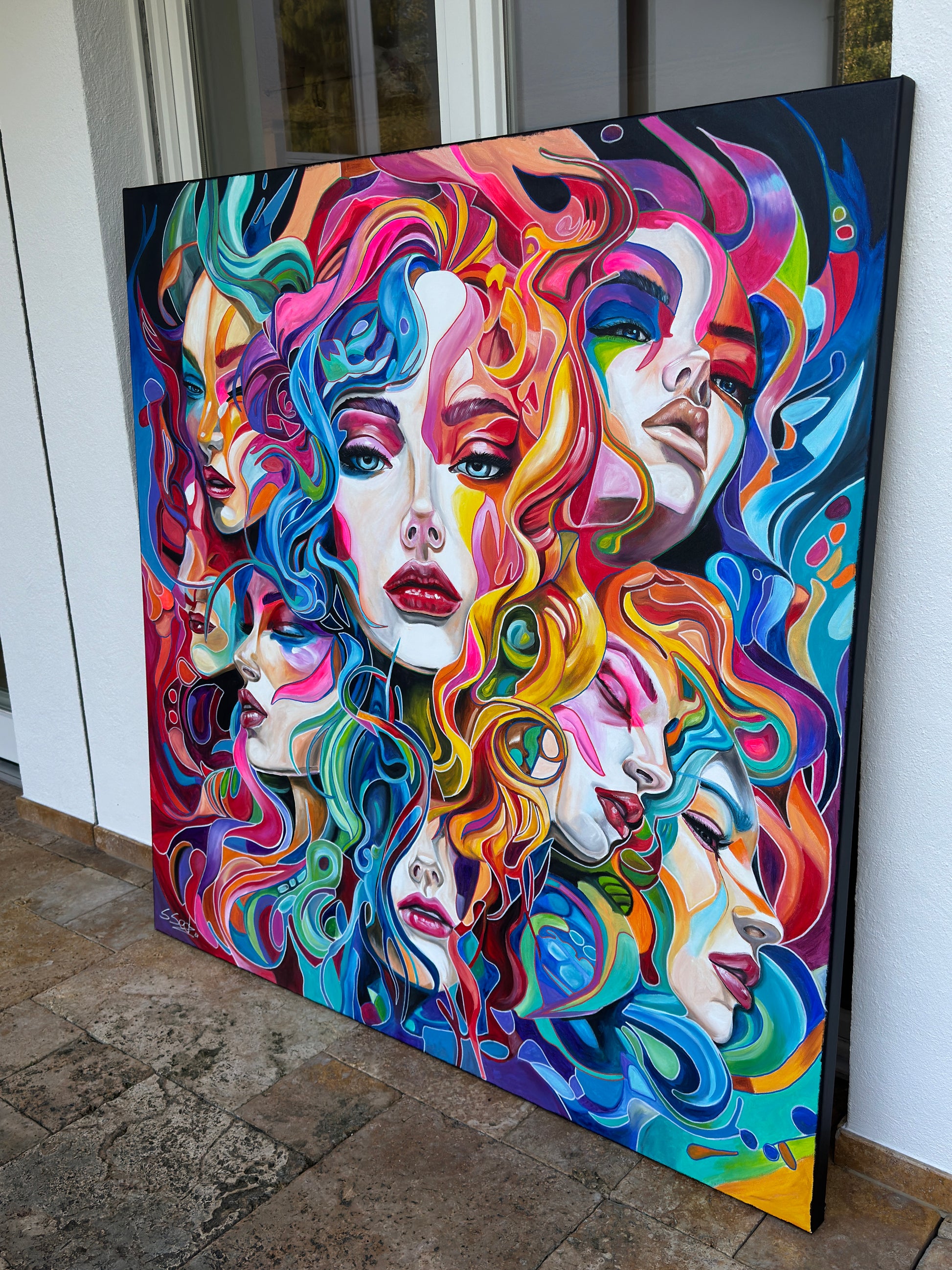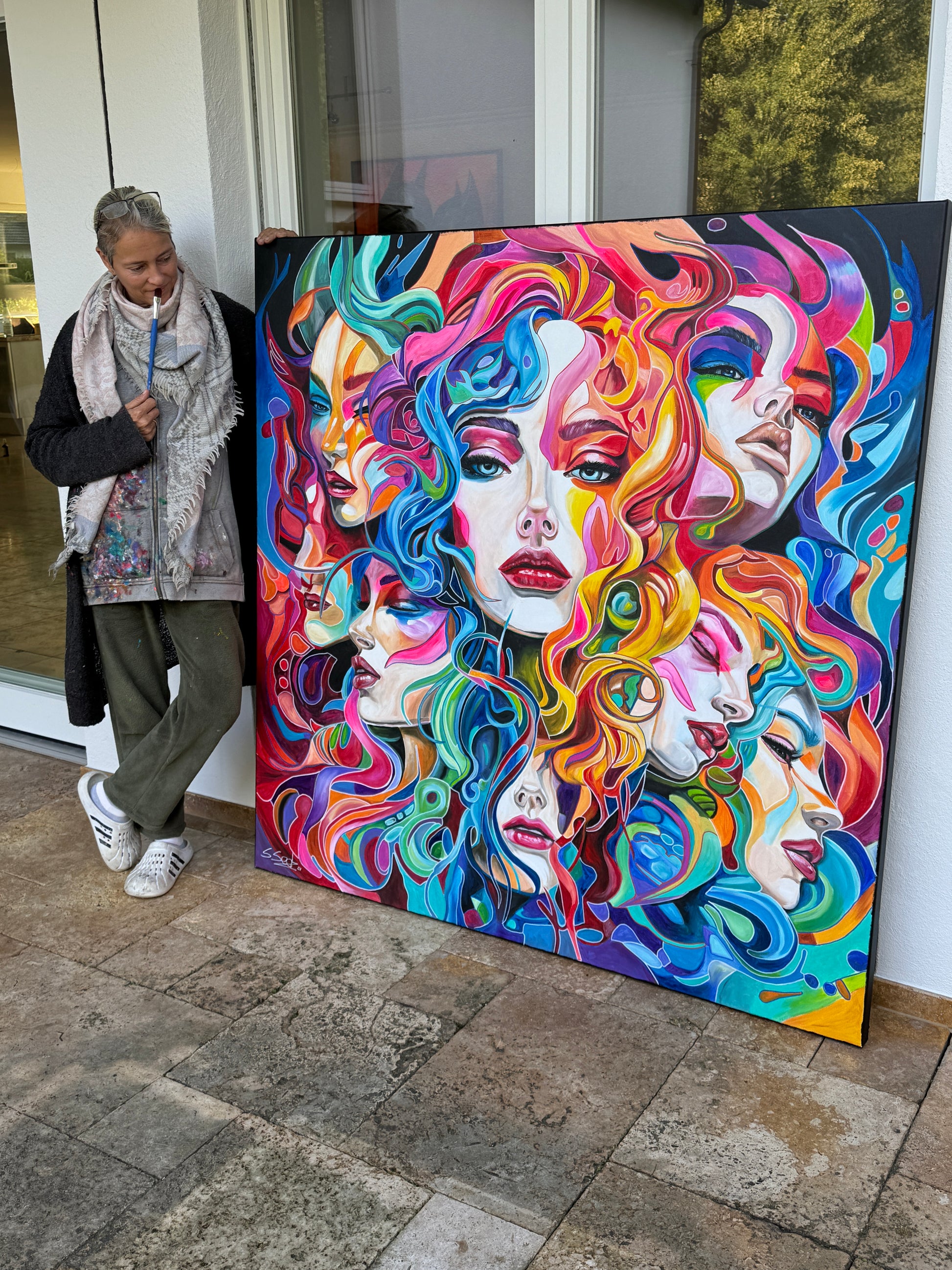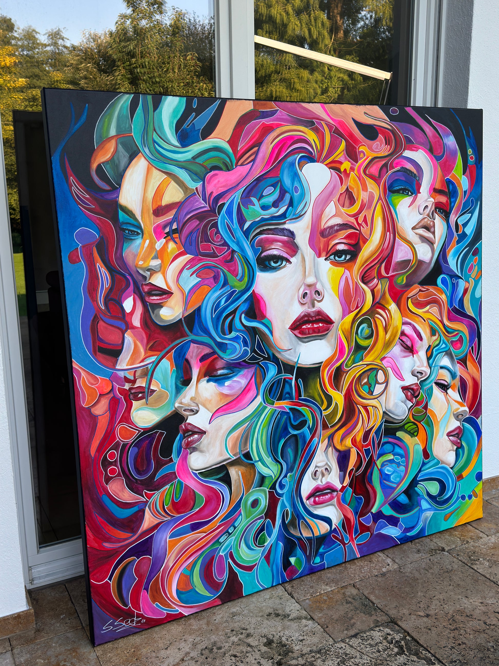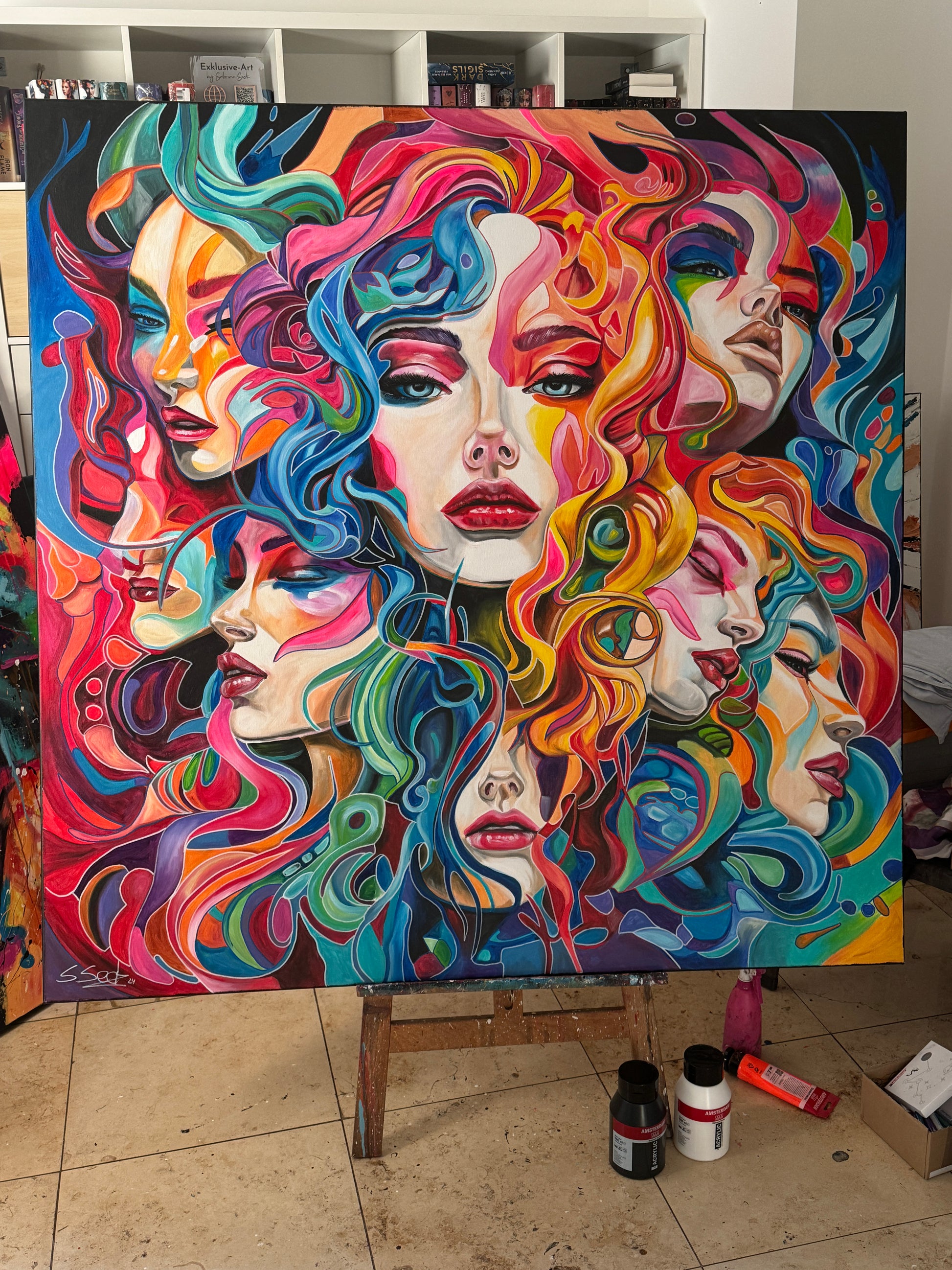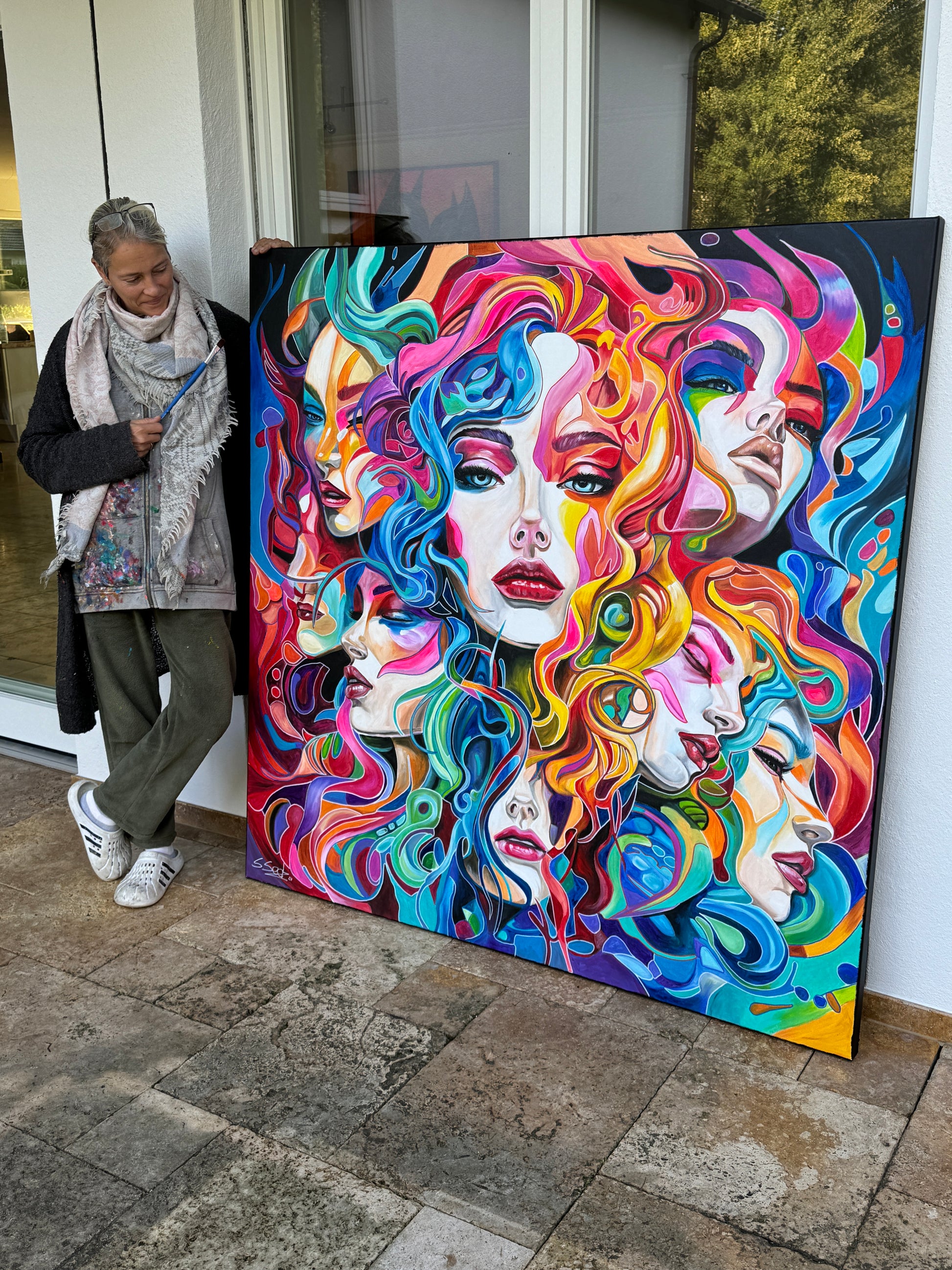 Eine weitere Darstellung der menschlichen Facetten und Eigenschaften ist fertiggestellt. Eine wunderbare Spiegelung des menschlichen Seins in Form von Farben und Gesichtern. Ein Werk, was nicht zuletzt durch die Größe eine enorme Wirkung beim Betrachter erzielt, sondern auch durch die Zusammenstellung der Farben in Verbindung mit figurativem positive Energie verströmt.