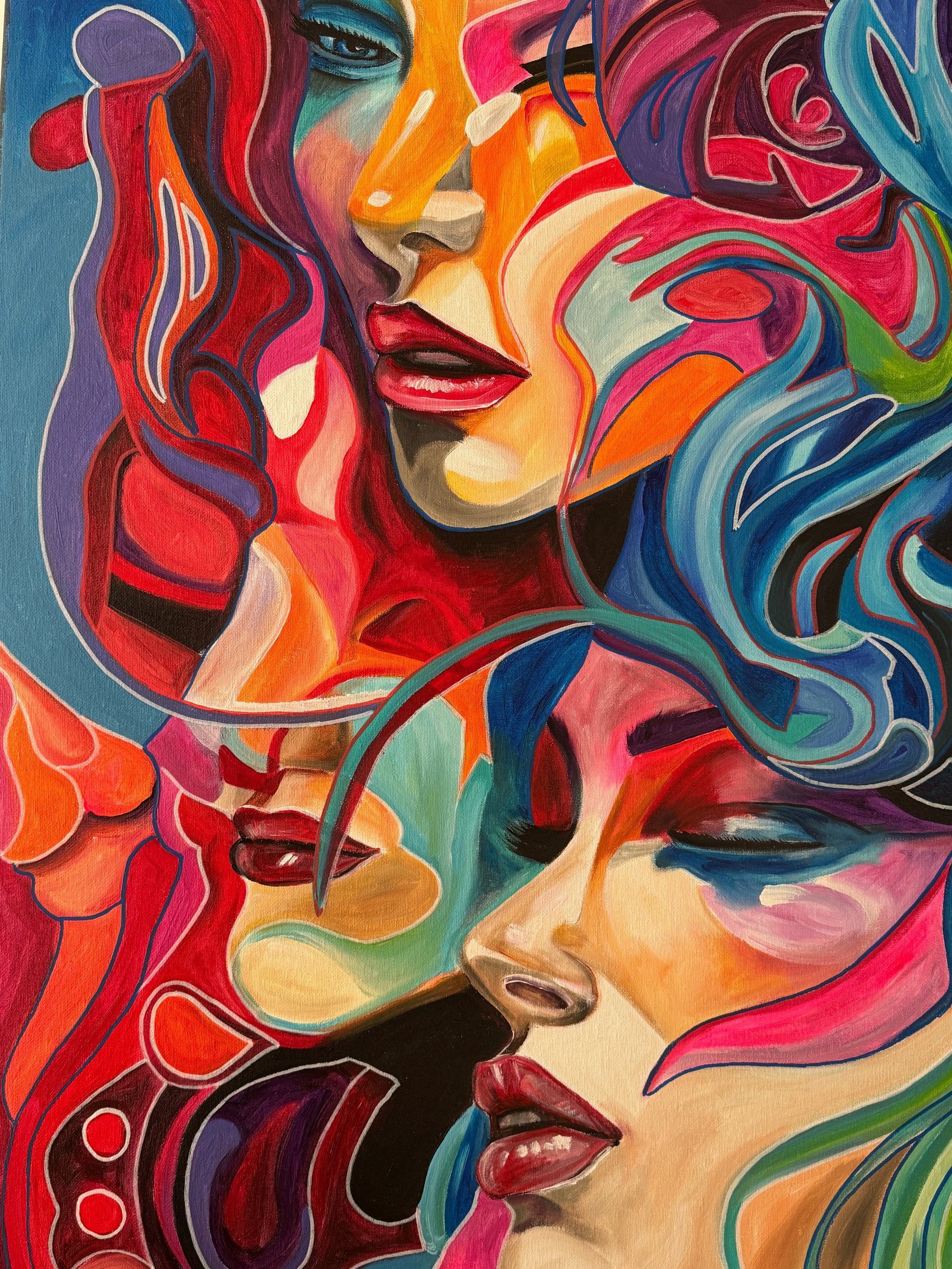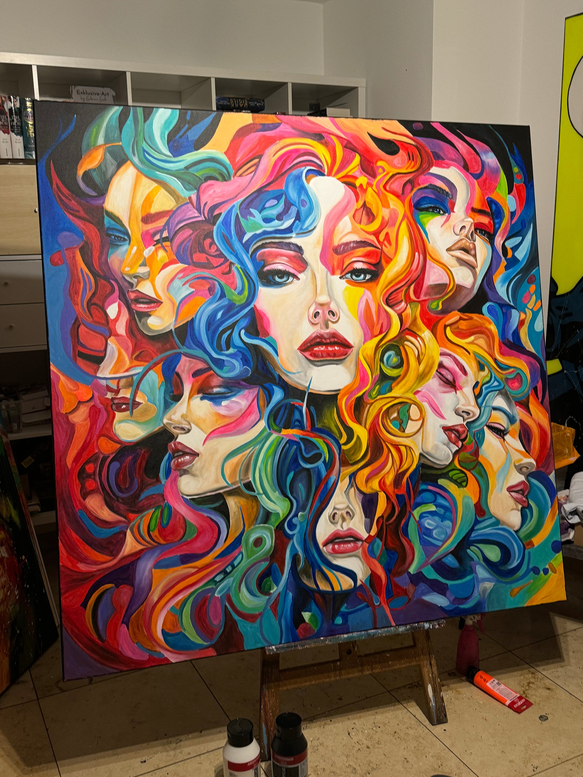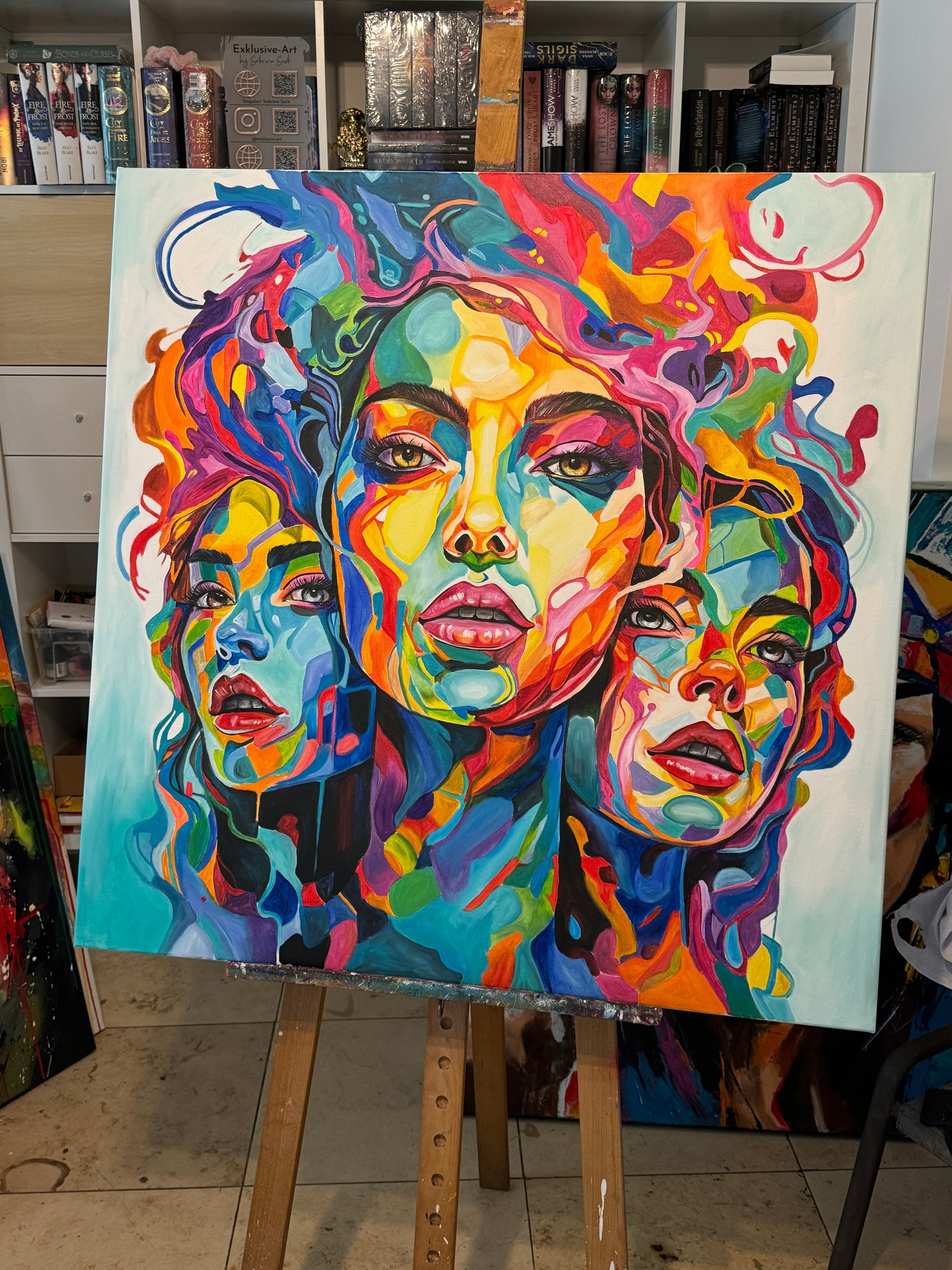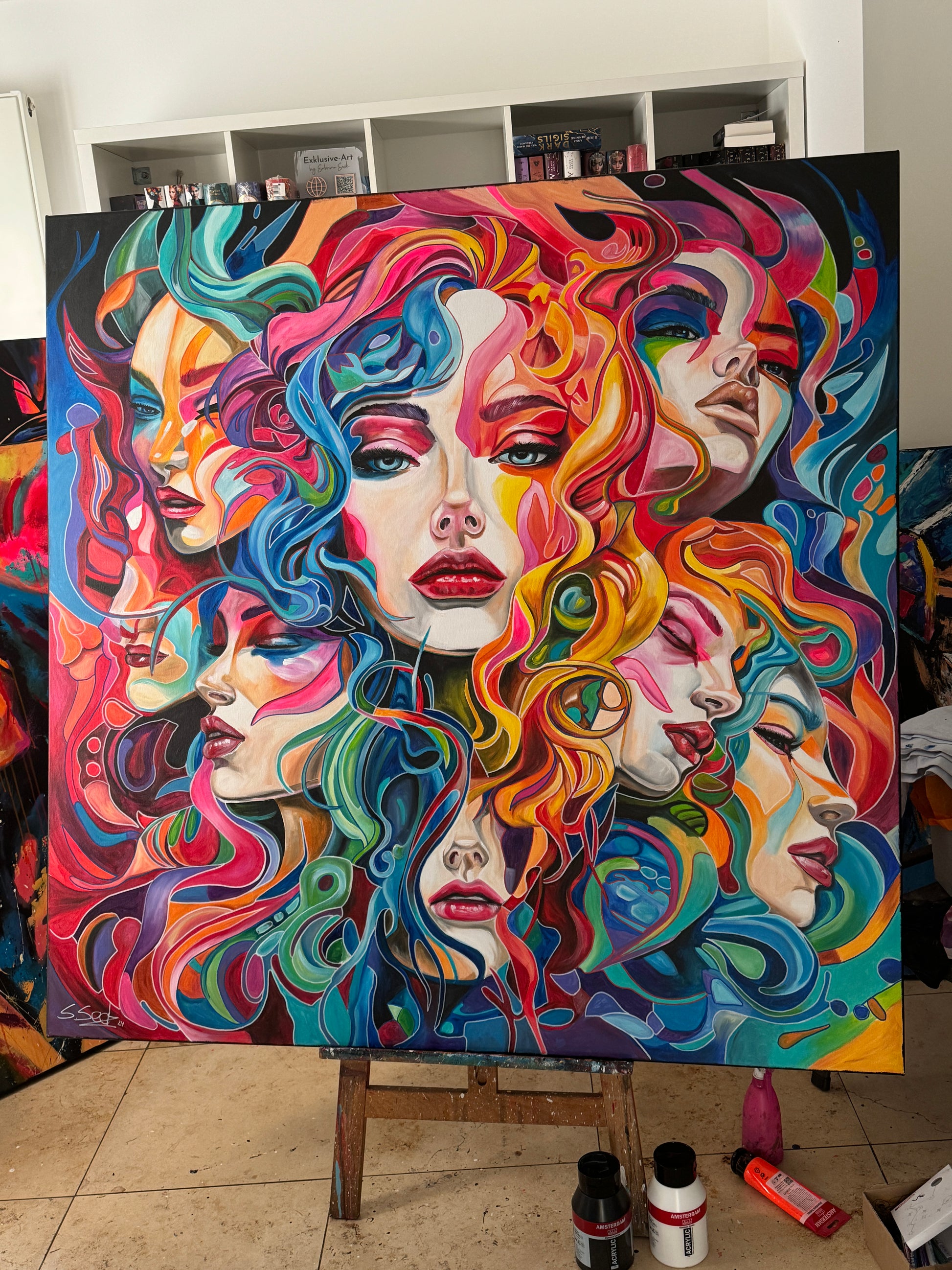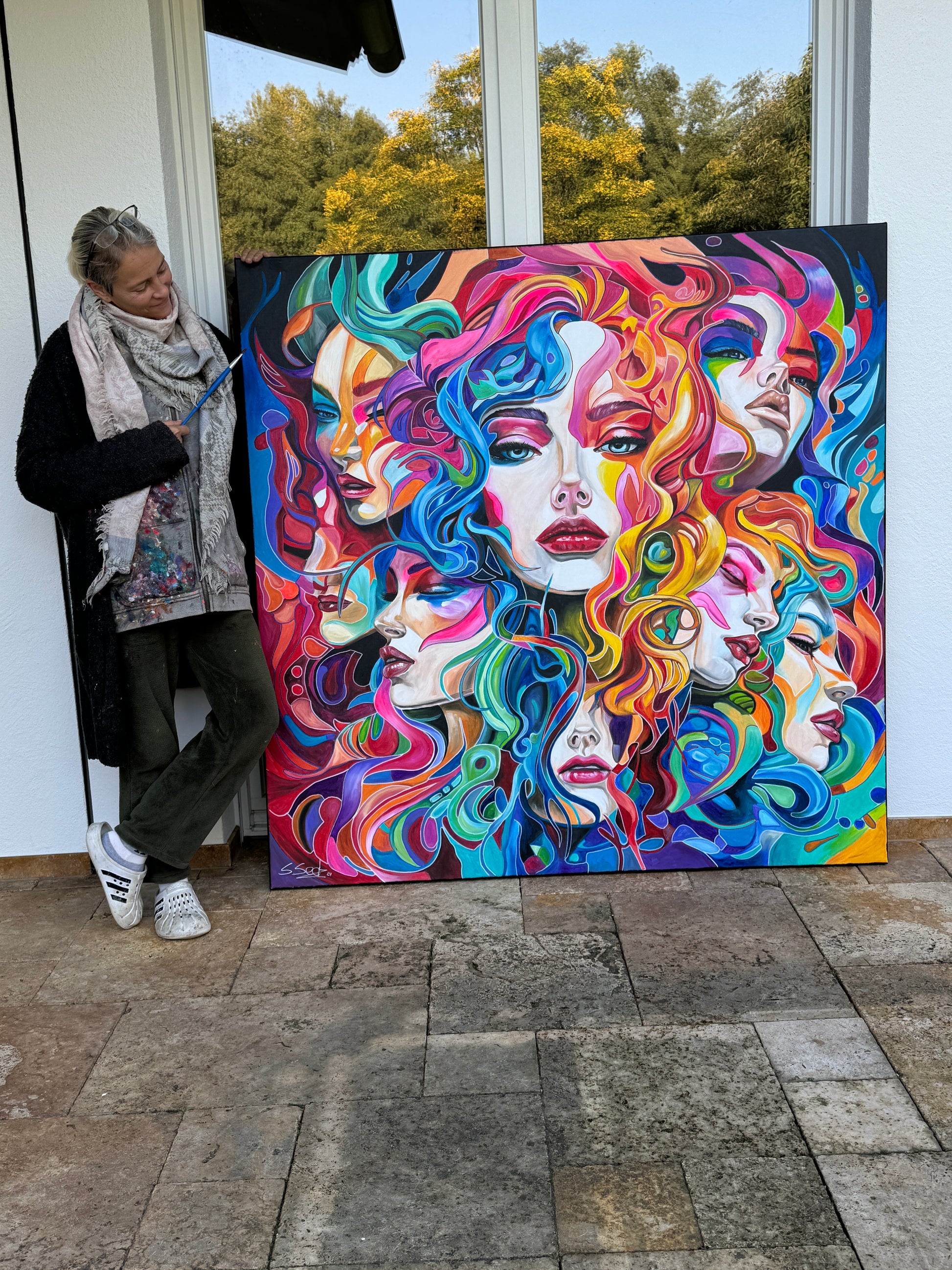 Eine weitere Darstellung der menschlichen Facetten und Eigenschaften ist fertiggestellt. Eine wunderbare Spiegelung des menschlichen Seins in Form von Farben und Gesichtern. Ein Werk, was nicht zuletzt durch die Größe eine enorme Wirkung beim Betrachter erzielt, sondern auch durch die Zusammenstellung der Farben in Verbindung mit figurativem positive Energie verströmt.