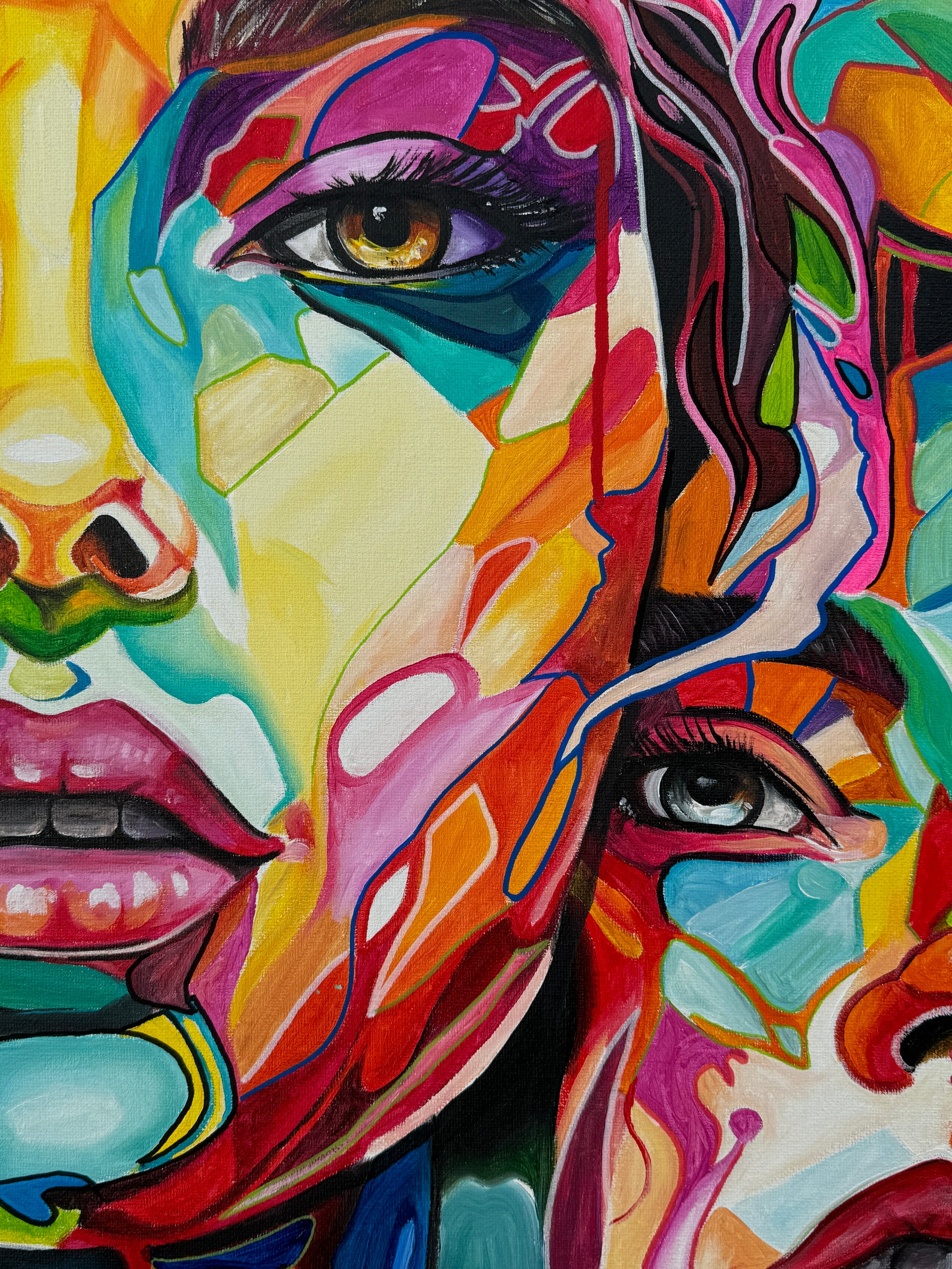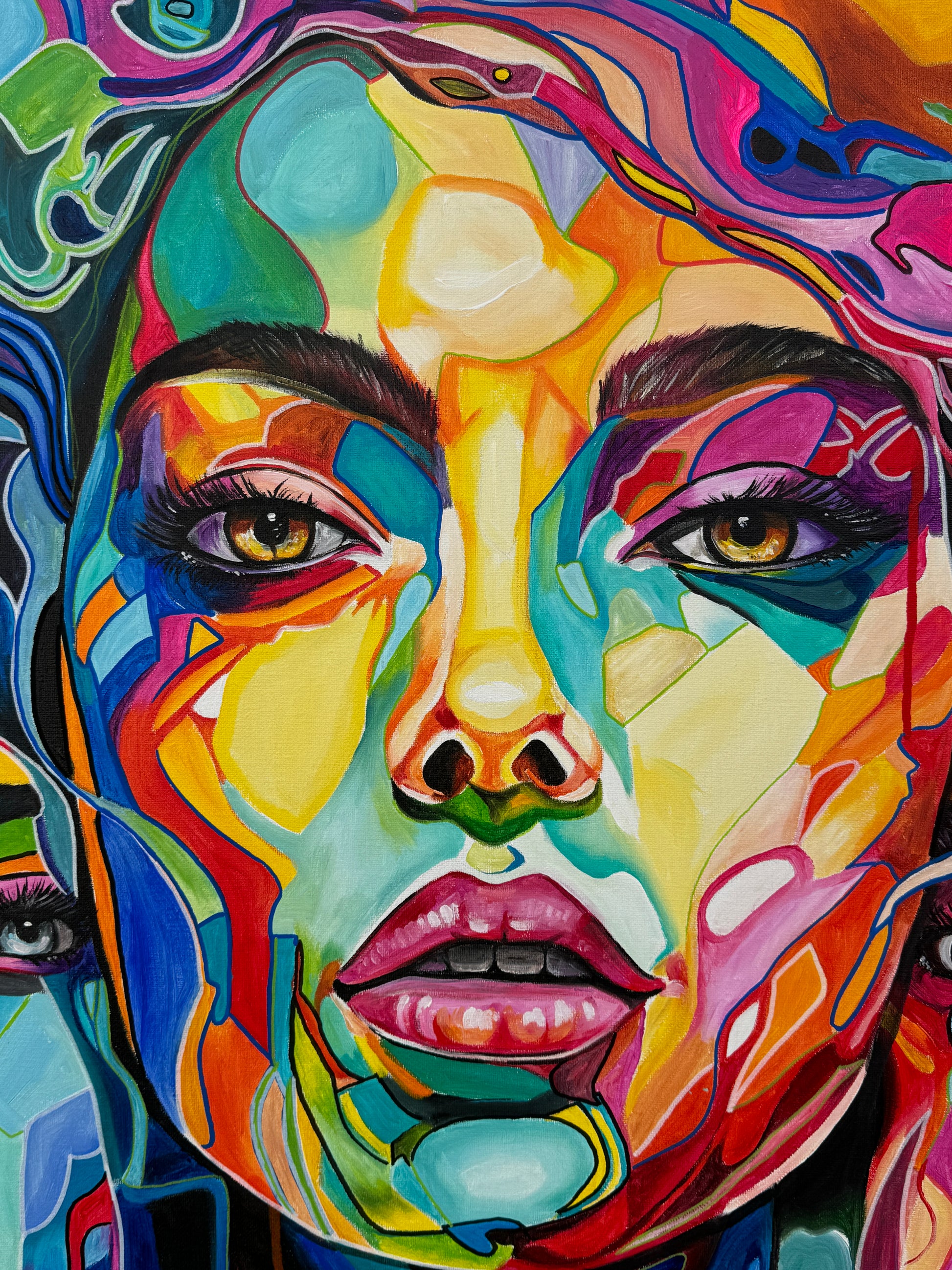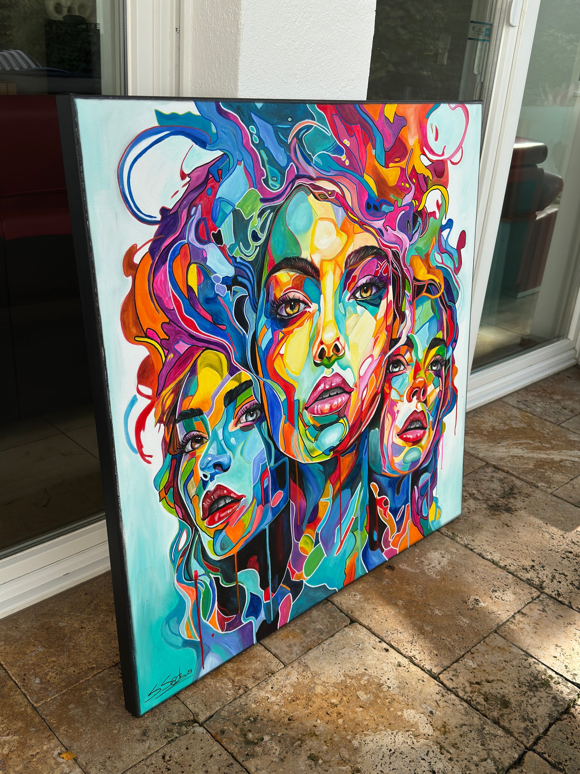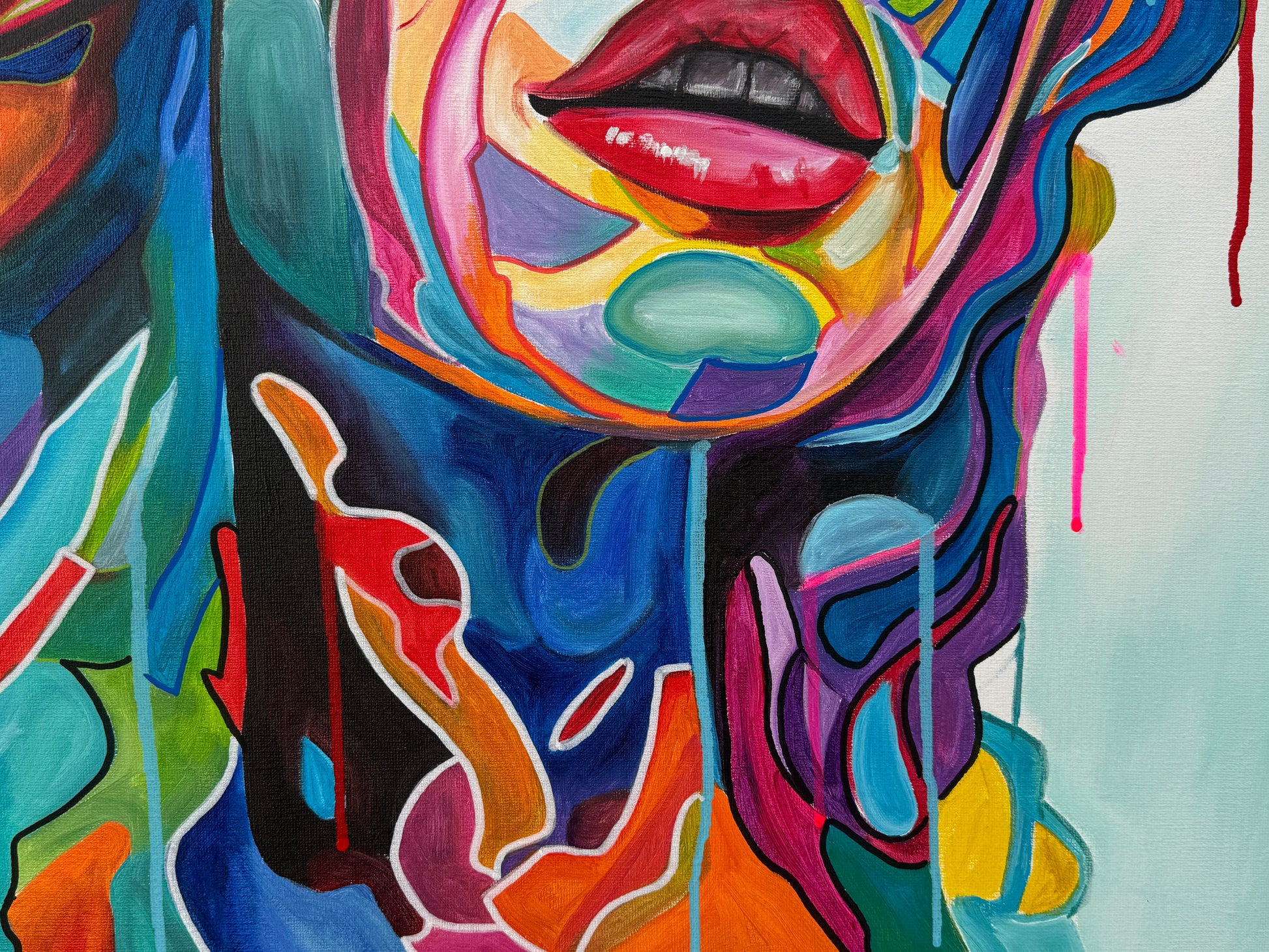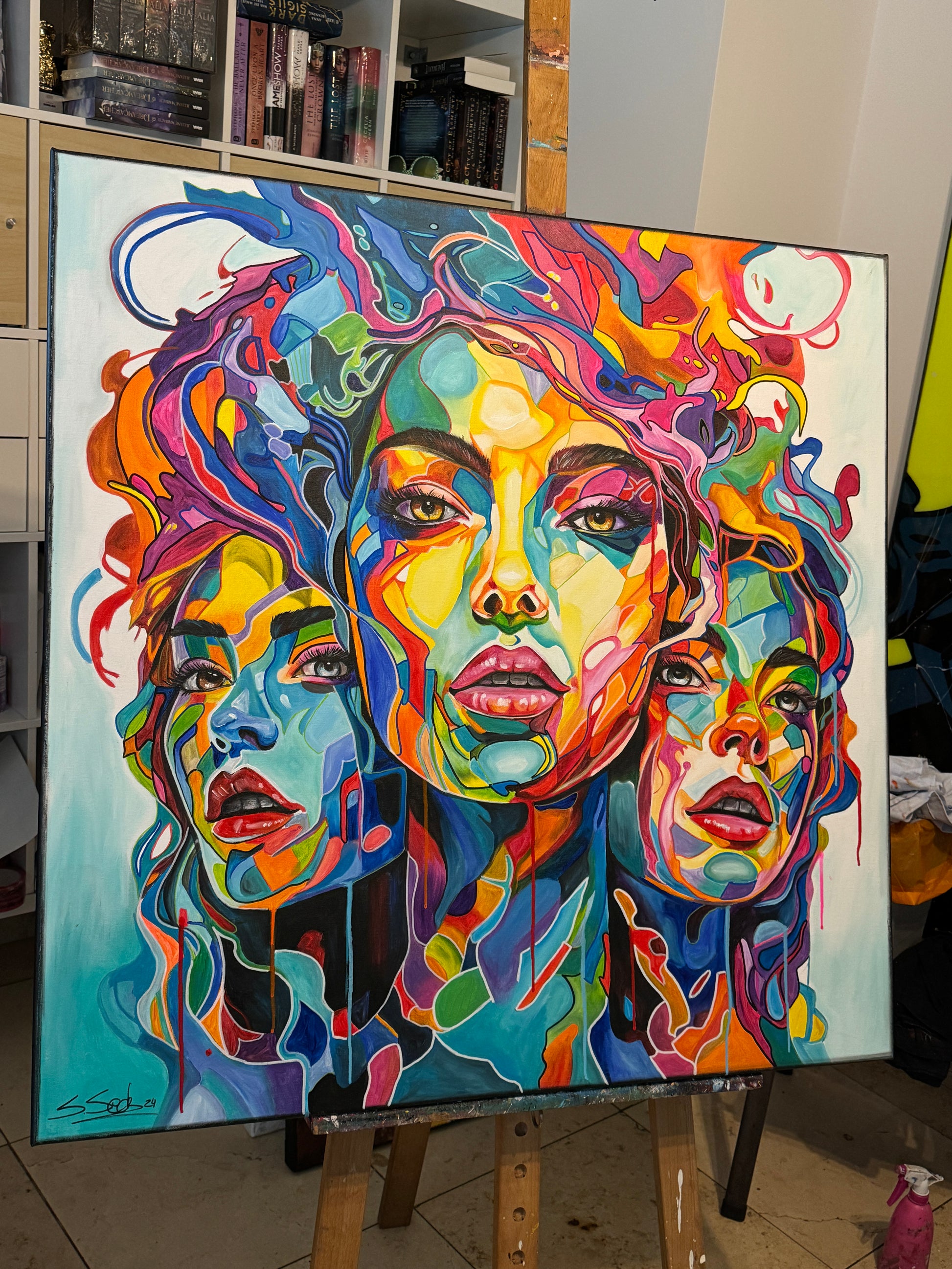In meinem Werk verschmelzen lebendige Farben und emotionale Ausdrücke zu einer kraftvollen Darstellung menschlicher Emotionen und Beziehungen. Durch eine Kombination von Realismus und Abstraktion erforsche ich die Komplexität der menschlichen Natur und die verbundenen Gefühle. Dieses Gemälde regt zum Nachdenken an und wird eine dynamische und energiegeladene Atmosphäre in jedes Zuhause bringen.