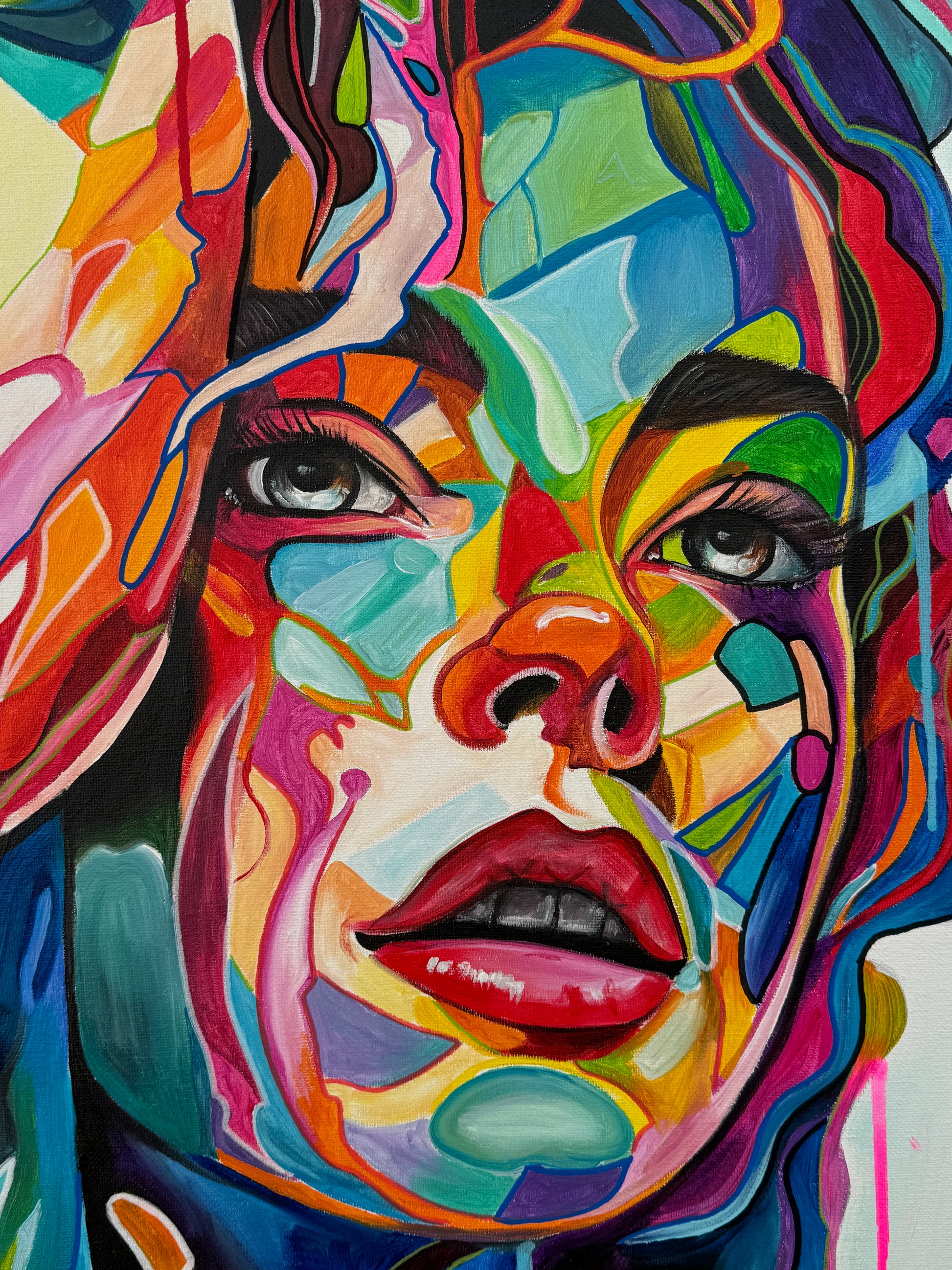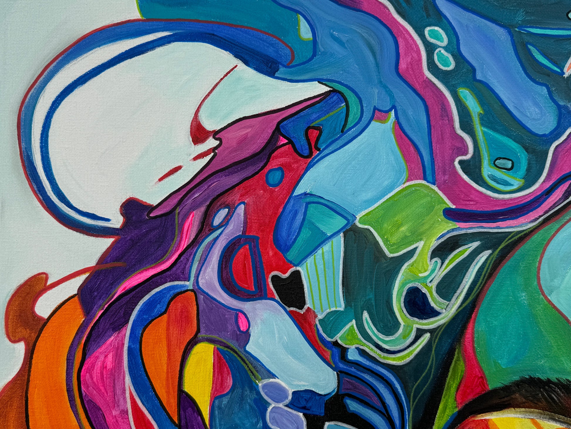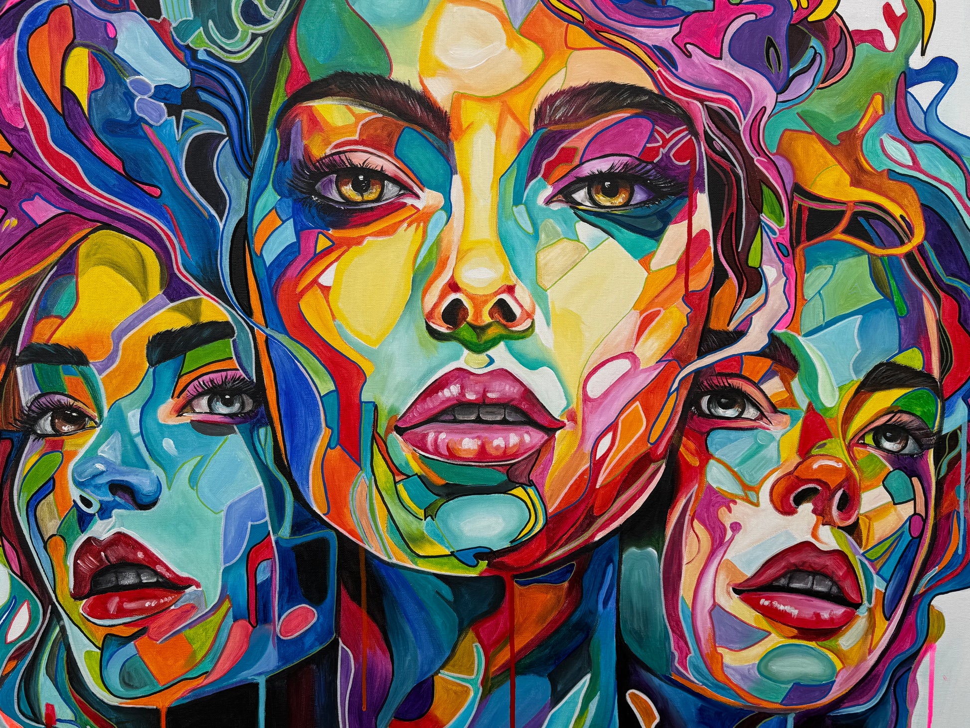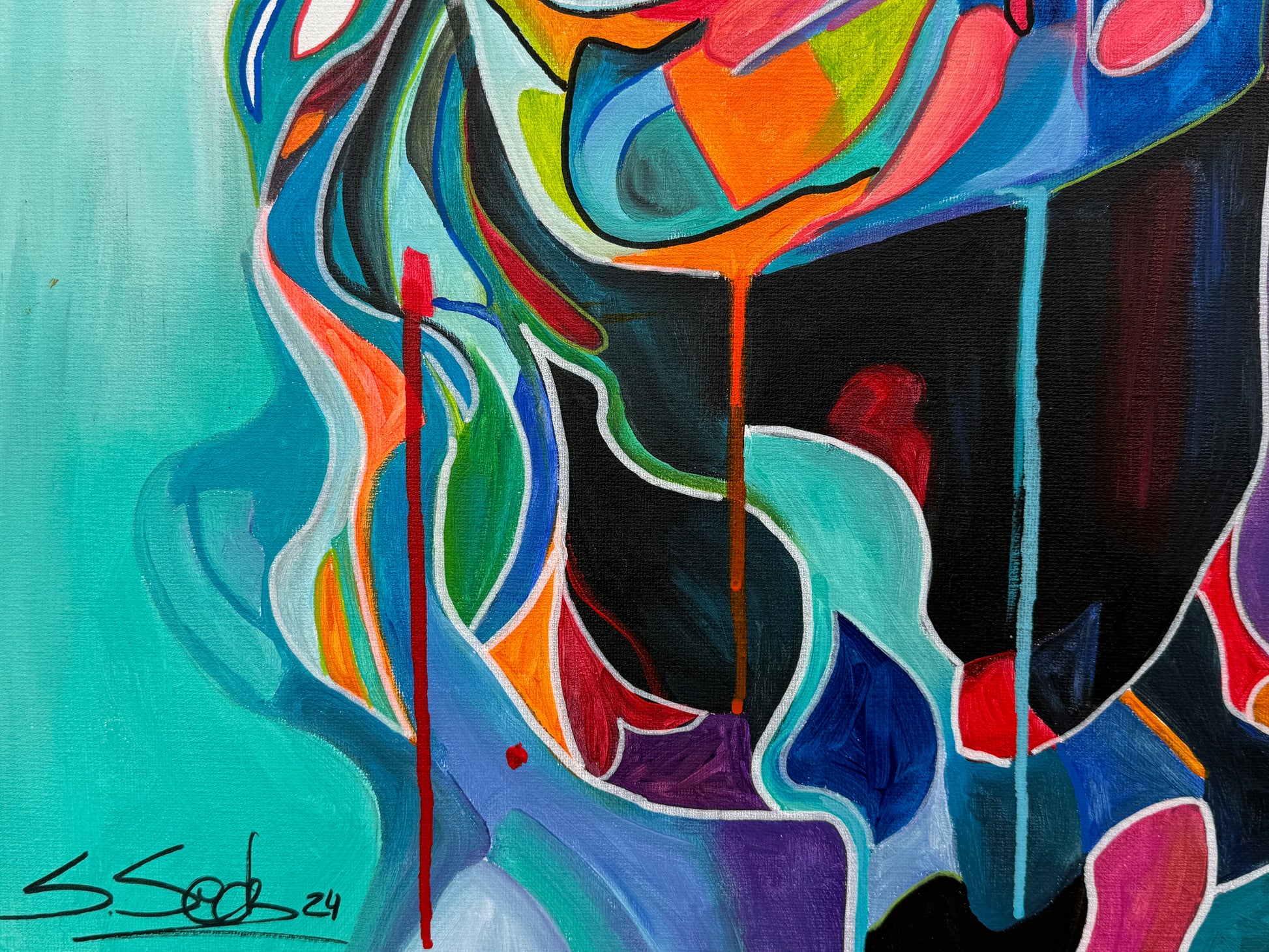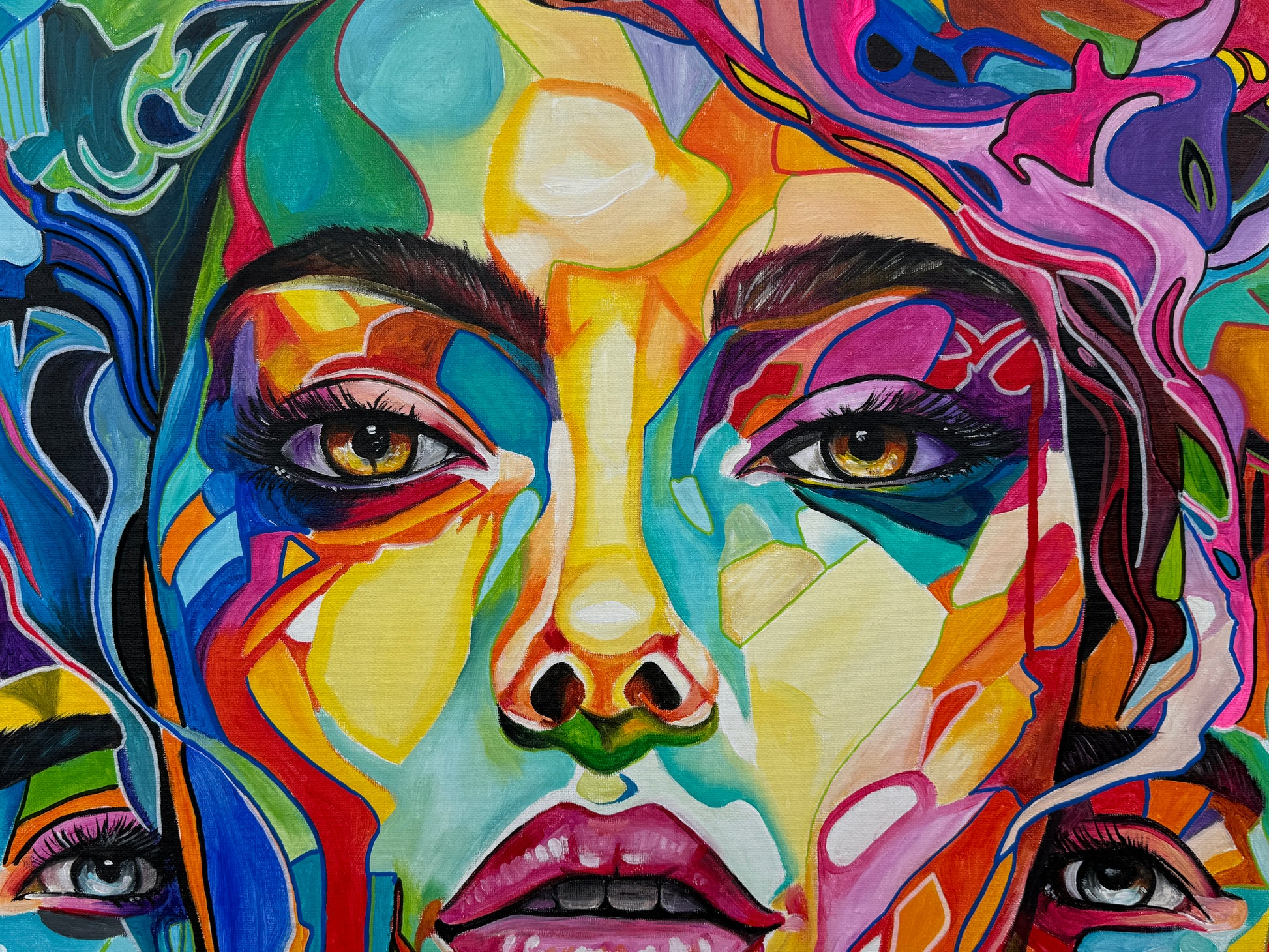 In meinem Werk verschmelzen lebendige Farben und emotionale Ausdrücke zu einer kraftvollen Darstellung menschlicher Emotionen und Beziehungen. Durch eine Kombination von Realismus und Abstraktion erforsche ich die Komplexität der menschlichen Natur und die verbundenen Gefühle. Dieses Gemälde regt zum Nachdenken an und wird eine dynamische und energiegeladene Atmosphäre in jedes Zuhause bringen.