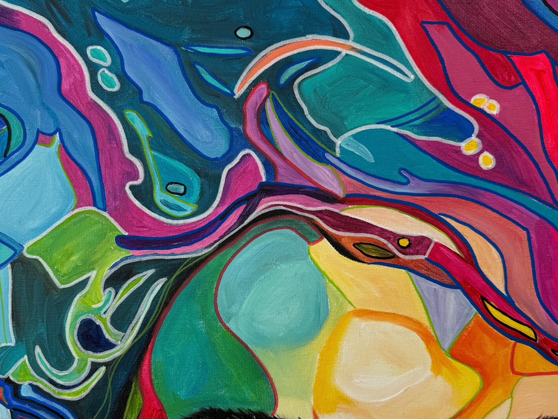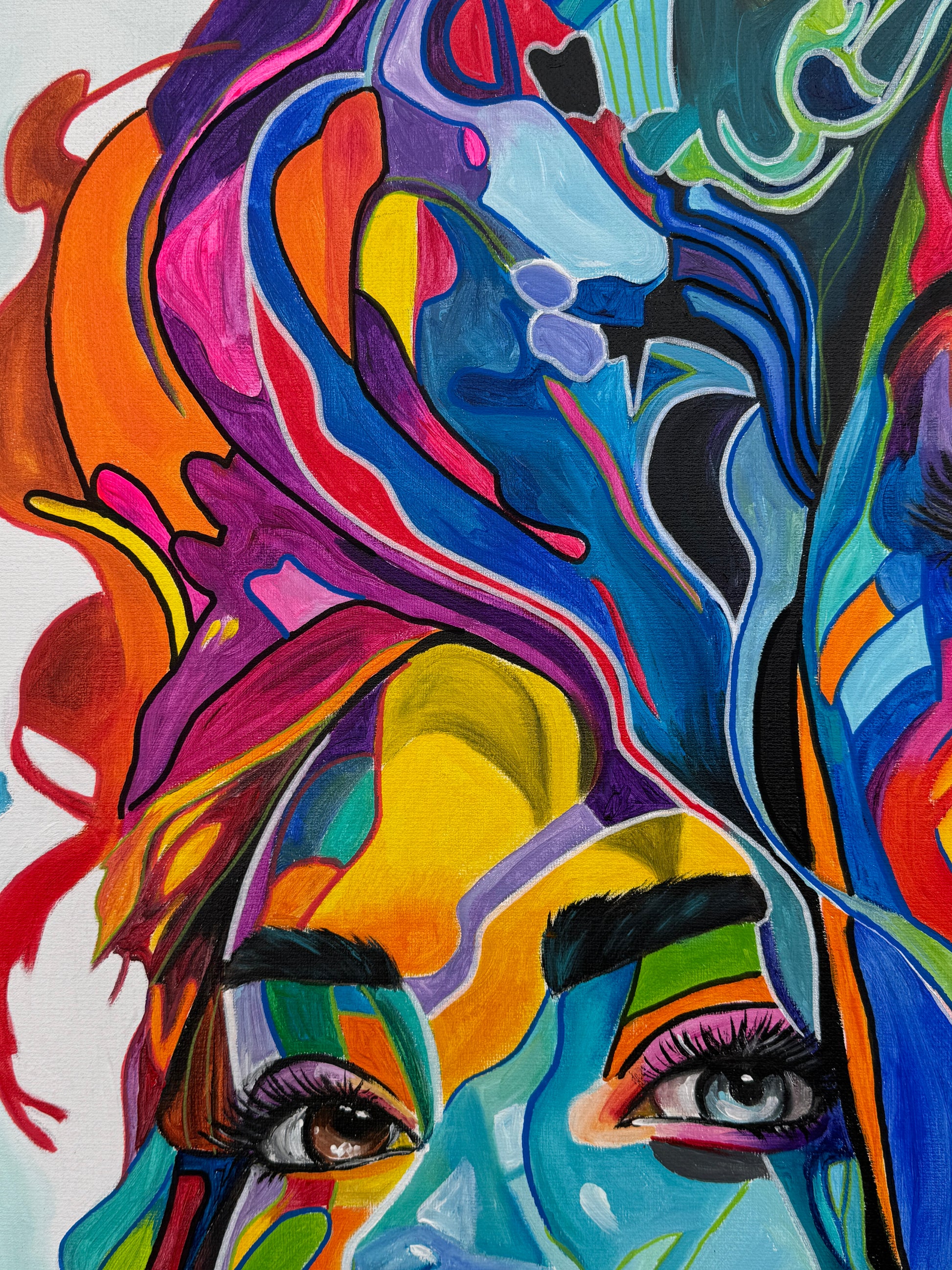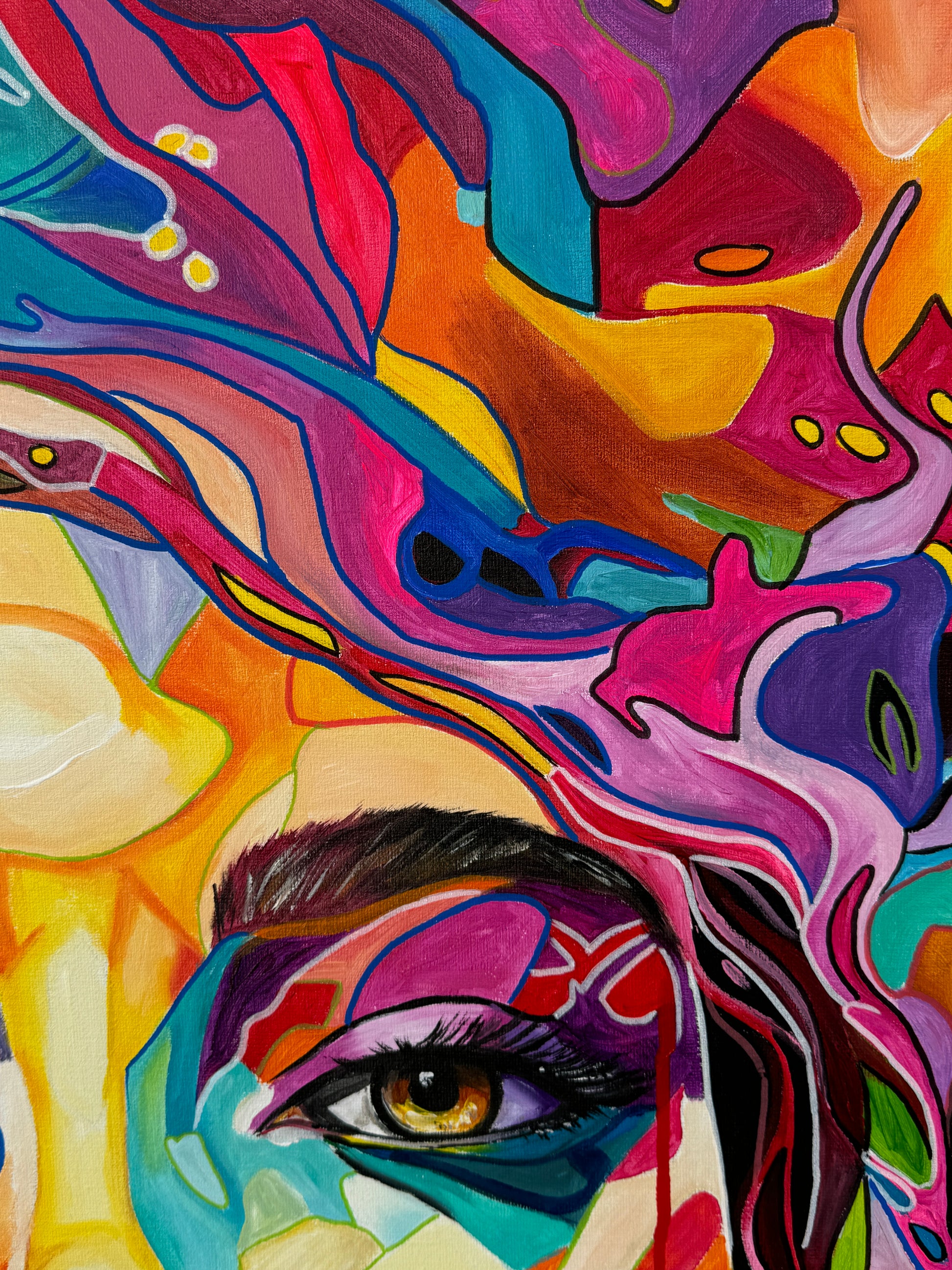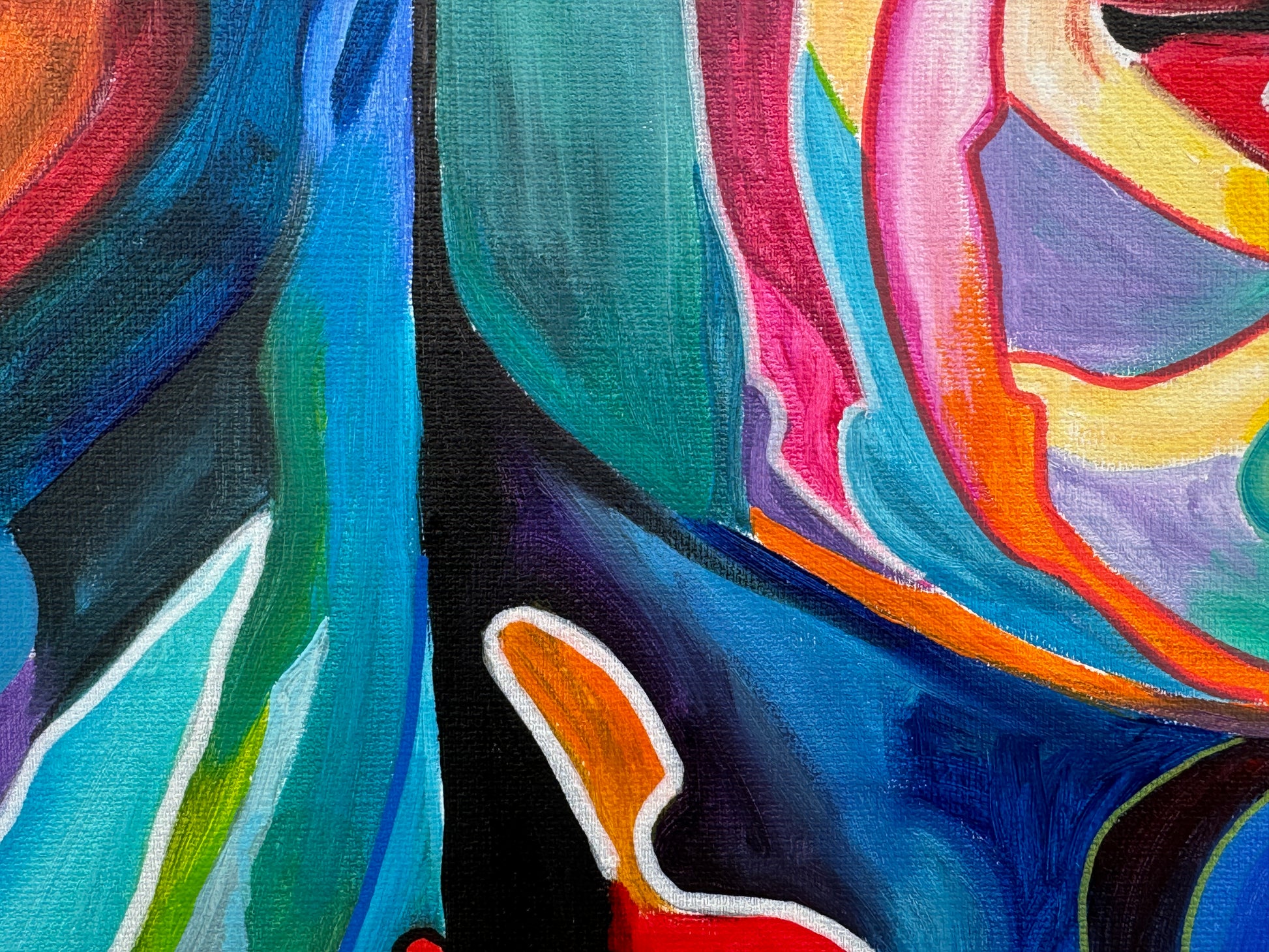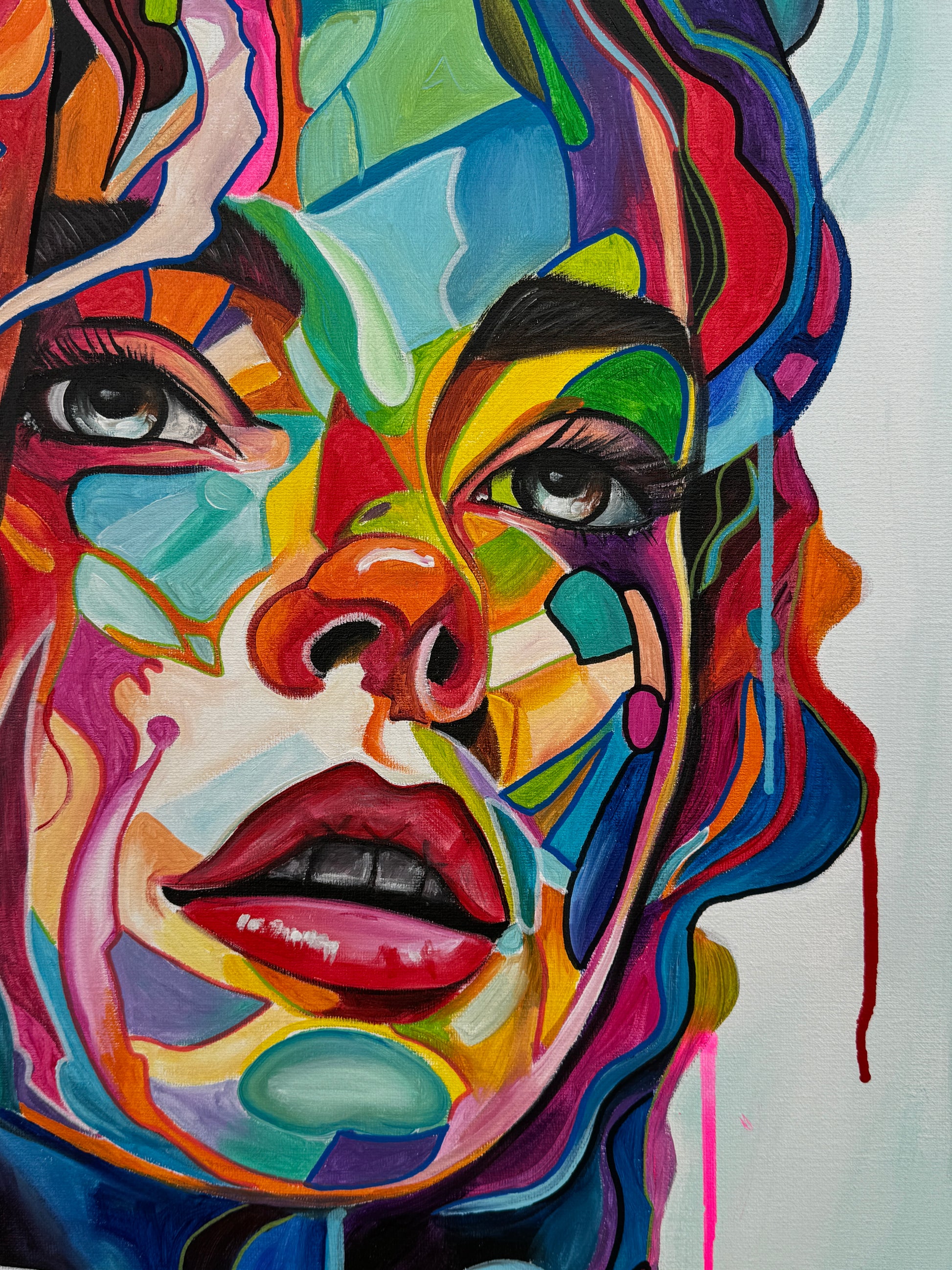 In meinem Werk verschmelzen lebendige Farben und emotionale Ausdrücke zu einer kraftvollen Darstellung menschlicher Emotionen und Beziehungen. Durch eine Kombination von Realismus und Abstraktion erforsche ich die Komplexität der menschlichen Natur und die verbundenen Gefühle. Dieses Gemälde regt zum Nachdenken an und wird eine dynamische und energiegeladene Atmosphäre in jedes Zuhause bringen.