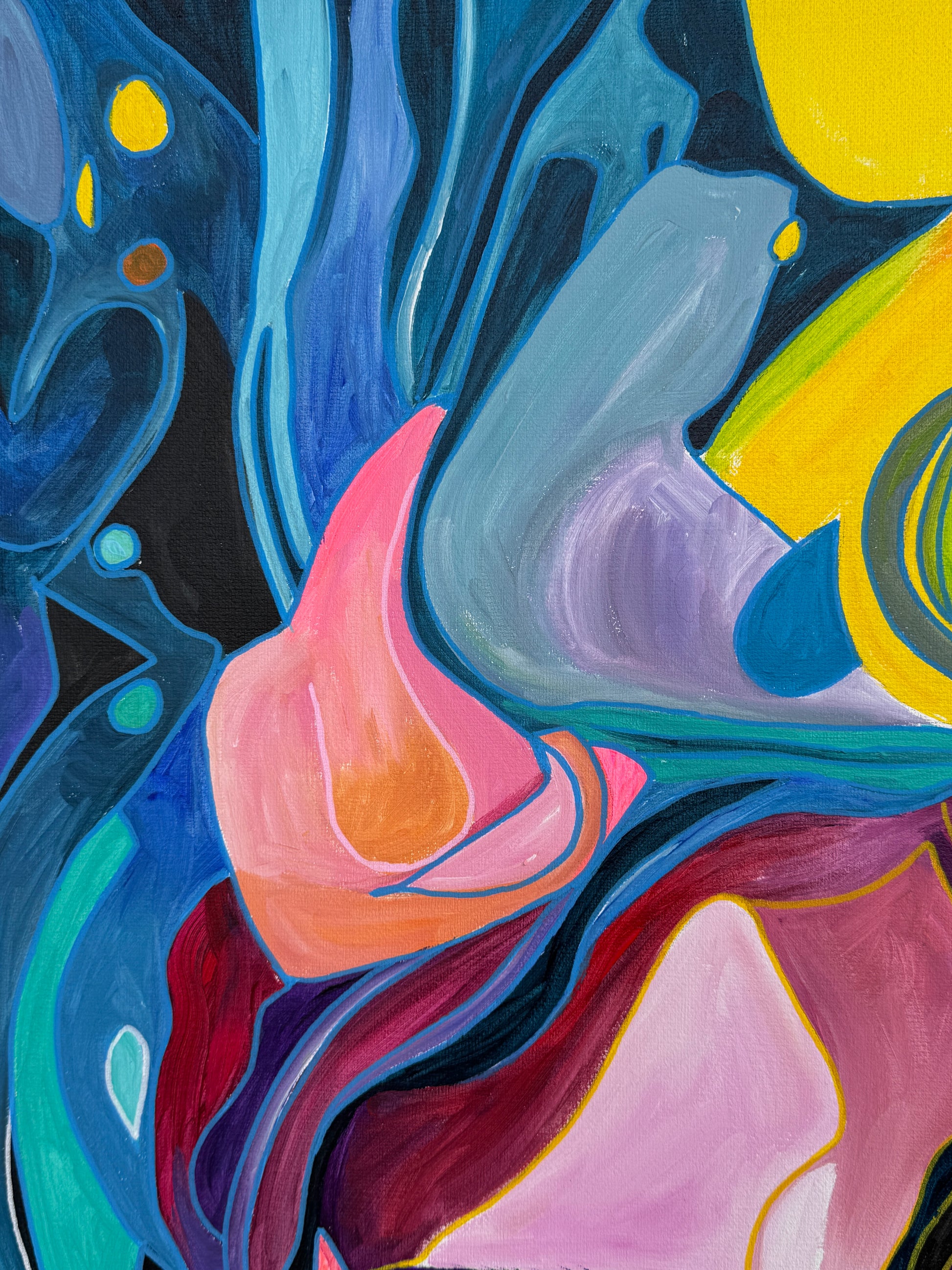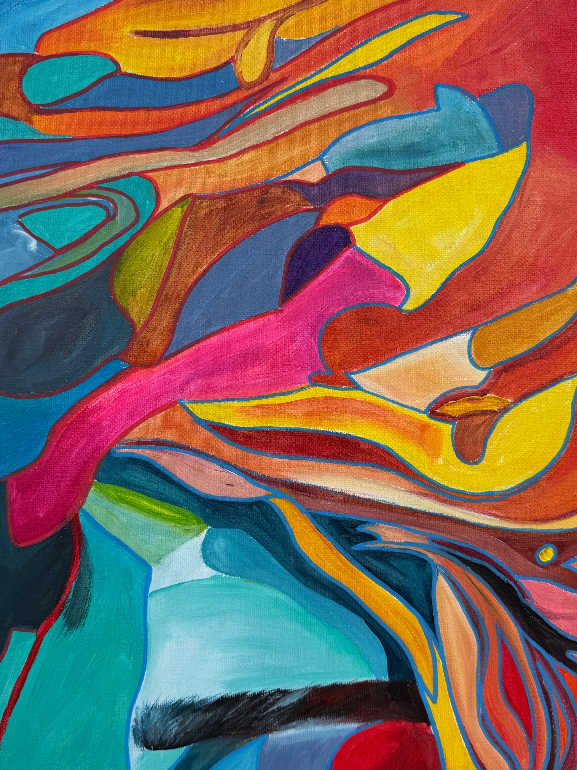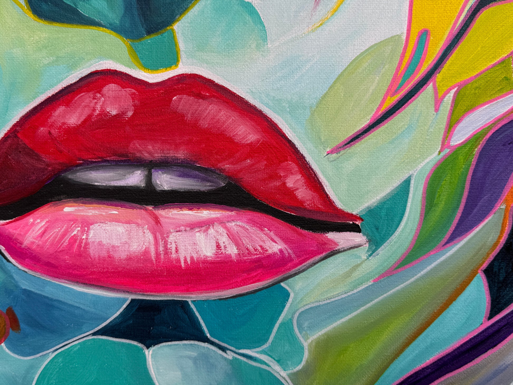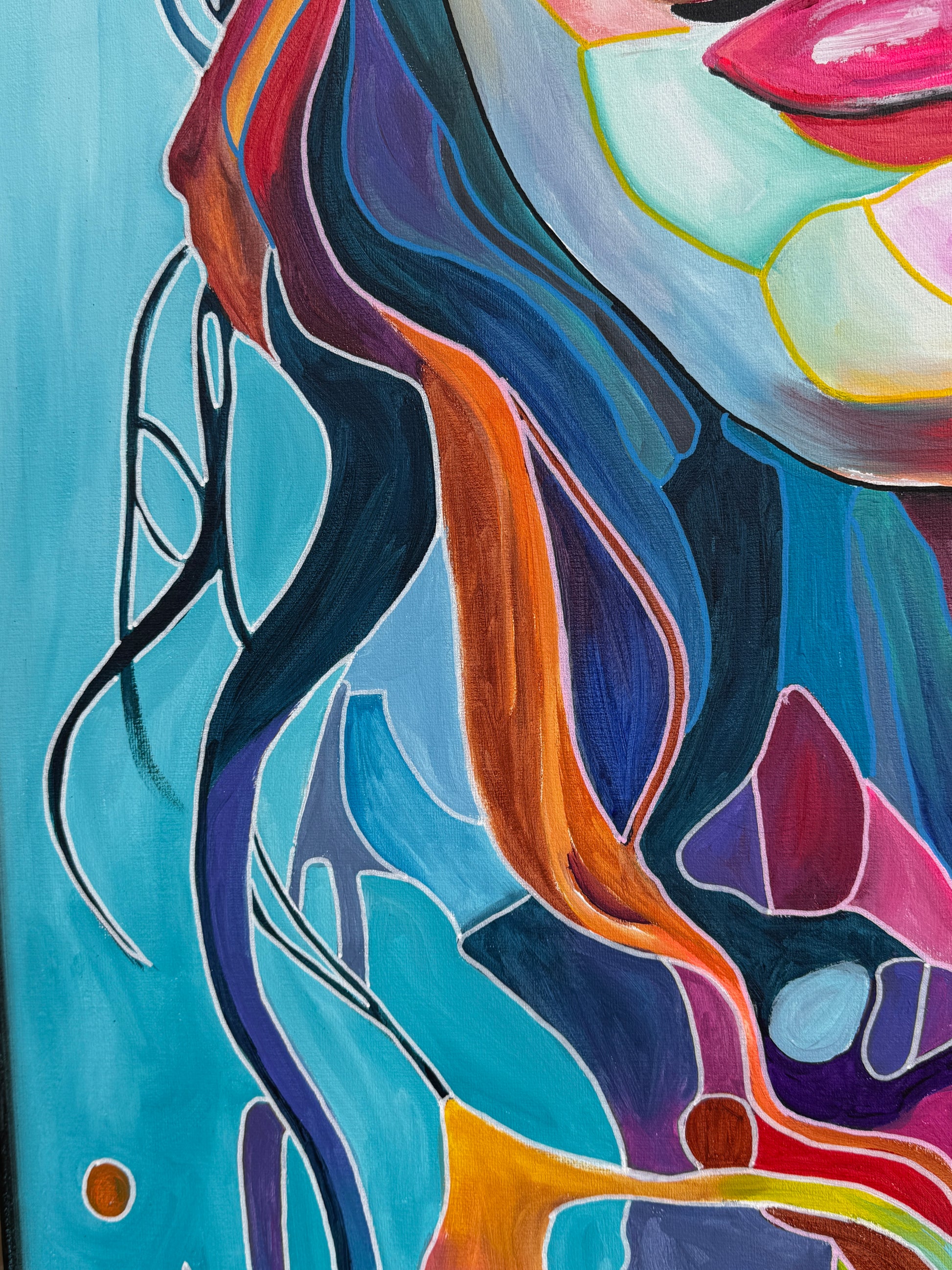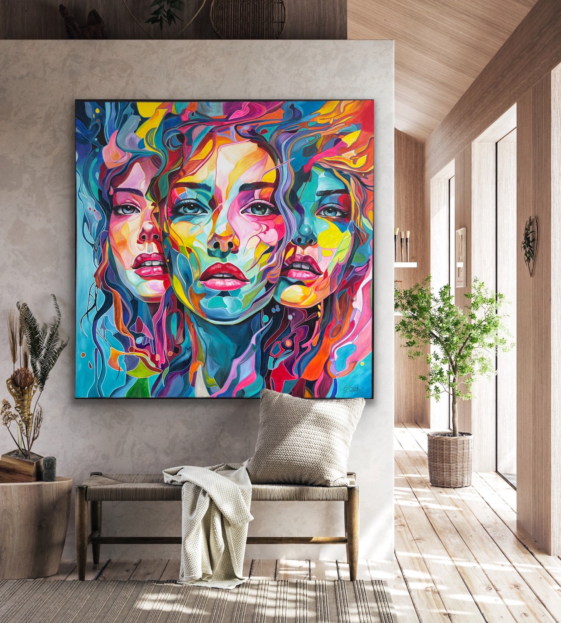Dieses Gemälde bringt eine kraftvolle Energie in jeden Raum und schafft eine Atmosphäre, die sowohl zum Nachdenken anregt als auch die Sinne belebt.
