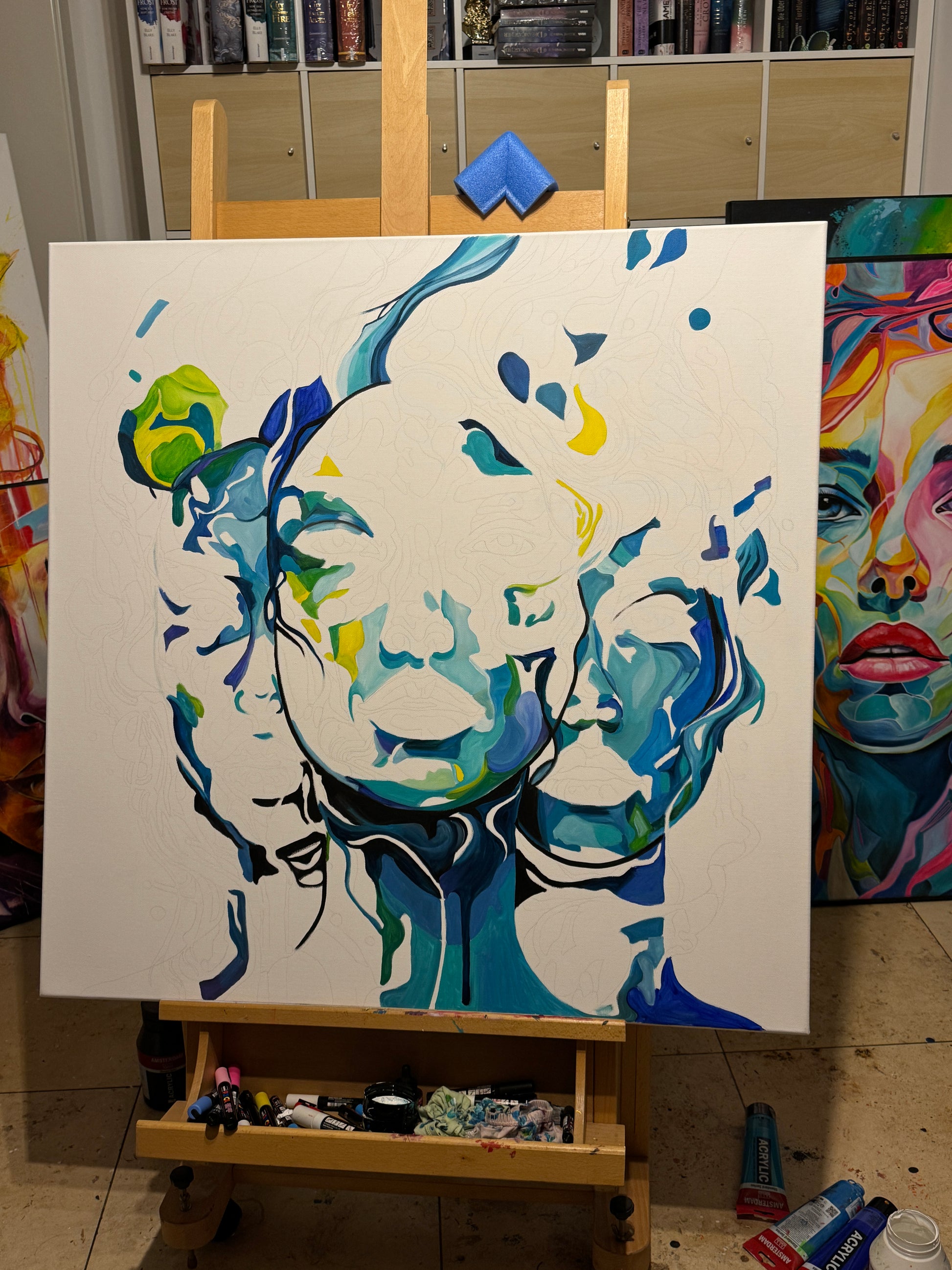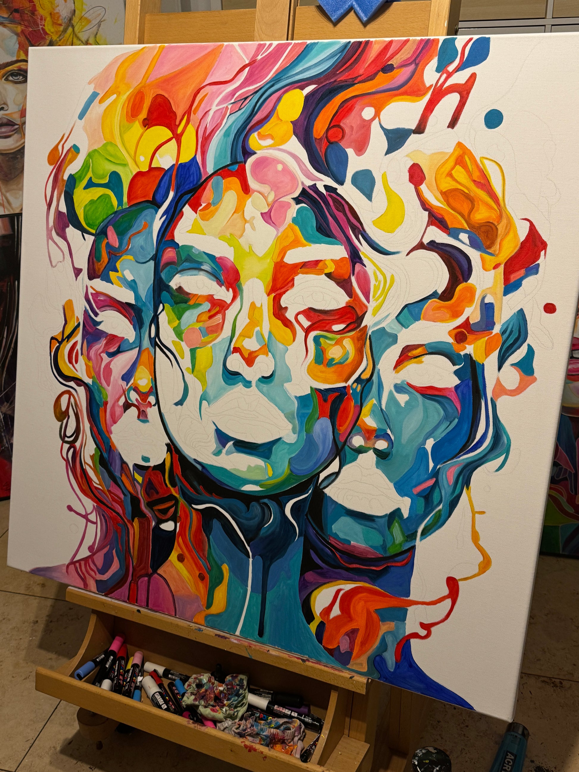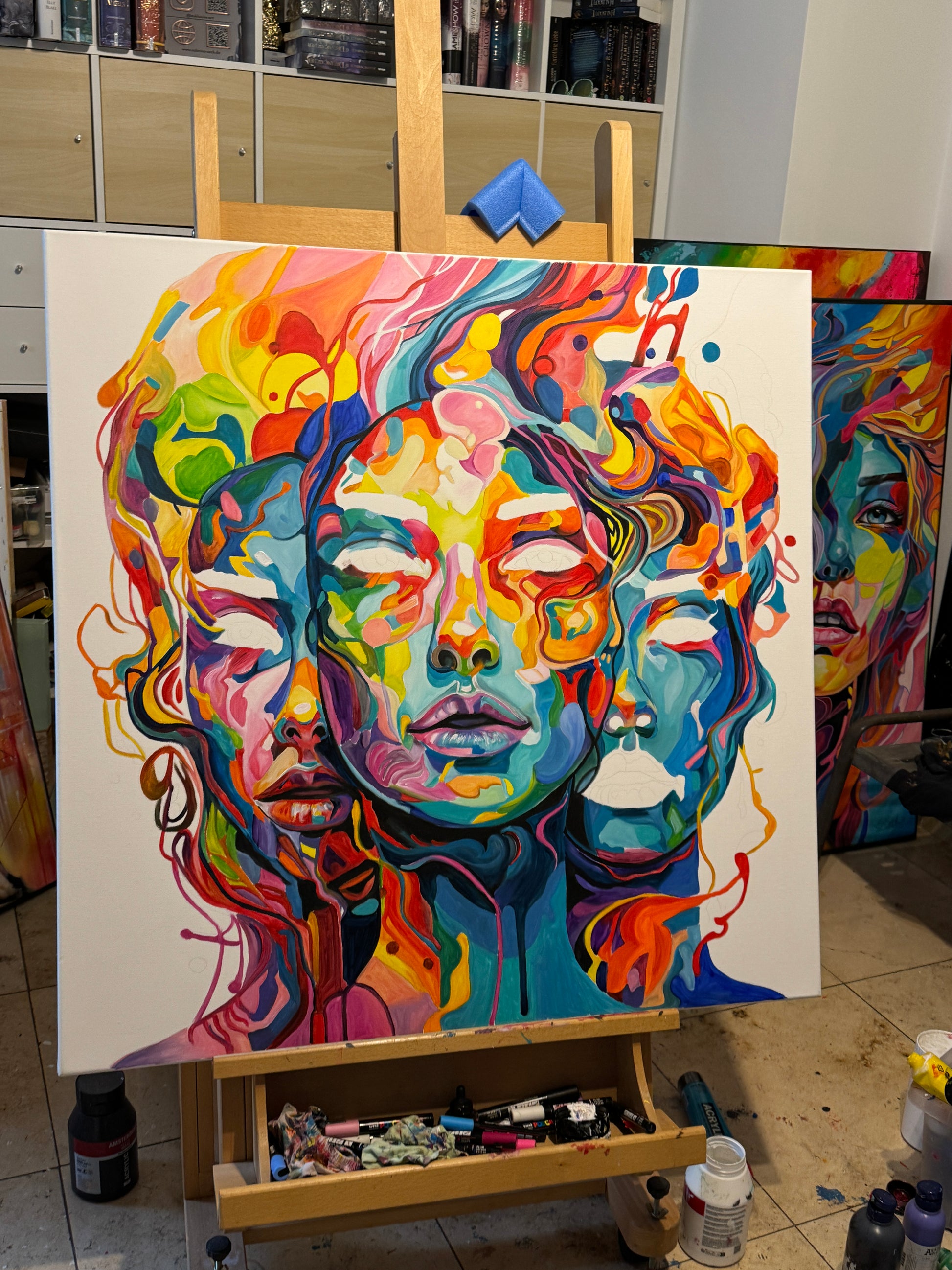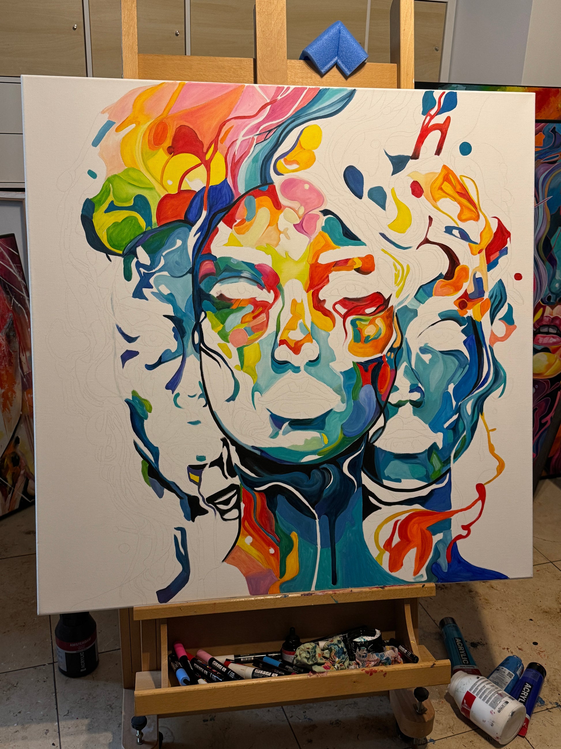 Hydra XI ist eine weiteres Meisterwerk aus dieser Serie. Mit Akrylfarben habe ich ein Geflecht aus abstrakter und figurativer Darstellung geschaffen, das die Intensität und Komplexität unserer inneren Welten einfängt. Es soll die Betrachter dazu inspirieren, die Schönheit im Chaos des Lebens zu sehen und die Vielschichtigkeit der menschlichen Erfahrung zu würdigen, die sich in jeder einzelnen Eigenschaft wiederspiegelt.