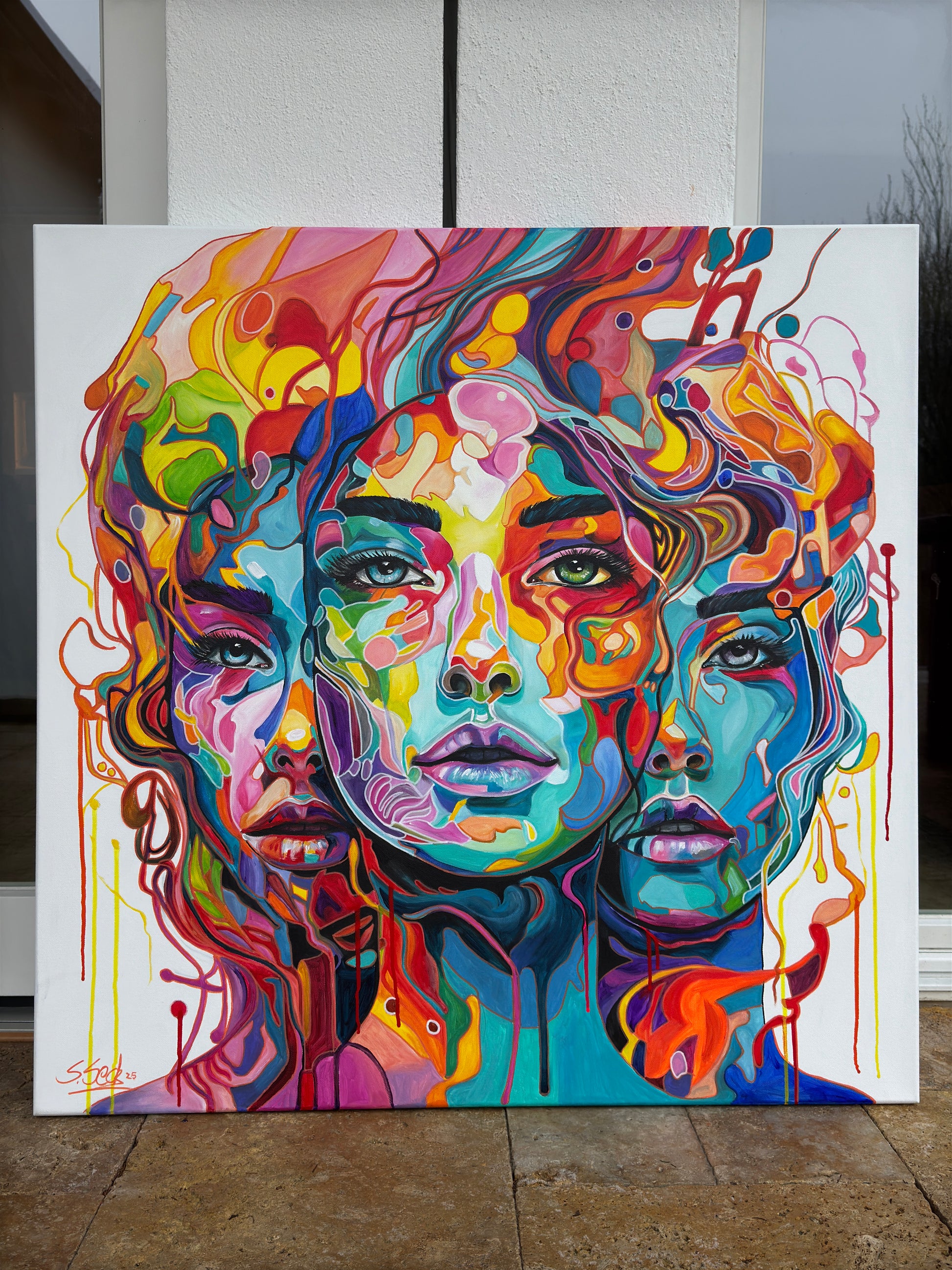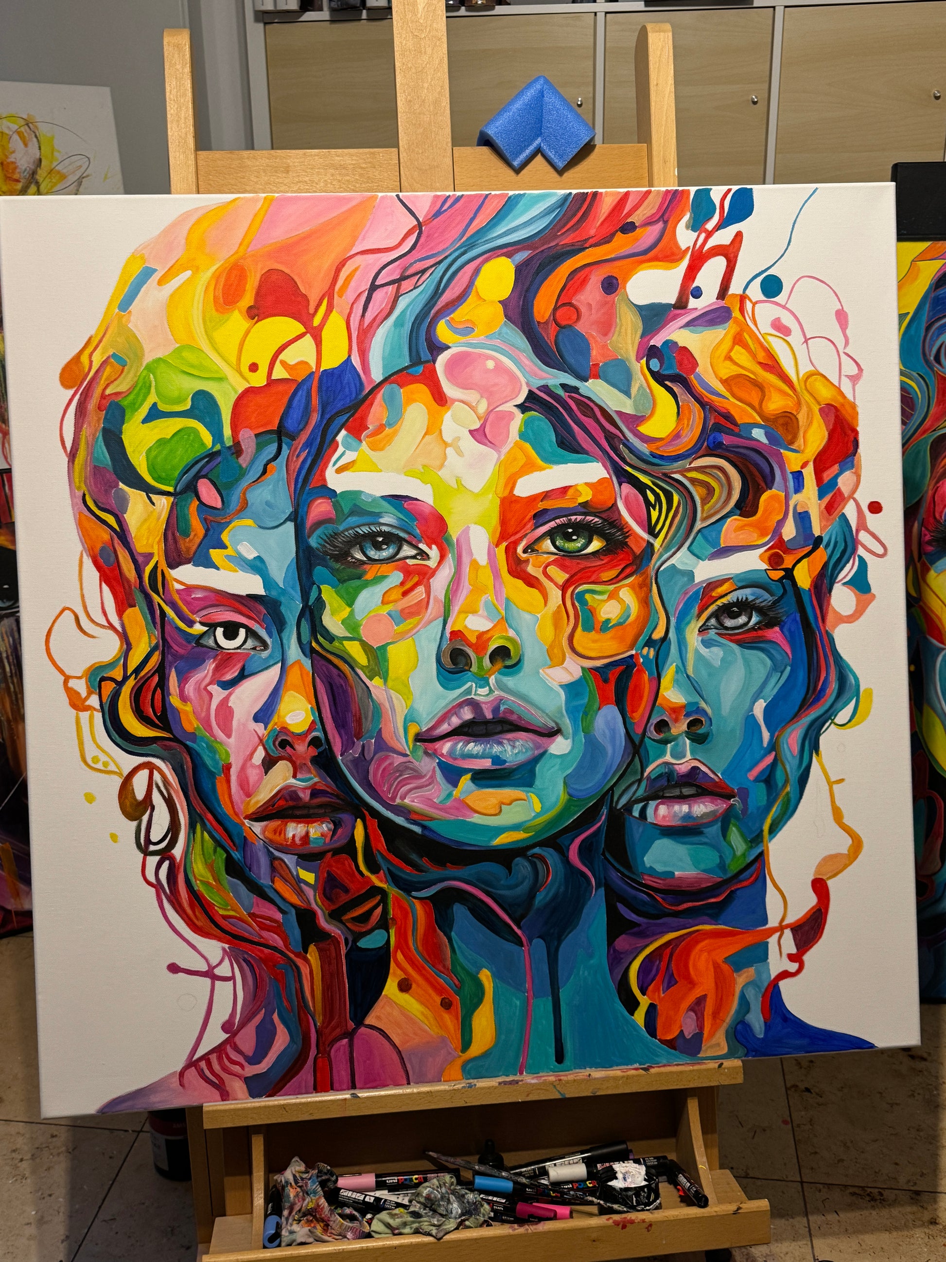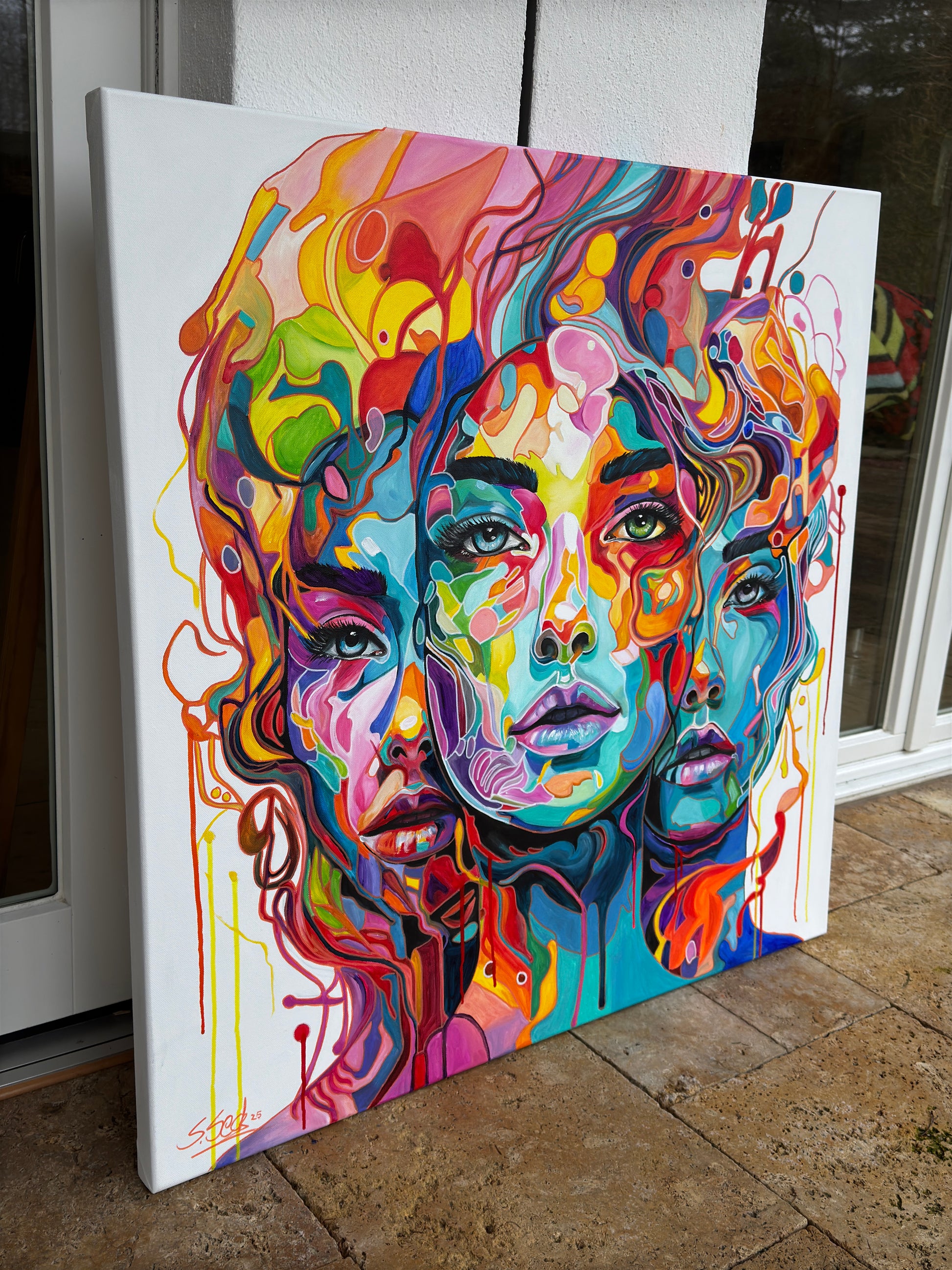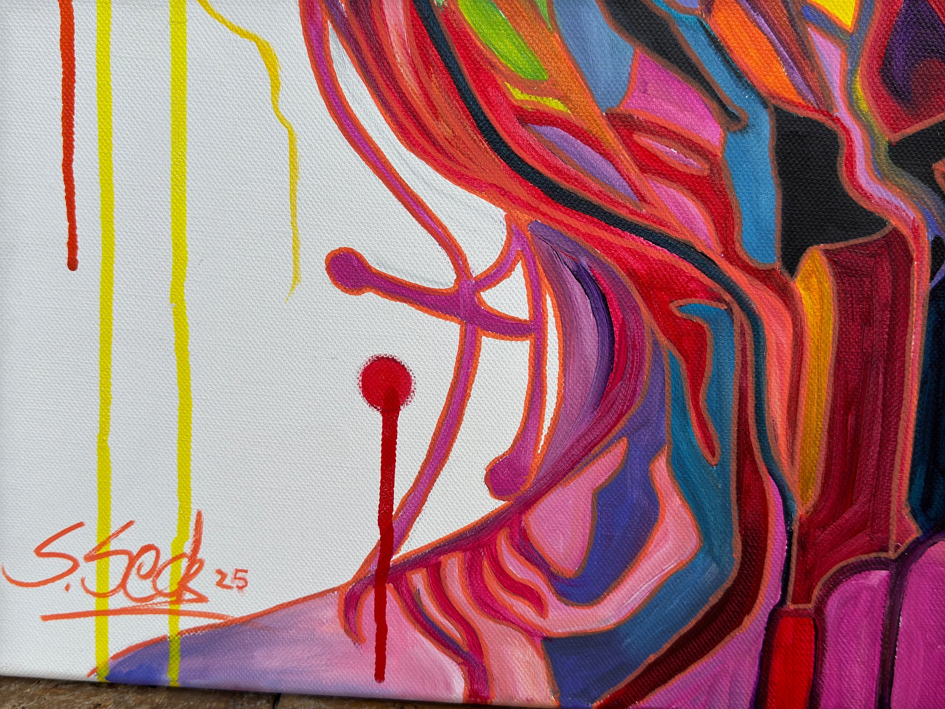 Hydra XI ist eine weiteres Meisterwerk aus dieser Serie. Mit Akrylfarben habe ich ein Geflecht aus abstrakter und figurativer Darstellung geschaffen, das die Intensität und Komplexität unserer inneren Welten einfängt. Es soll die Betrachter dazu inspirieren, die Schönheit im Chaos des Lebens zu sehen und die Vielschichtigkeit der menschlichen Erfahrung zu würdigen, die sich in jeder einzelnen Eigenschaft wiederspiegelt.