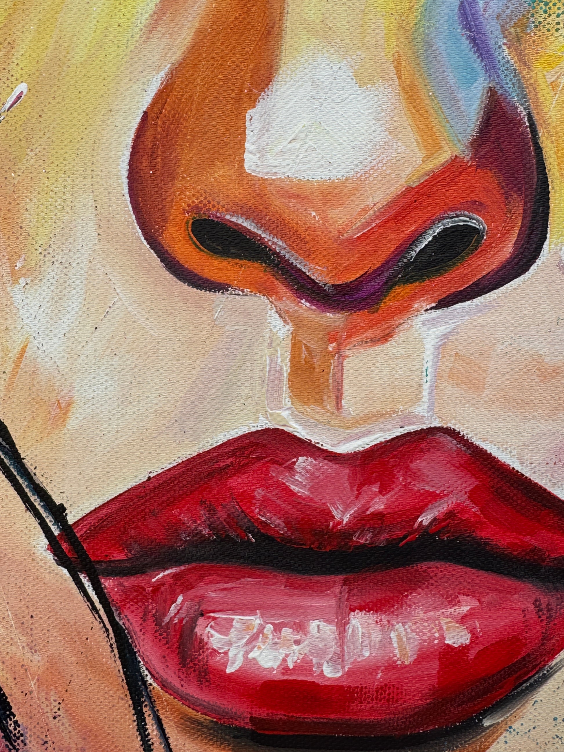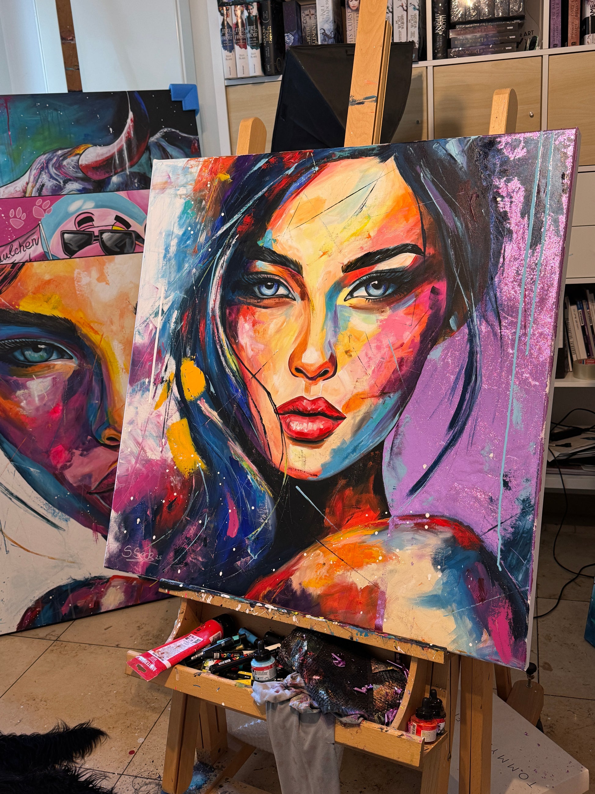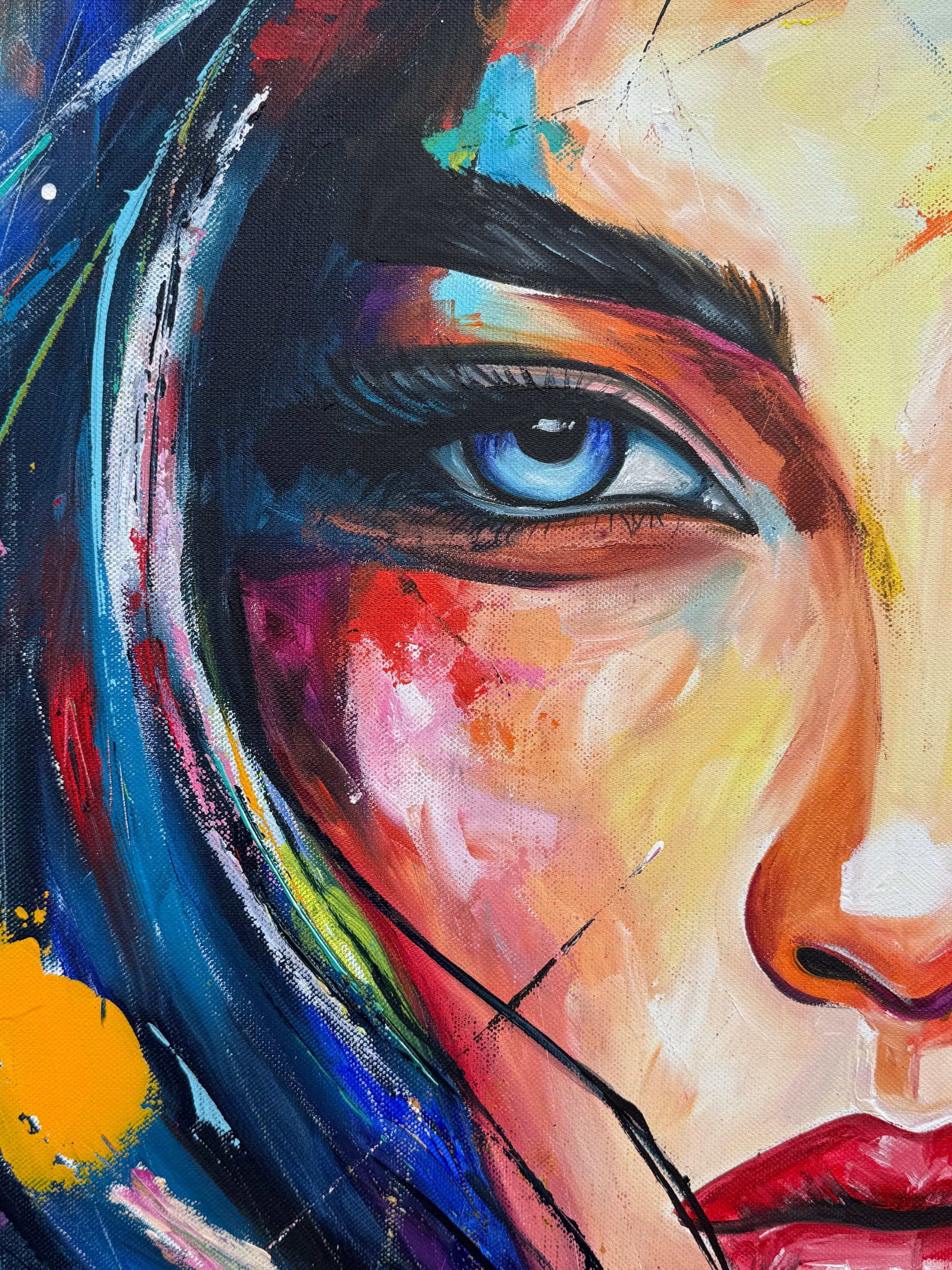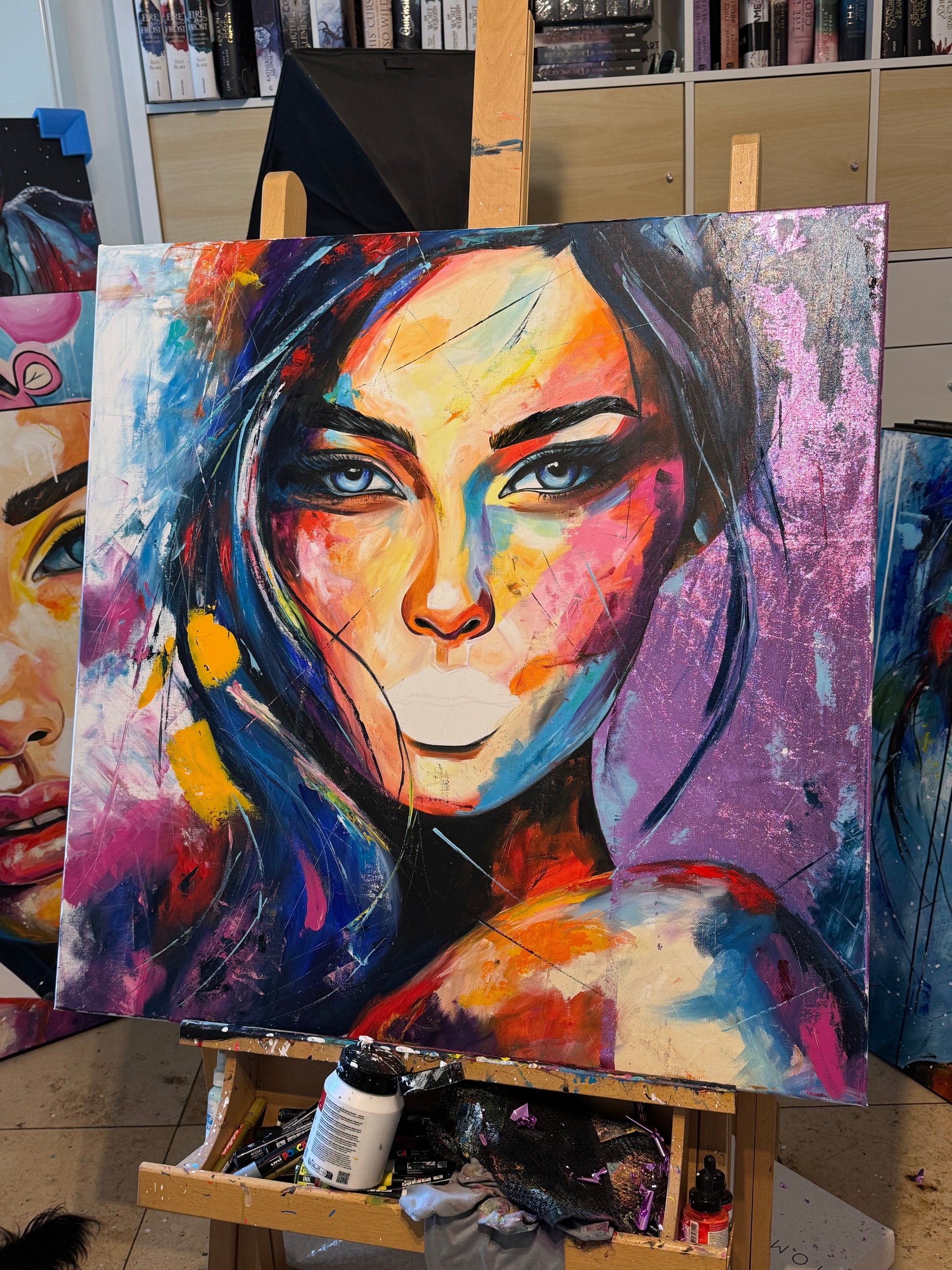 Mit diesem Werk wollte ich die kraftvolle Intensität menschlicher Emotionen einfangen. Die leuchtenden Farben und expressiven Formen spiegeln innere Leidenschaft und Verletzlichkeit wider. Es ist ein Ausdruck von Stärke und Zerbrechlichkeit zugleich, der jeden Raum mit Energie und Tiefe füllt. Dieses Bild lädt dich ein, in eine Welt voller Gefühle einzutauchen und die Schönheit des Unvollkommenen zu erkennen.