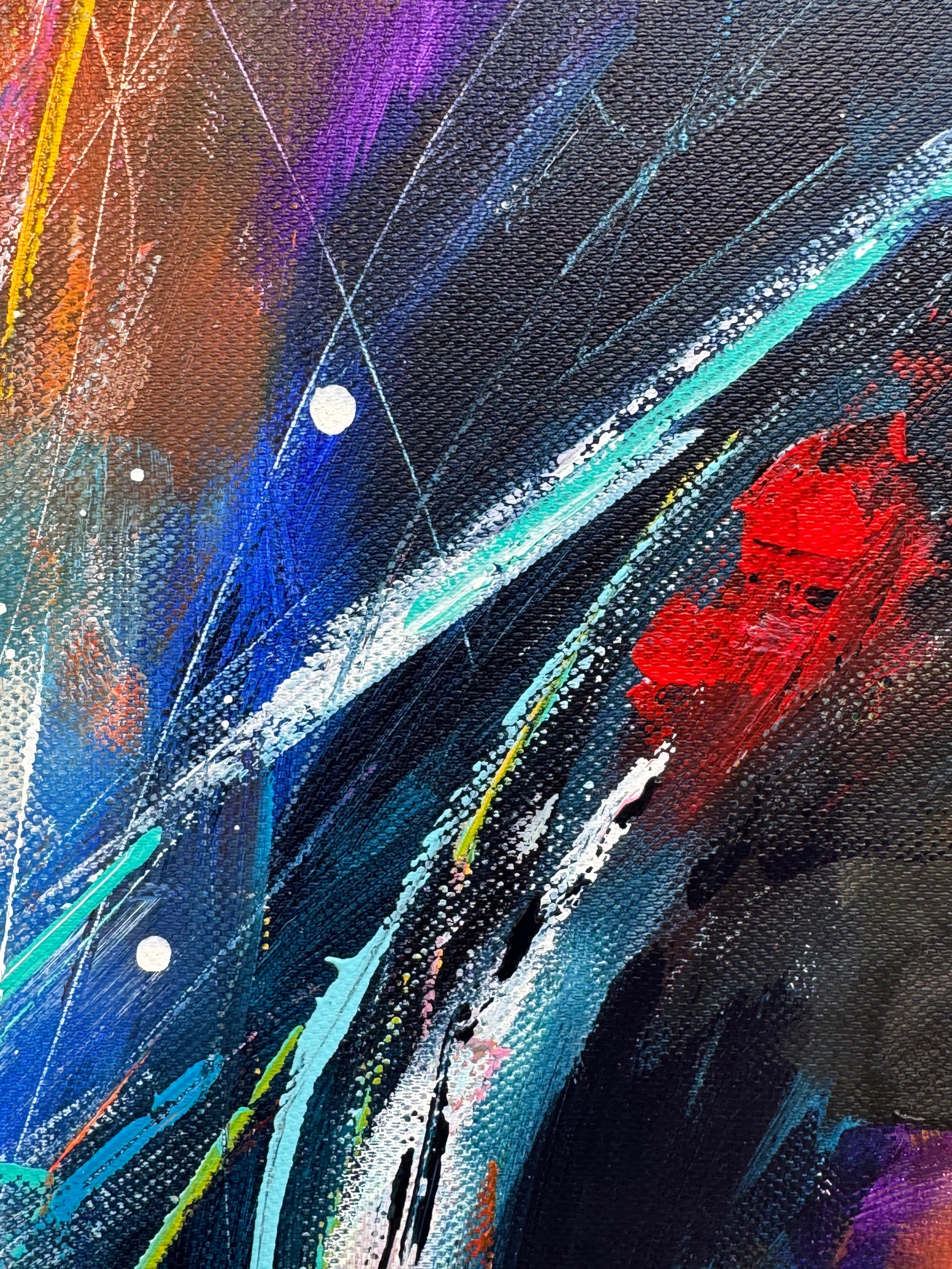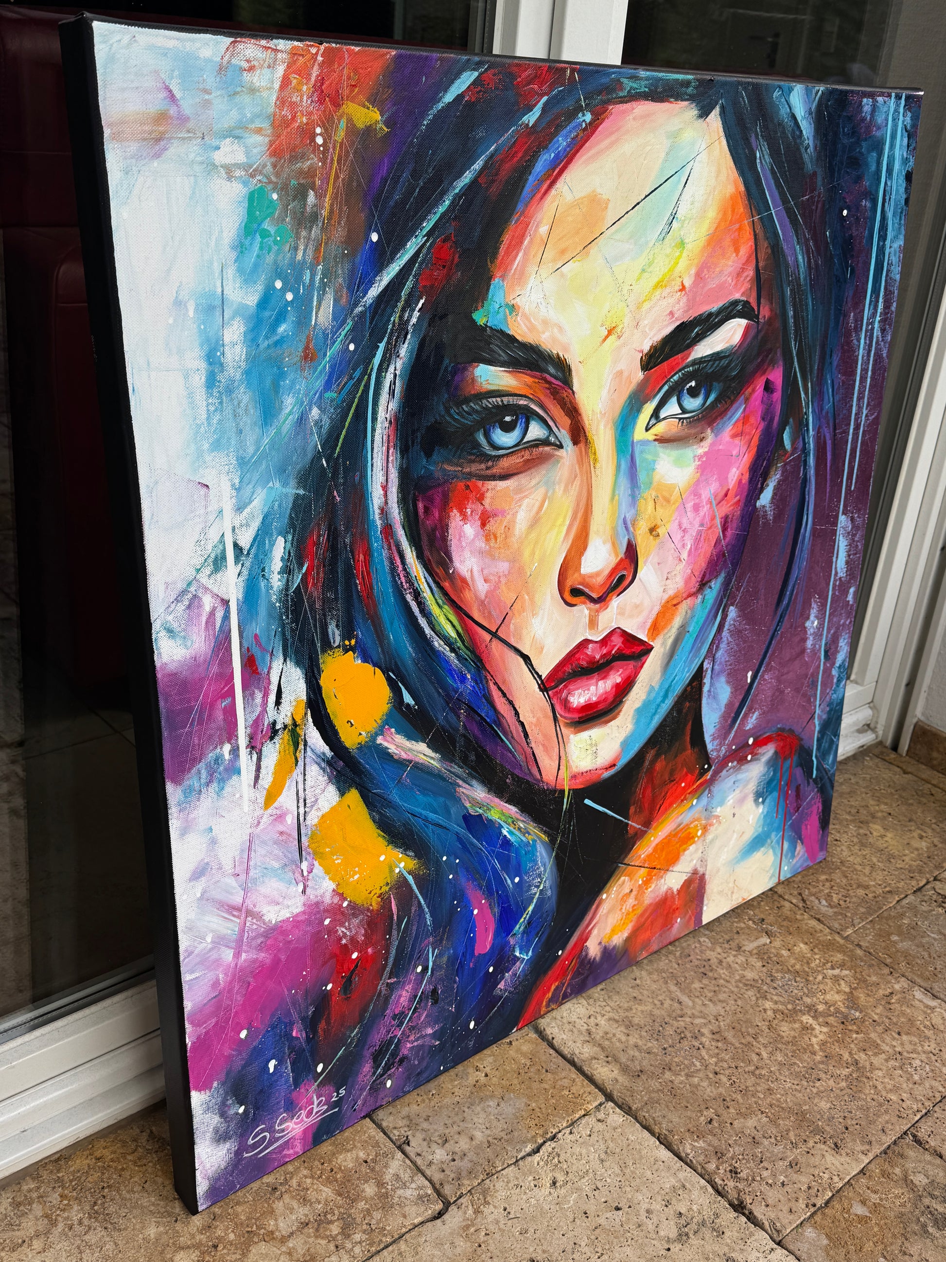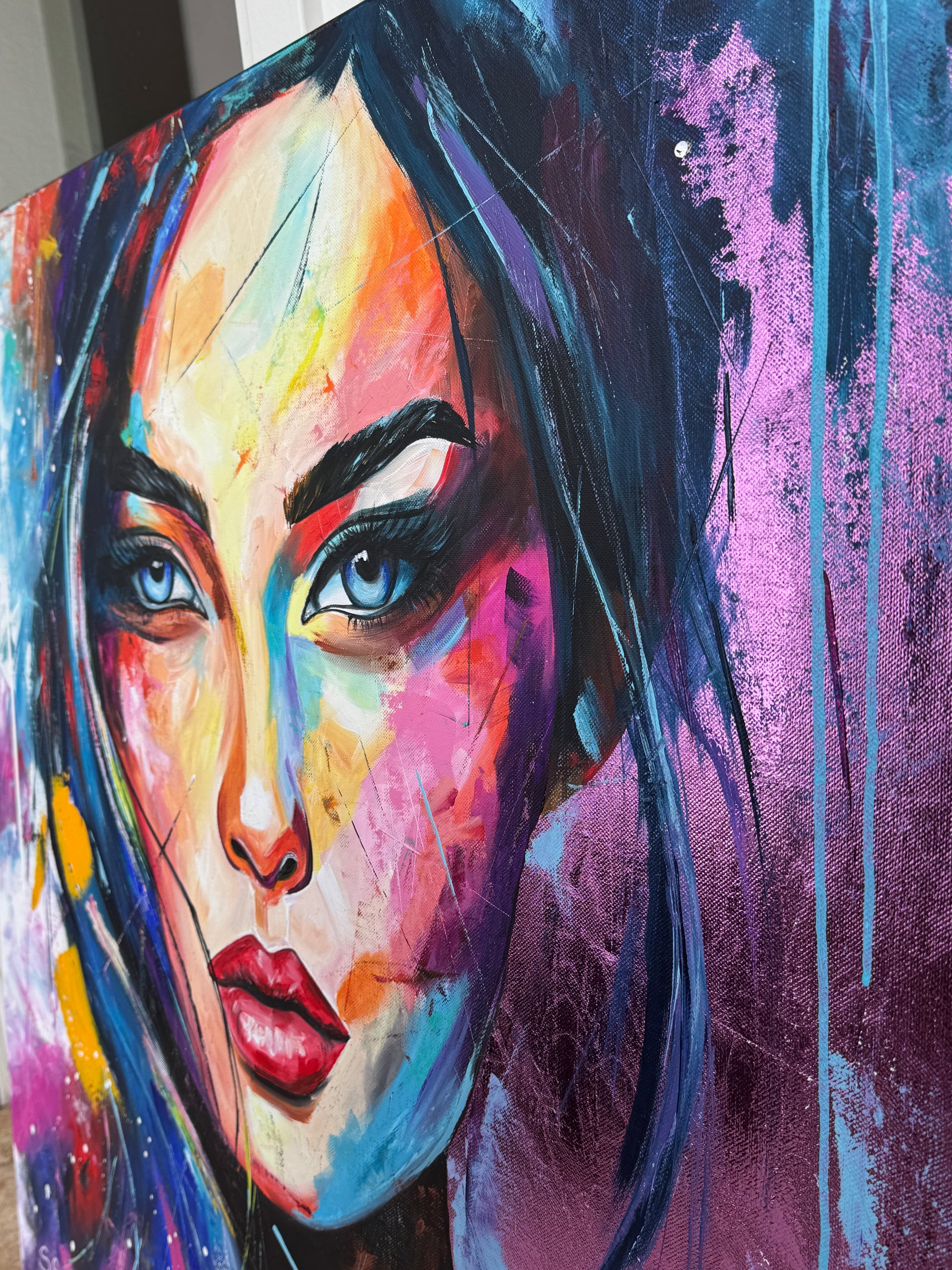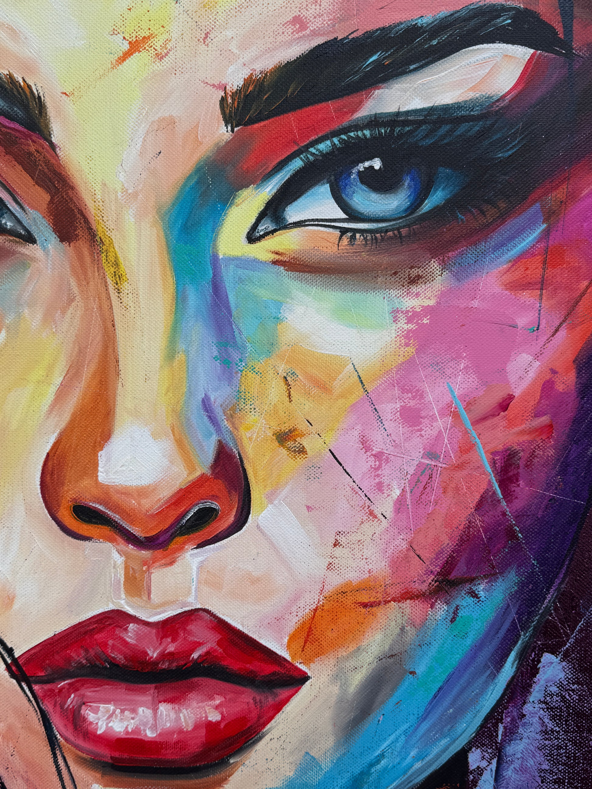 Mit diesem Werk wollte ich die kraftvolle Intensität menschlicher Emotionen einfangen. Die leuchtenden Farben und expressiven Formen spiegeln innere Leidenschaft und Verletzlichkeit wider. Es ist ein Ausdruck von Stärke und Zerbrechlichkeit zugleich, der jeden Raum mit Energie und Tiefe füllt. Dieses Bild lädt dich ein, in eine Welt voller Gefühle einzutauchen und die Schönheit des Unvollkommenen zu erkennen.