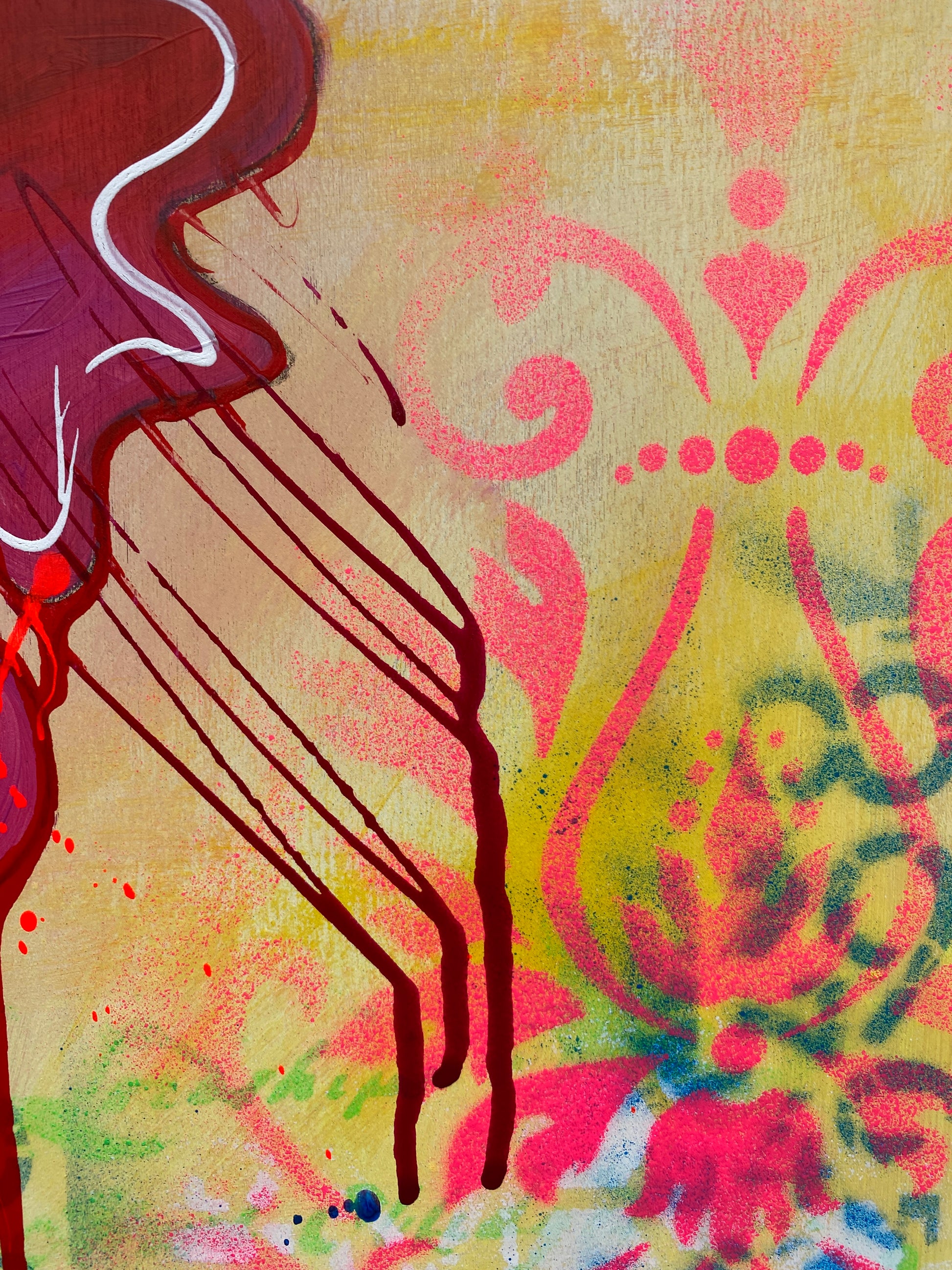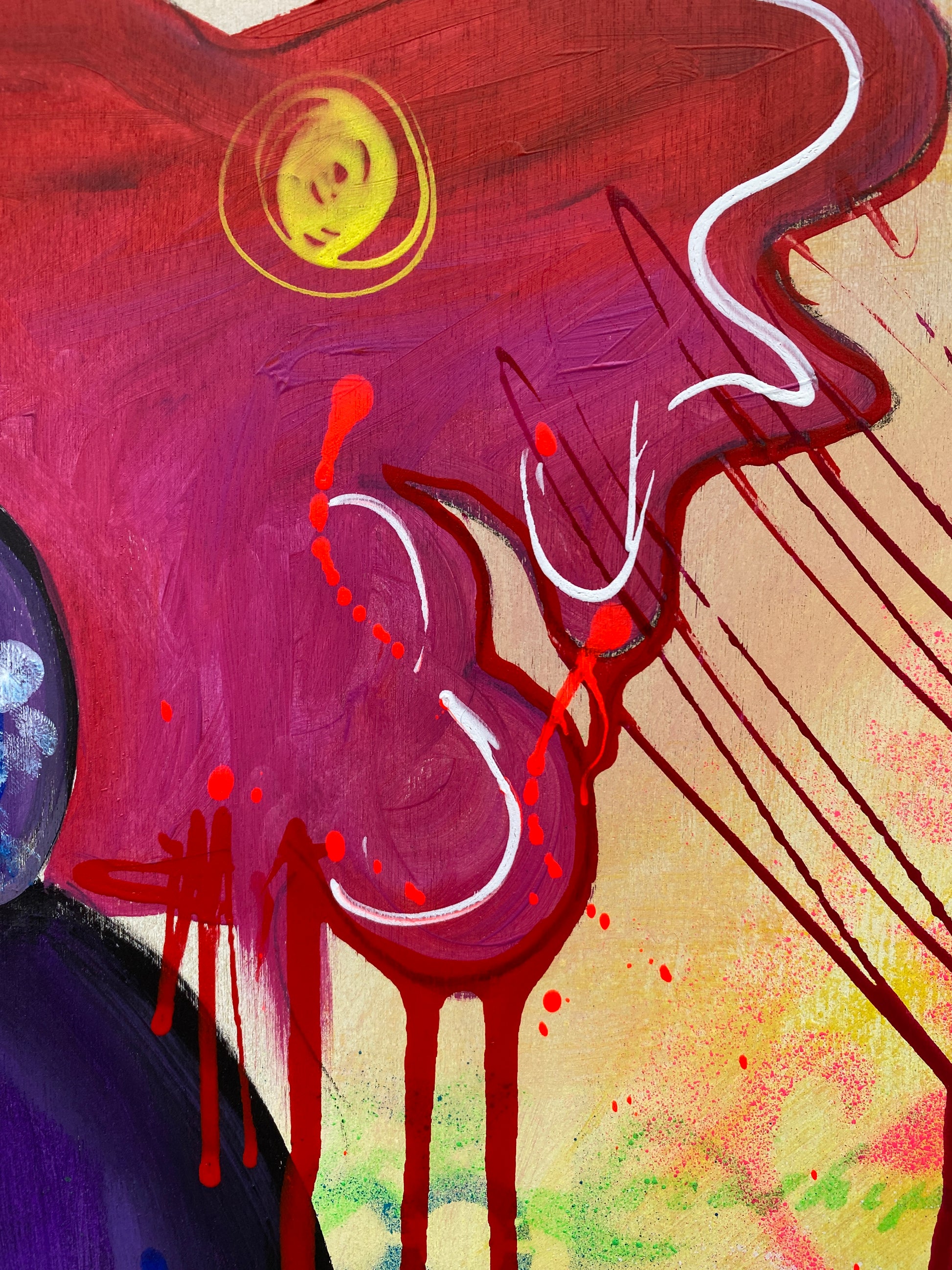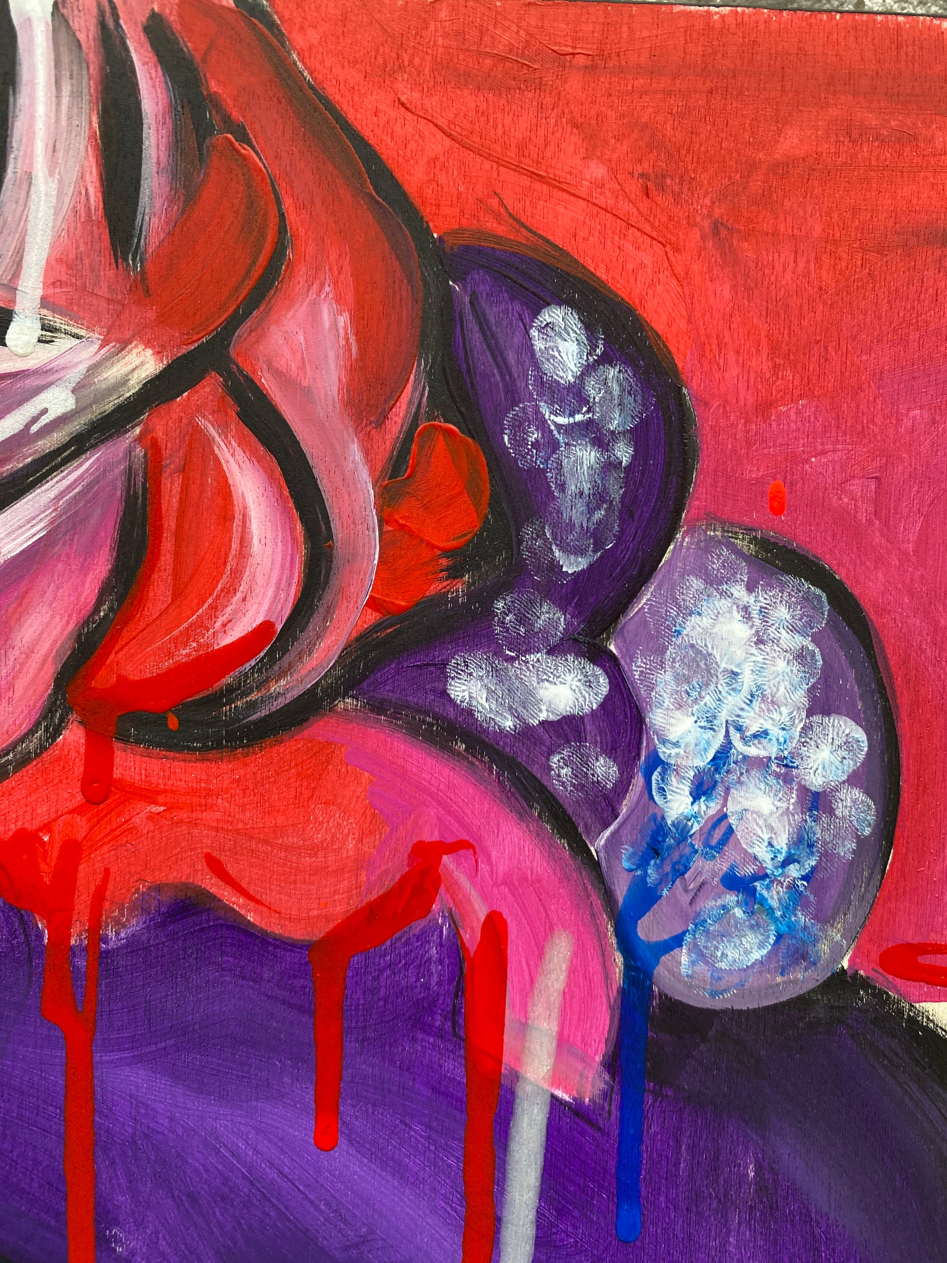 Gemalt wurde mit Acryl auf einer Holzleinwand. Diese besteht zu 100 % aus Holz und ist aufgebaut wie eine Leinwand, die auf einem Keilrahmen aufgezogen ist.