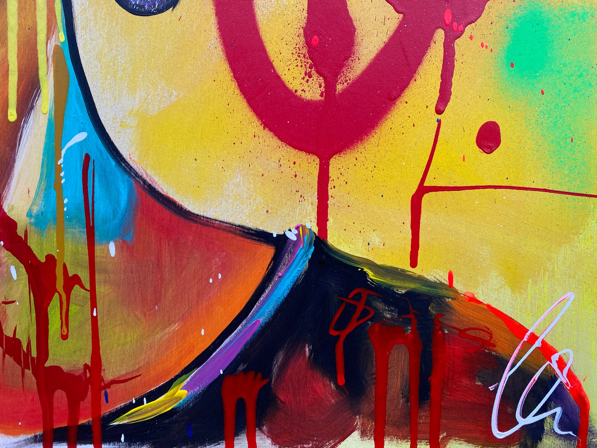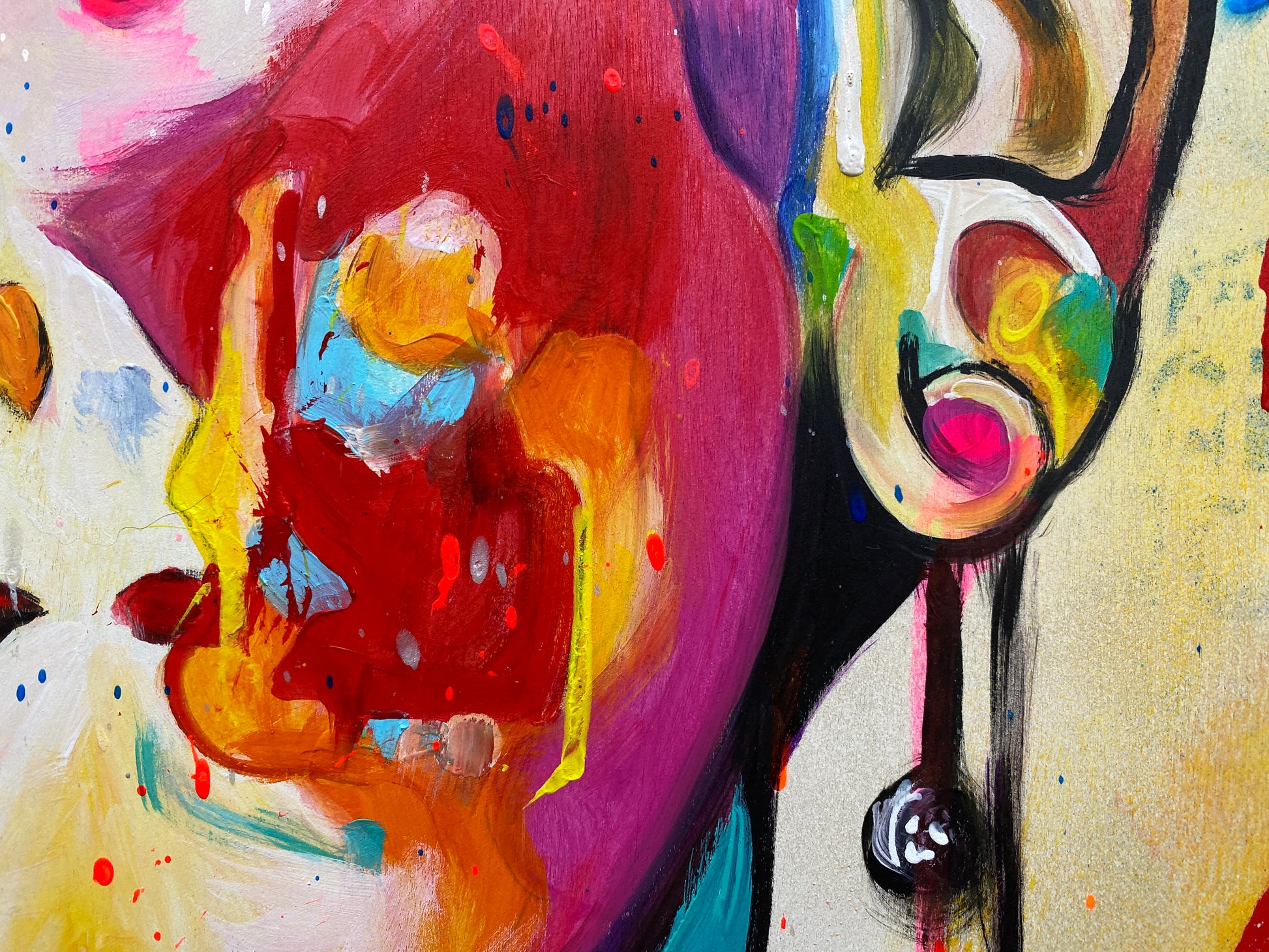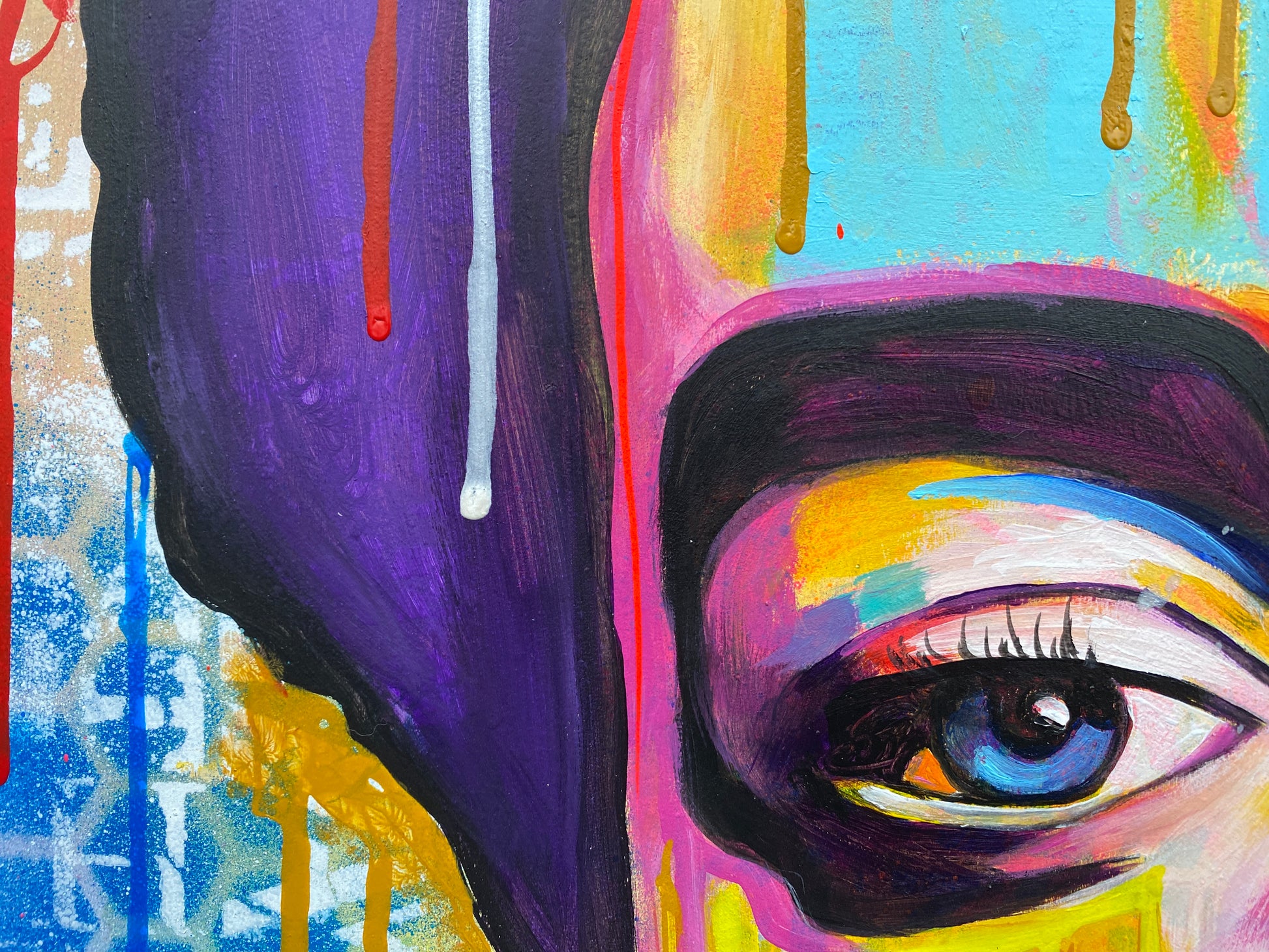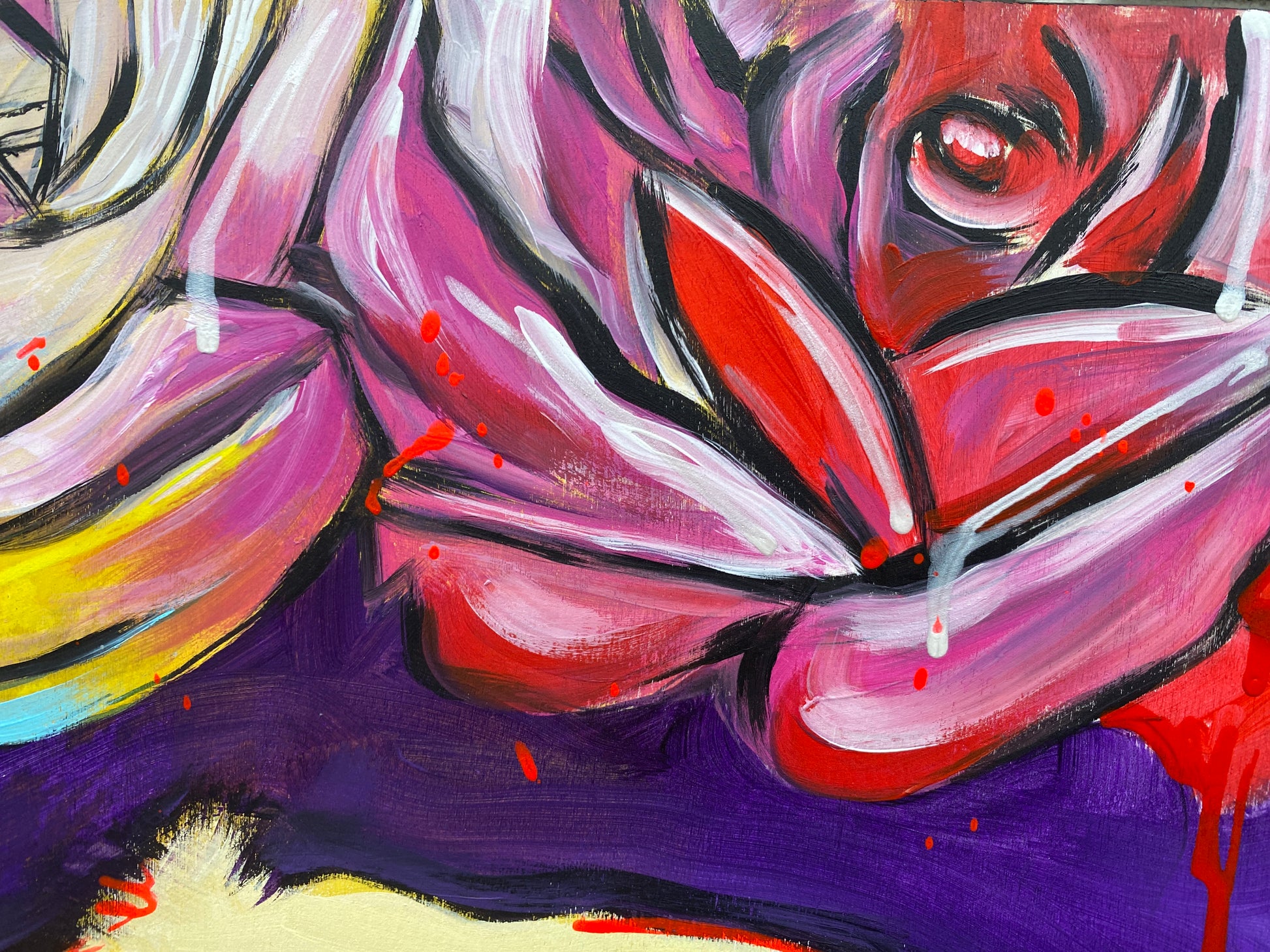 Gemalt wurde mit Acryl auf einer Holzleinwand. Diese besteht zu 100 % aus Holz und ist aufgebaut wie eine Leinwand, die auf einem Keilrahmen aufgezogen ist.