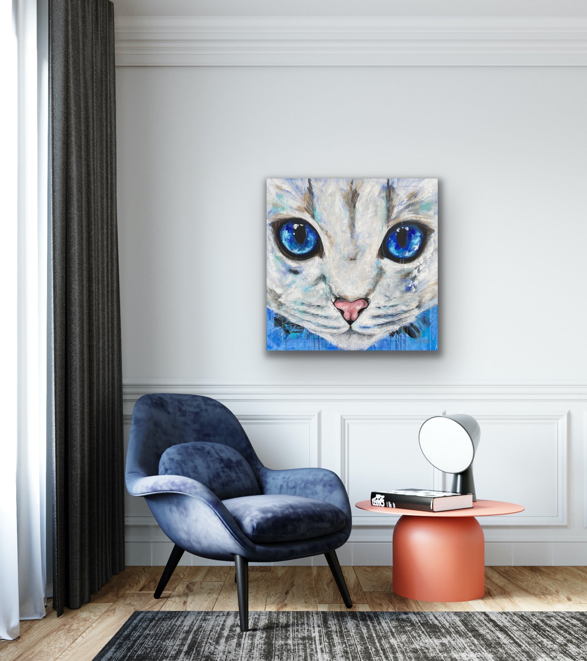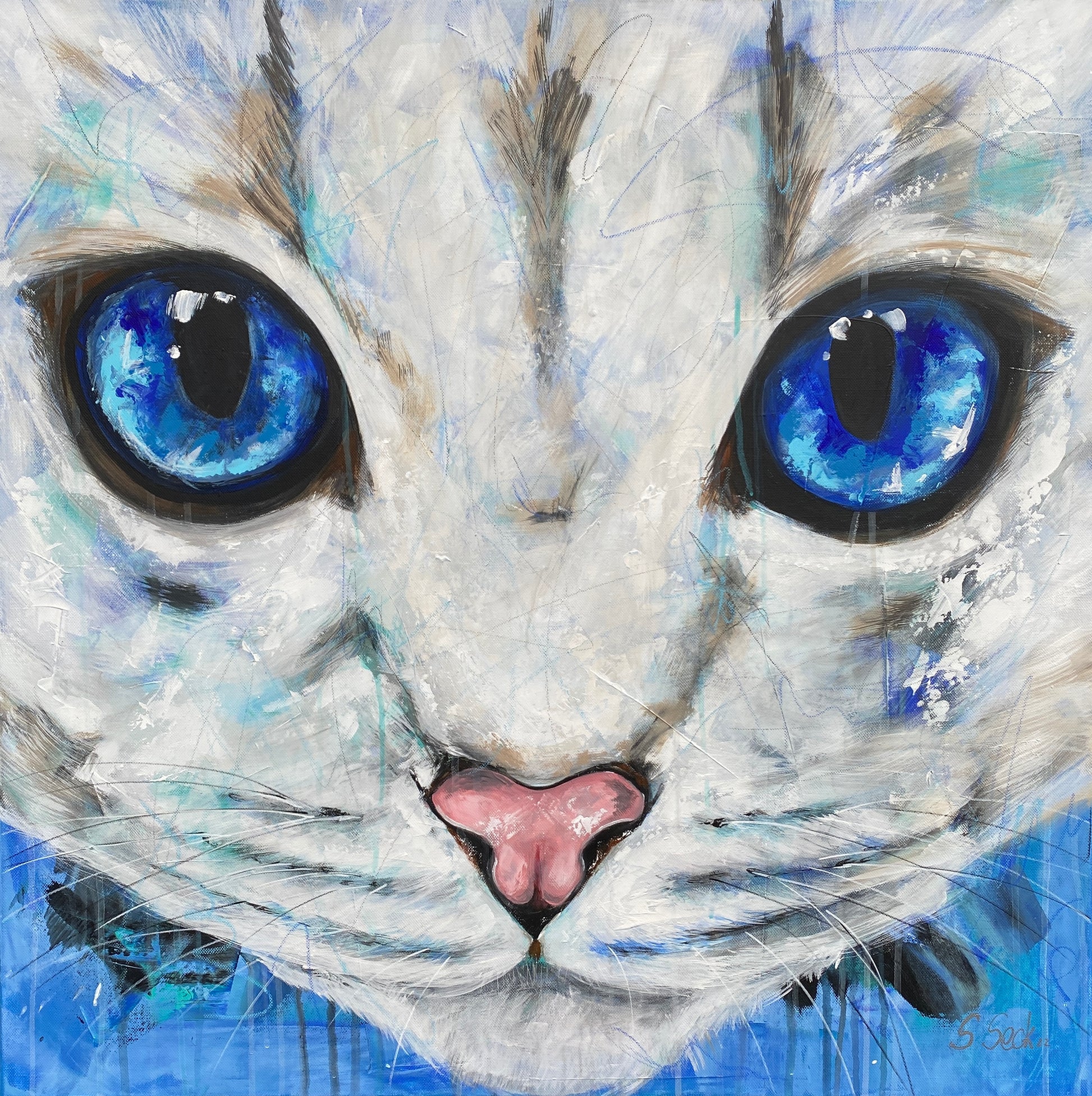 Auf samtweichen Pfoten kommt der schneeweiße Kater Kian daher. Schnurrend drückt er sich ans Bein, sein Schwanz wedelt fordernd hin und her. Seine Augen, so groß wie zwei Monde und von einem tiefen blau, schauen einem bis tief in die Seele. Wer kann dem Drang schon widerstehen, ihm sein samtweiches Fell zu streicheln und sich der Nähe zwischen Mensch und Tier hinzugeben?