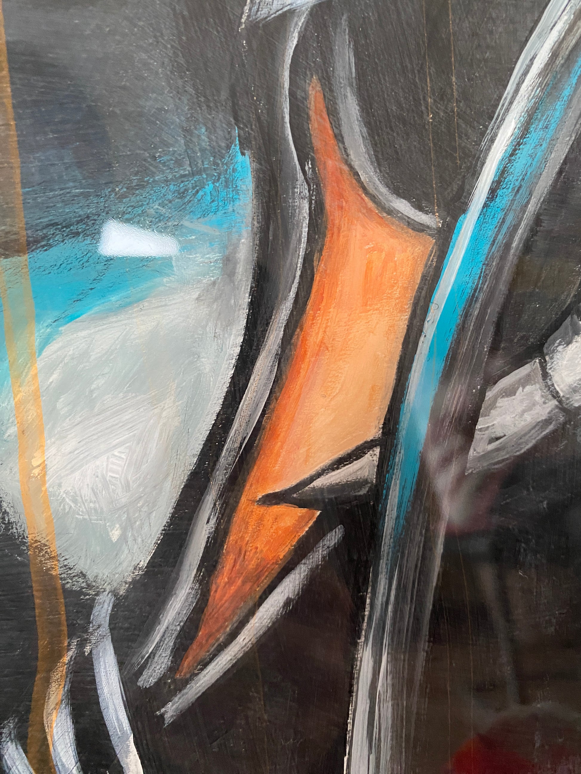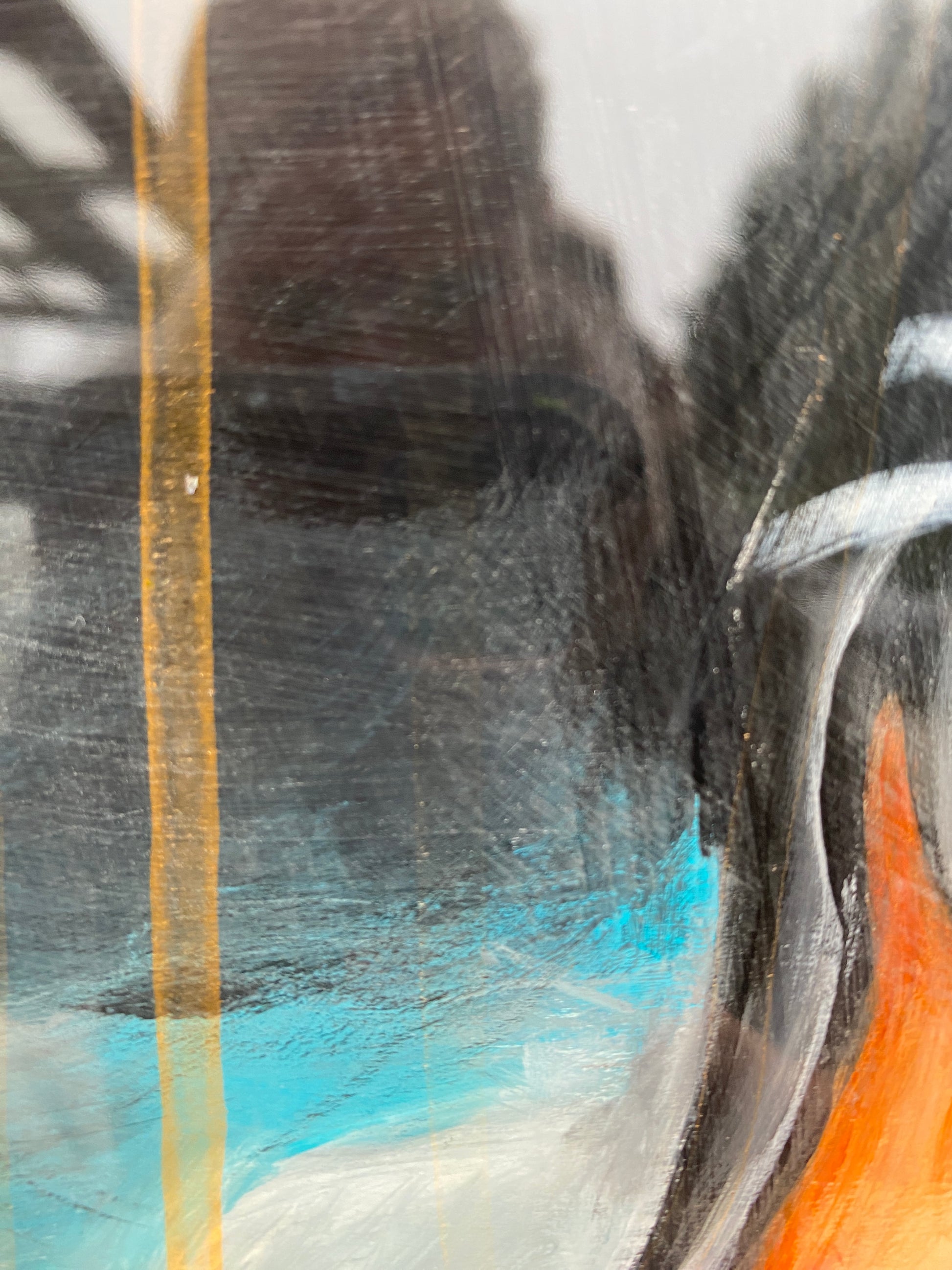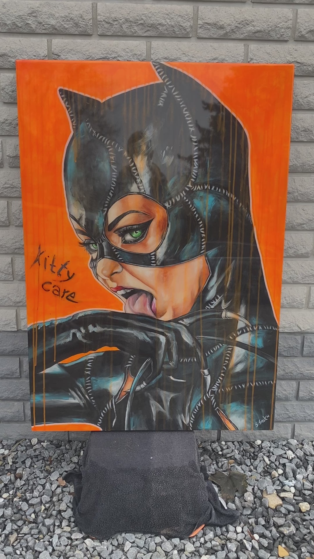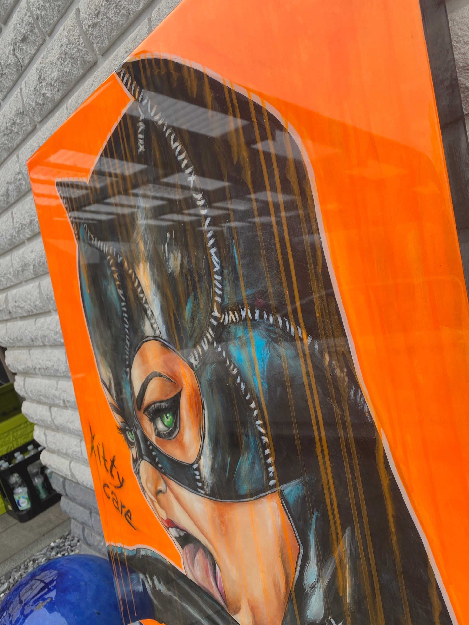 Das Werk wurde auf einer Holzleinwand mit Acryl gemalt und mit UV-beständigen Epodex-Resin überzogen.